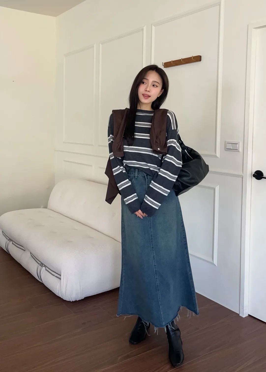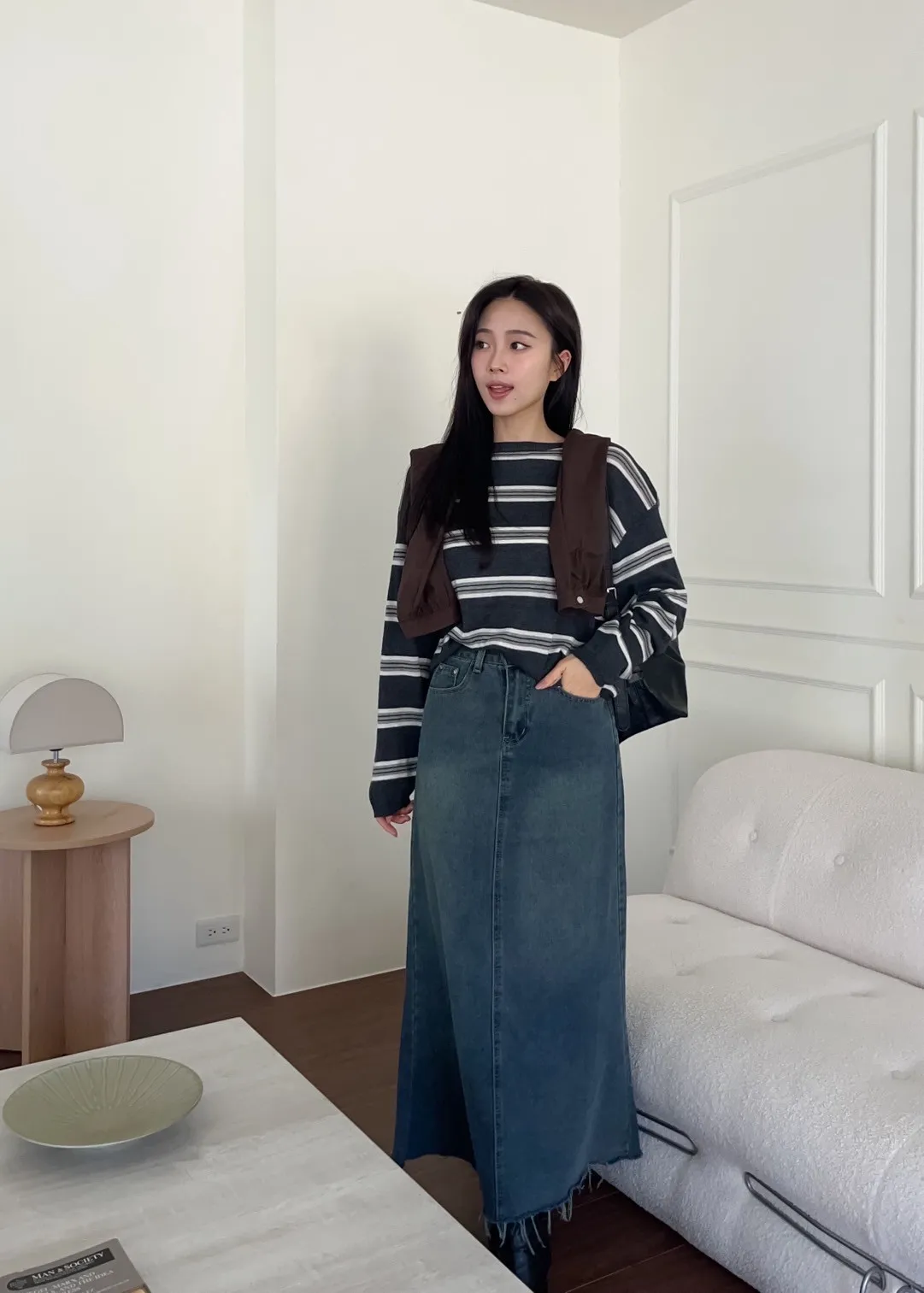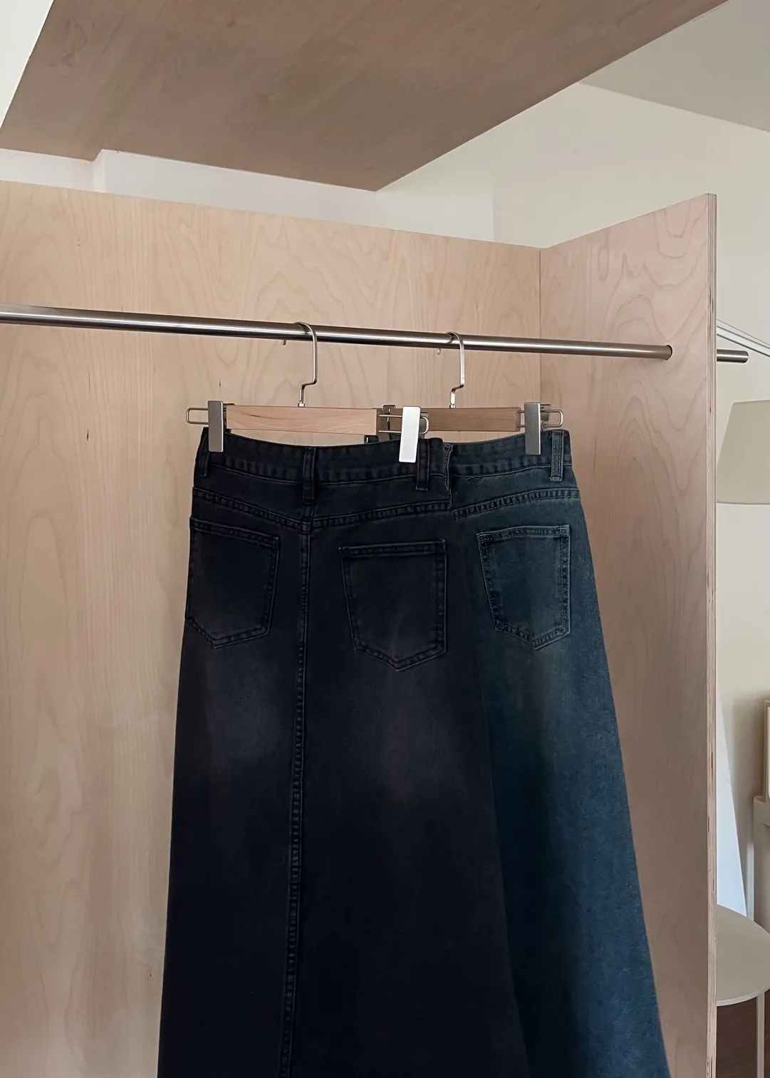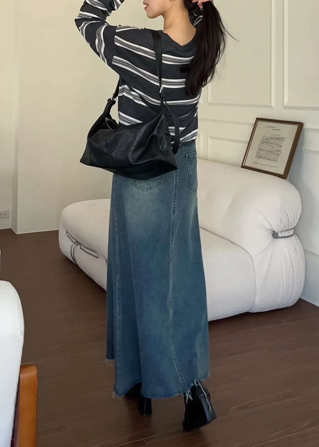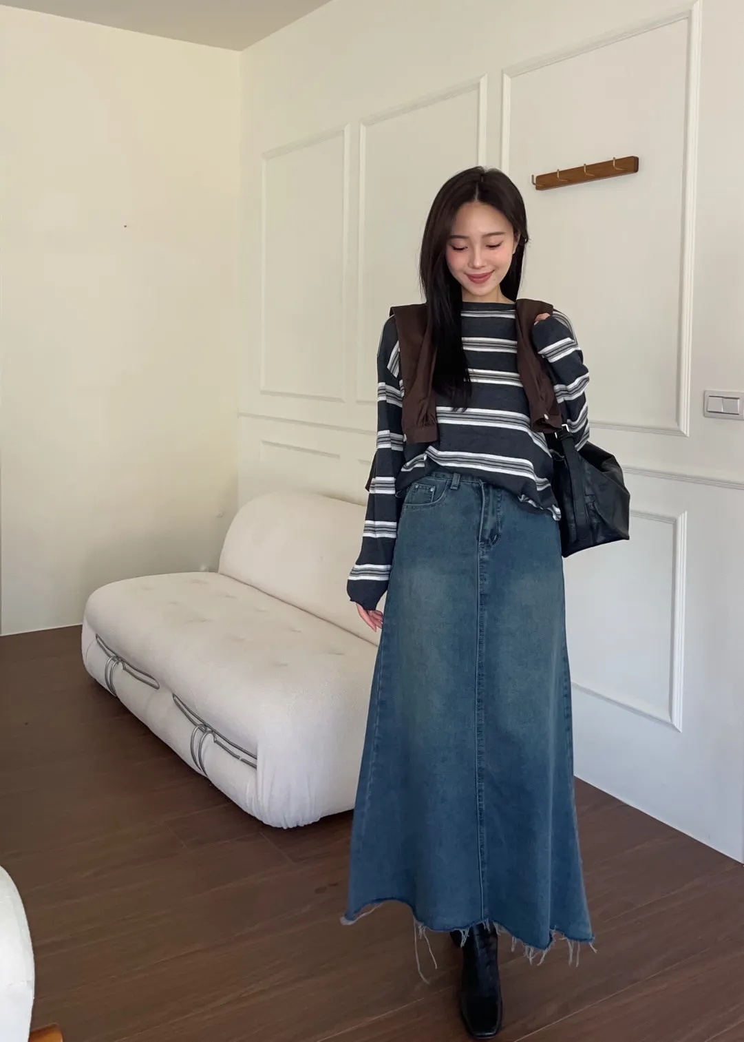 T0051小魚尾不修邊牛仔裙(藍/黑灰)(售完不補)