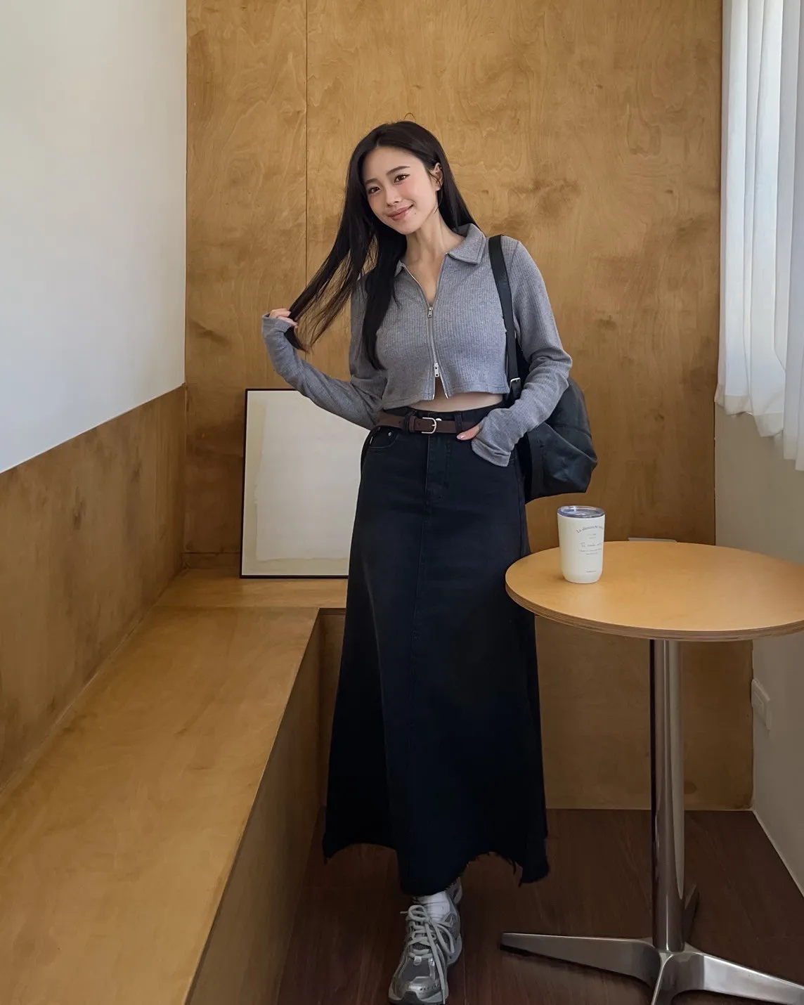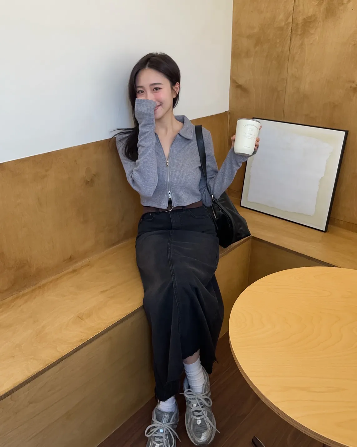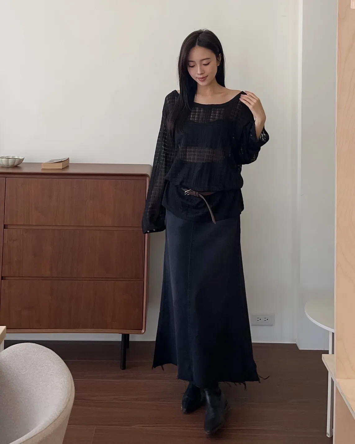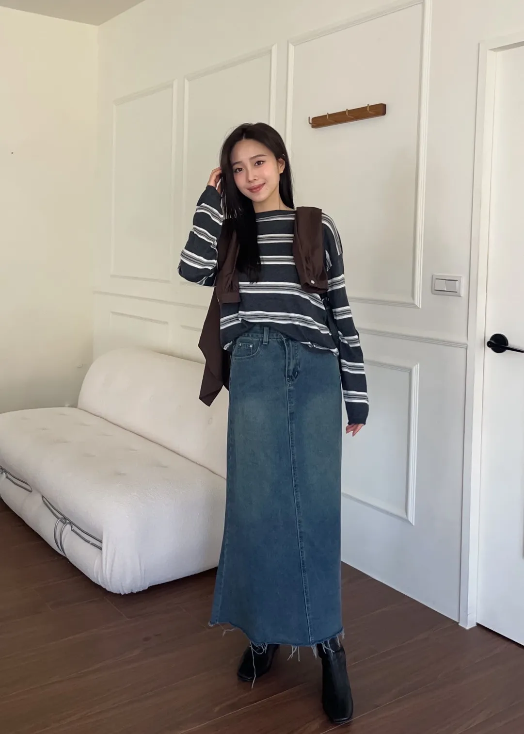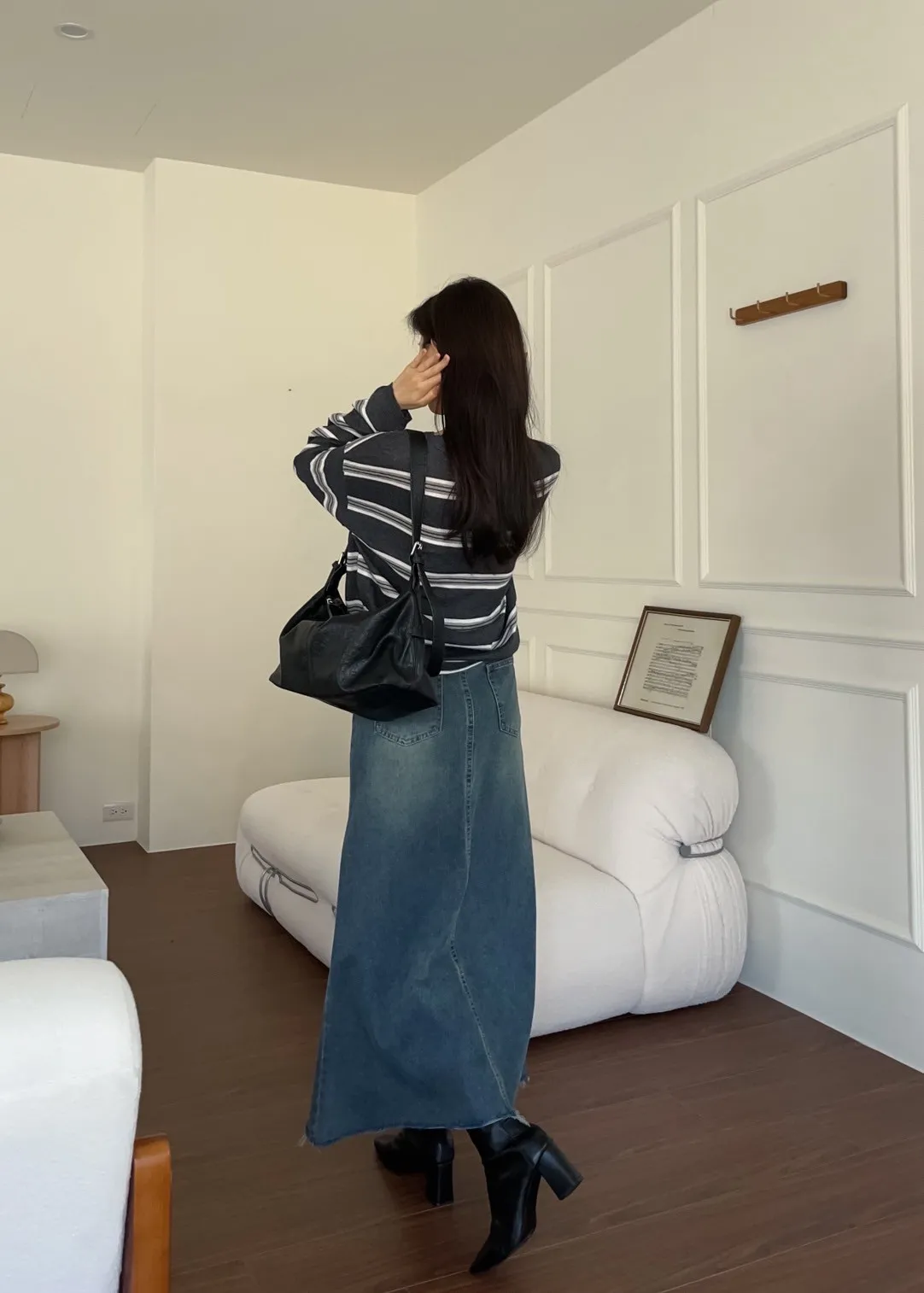 T0051小魚尾不修邊牛仔裙(藍/黑灰)(售完不補)
