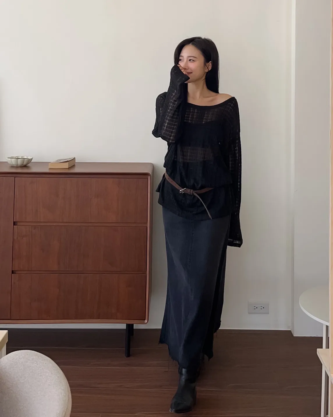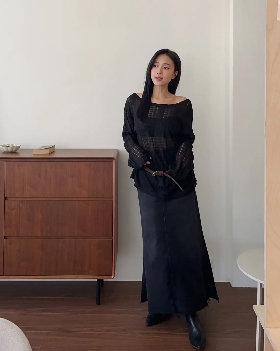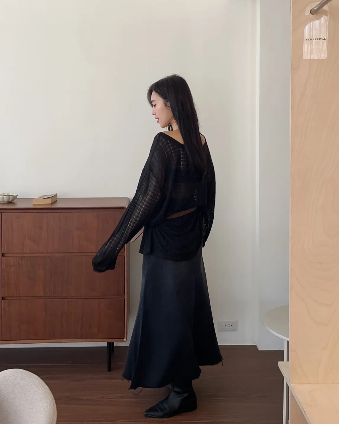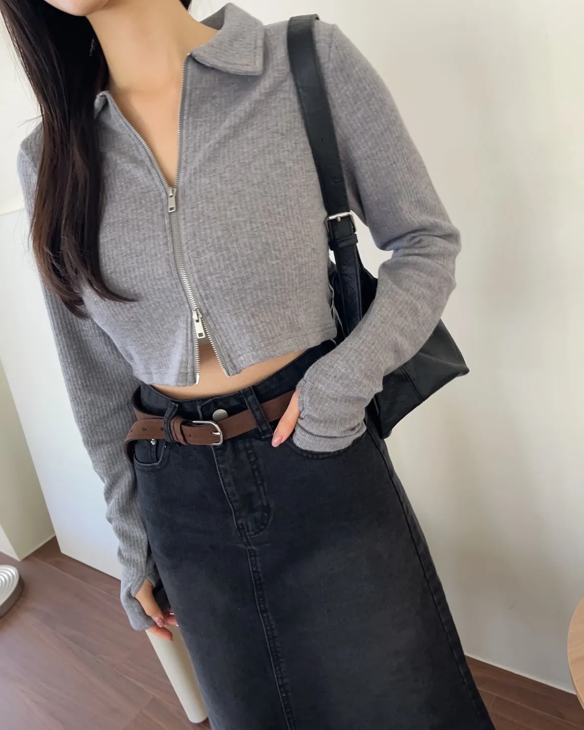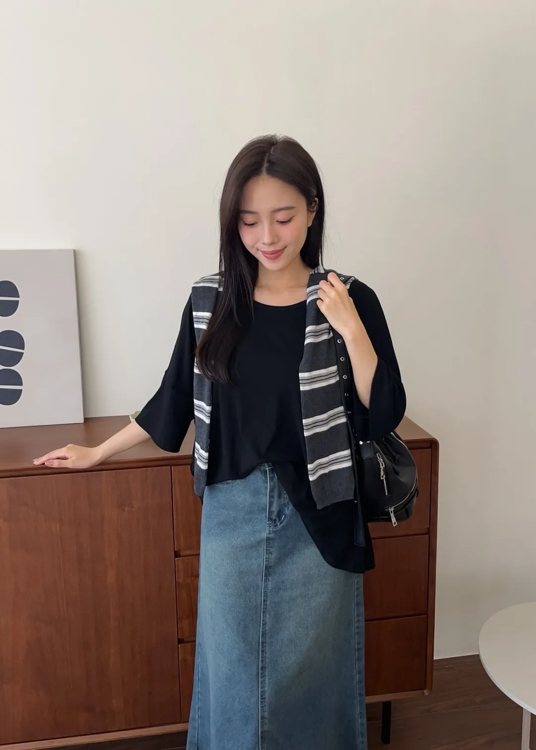T0051小魚尾不修邊牛仔裙(藍/黑灰)(售完不補)