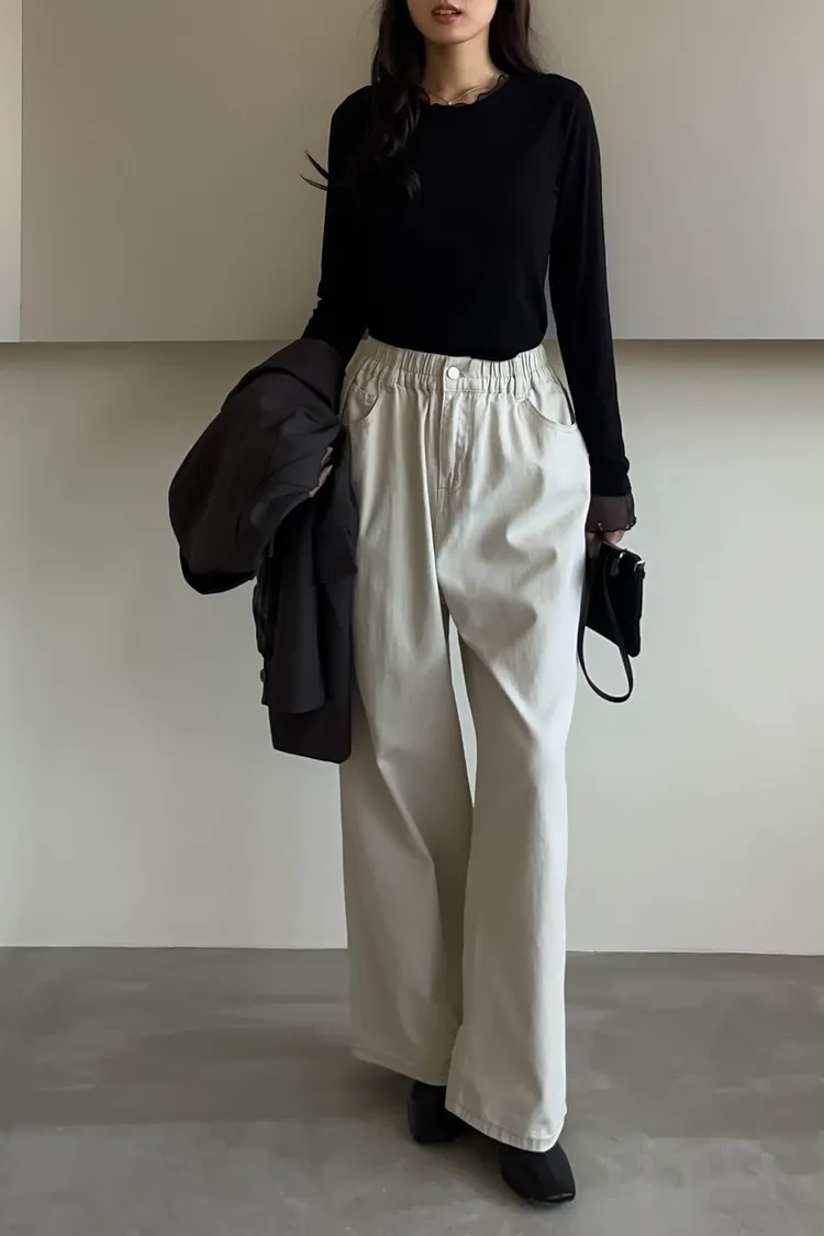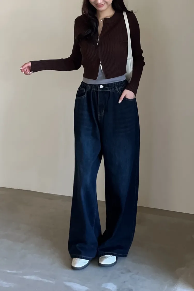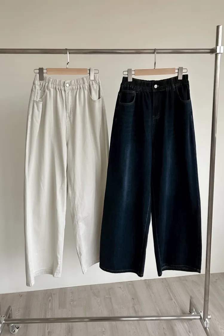 V0066實搭大推!!牛仔寬版落地褲(杏/深藍)