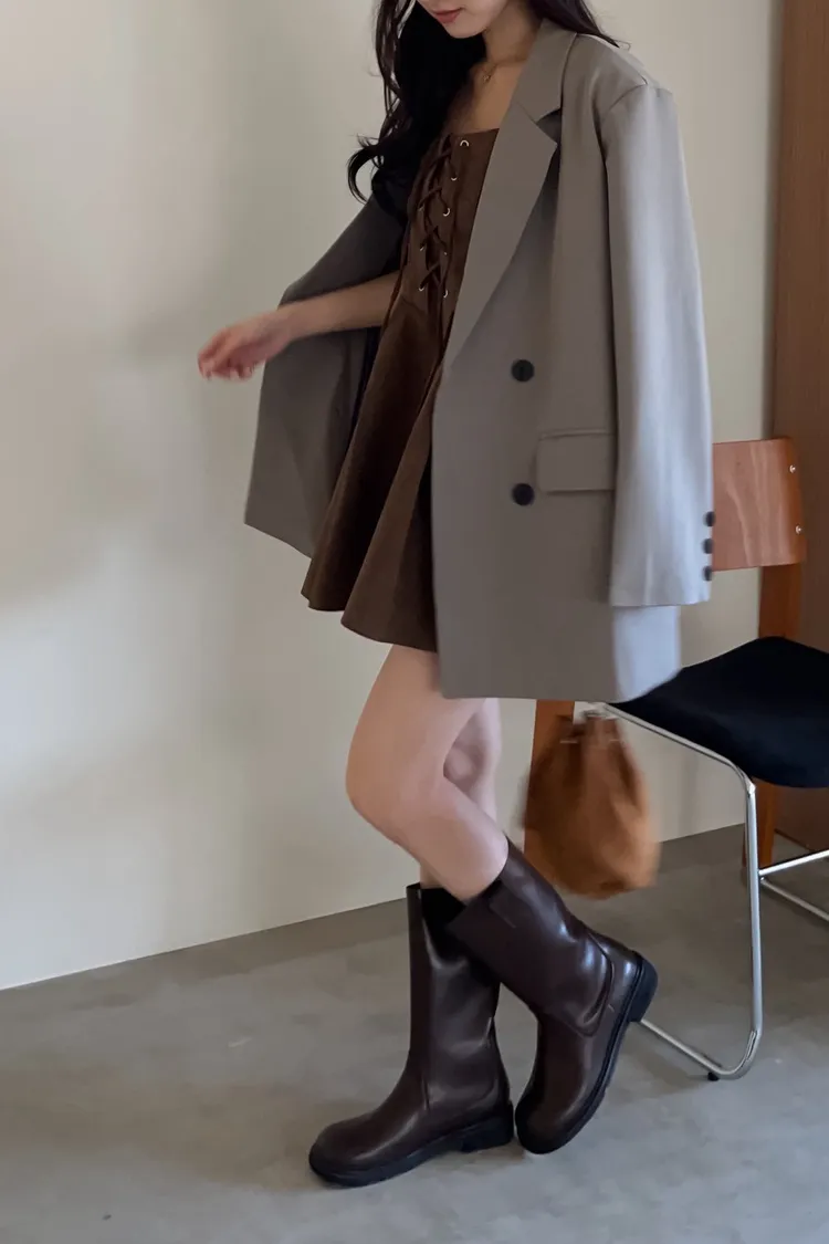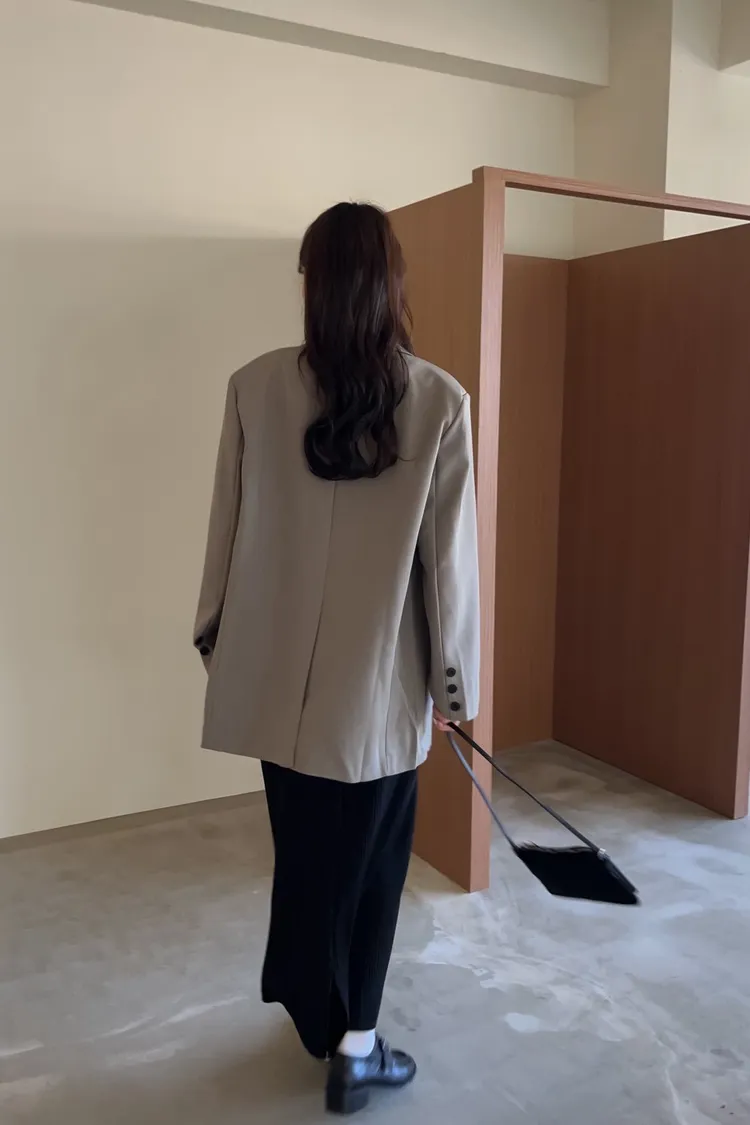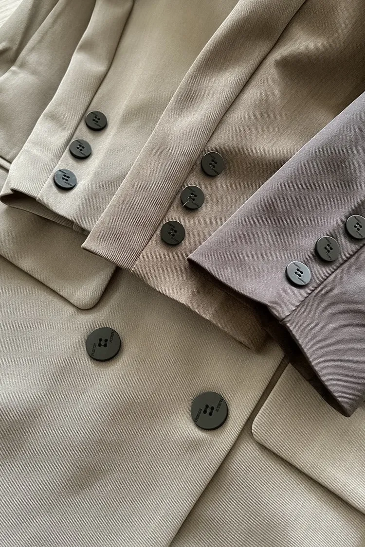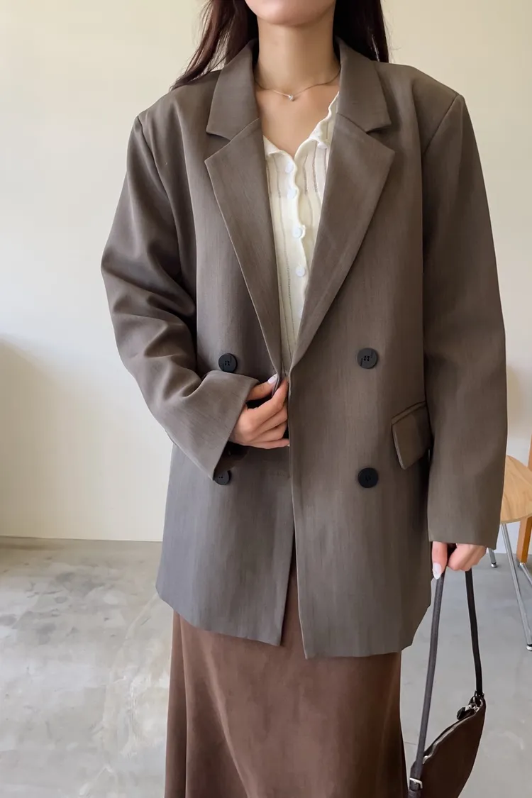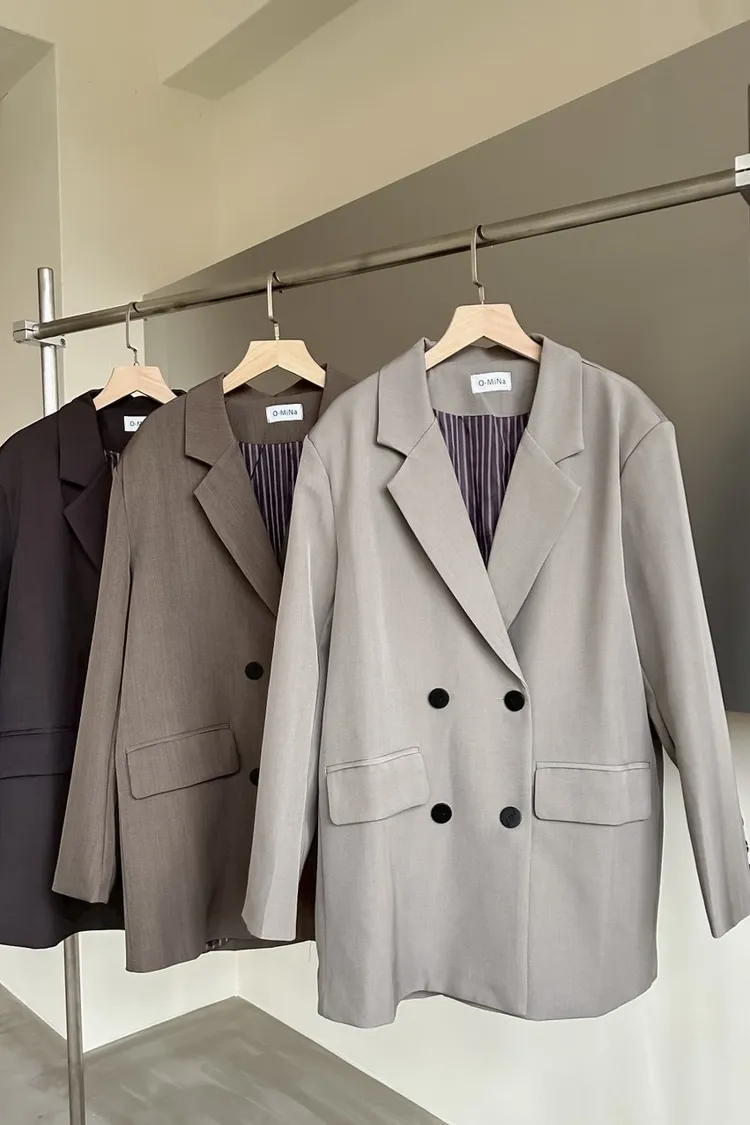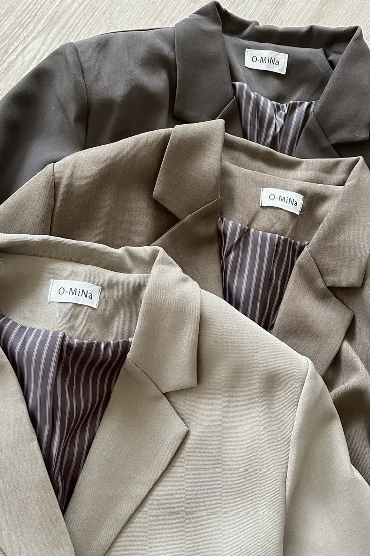 V0069直紋內襯四扣西裝外套(灰杏/咖啡/深灰)
