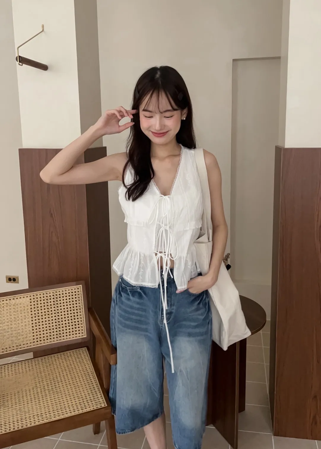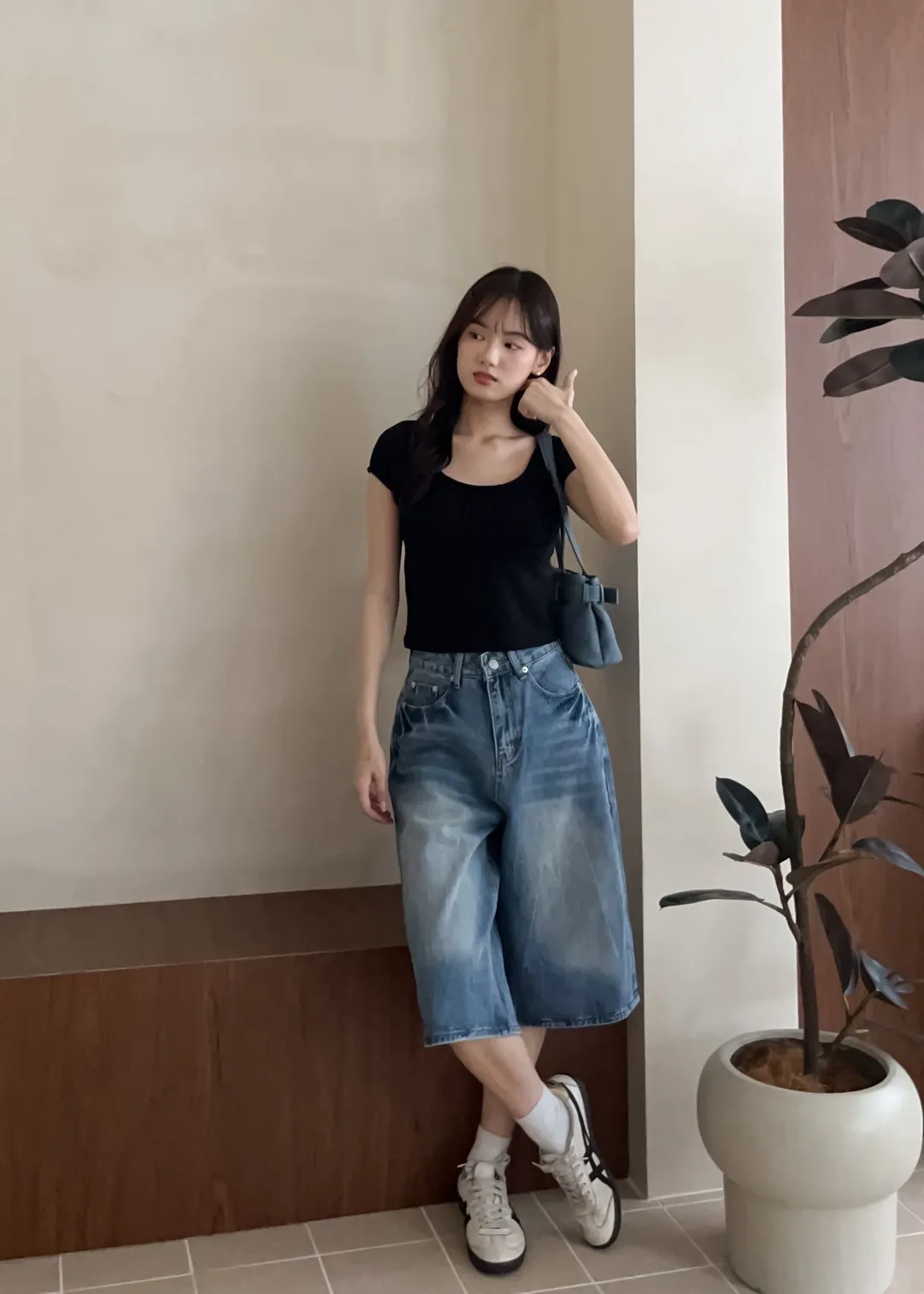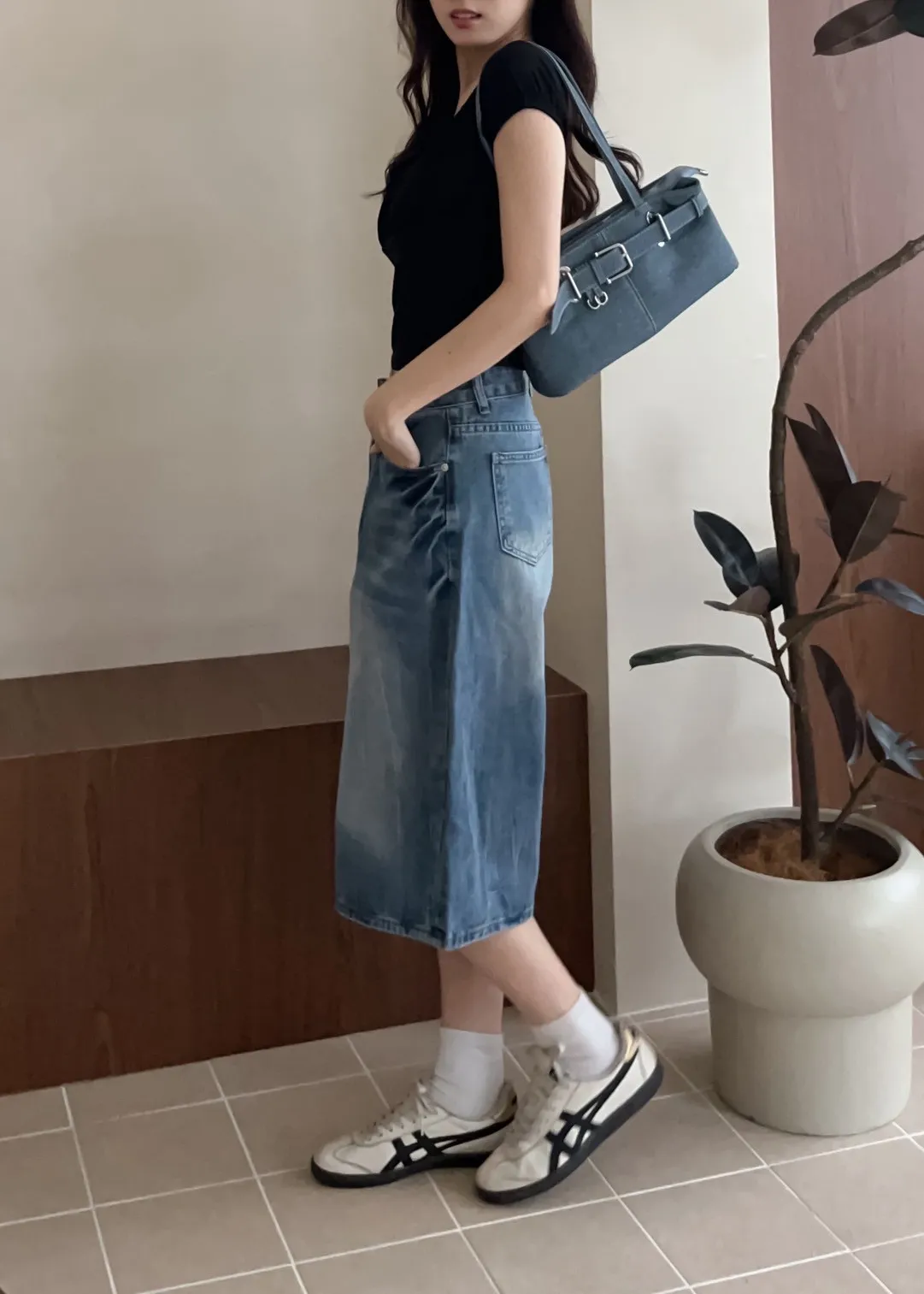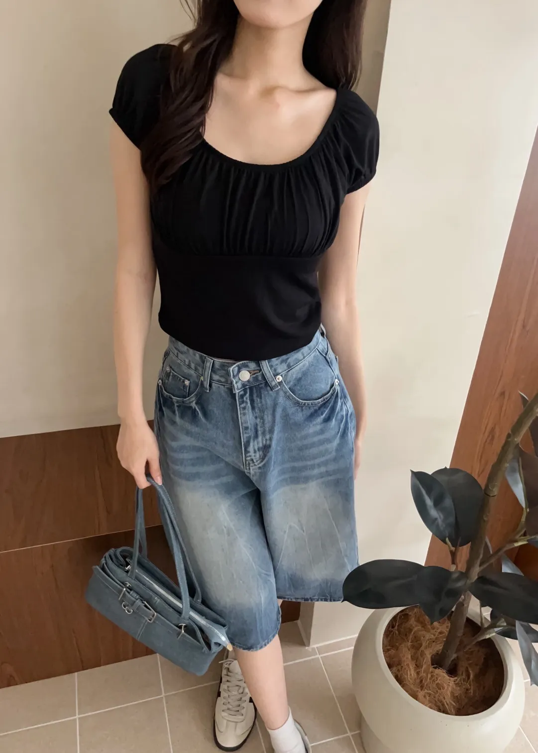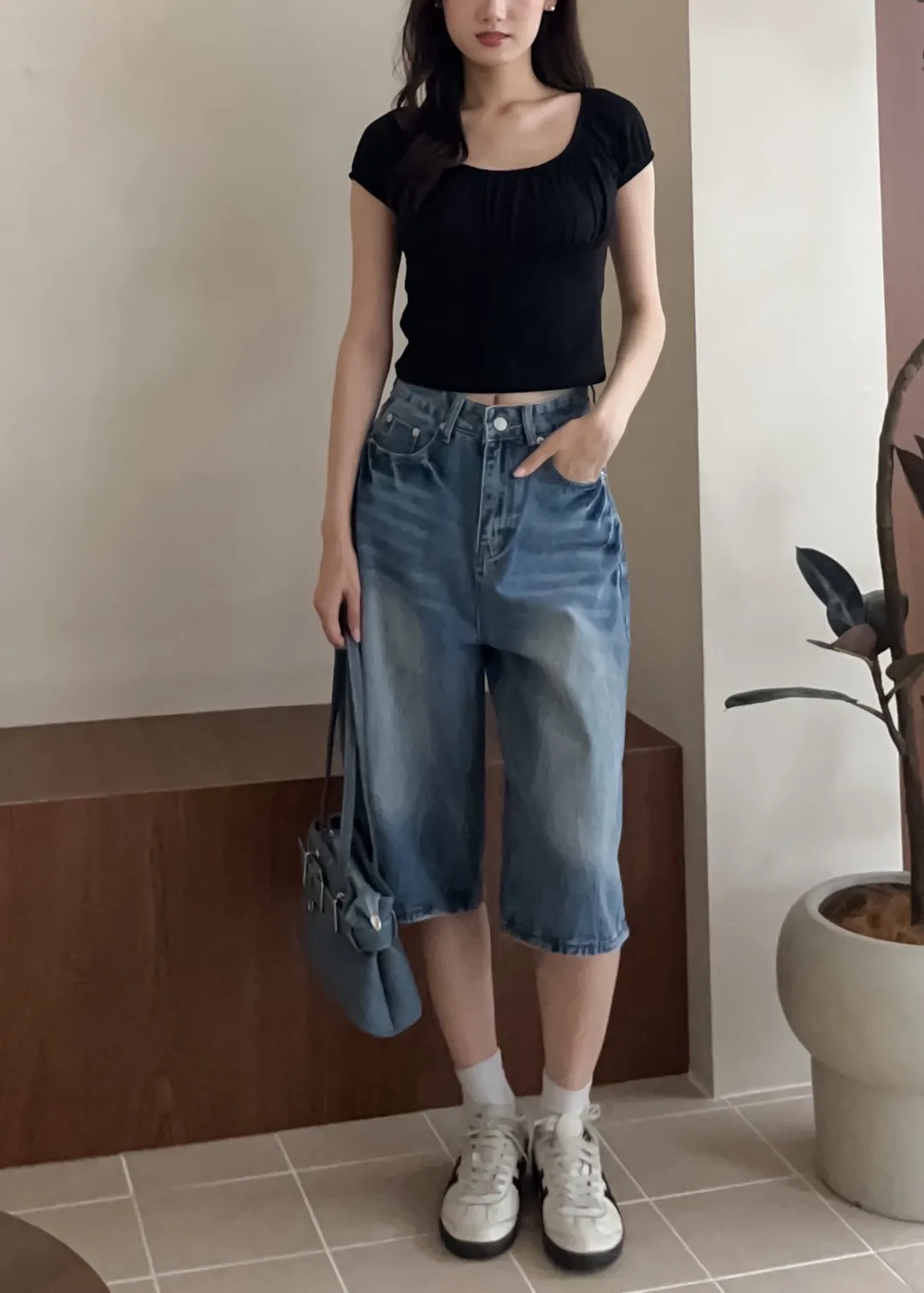 T0032蕩漾波紋七分牛仔褲