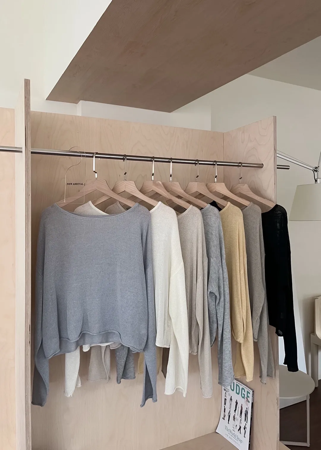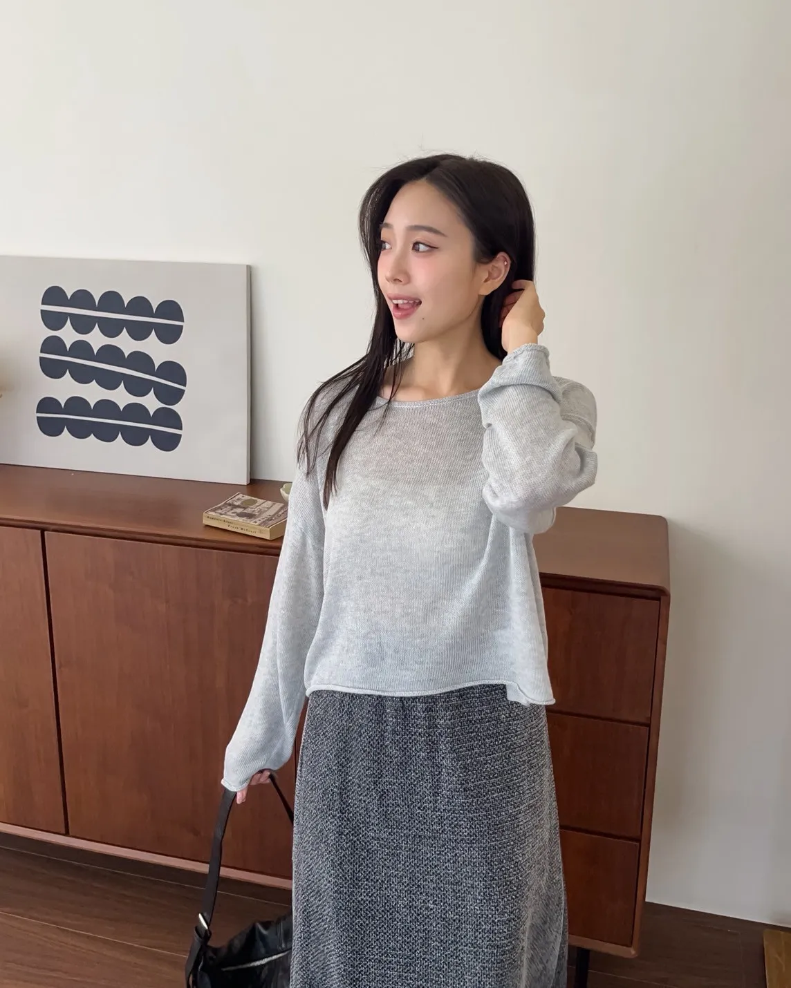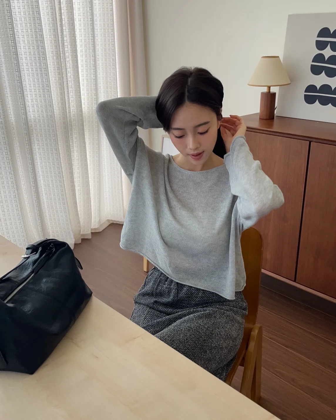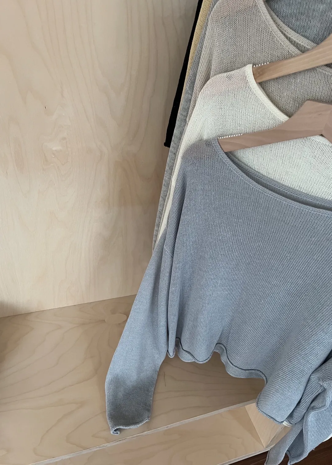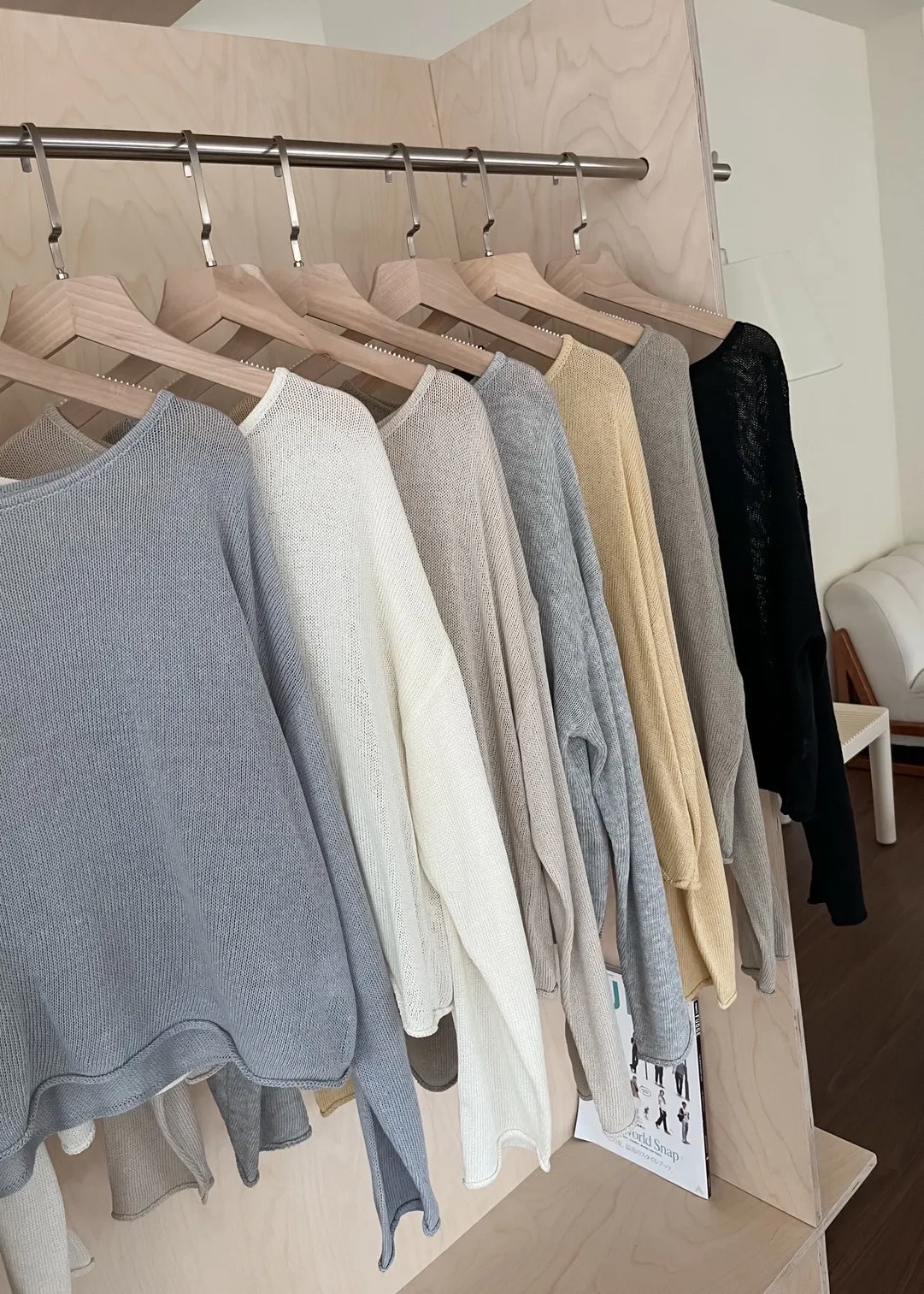 T0050(七色)淡色系下擺捲起針織衣(米白/杏/藍/綠/黃/灰/黑)(售完不補)
