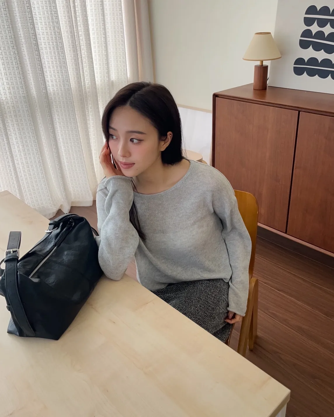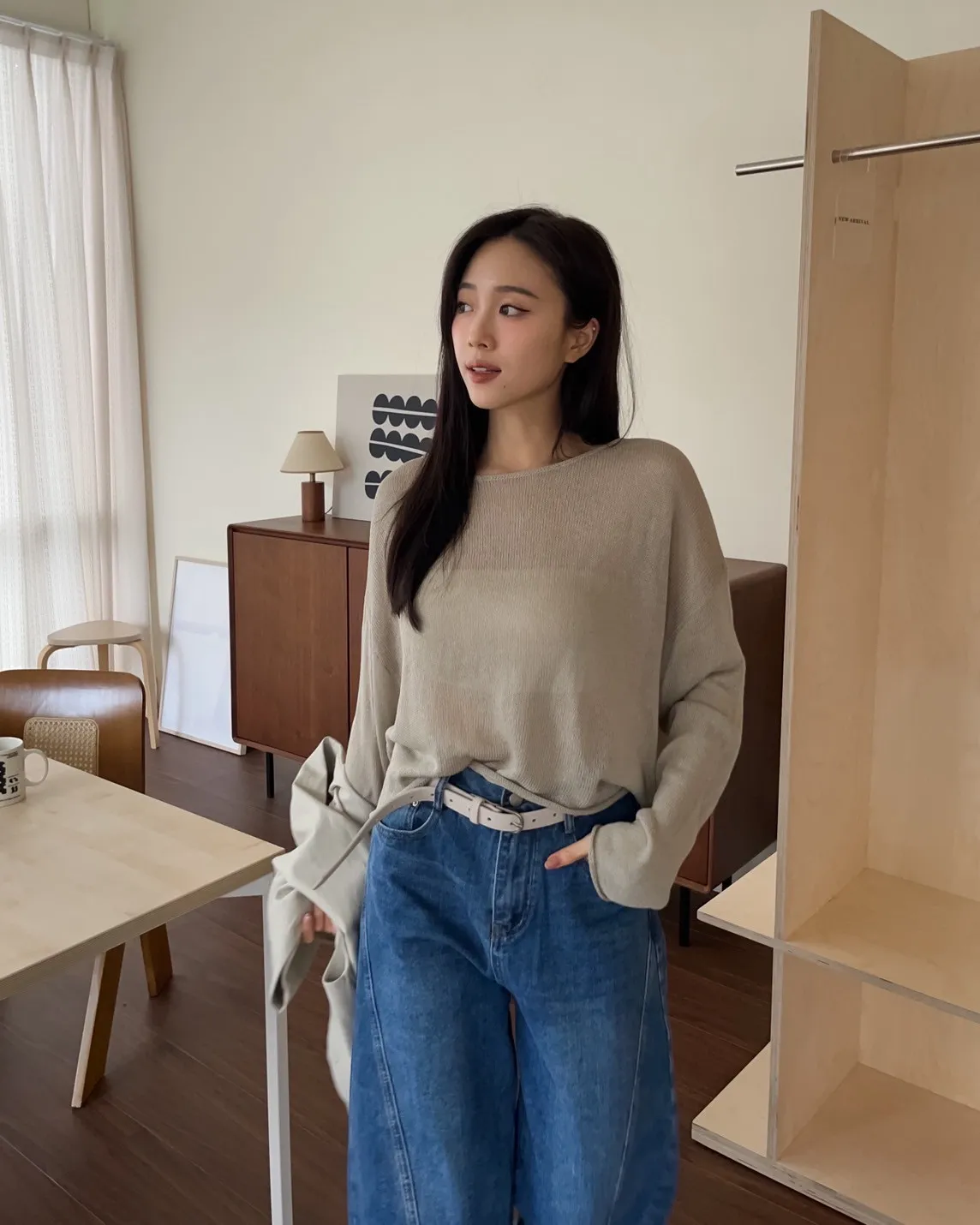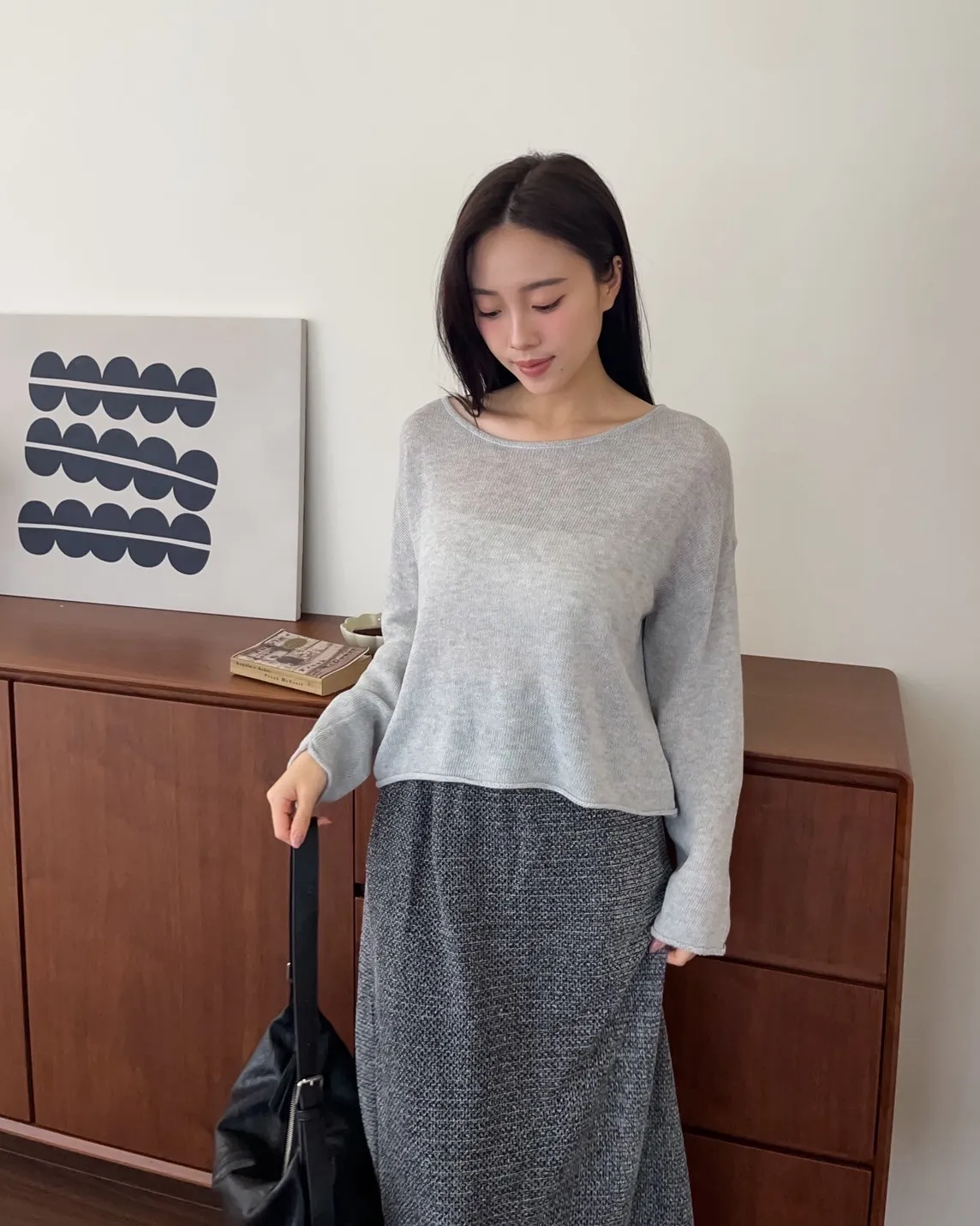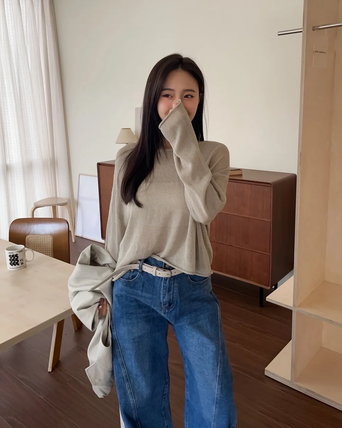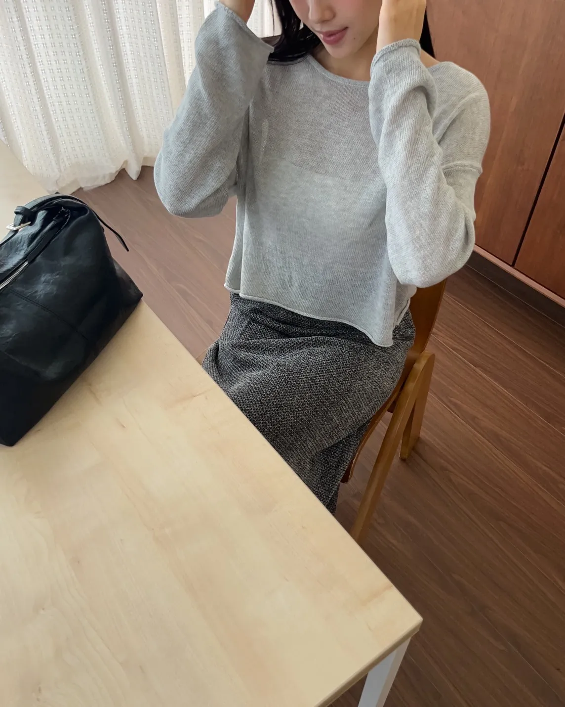 T0050(七色)淡色系下擺捲起針織衣(米白/杏/藍/綠/黃/灰/黑)(售完不補)