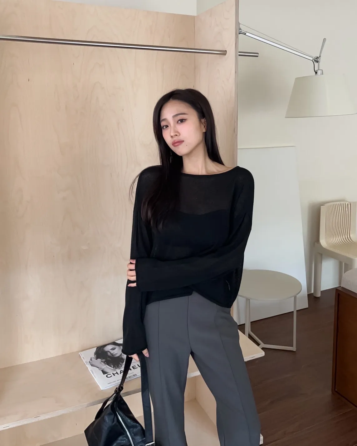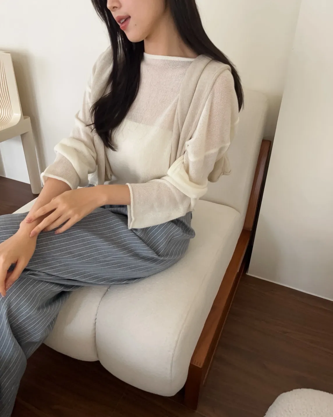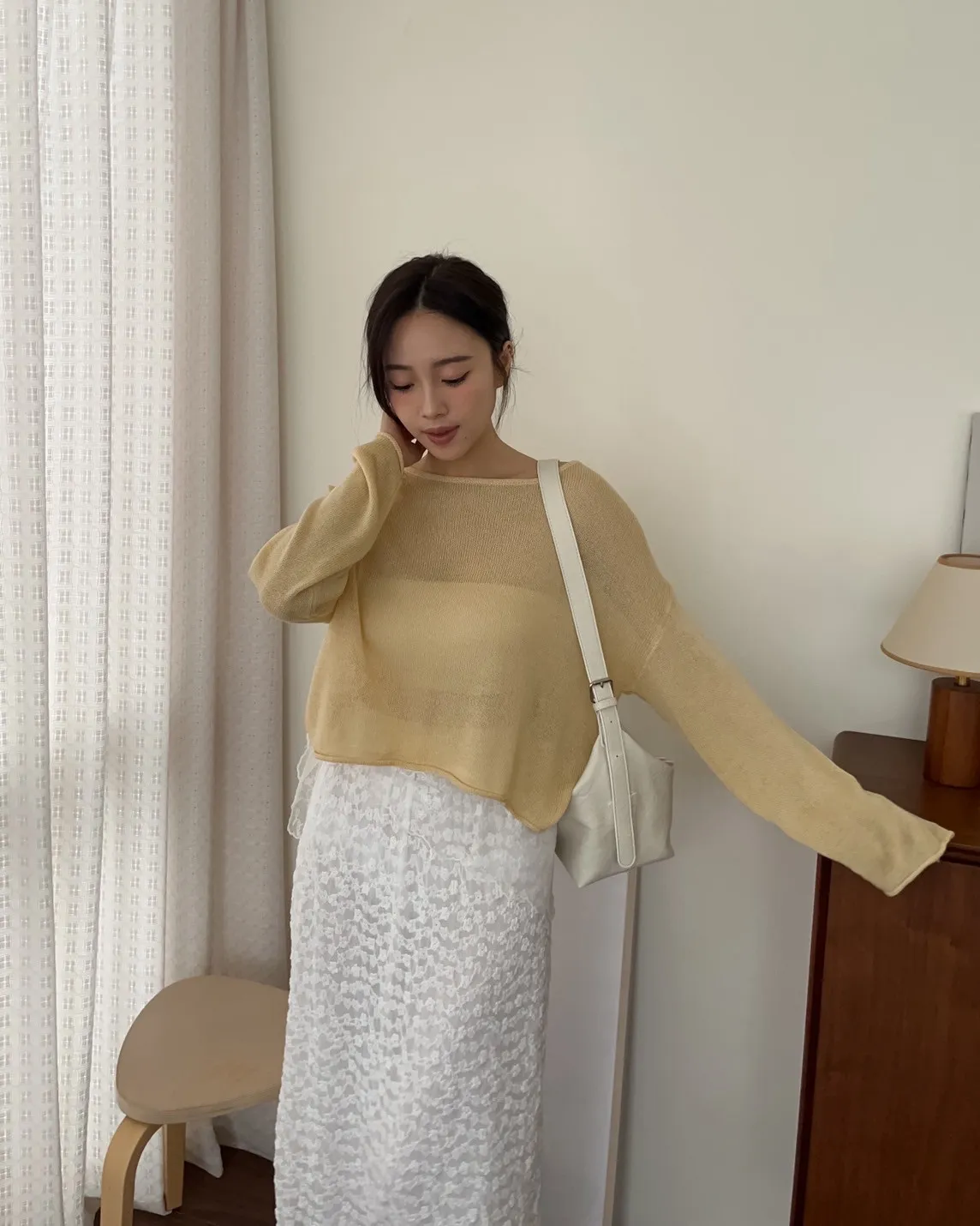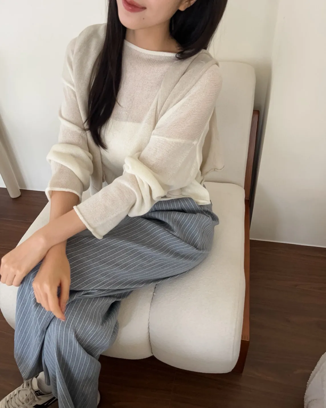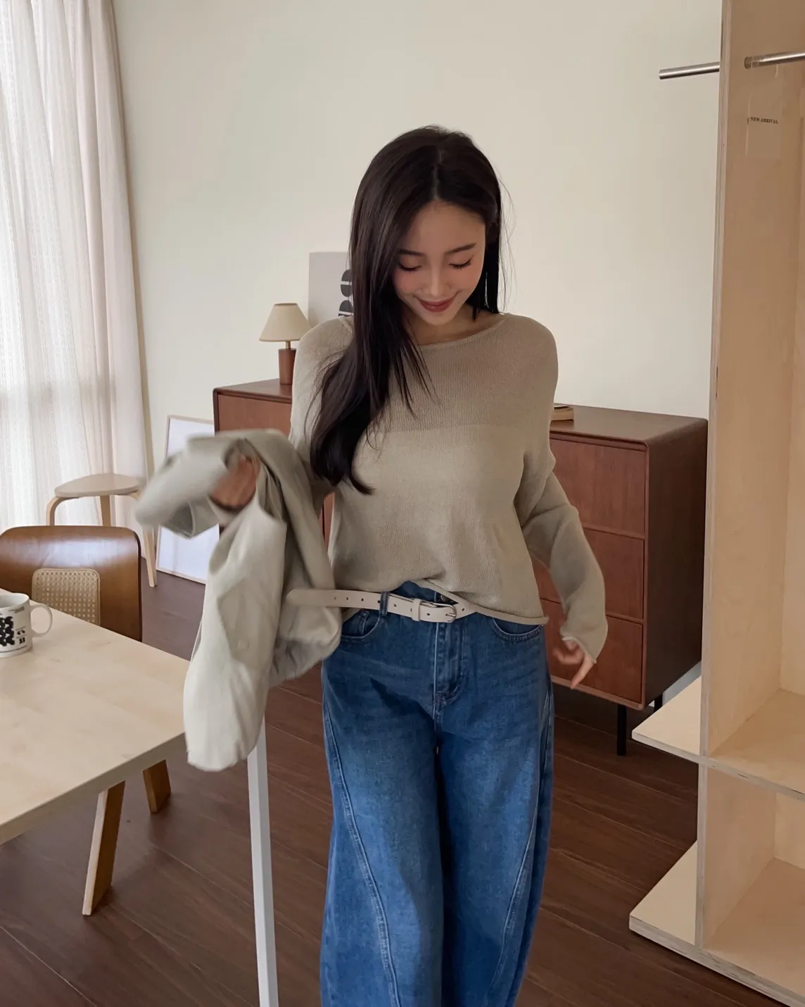 T0050(七色)淡色系下擺捲起針織衣(米白/杏/藍/綠/黃/灰/黑)(售完不補)