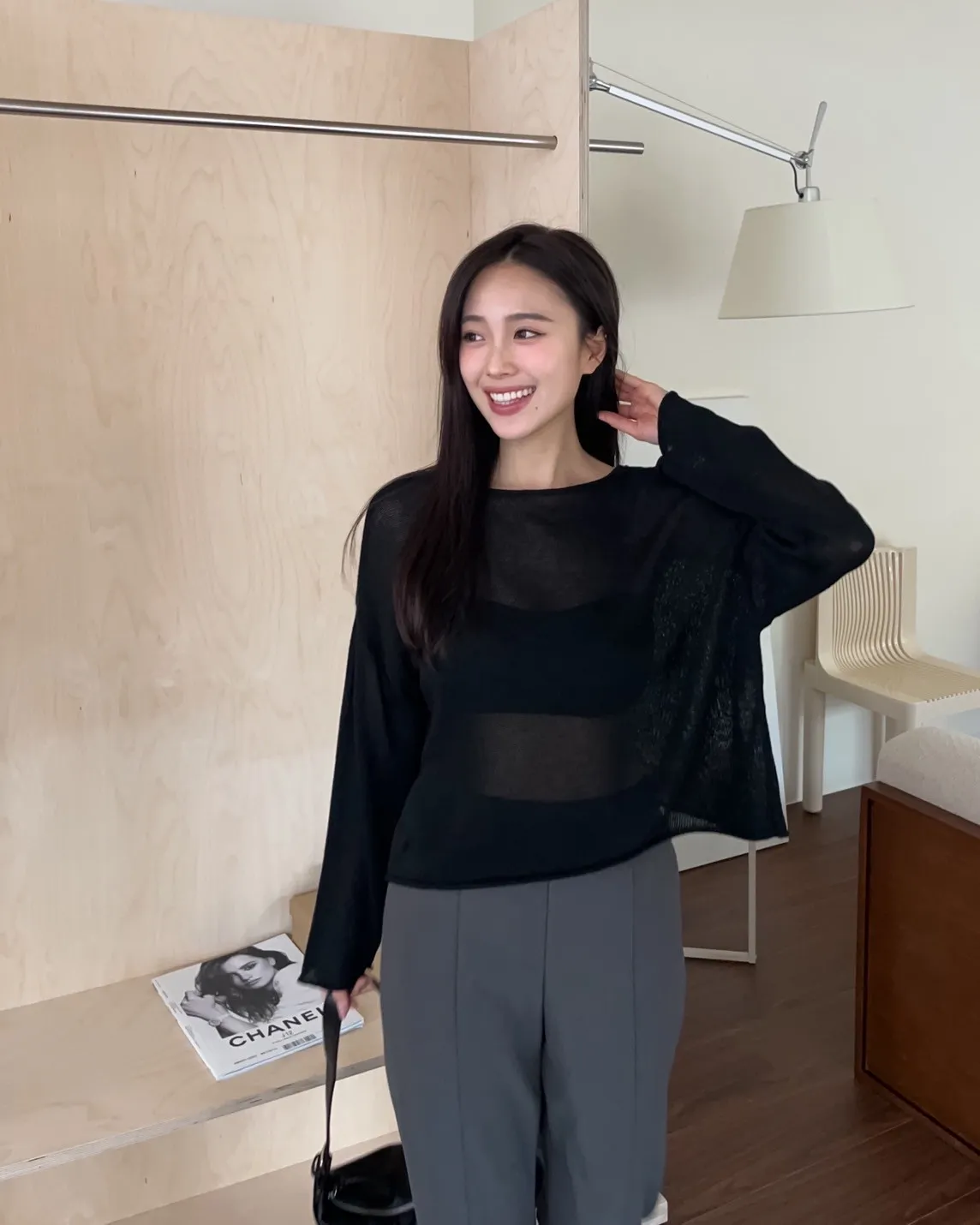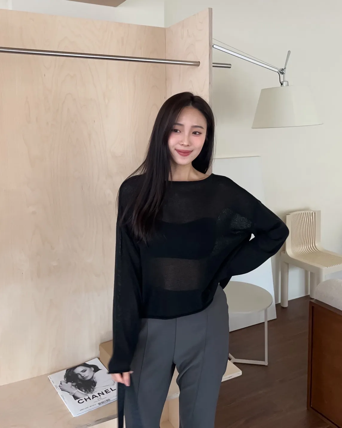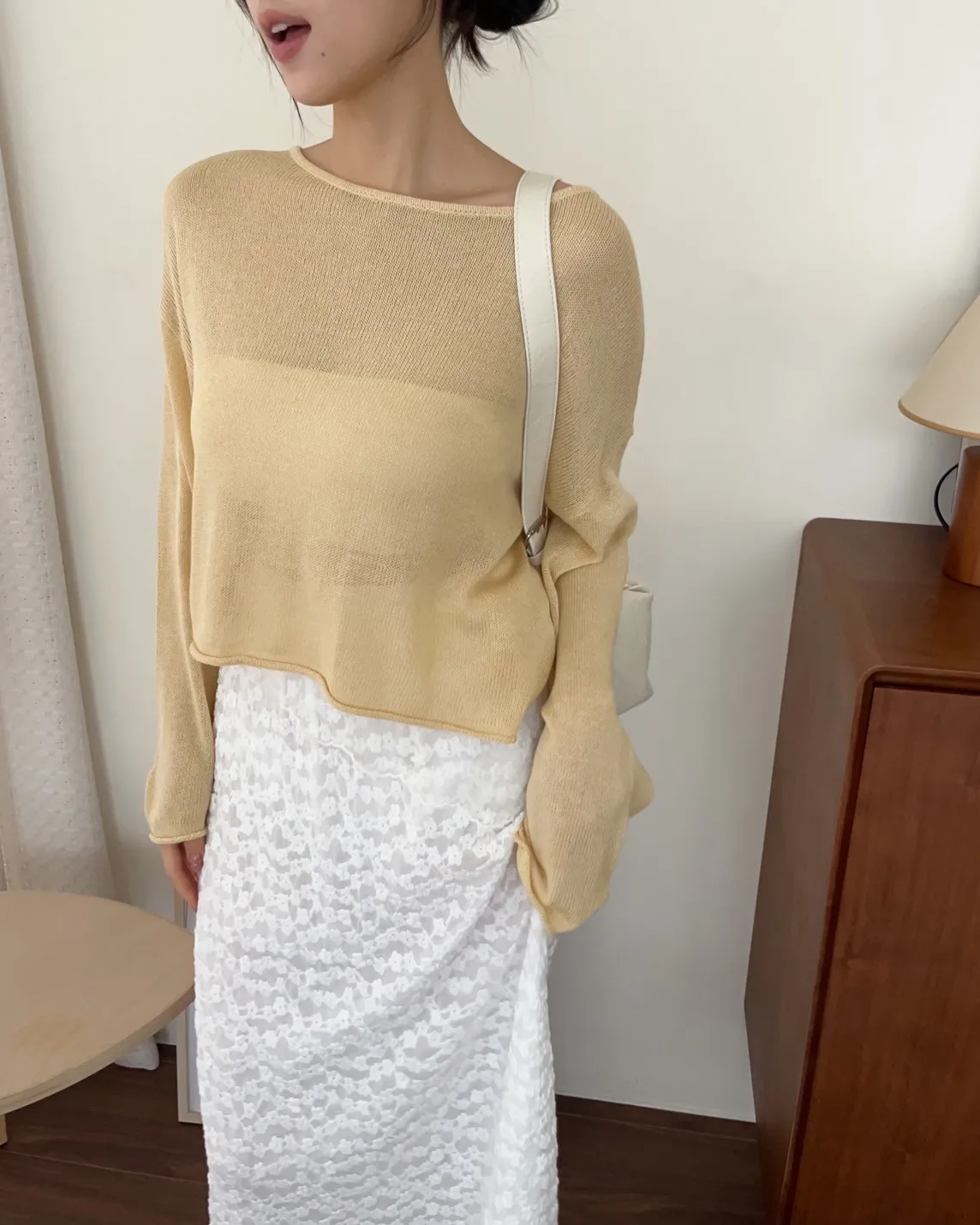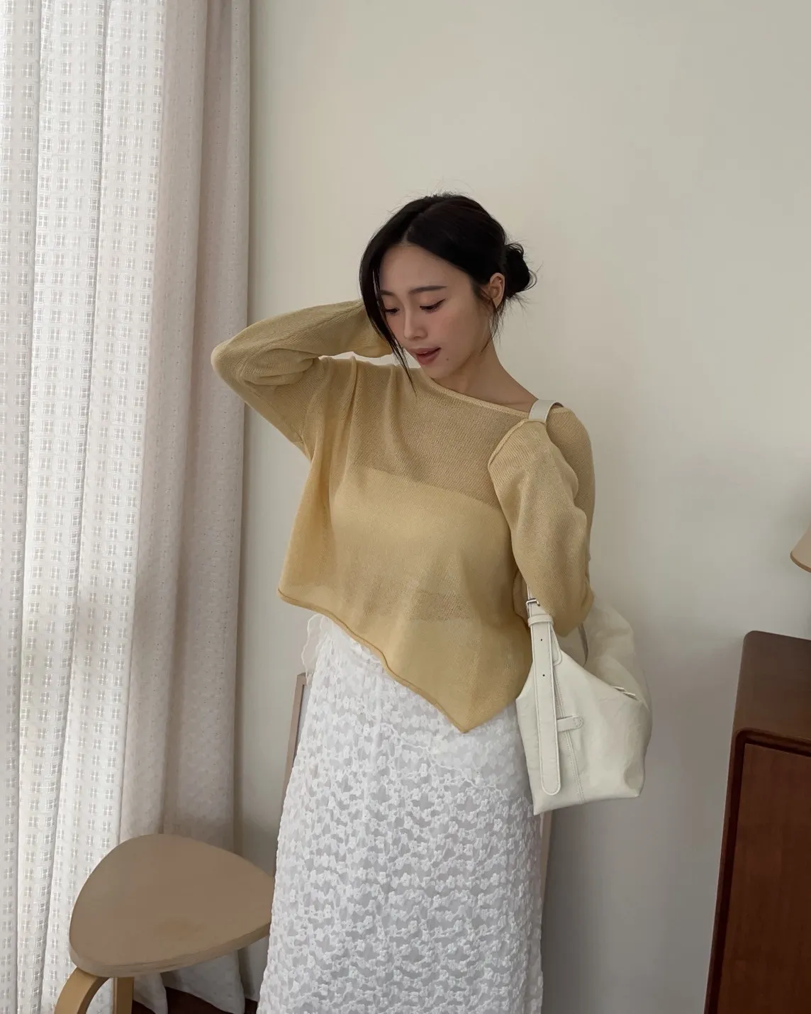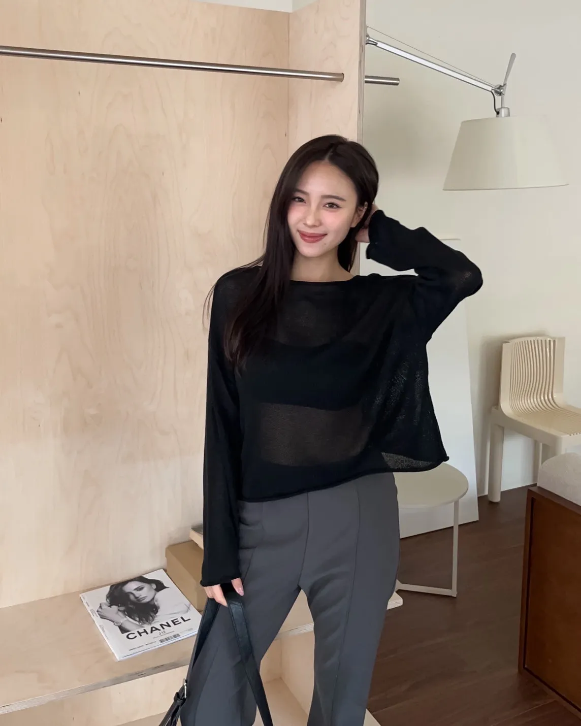 T0050(七色)淡色系下擺捲起針織衣(米白/杏/藍/綠/黃/灰/黑)(售完不補)