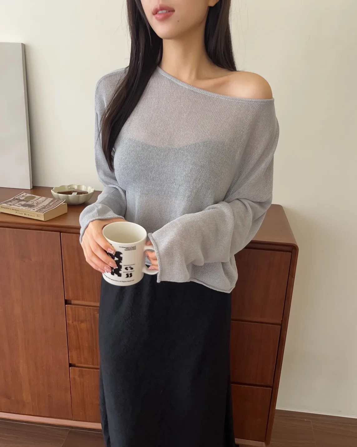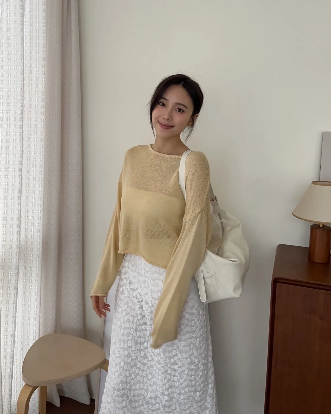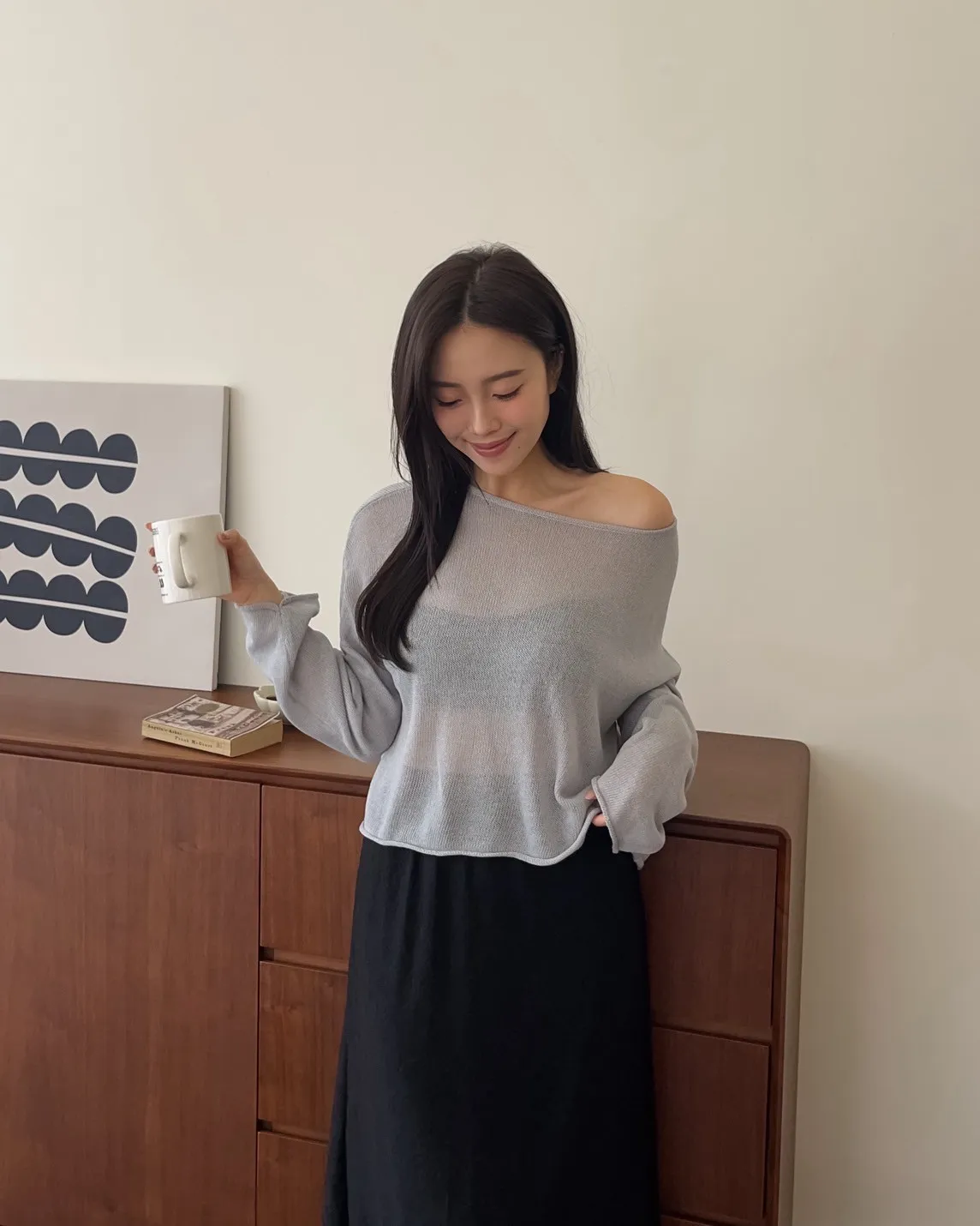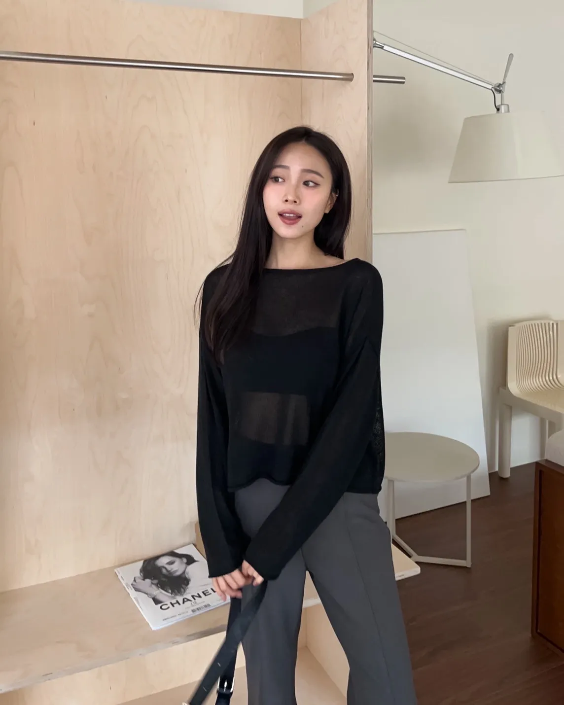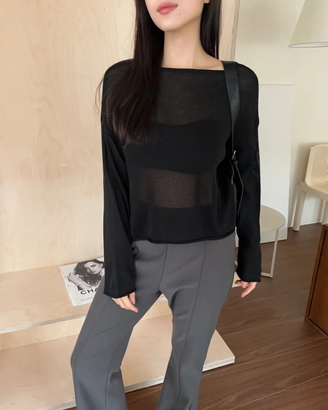 T0050(七色)淡色系下擺捲起針織衣(米白/杏/藍/綠/黃/灰/黑)(售完不補)