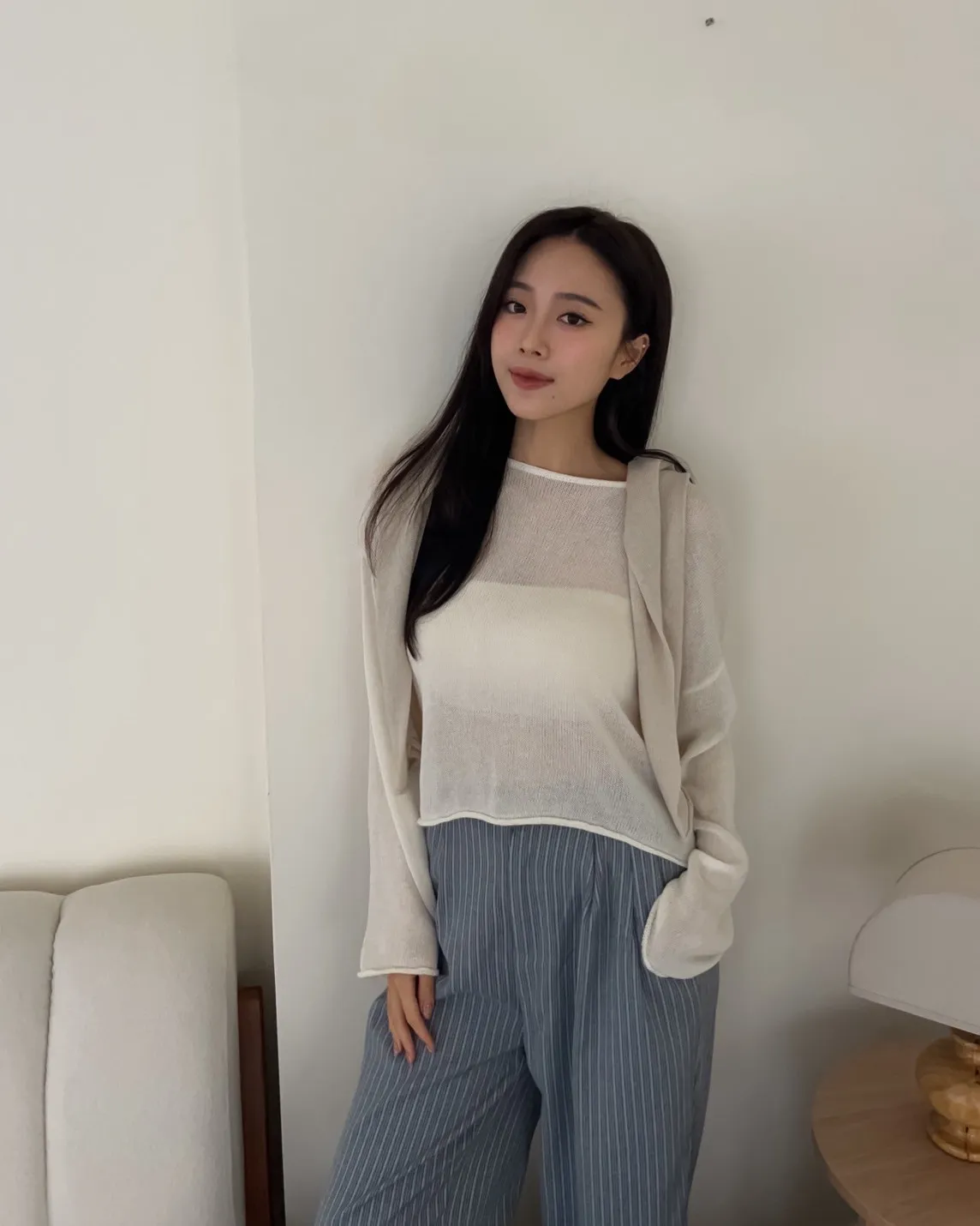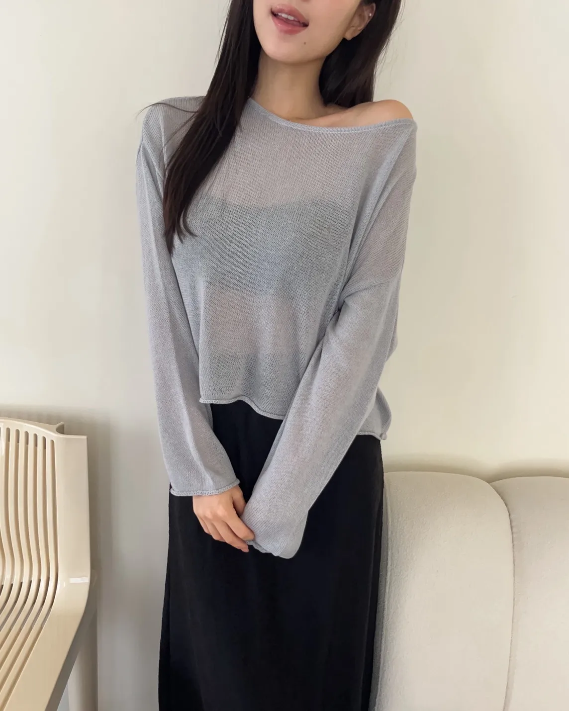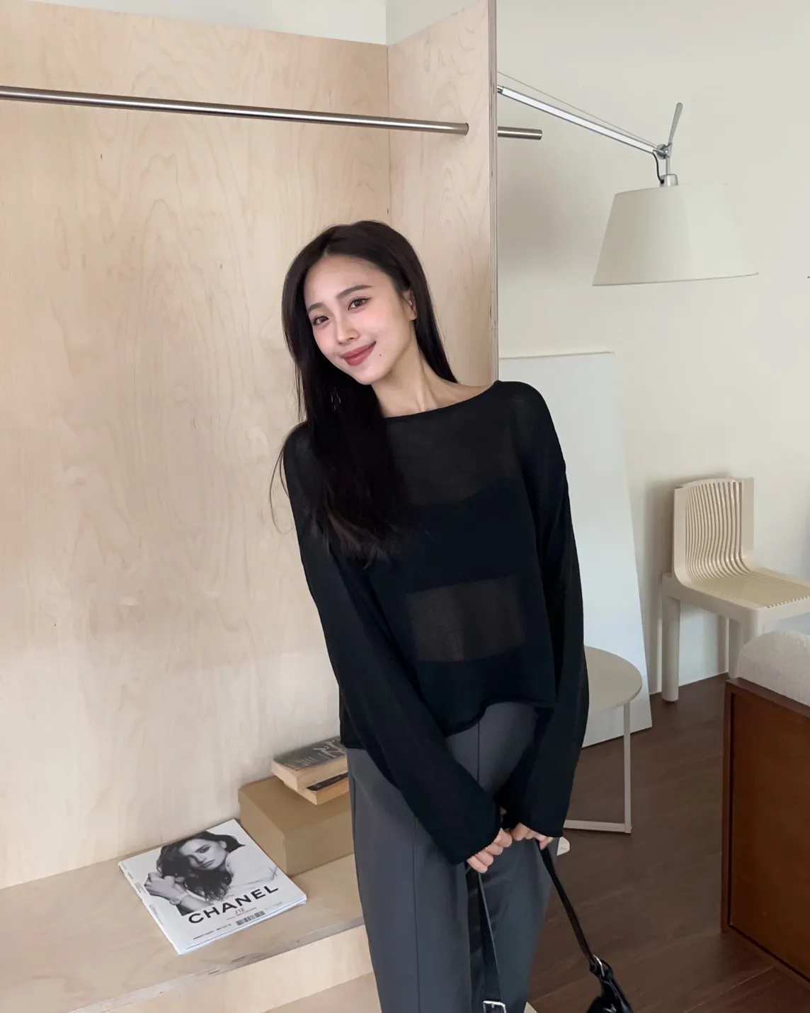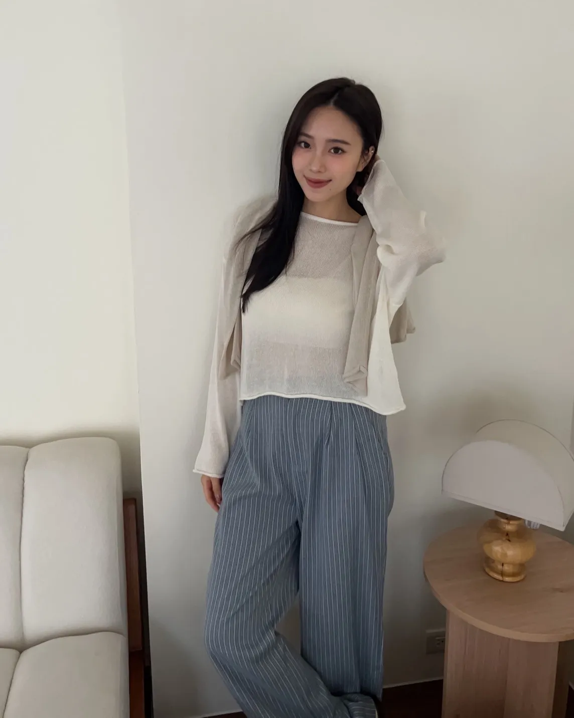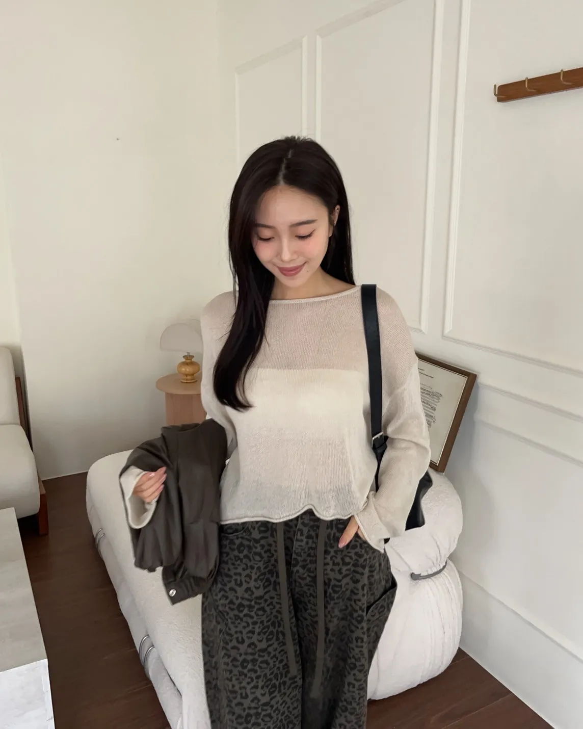 T0050(七色)淡色系下擺捲起針織衣(米白/杏/藍/綠/黃/灰/黑)(售完不補)