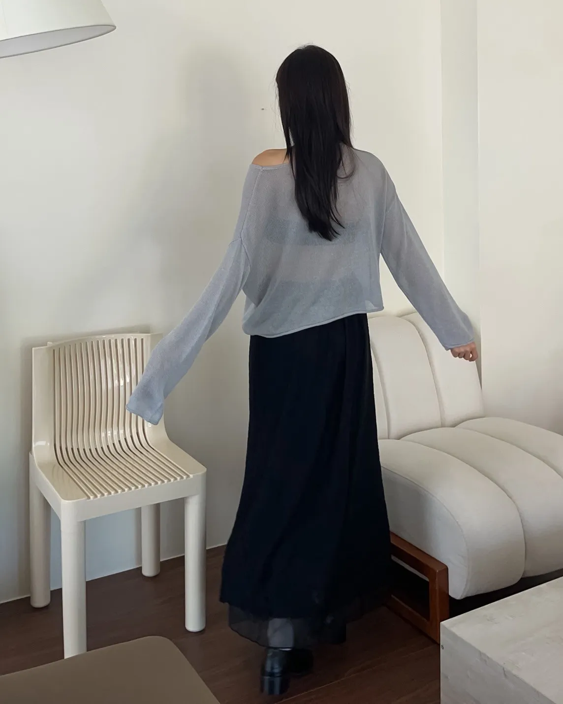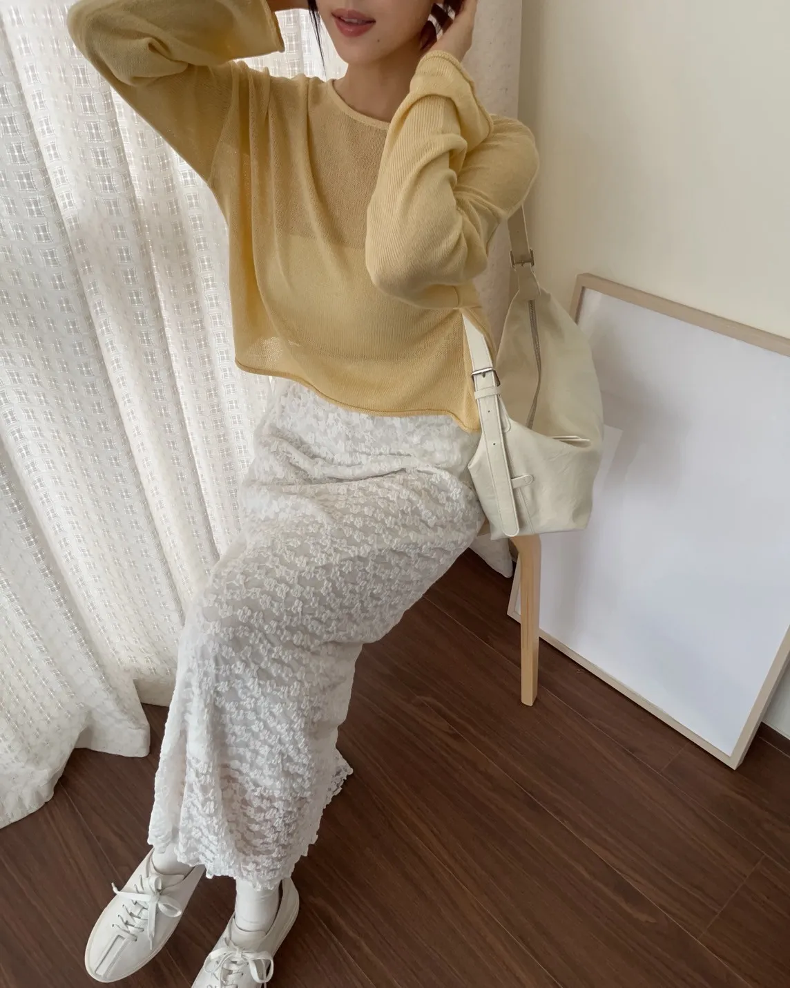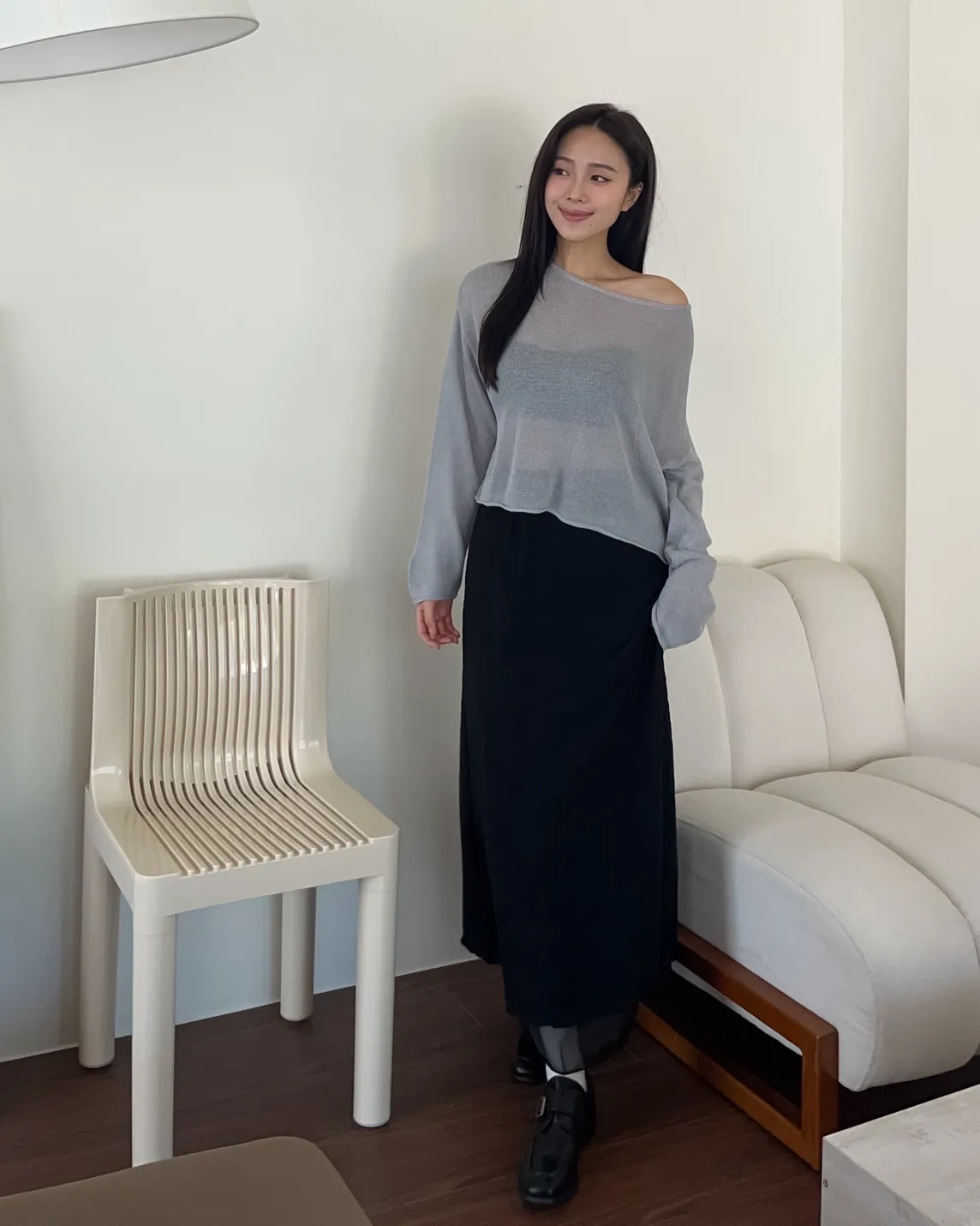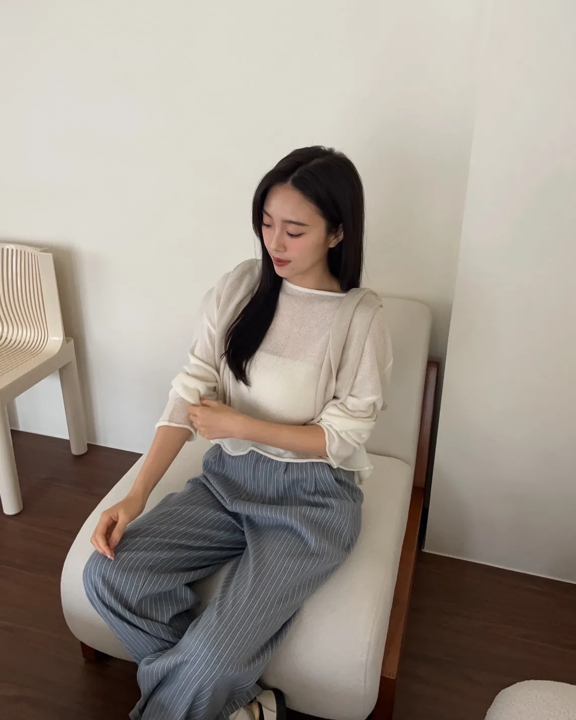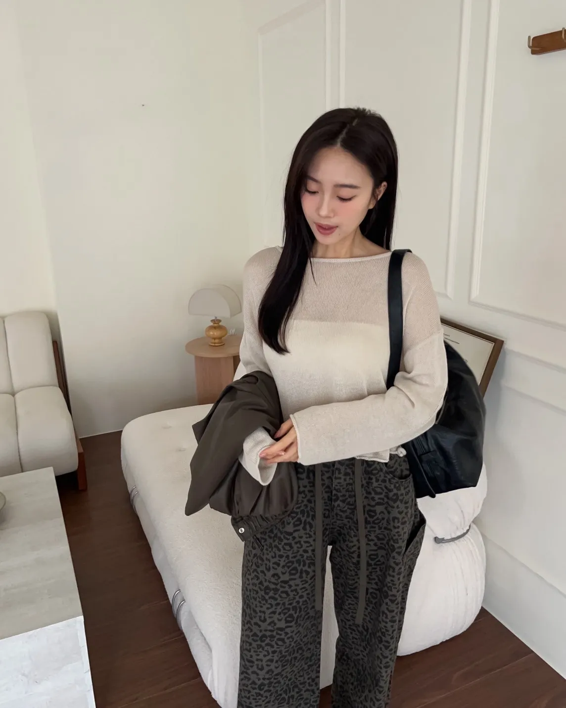 T0050(七色)淡色系下擺捲起針織衣(米白/杏/藍/綠/黃/灰/黑)(售完不補)