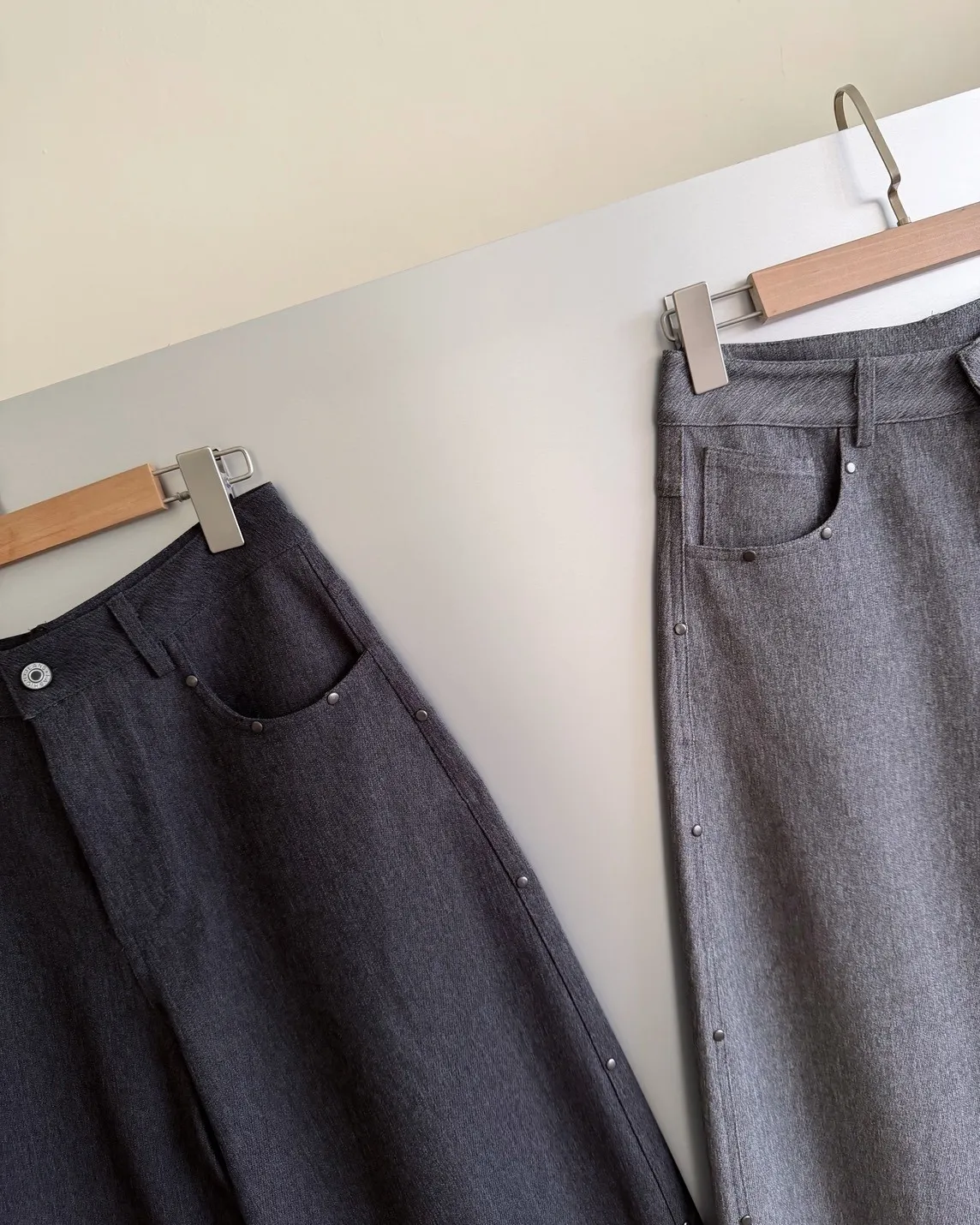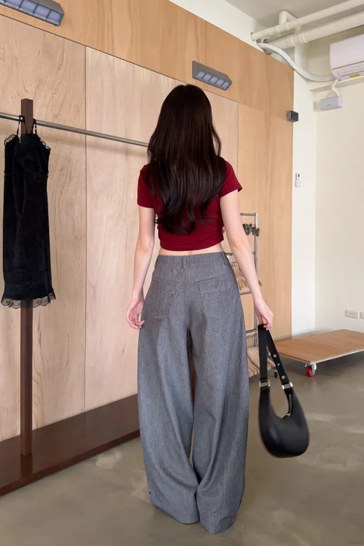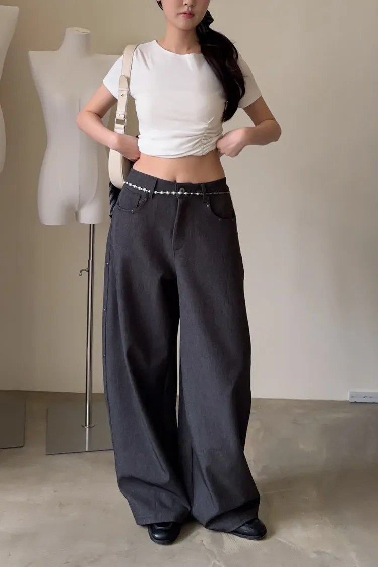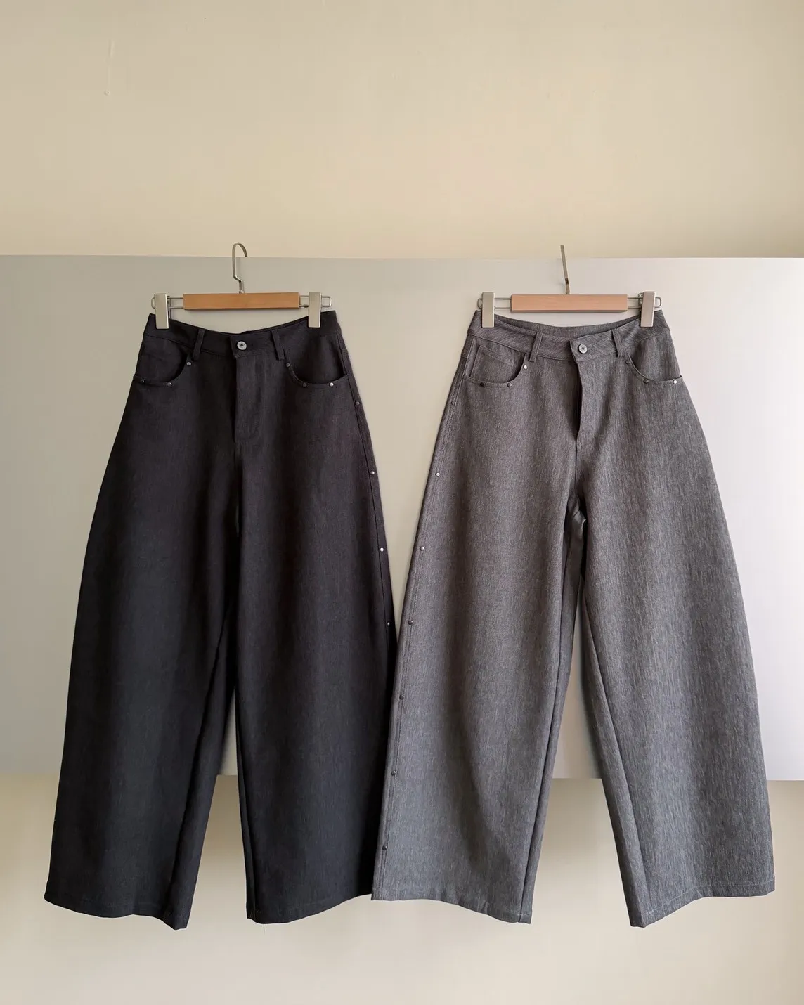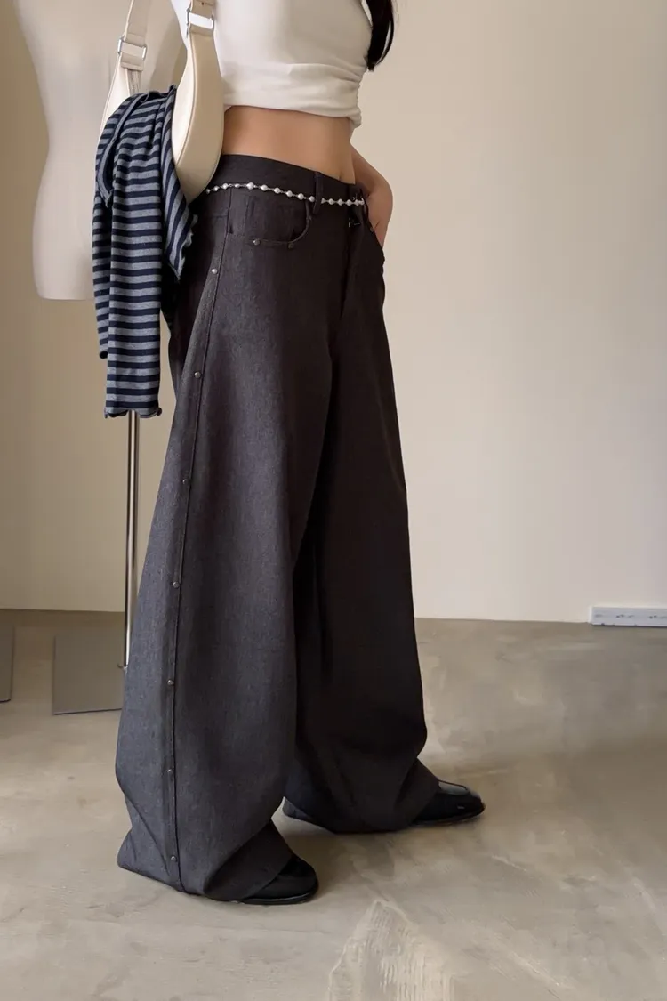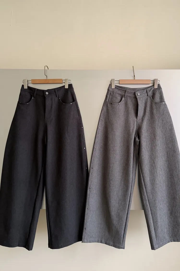 B0001圓釘裝飾刷色西裝寬褲(淺灰/深灰)
