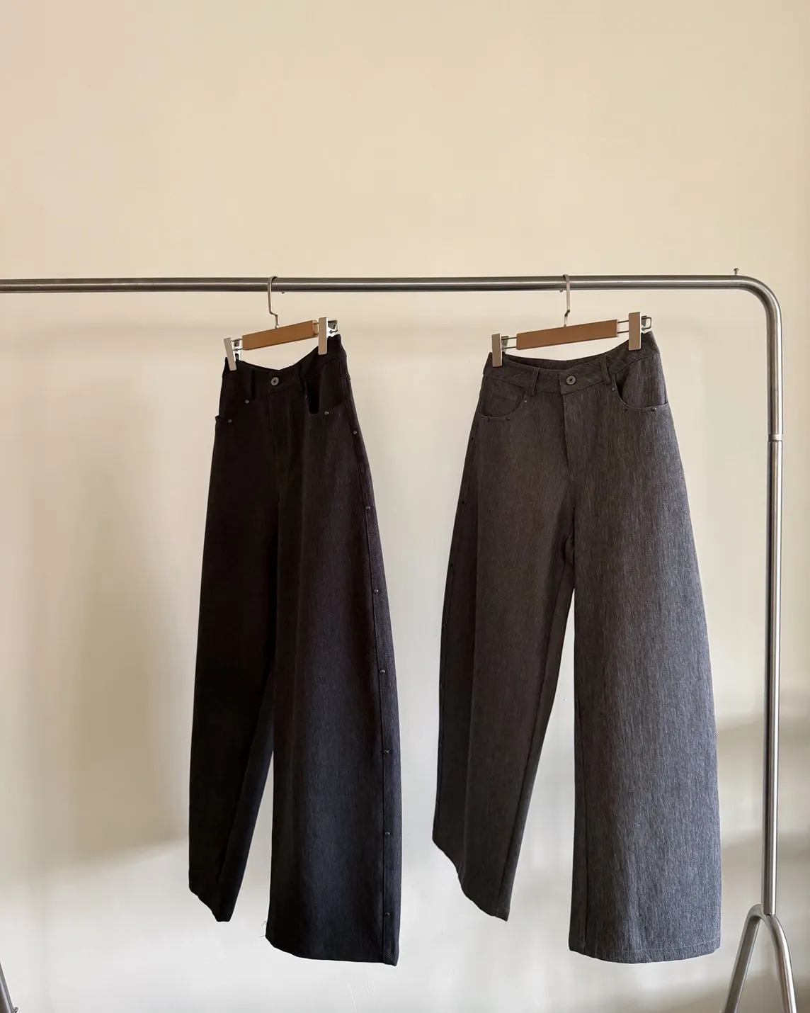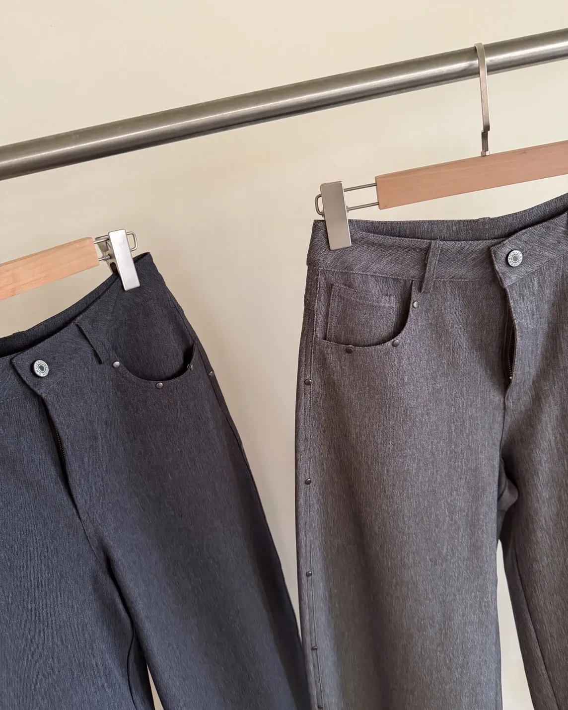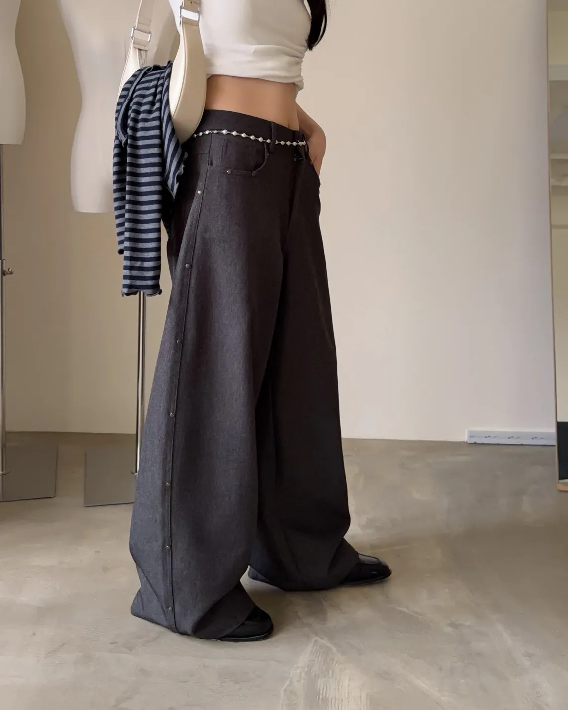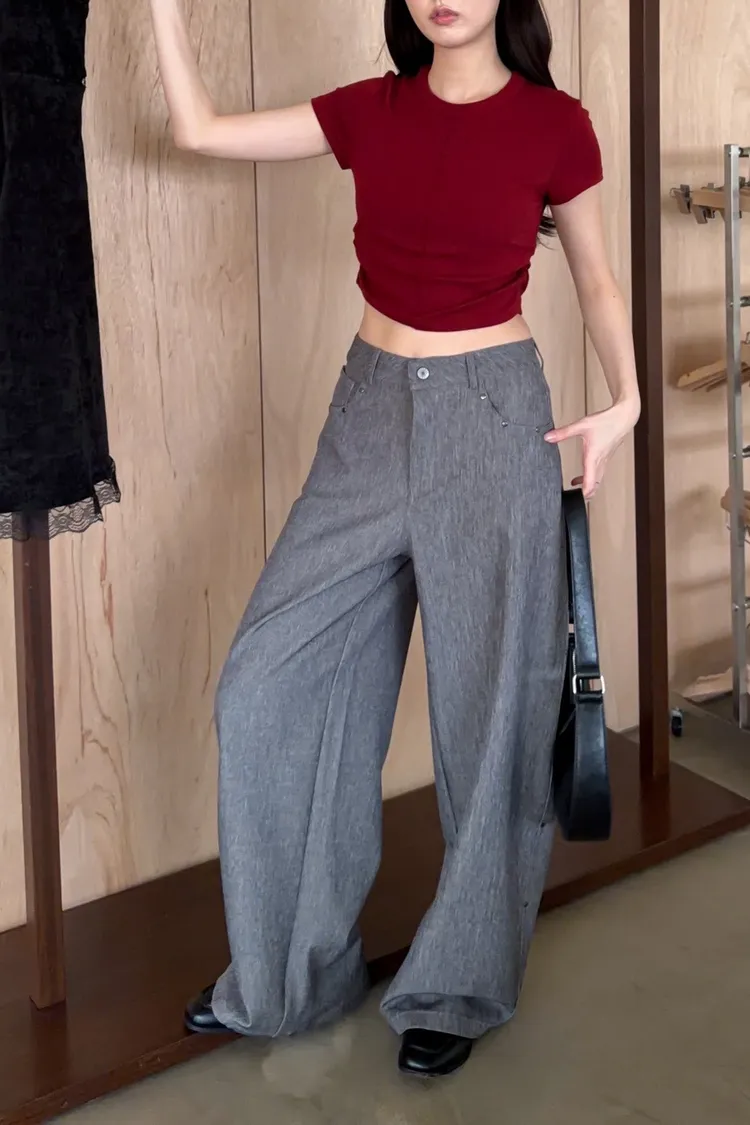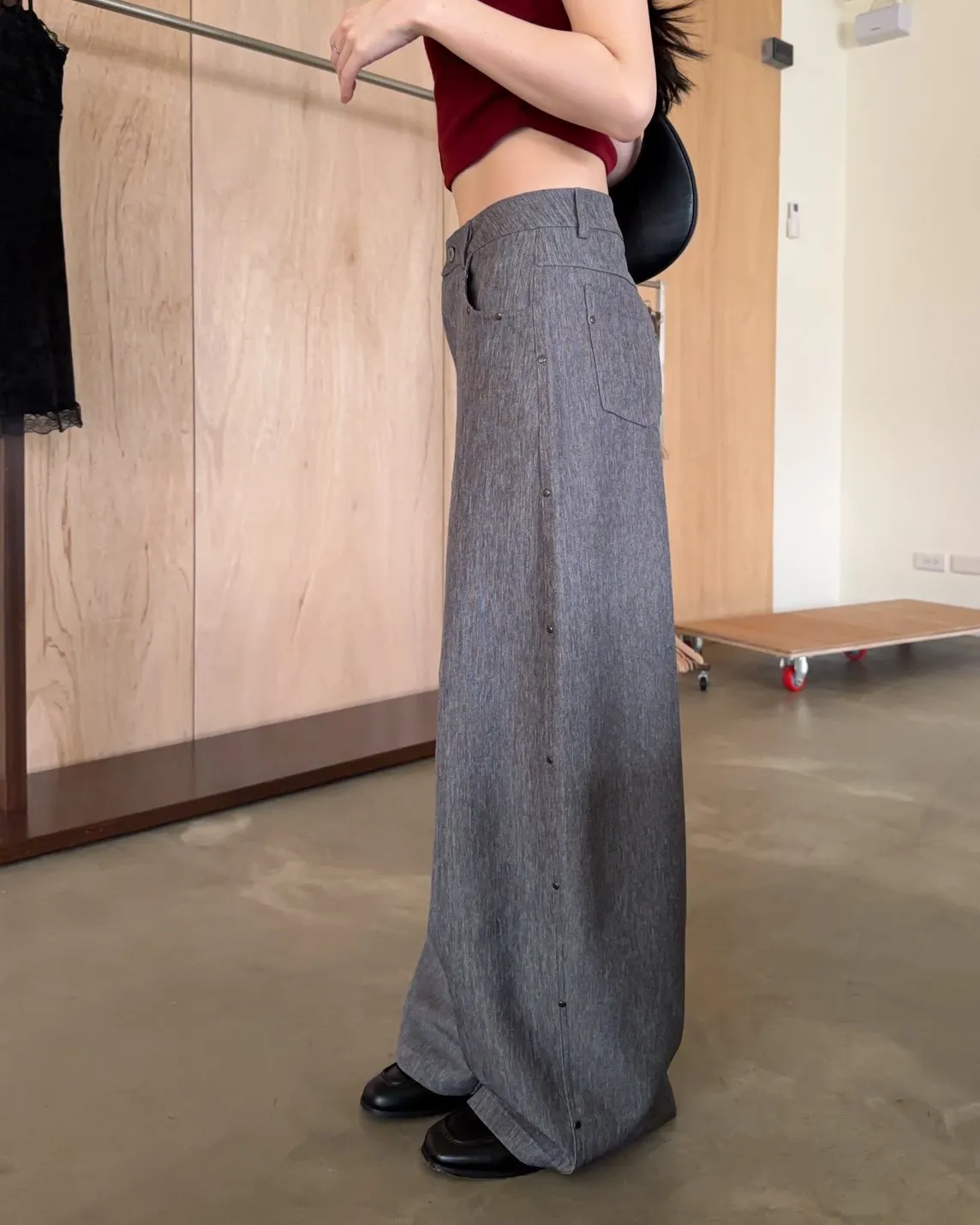 B0001圓釘裝飾刷色西裝寬褲(淺灰/深灰)
