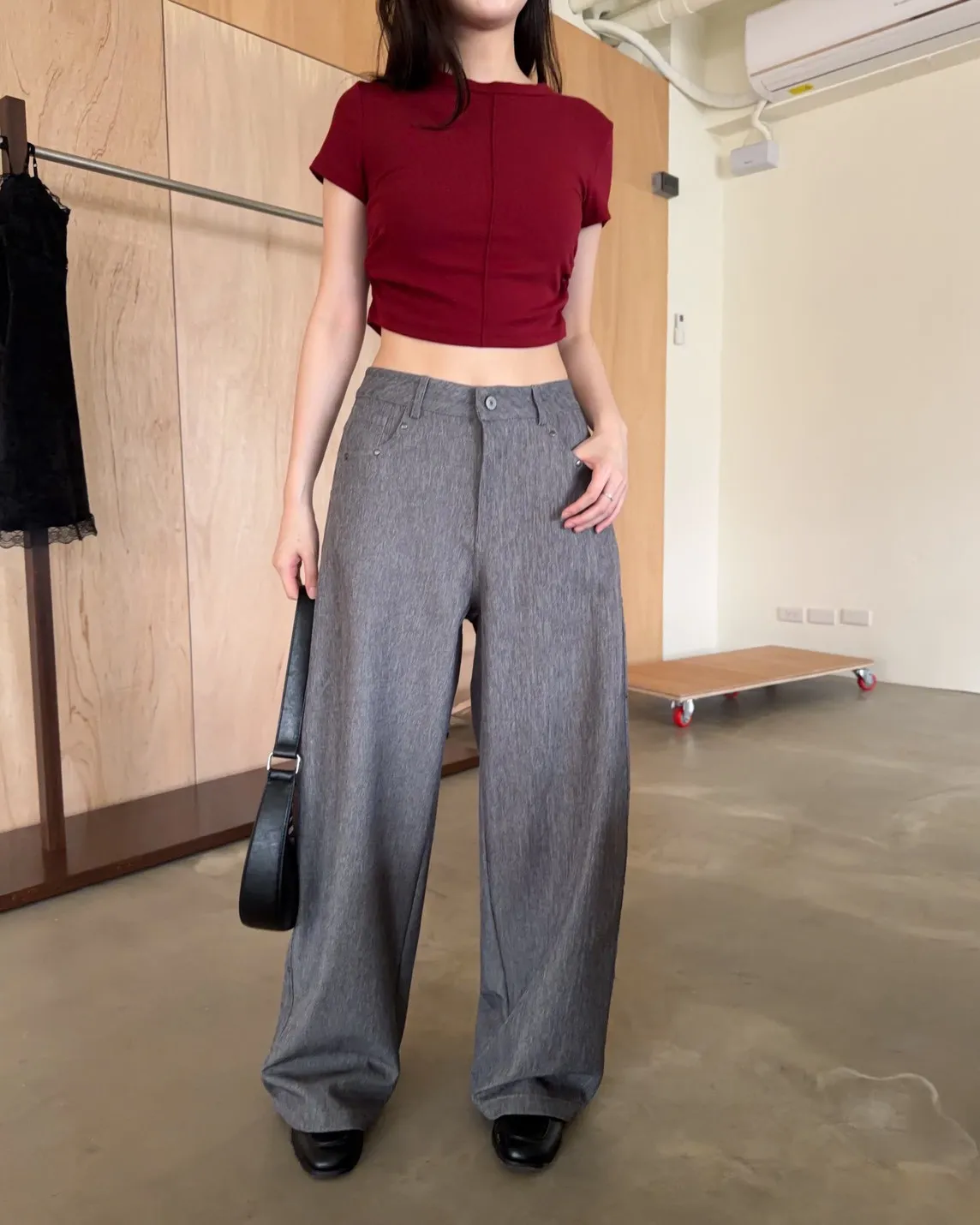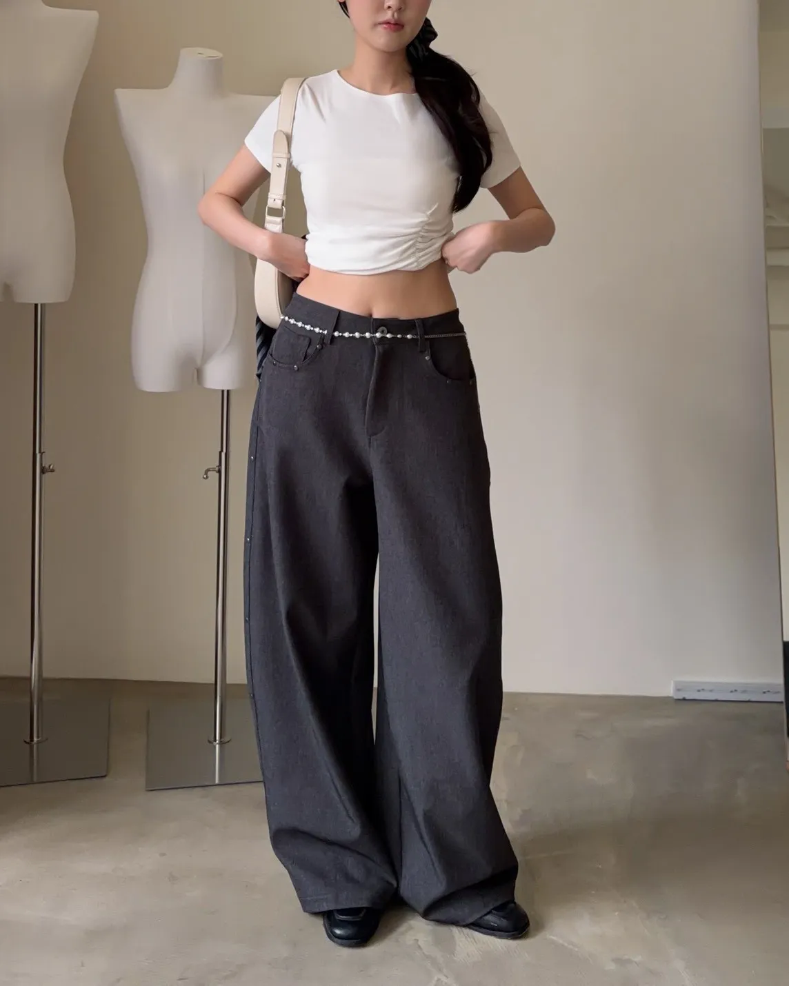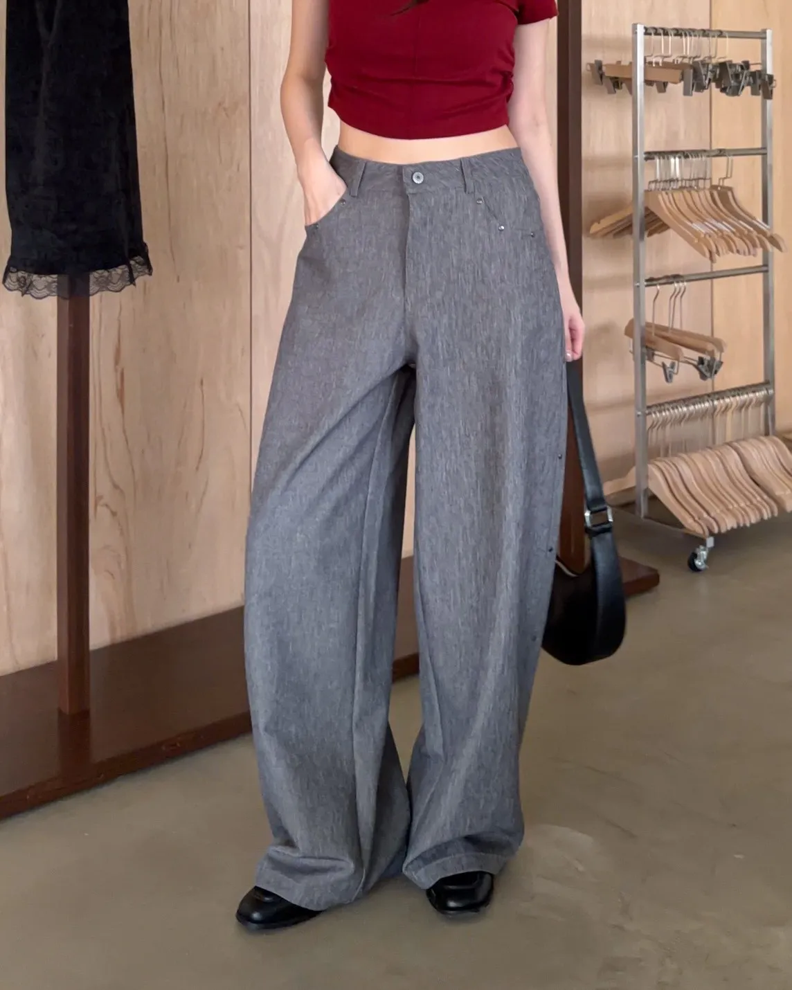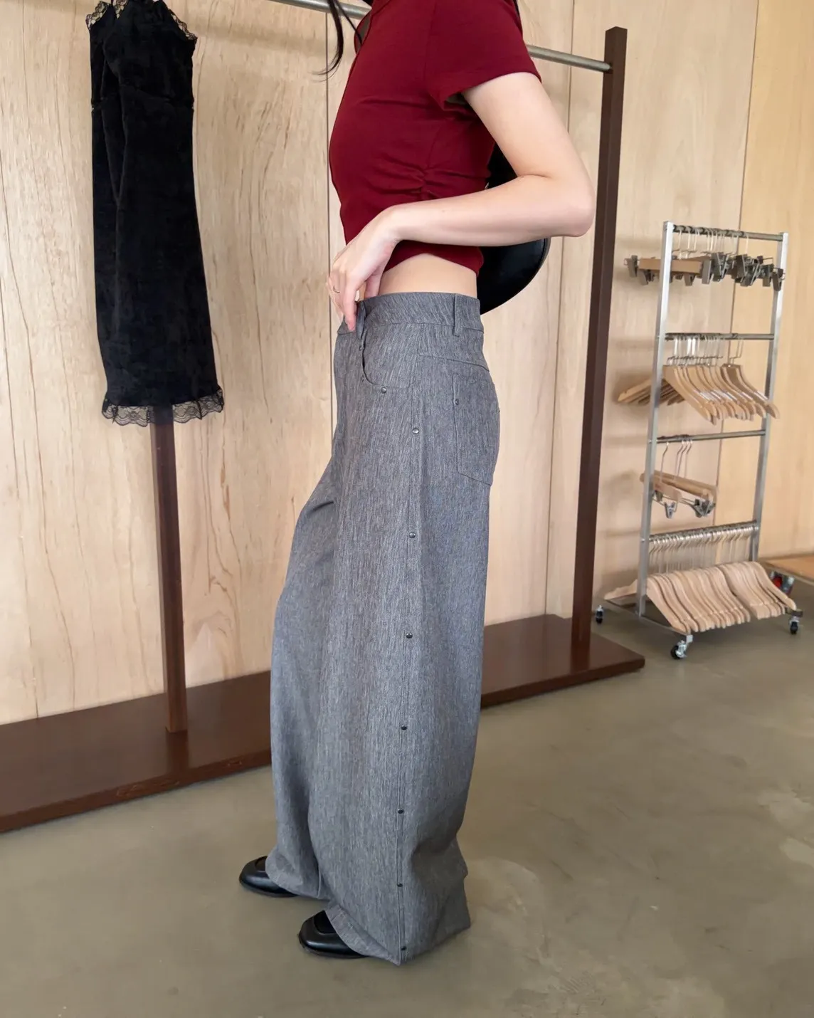 B0001圓釘裝飾刷色西裝寬褲(淺灰/深灰)