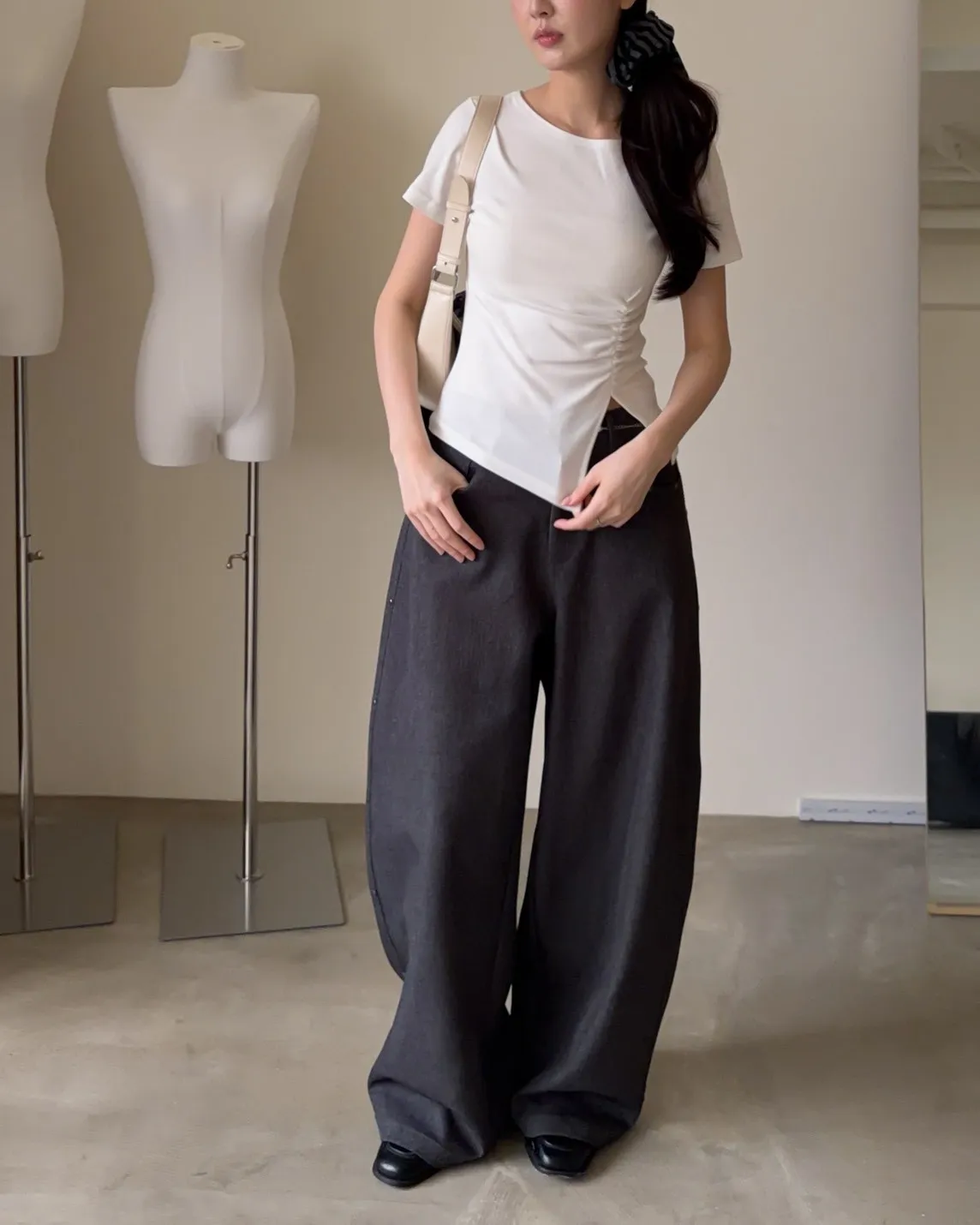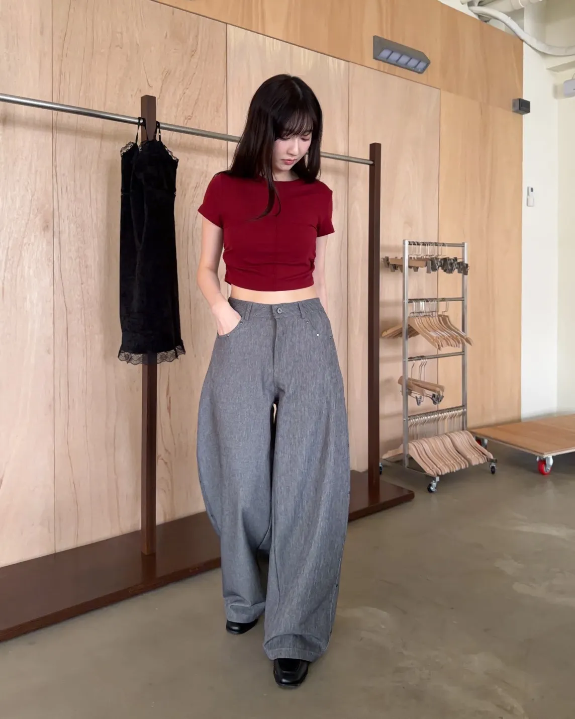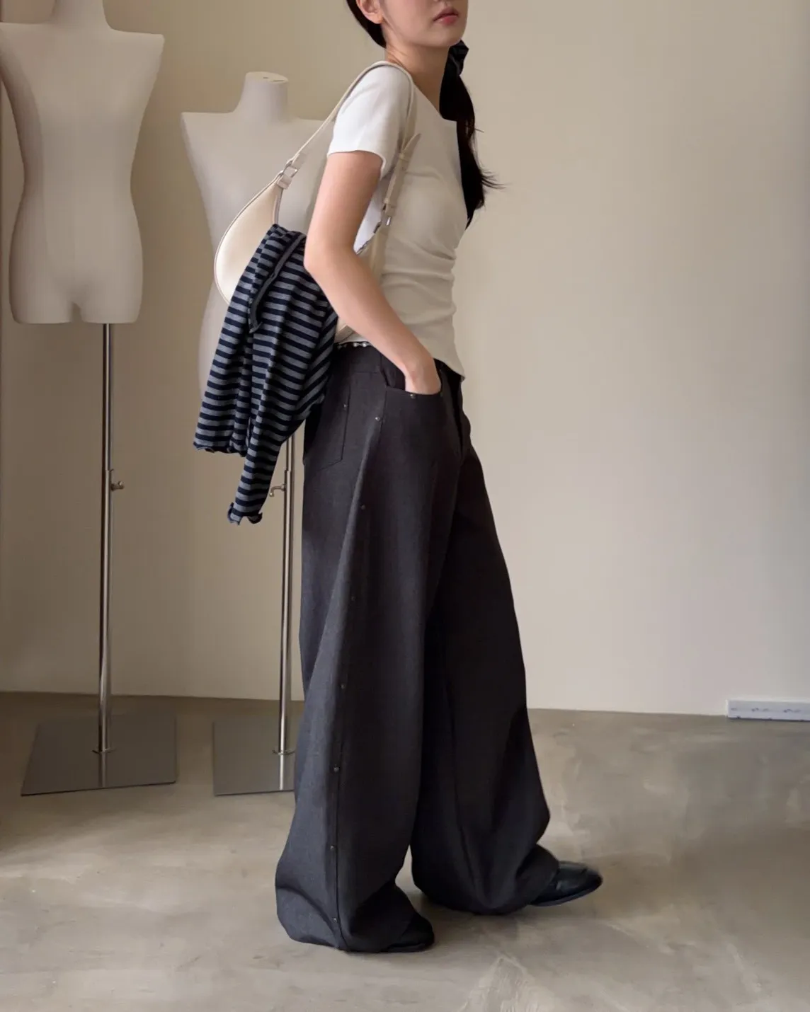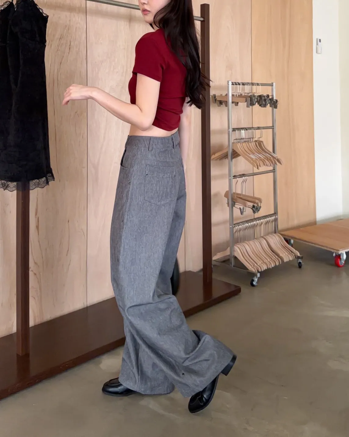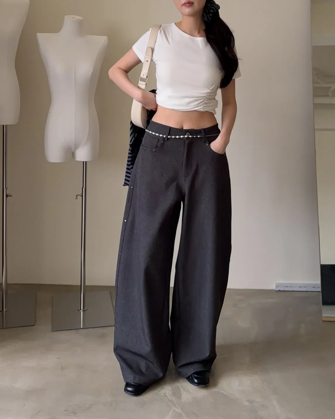 B0001圓釘裝飾刷色西裝寬褲(淺灰/深灰)