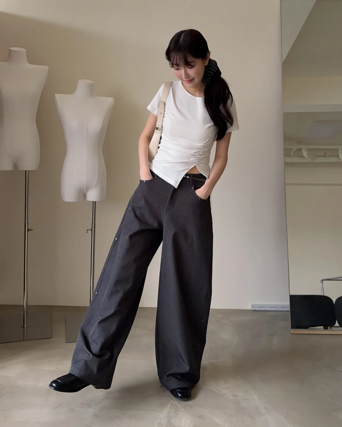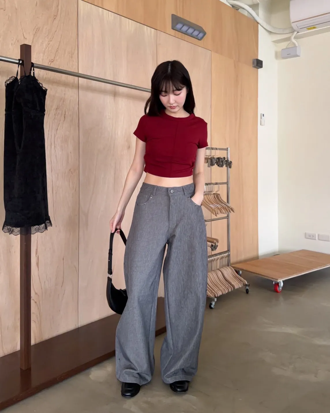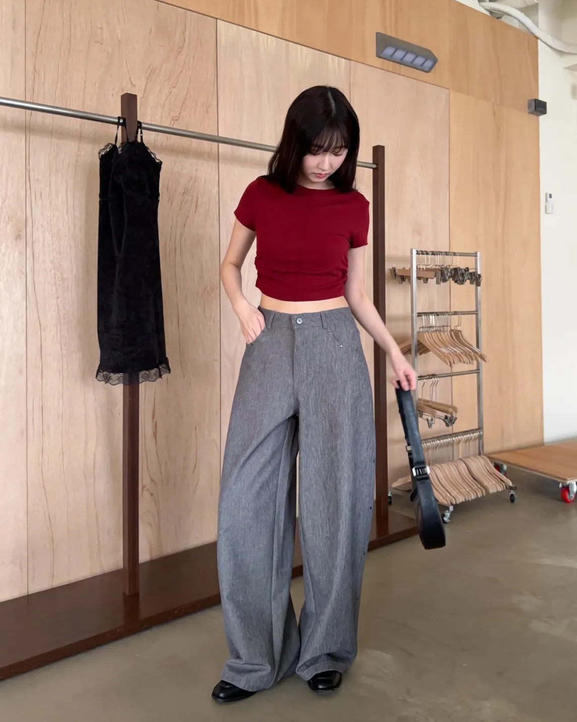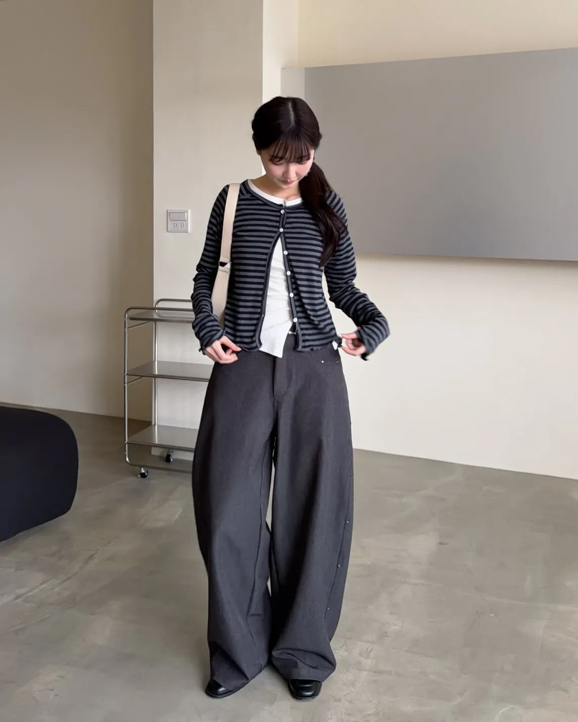 B0001圓釘裝飾刷色西裝寬褲(淺灰/深灰)