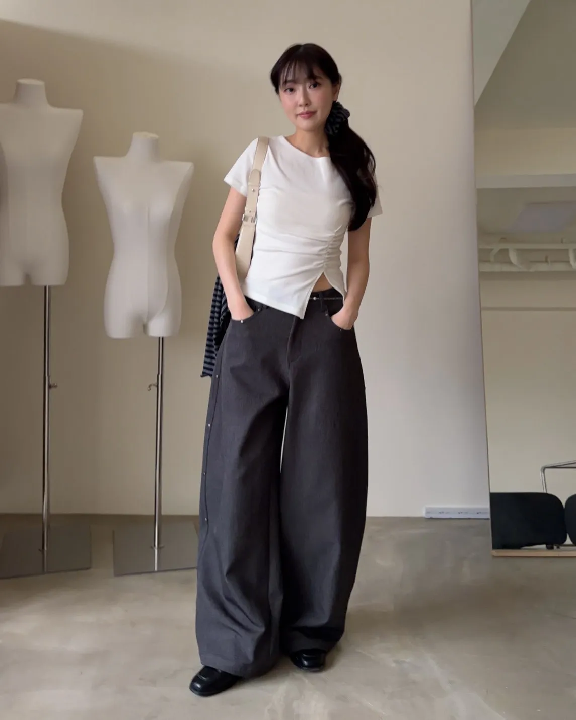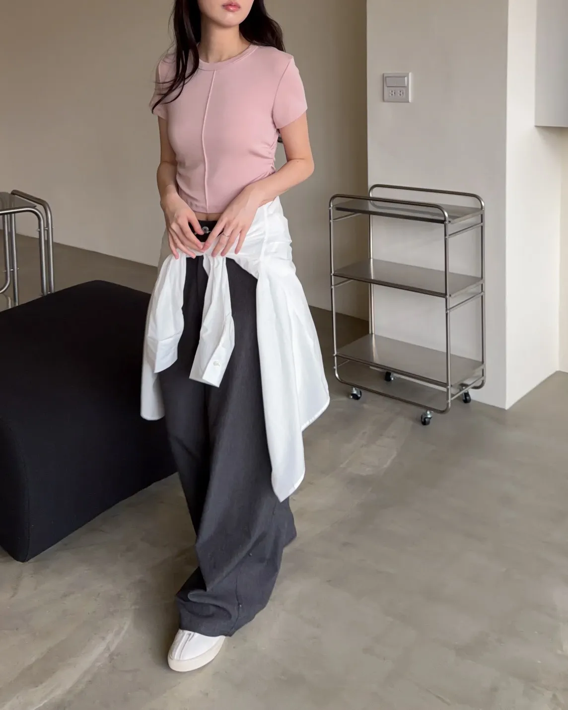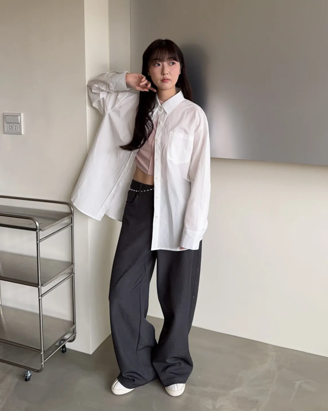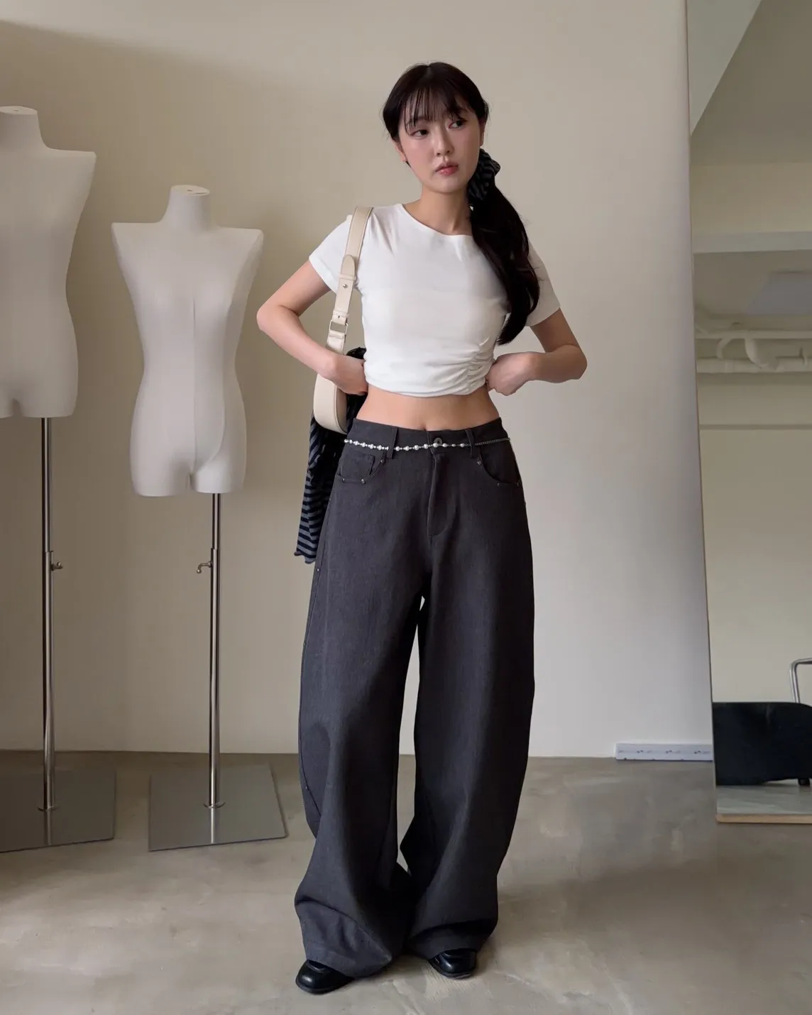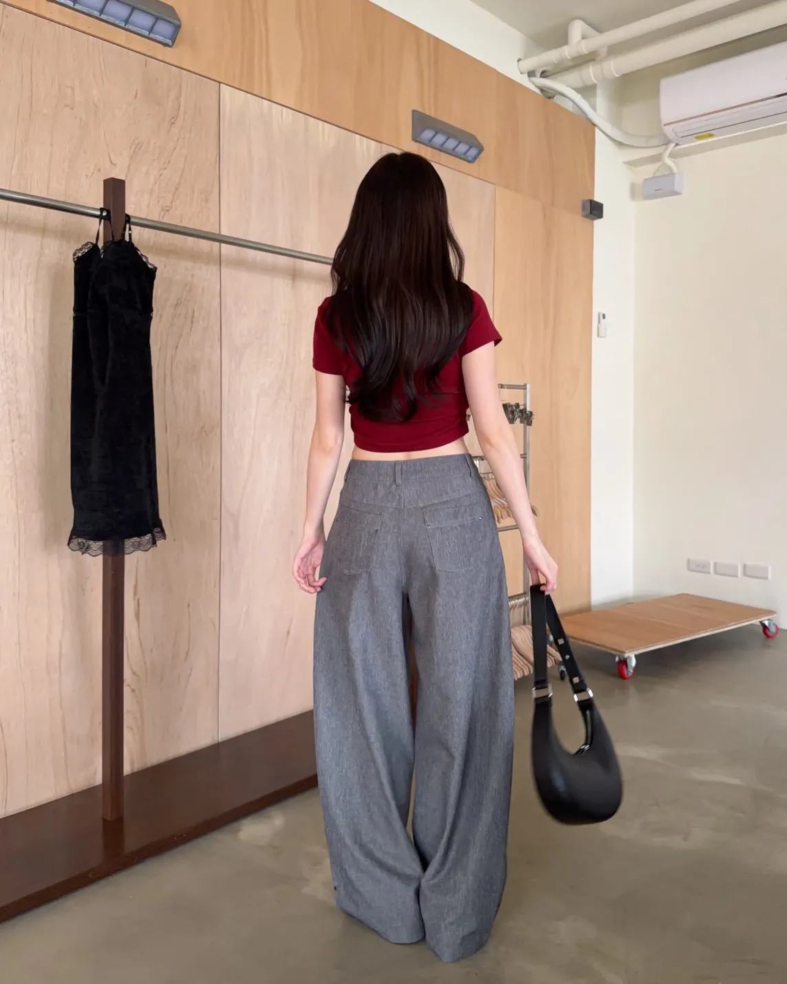 B0001圓釘裝飾刷色西裝寬褲(淺灰/深灰)