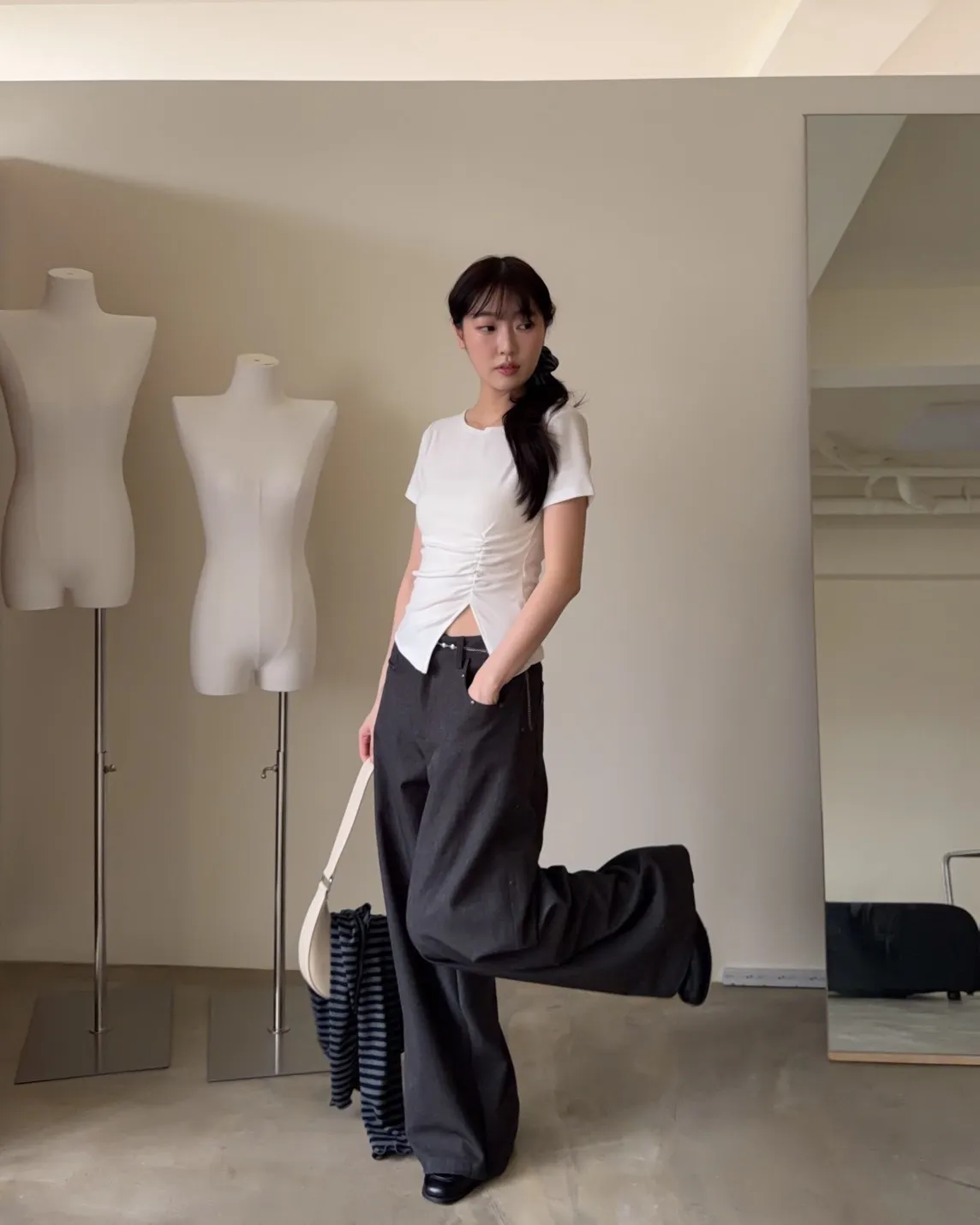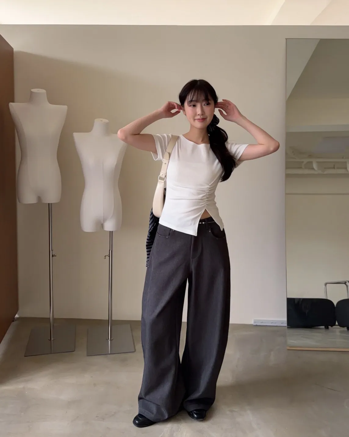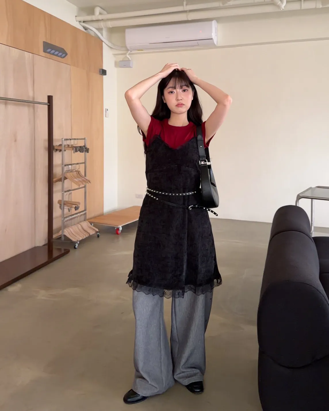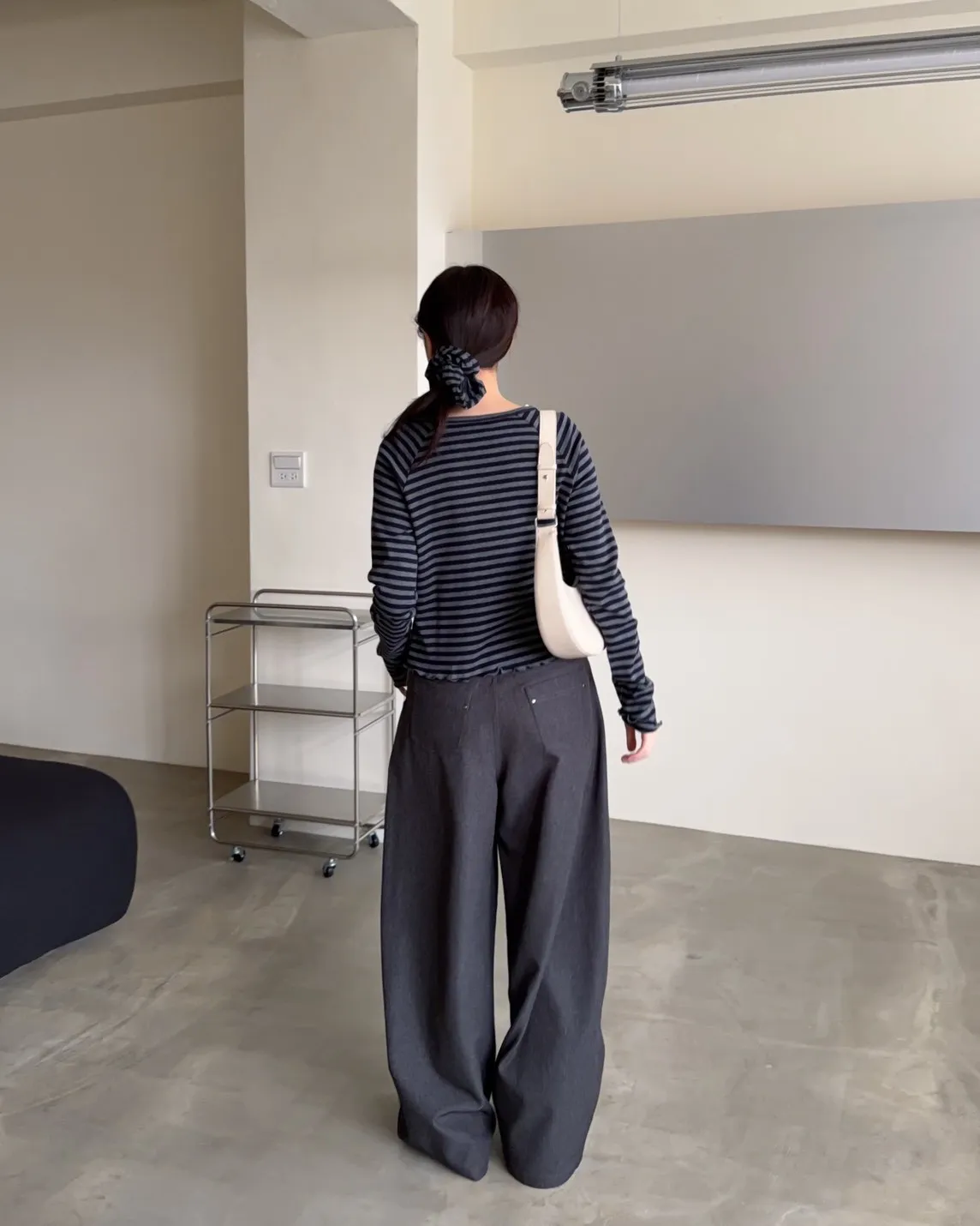 B0001圓釘裝飾刷色西裝寬褲(淺灰/深灰)
