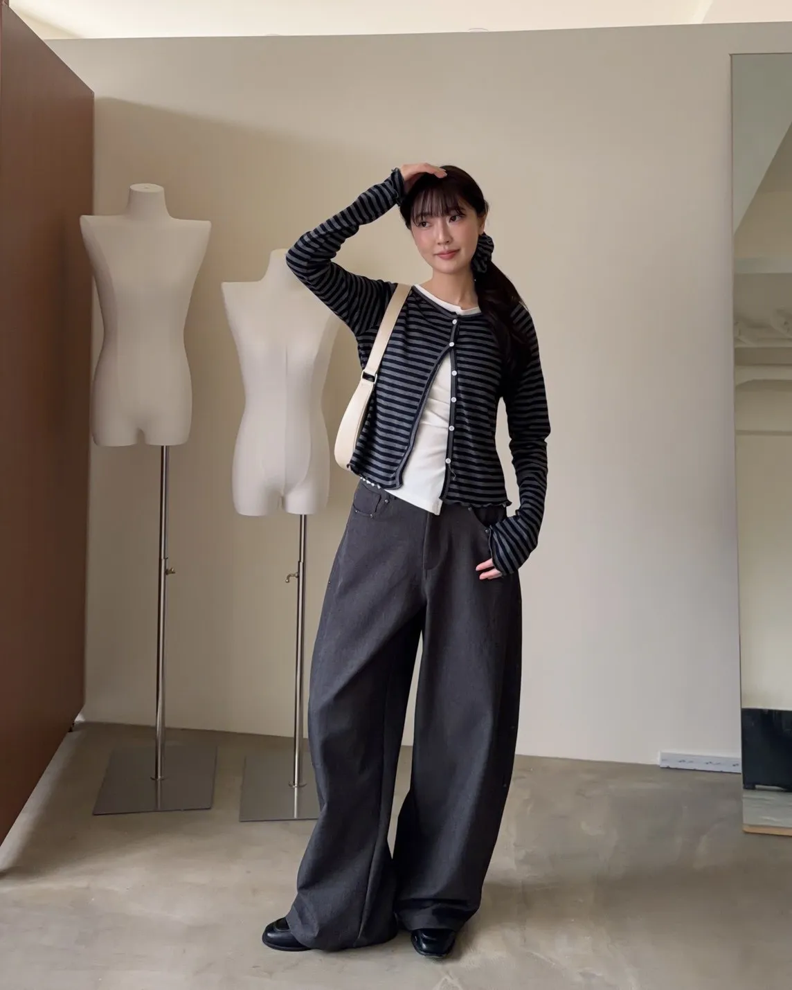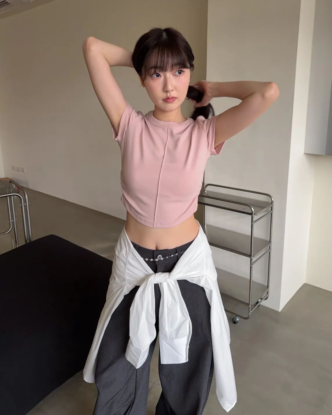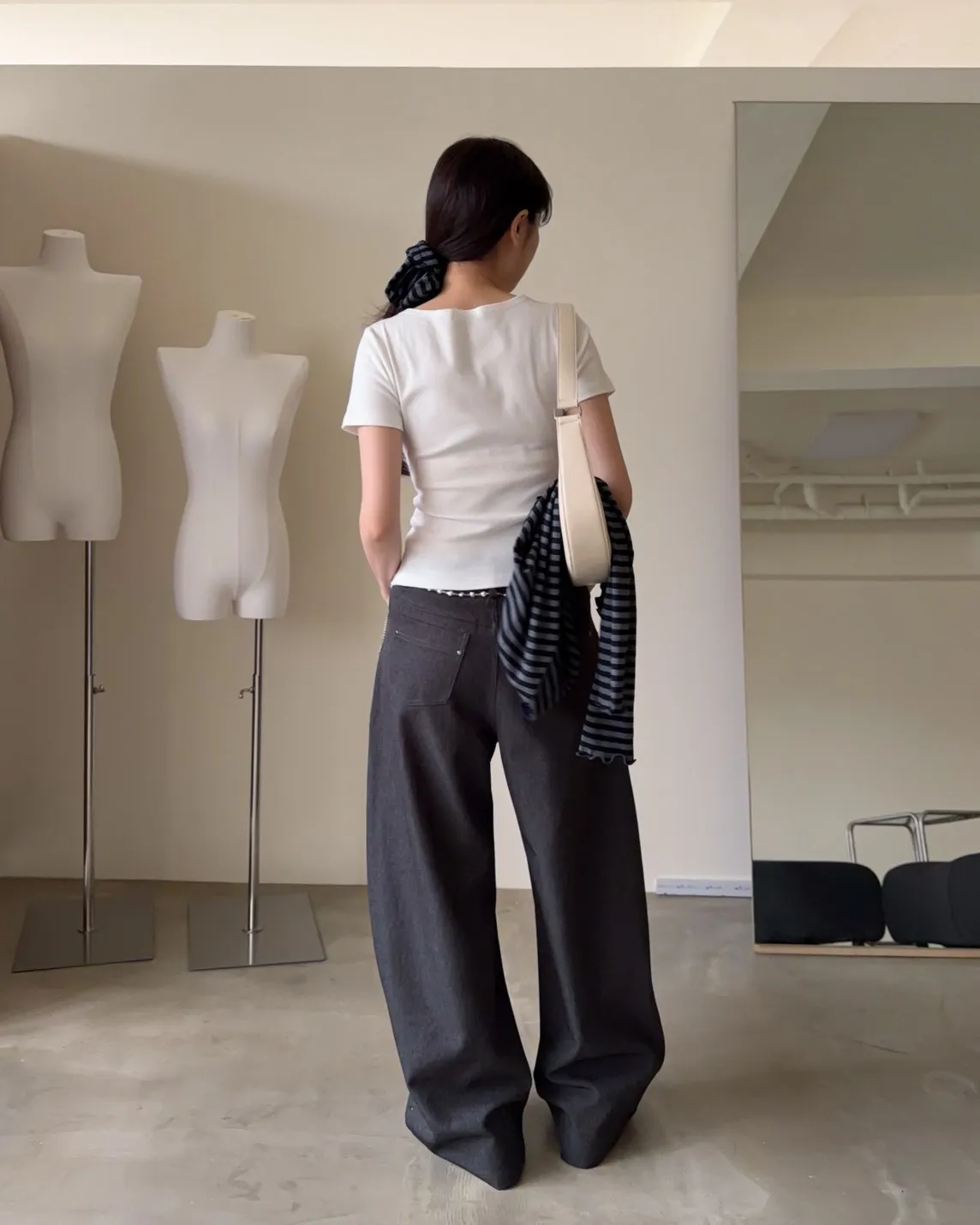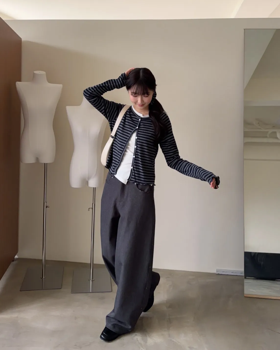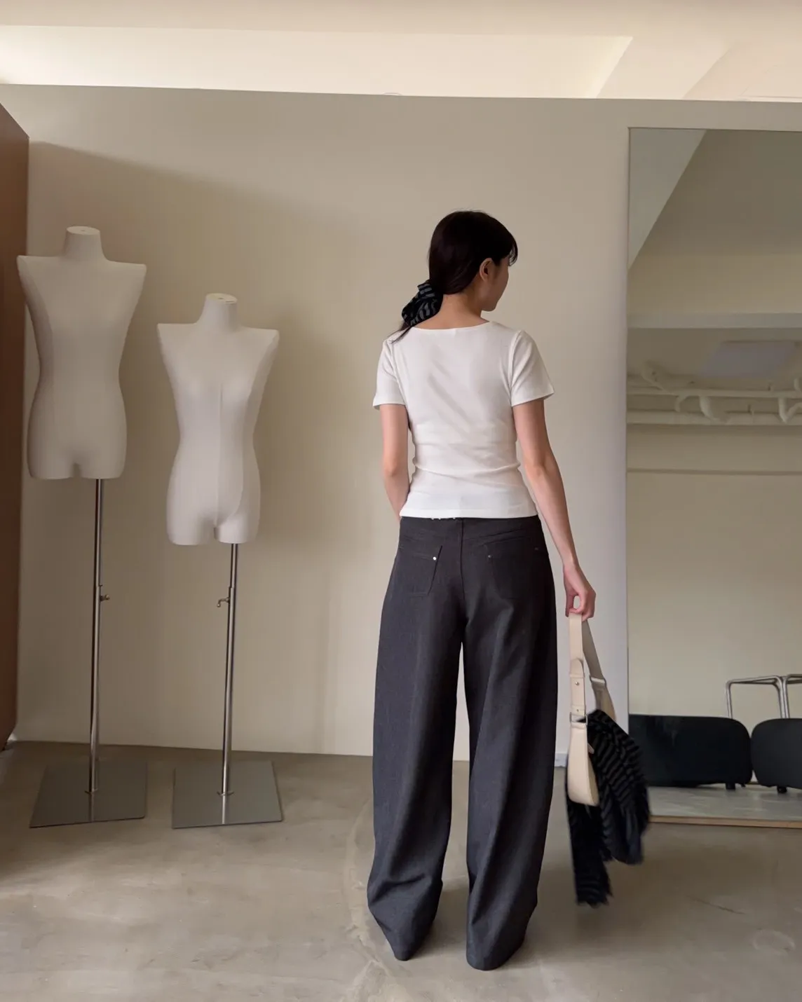 B0001圓釘裝飾刷色西裝寬褲(淺灰/深灰)