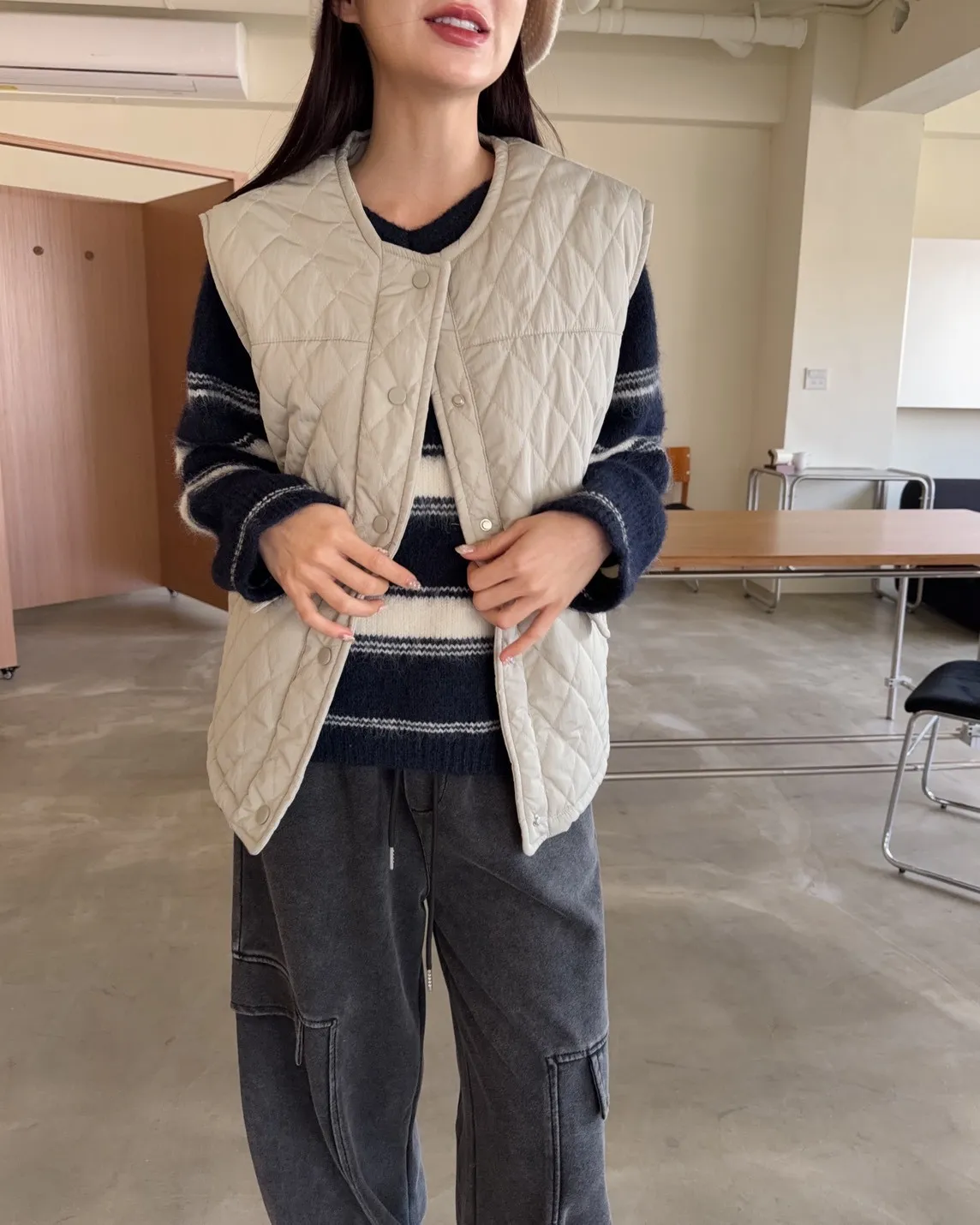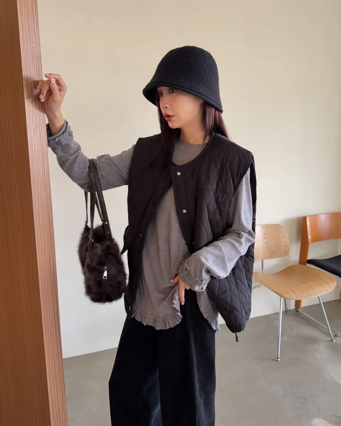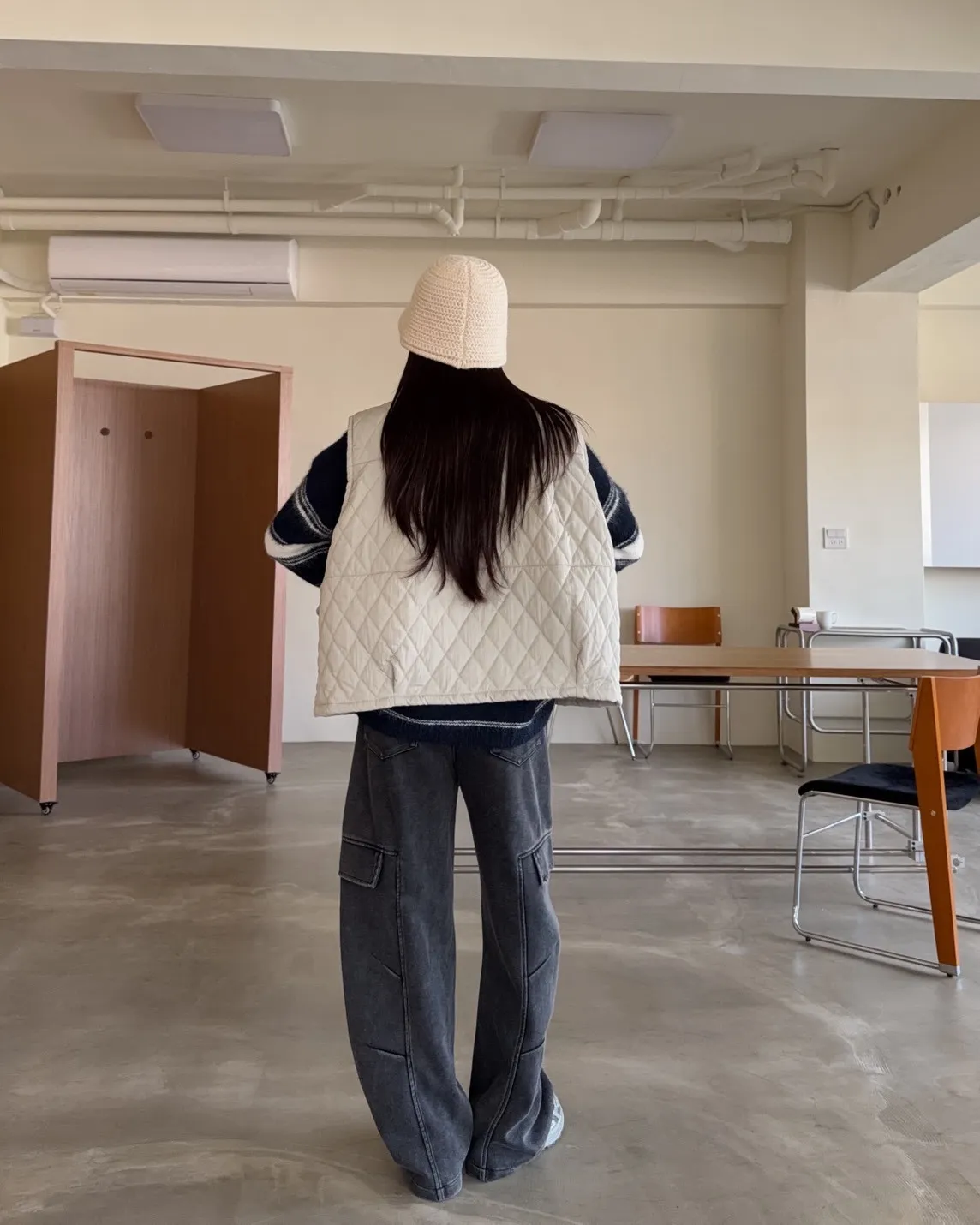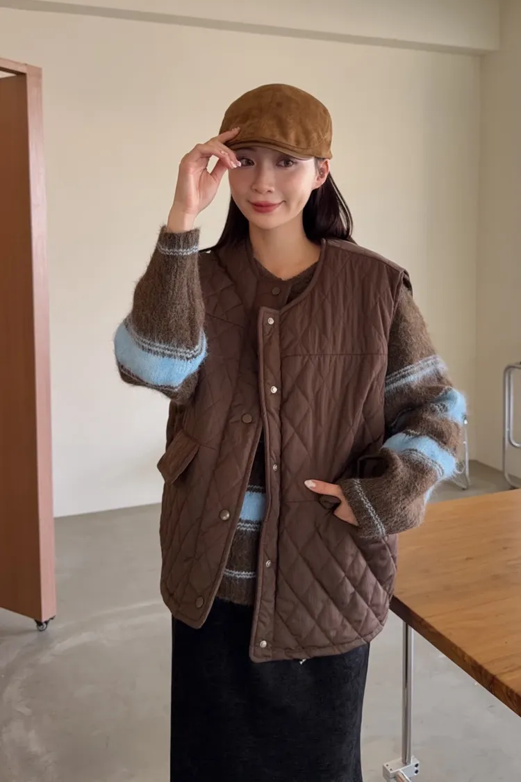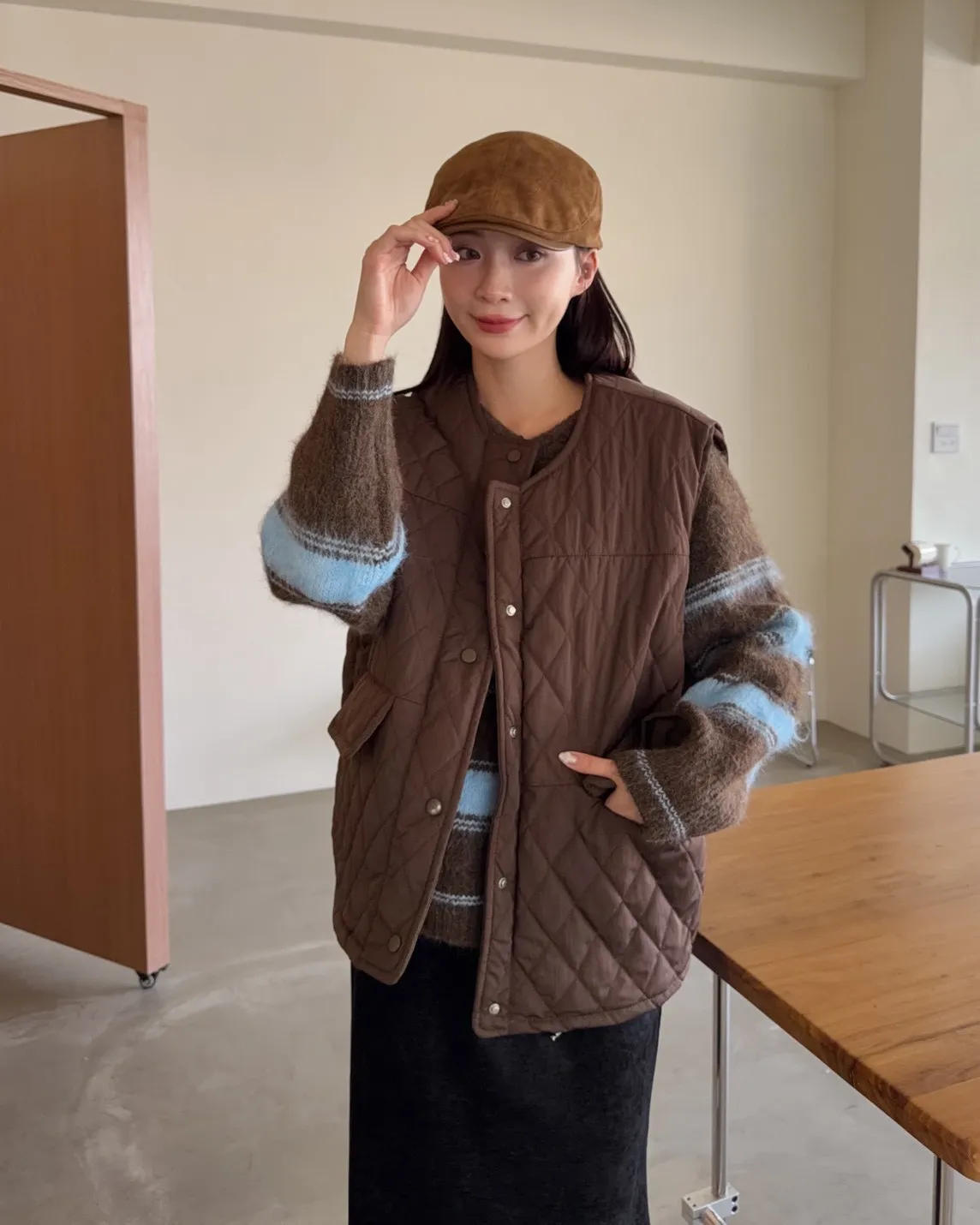 X0007菱格紋鋪棉澎澎背心(灰杏/咖啡/黑)