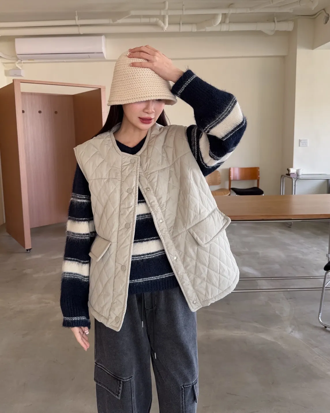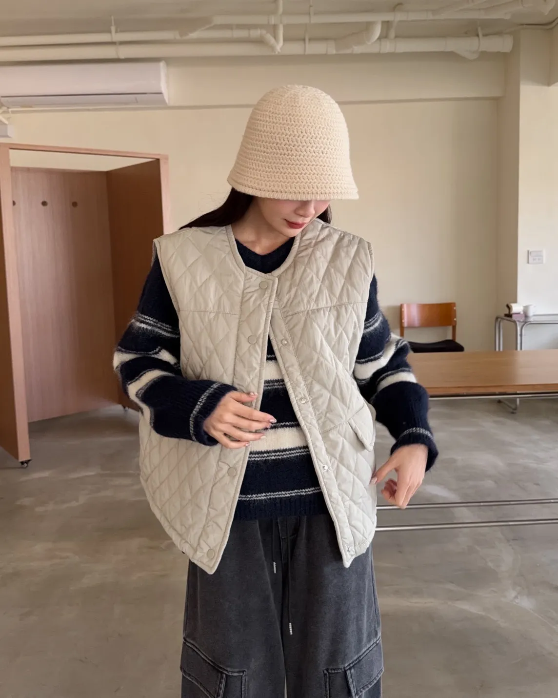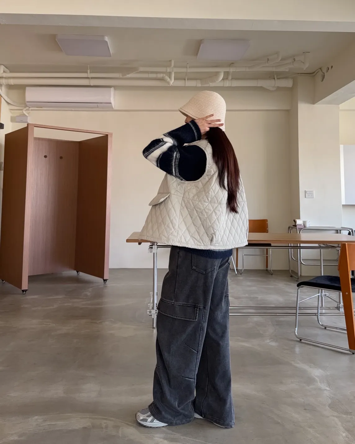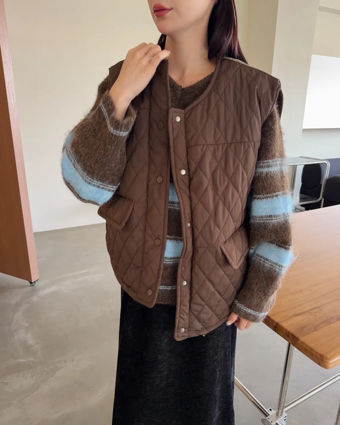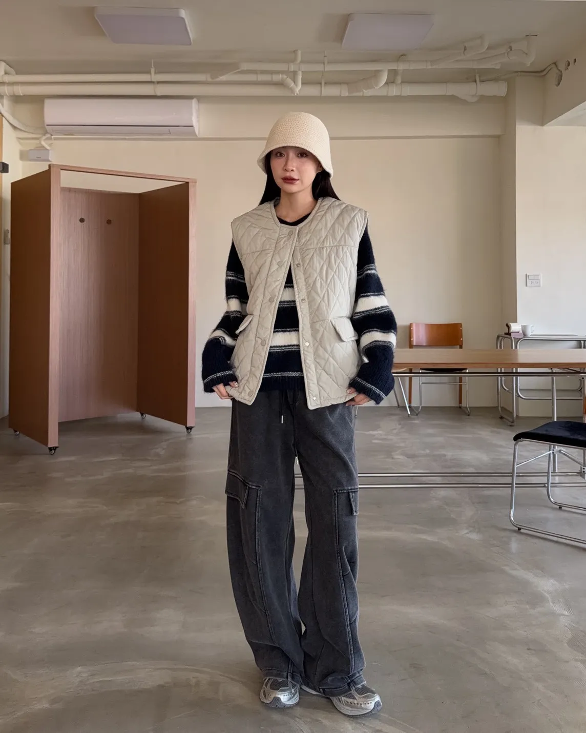 X0007菱格紋鋪棉澎澎背心(灰杏/咖啡/黑)