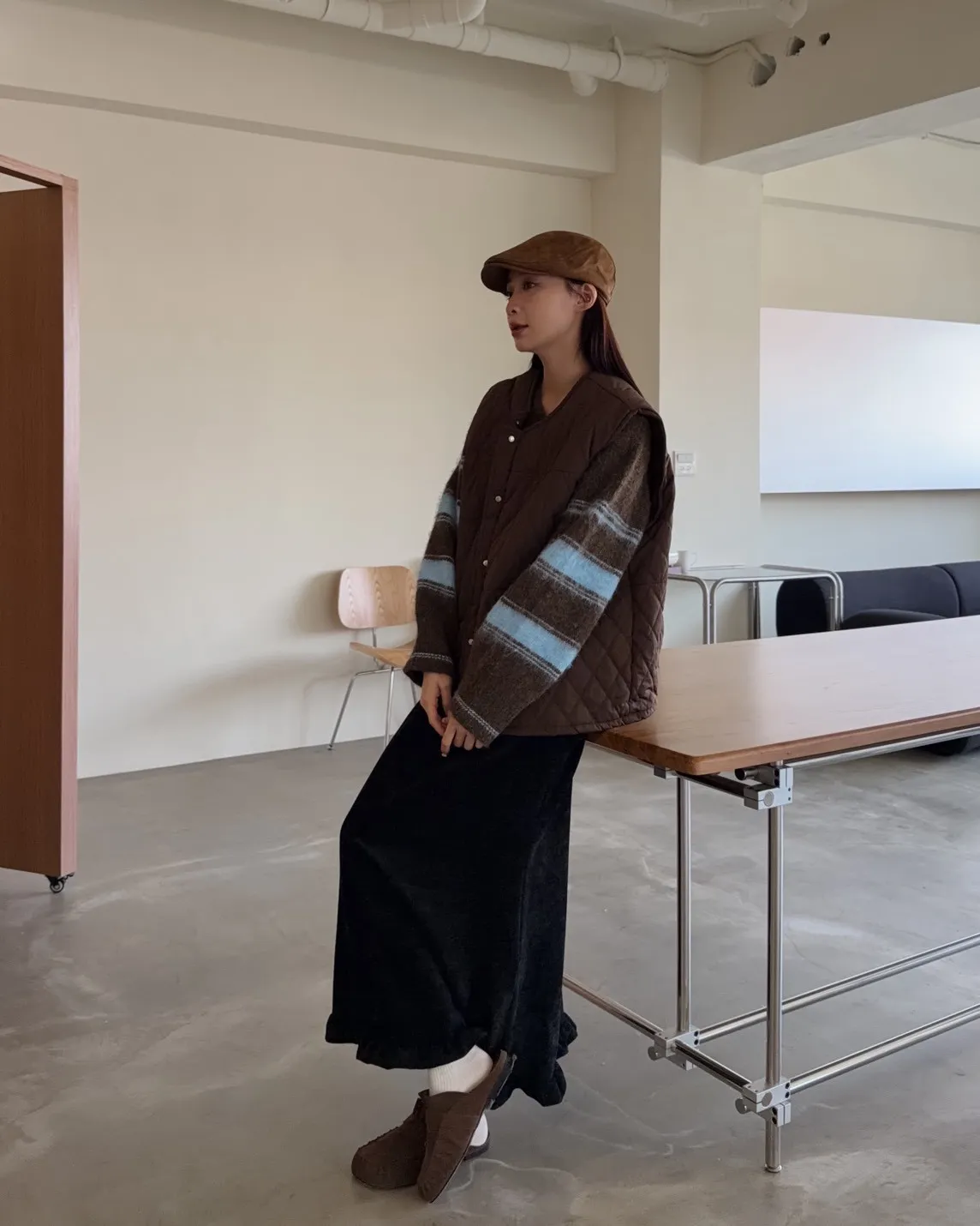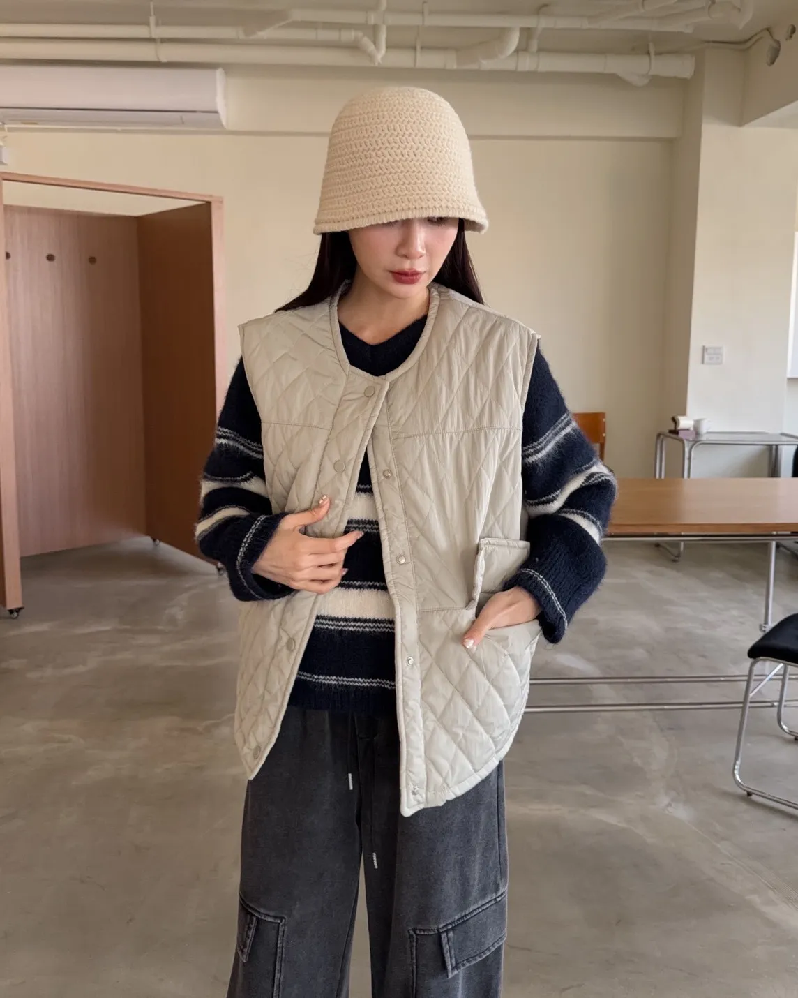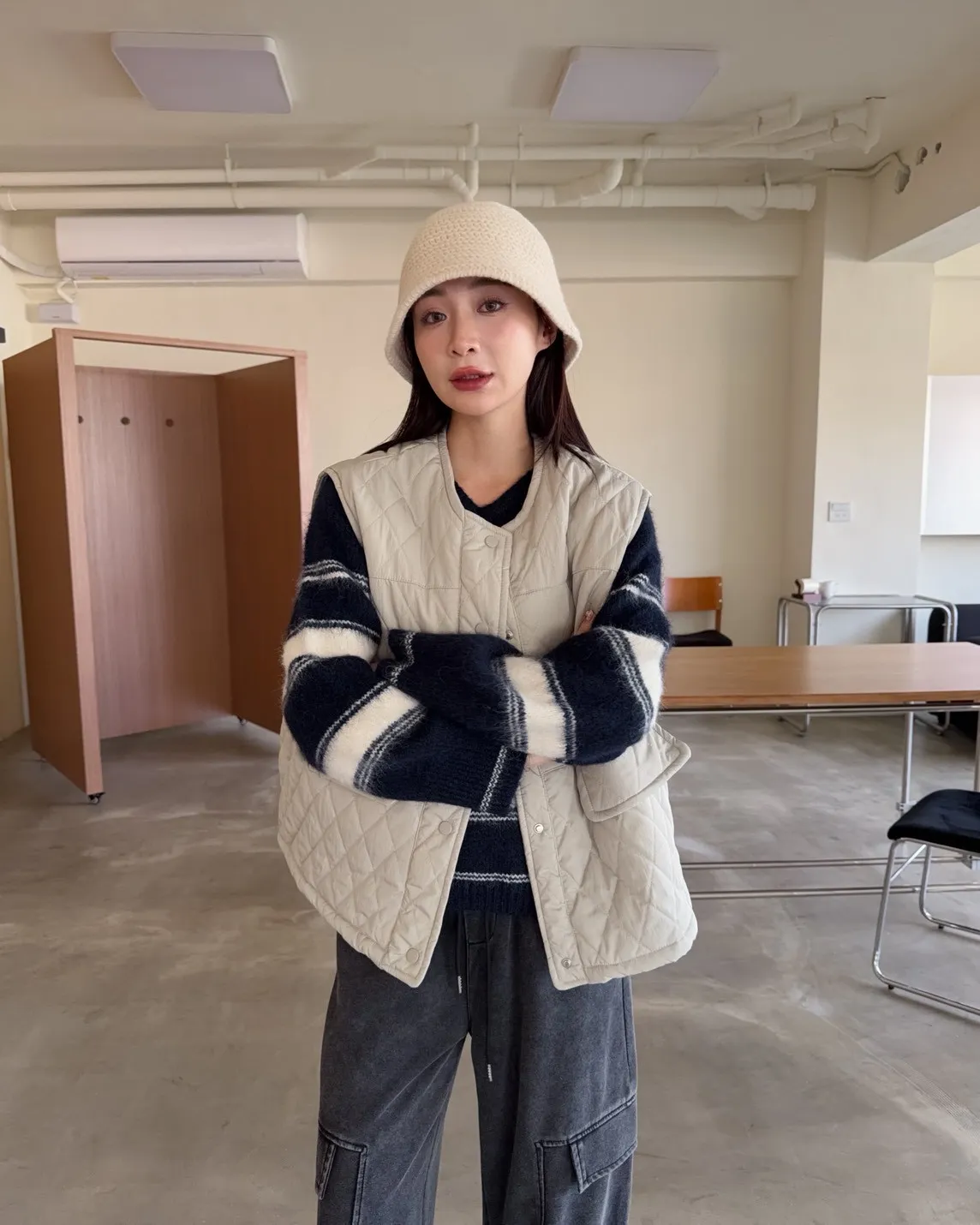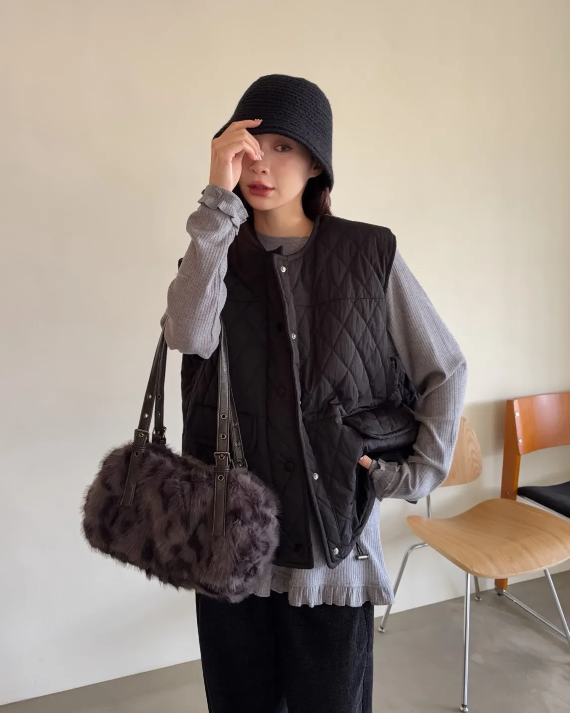 X0007菱格紋鋪棉澎澎背心(灰杏/咖啡/黑)
