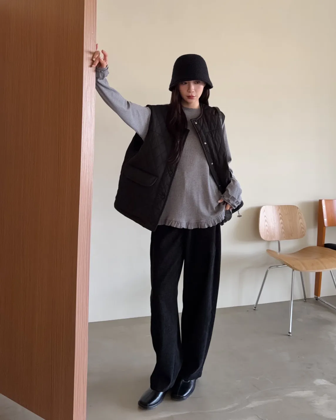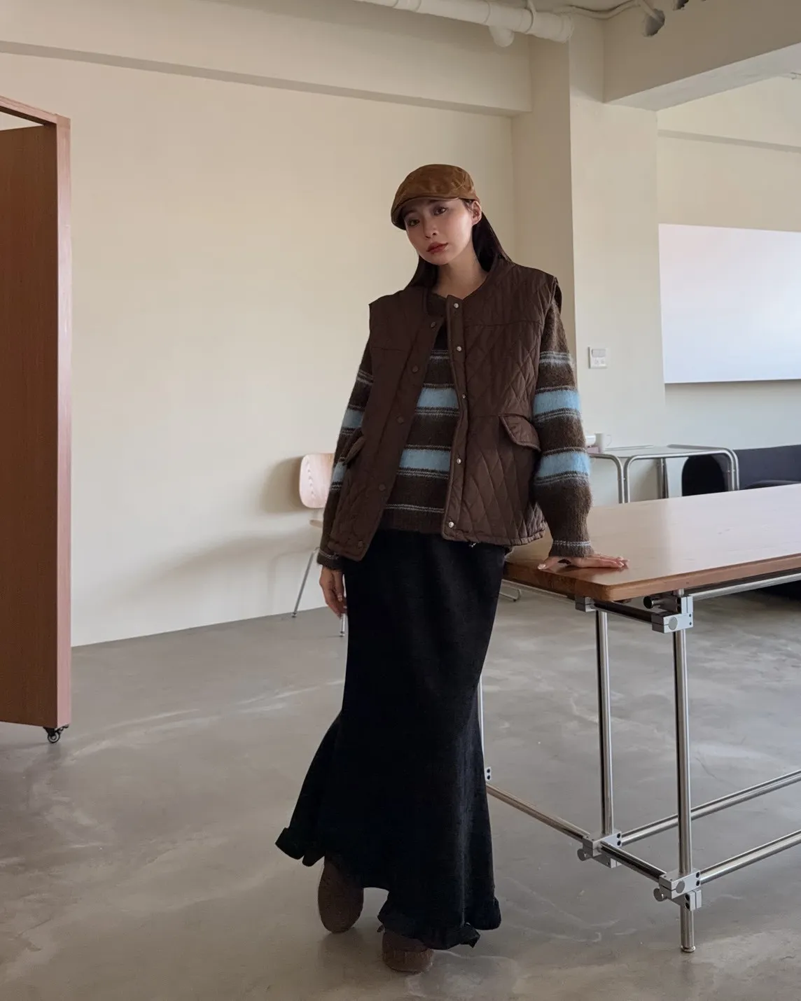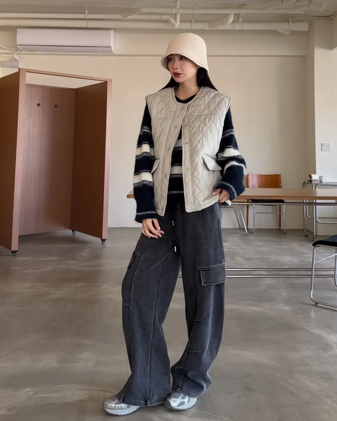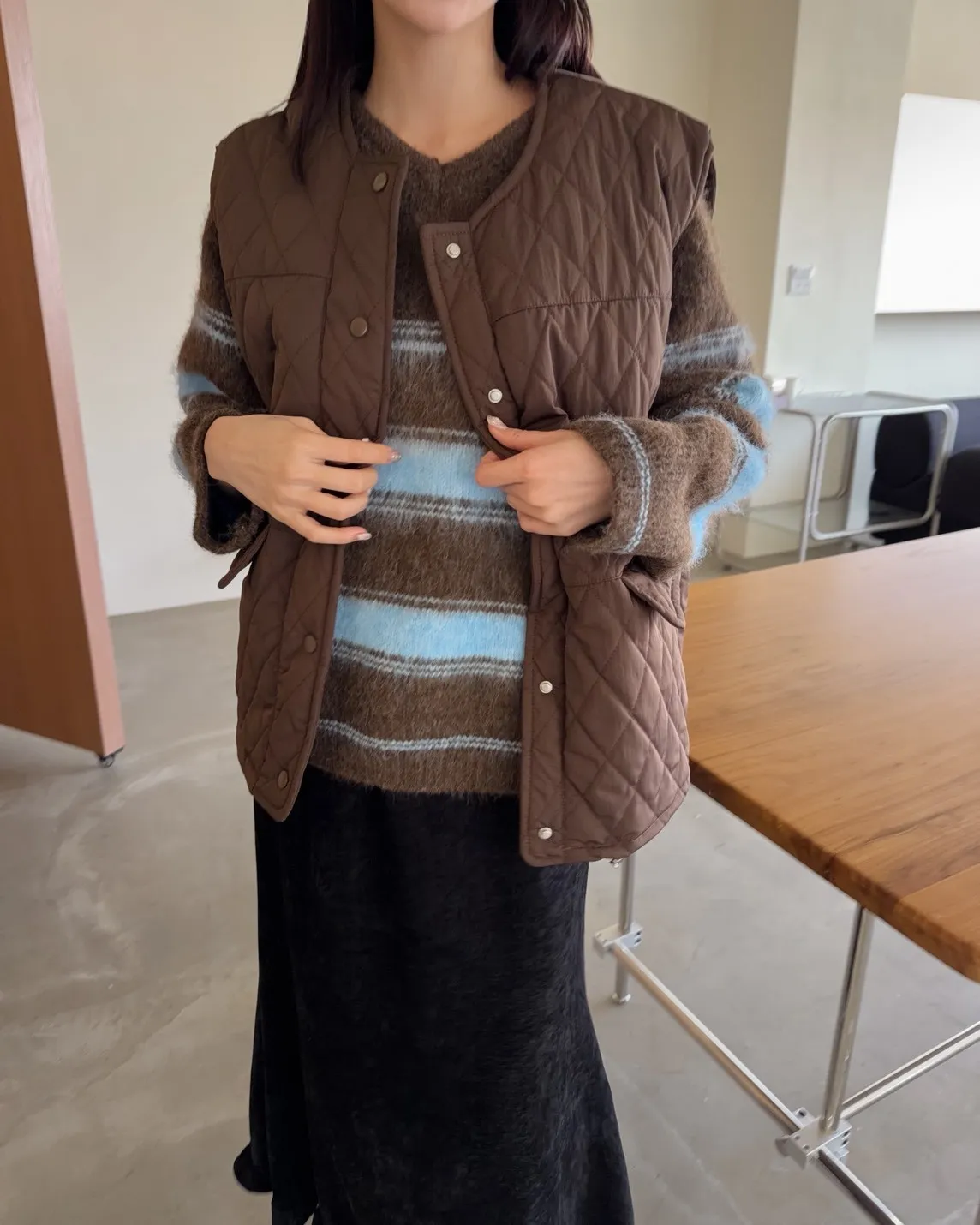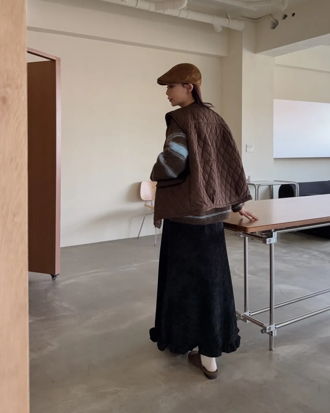 X0007菱格紋鋪棉澎澎背心(灰杏/咖啡/黑)