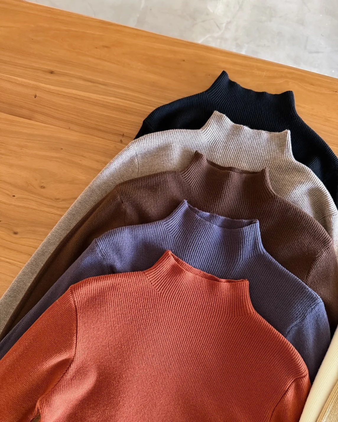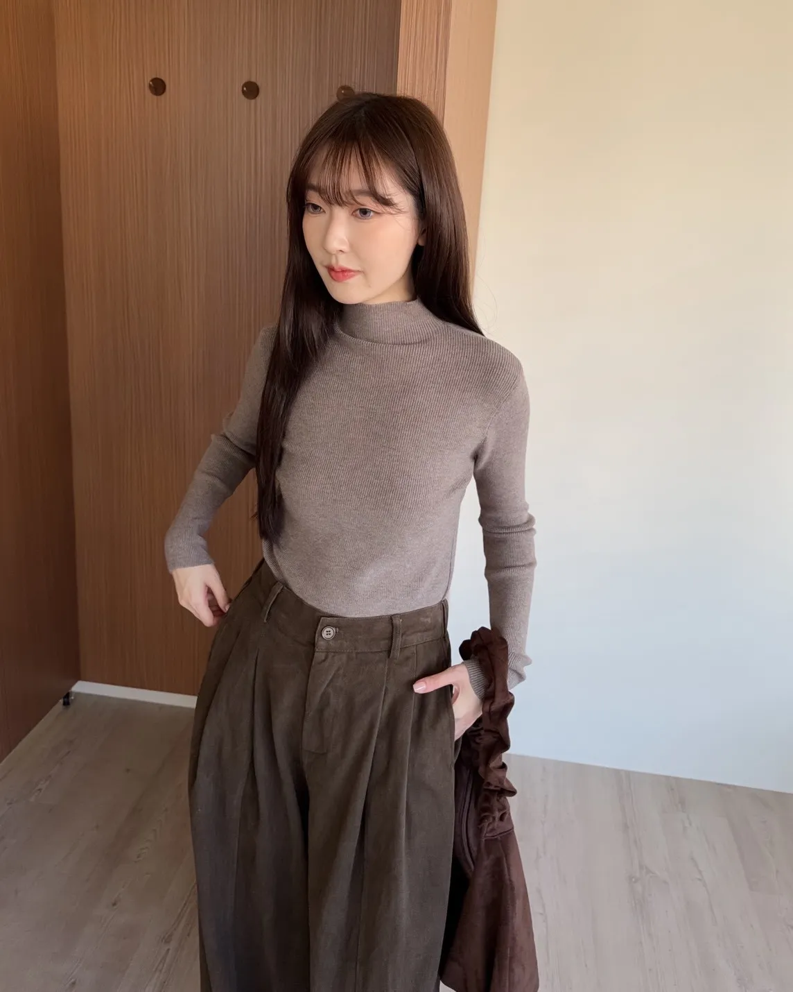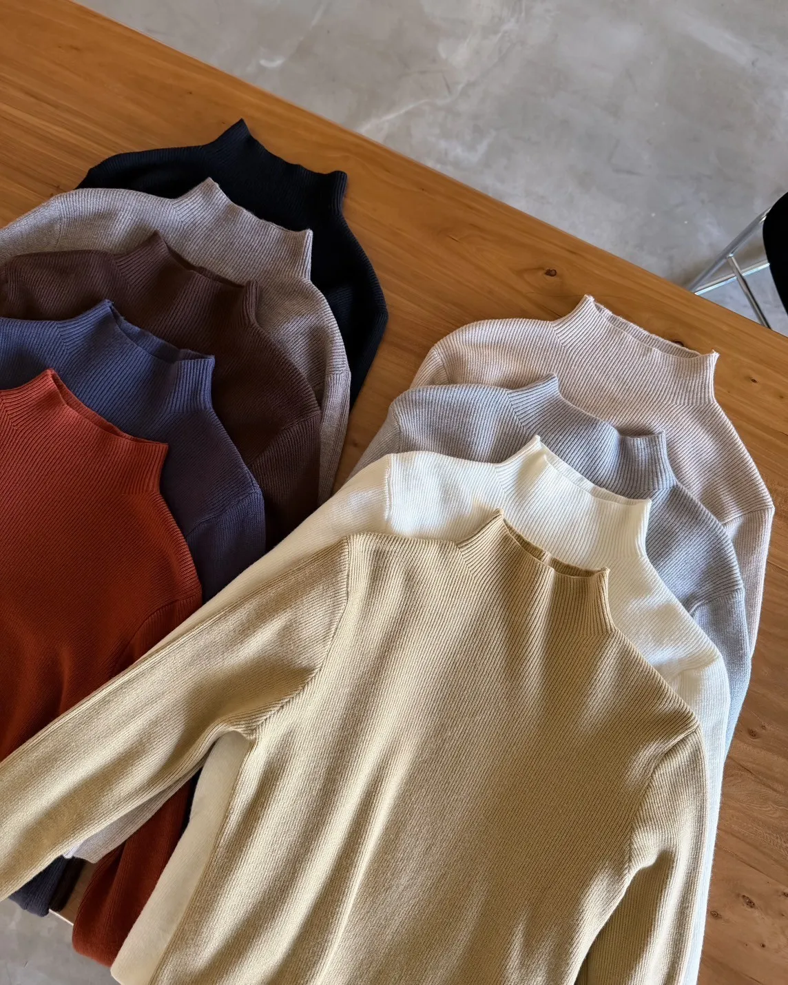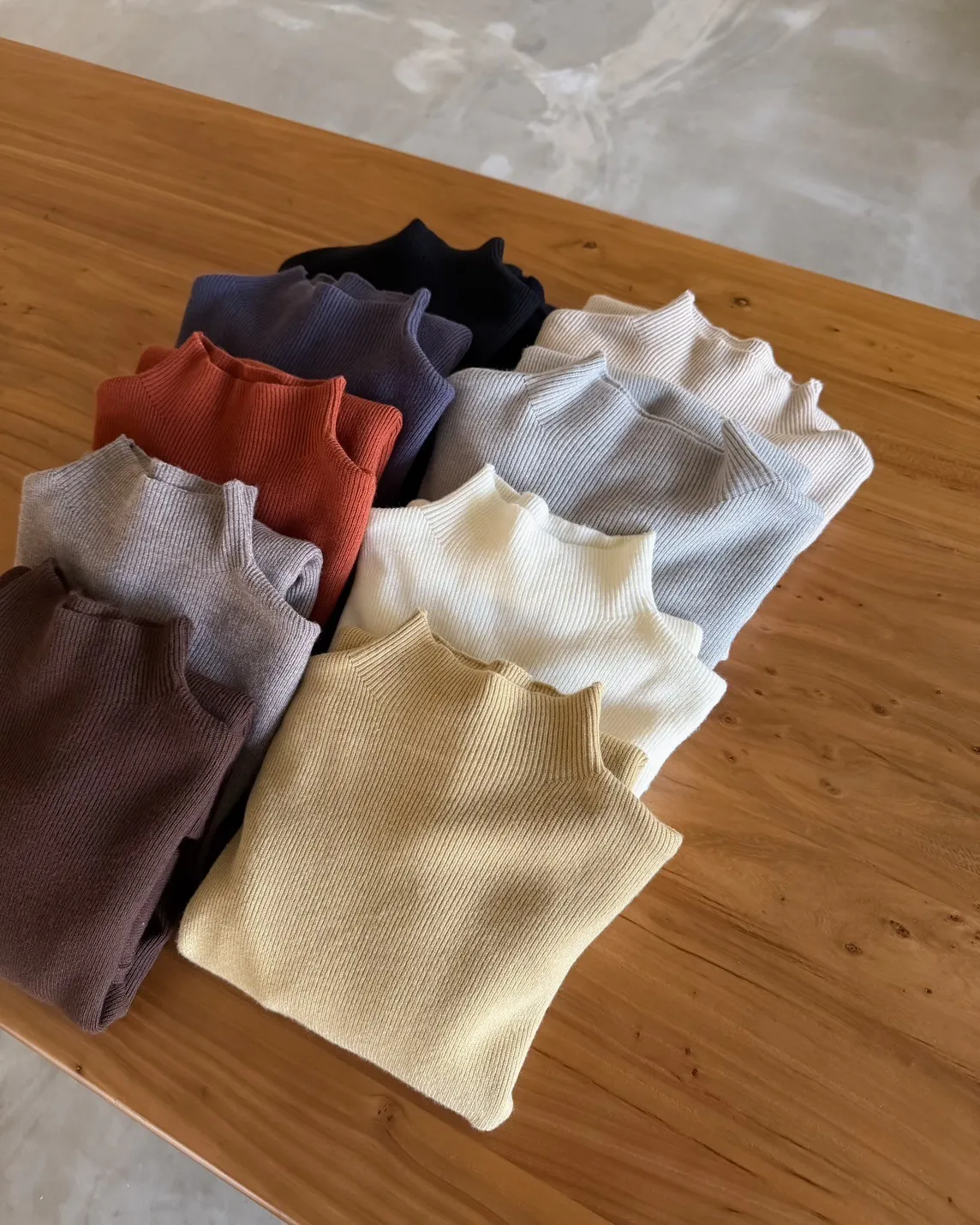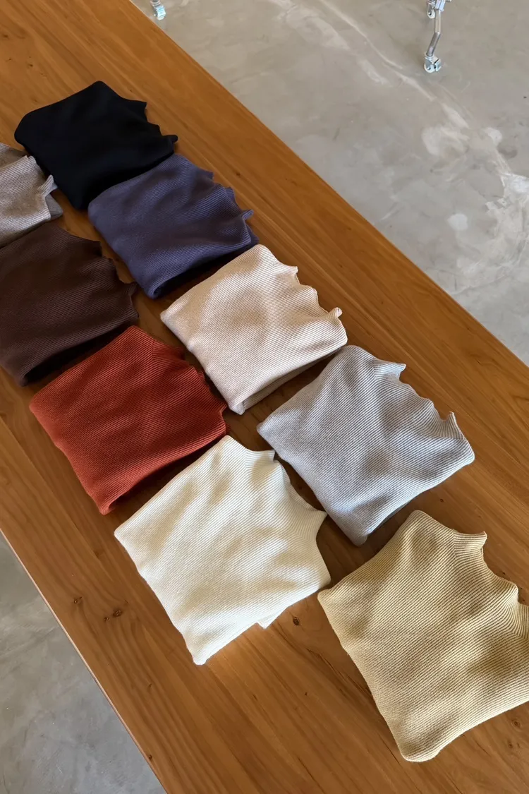 W0065(九色)彈!!!高領螺紋針織打底衣(米白/燕麥/咖啡/可可/芥黃/橘/深藍/灰/