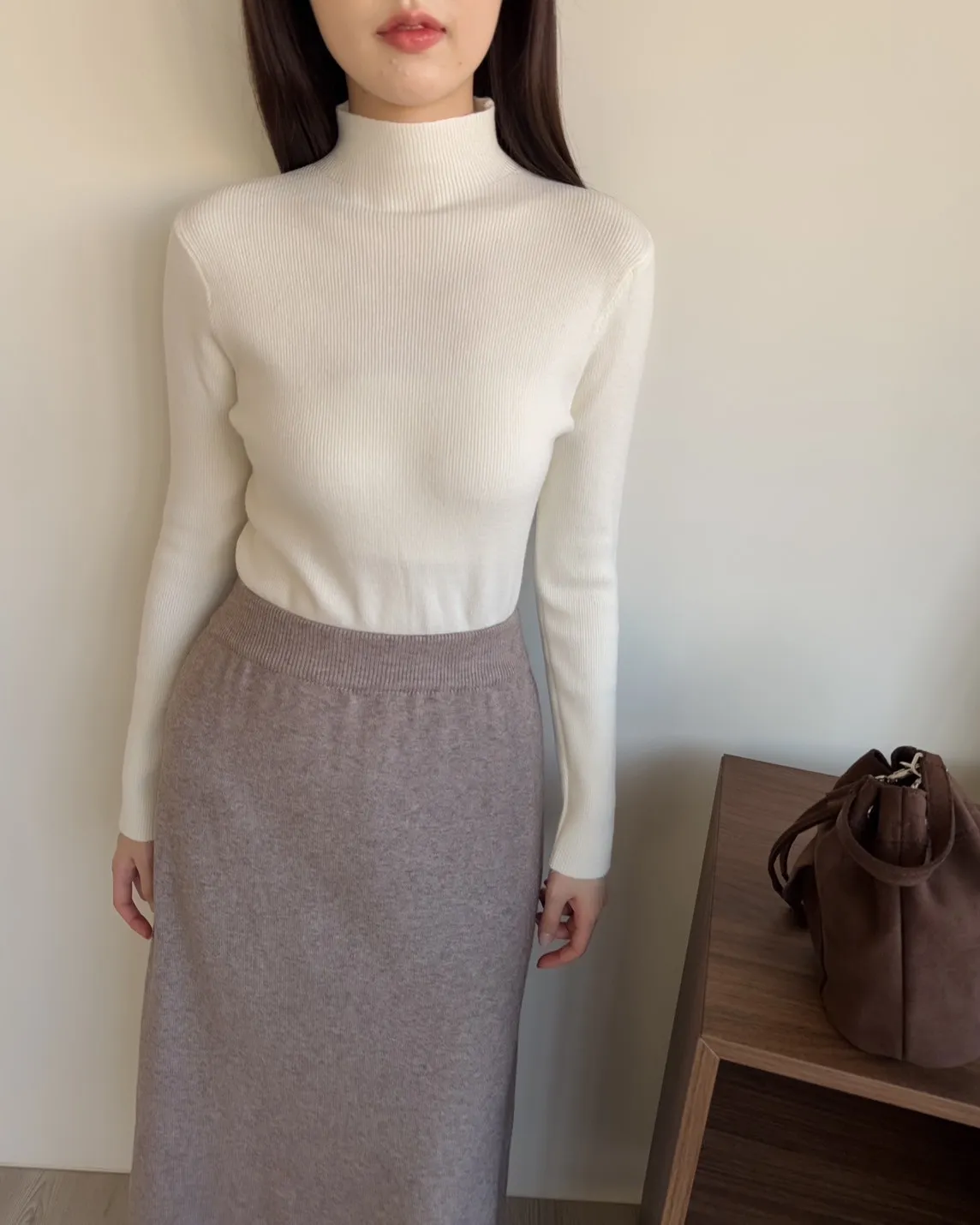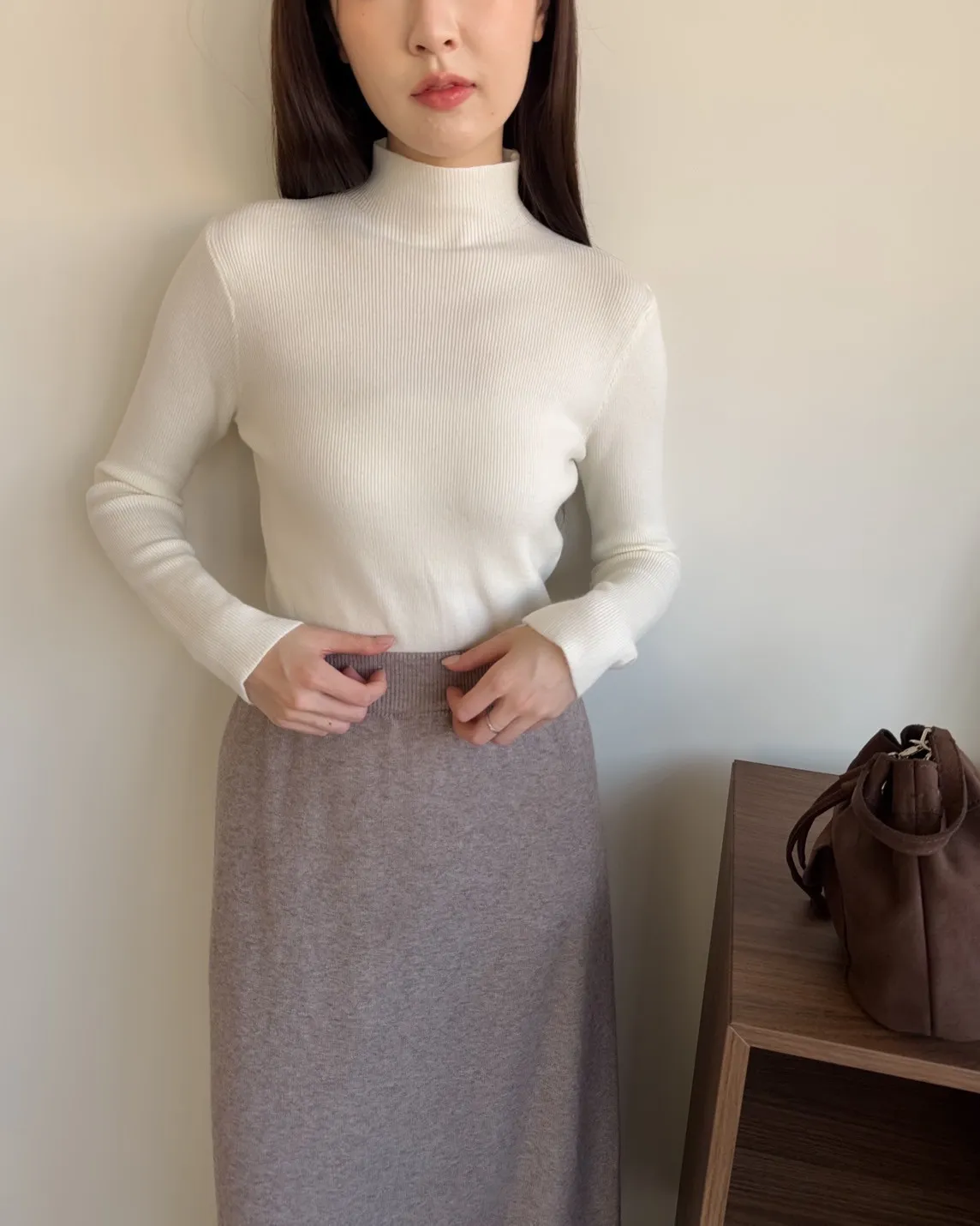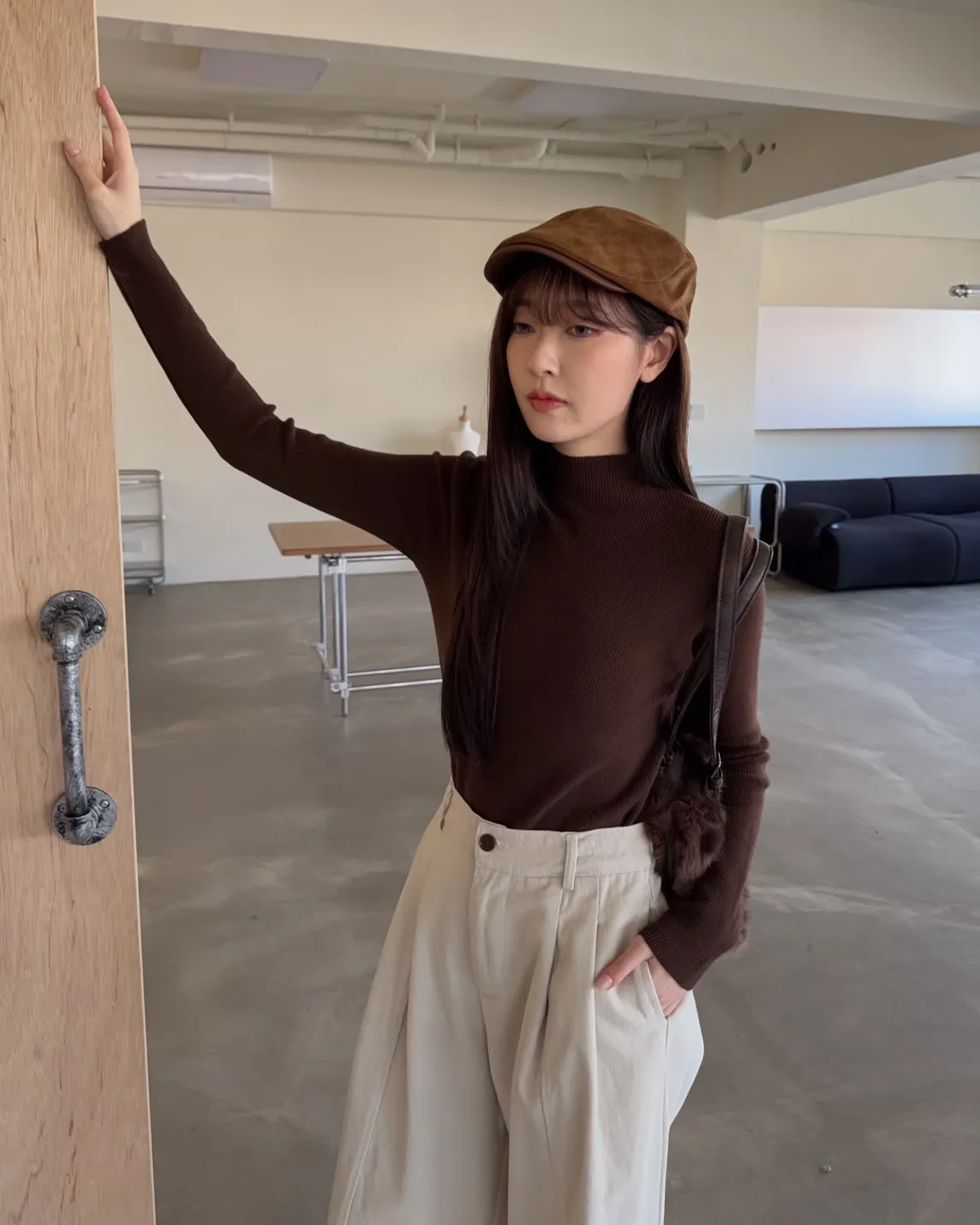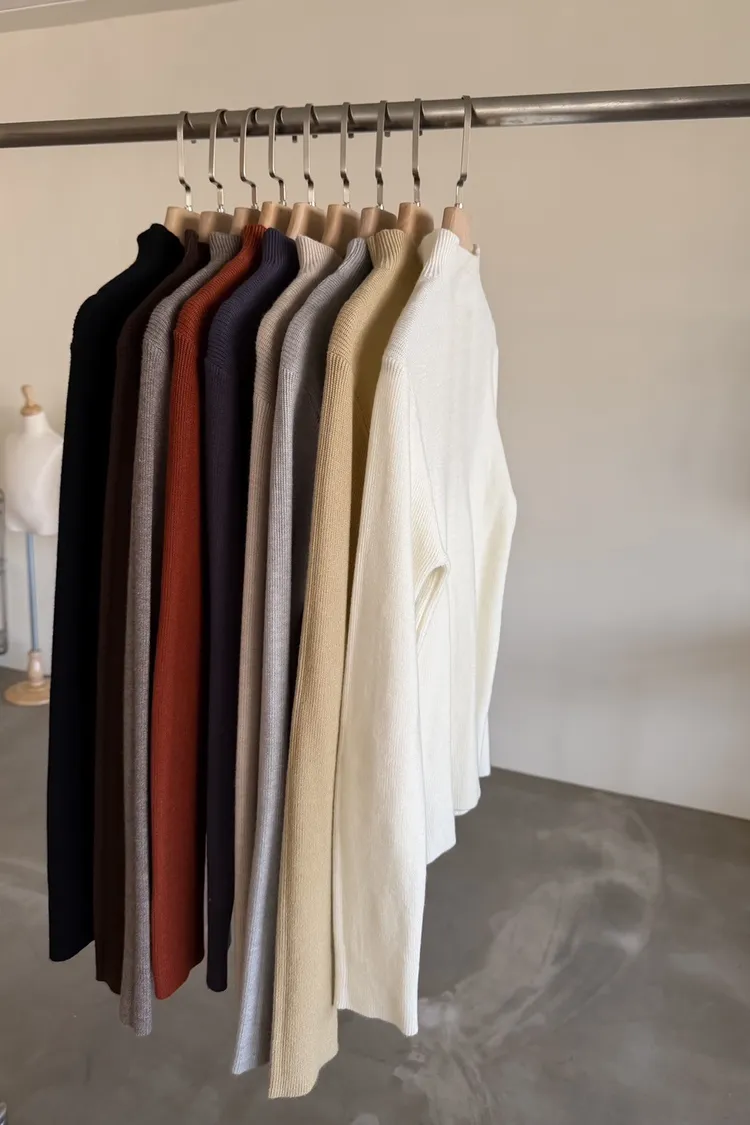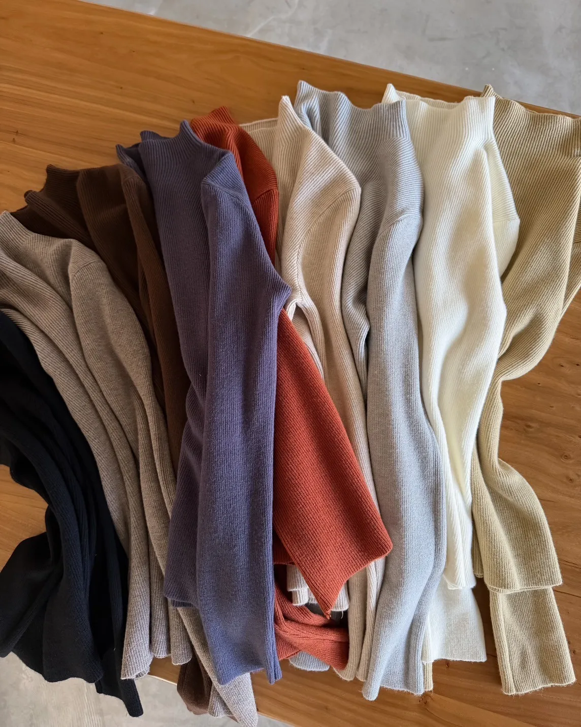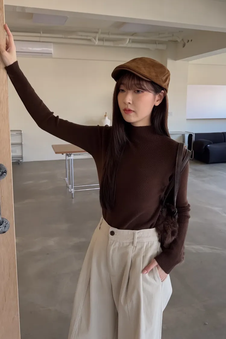 W0065(九色)彈!!!高領螺紋針織打底衣(米白/燕麥/咖啡/可可/芥黃/橘/深藍/灰/