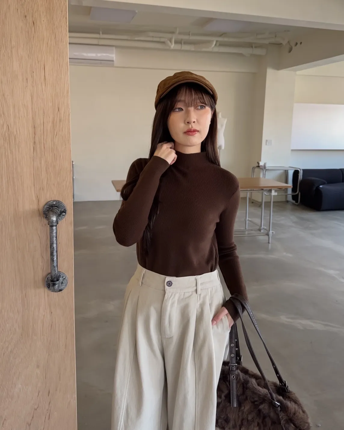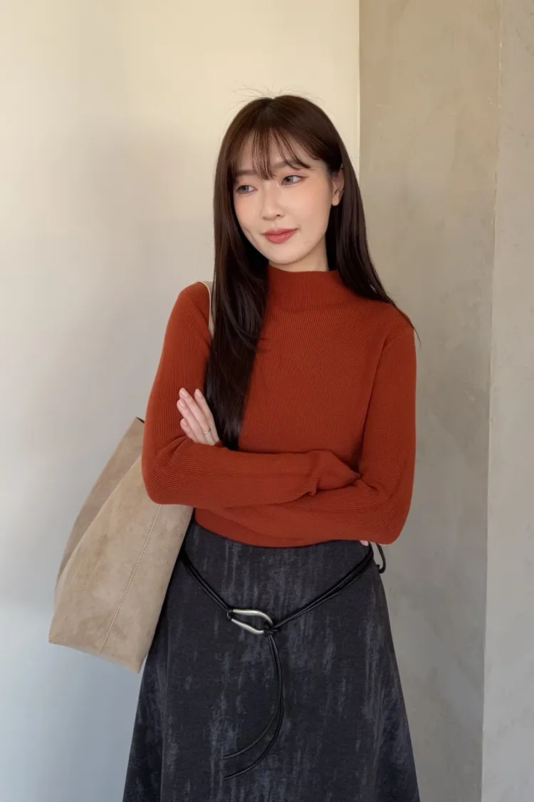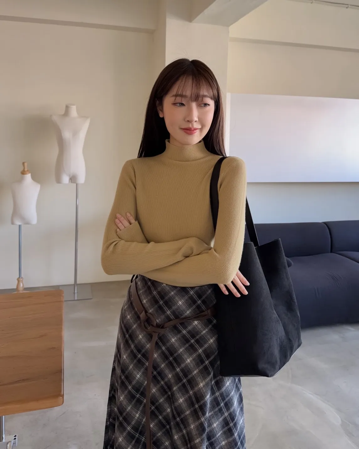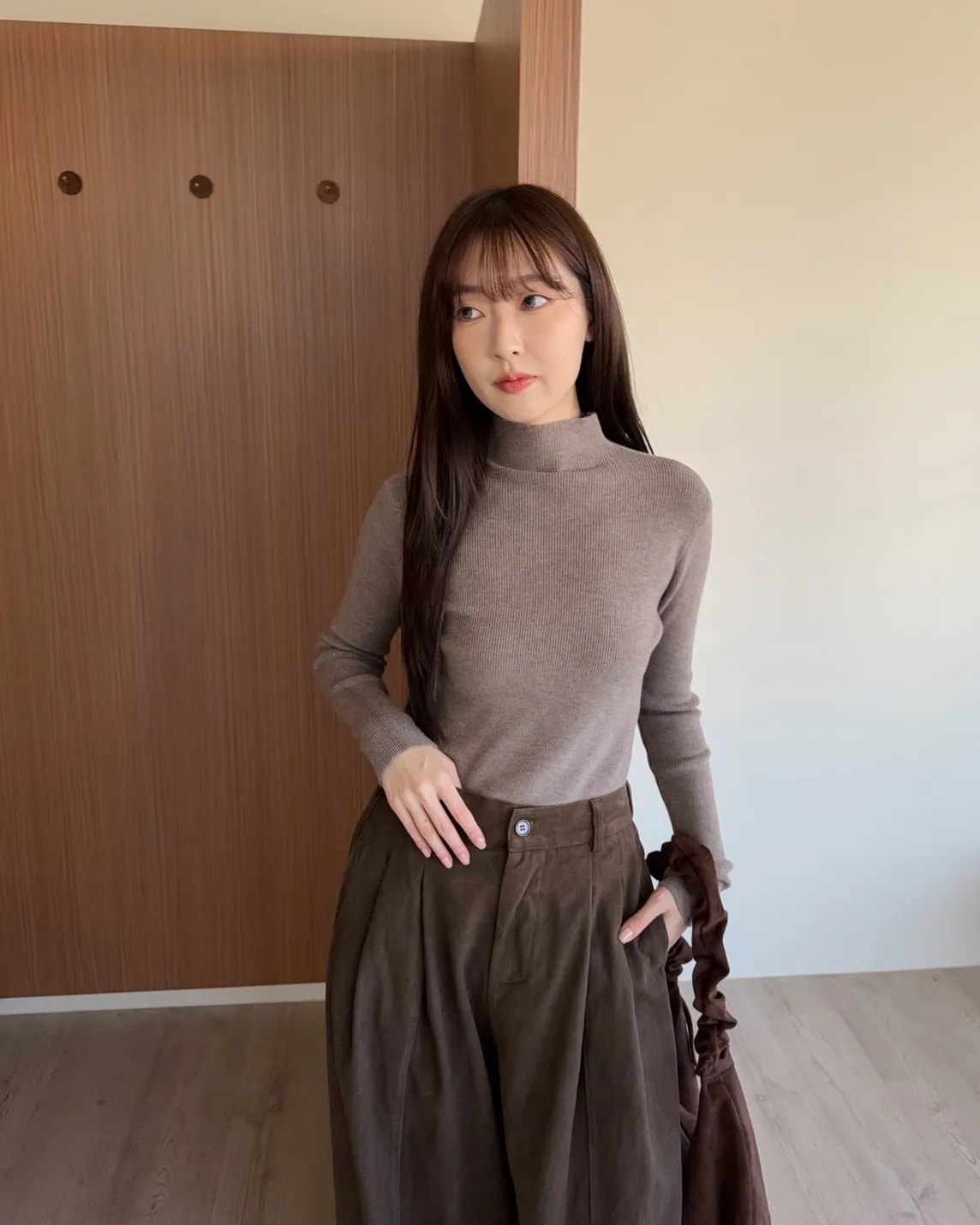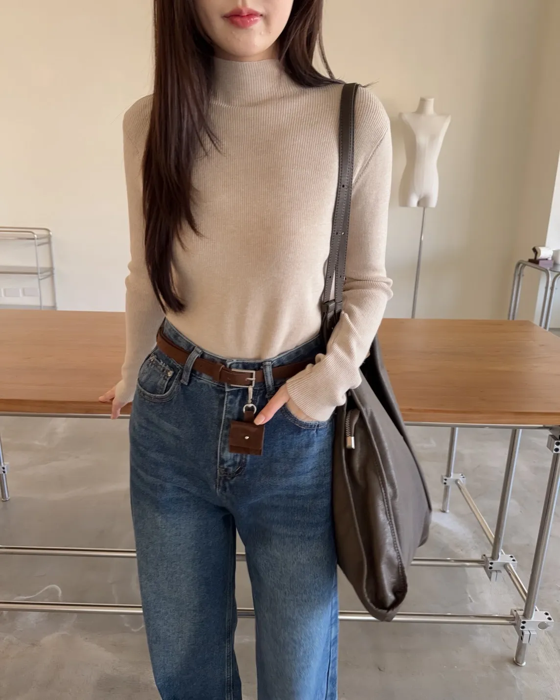 W0065(九色)彈!!!高領螺紋針織打底衣(米白/燕麥/咖啡/可可/芥黃/橘/深藍/灰/