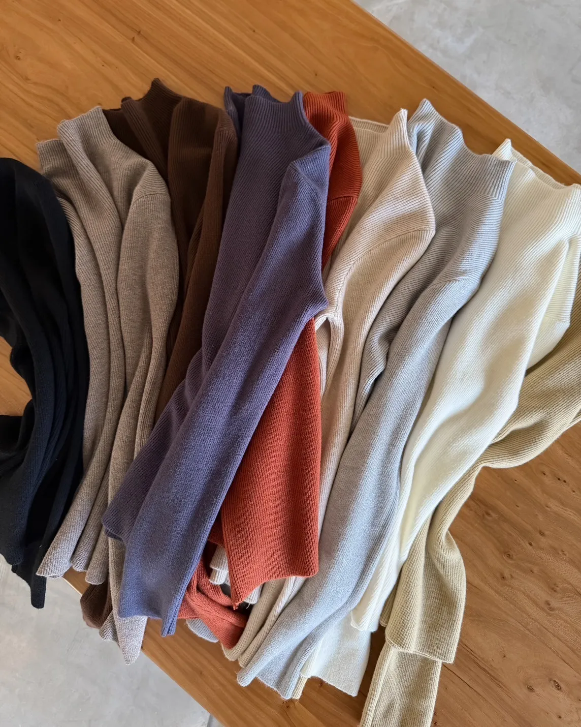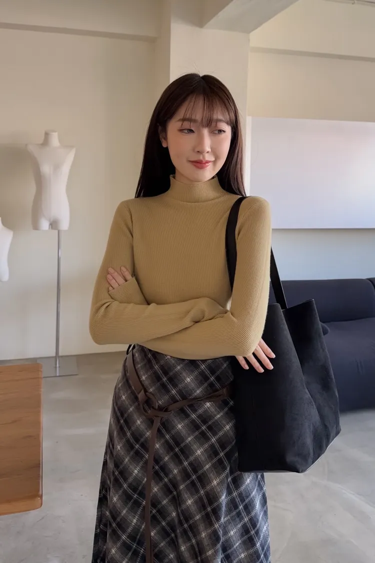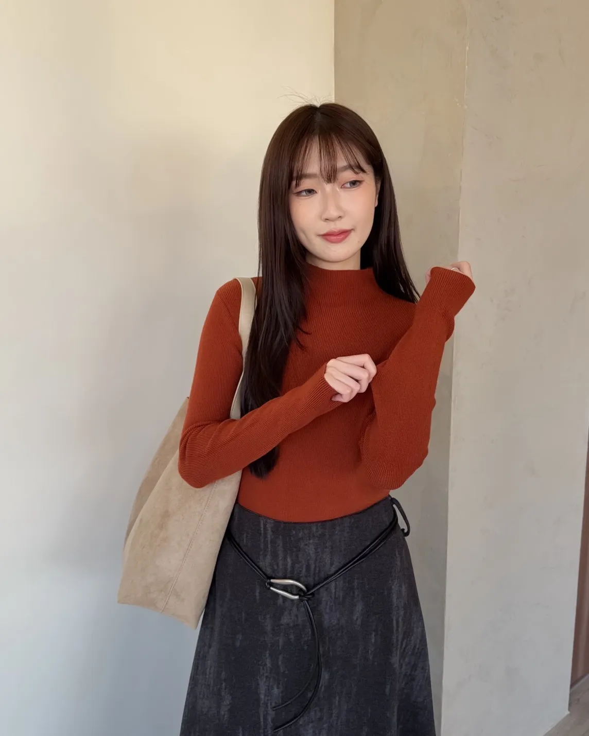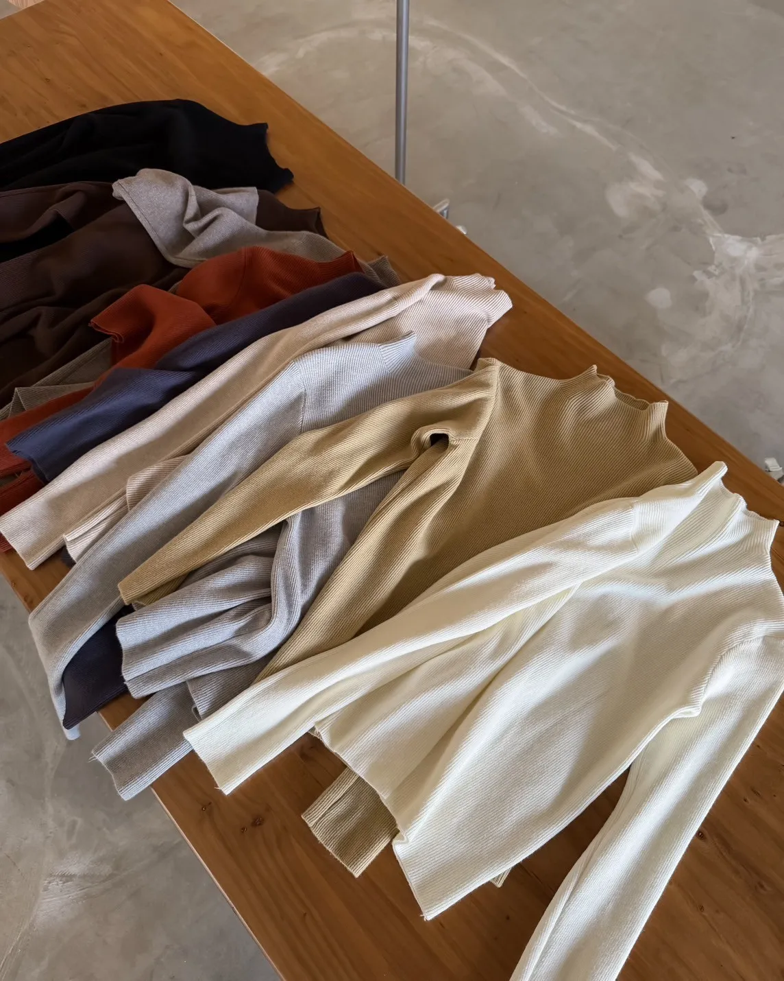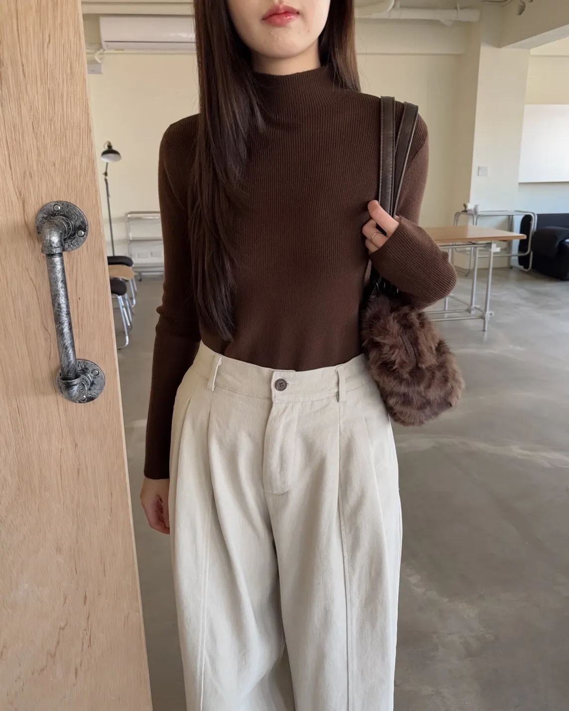 W0065(九色)彈!!!高領螺紋針織打底衣(米白/燕麥/咖啡/可可/芥黃/橘/深藍/灰/