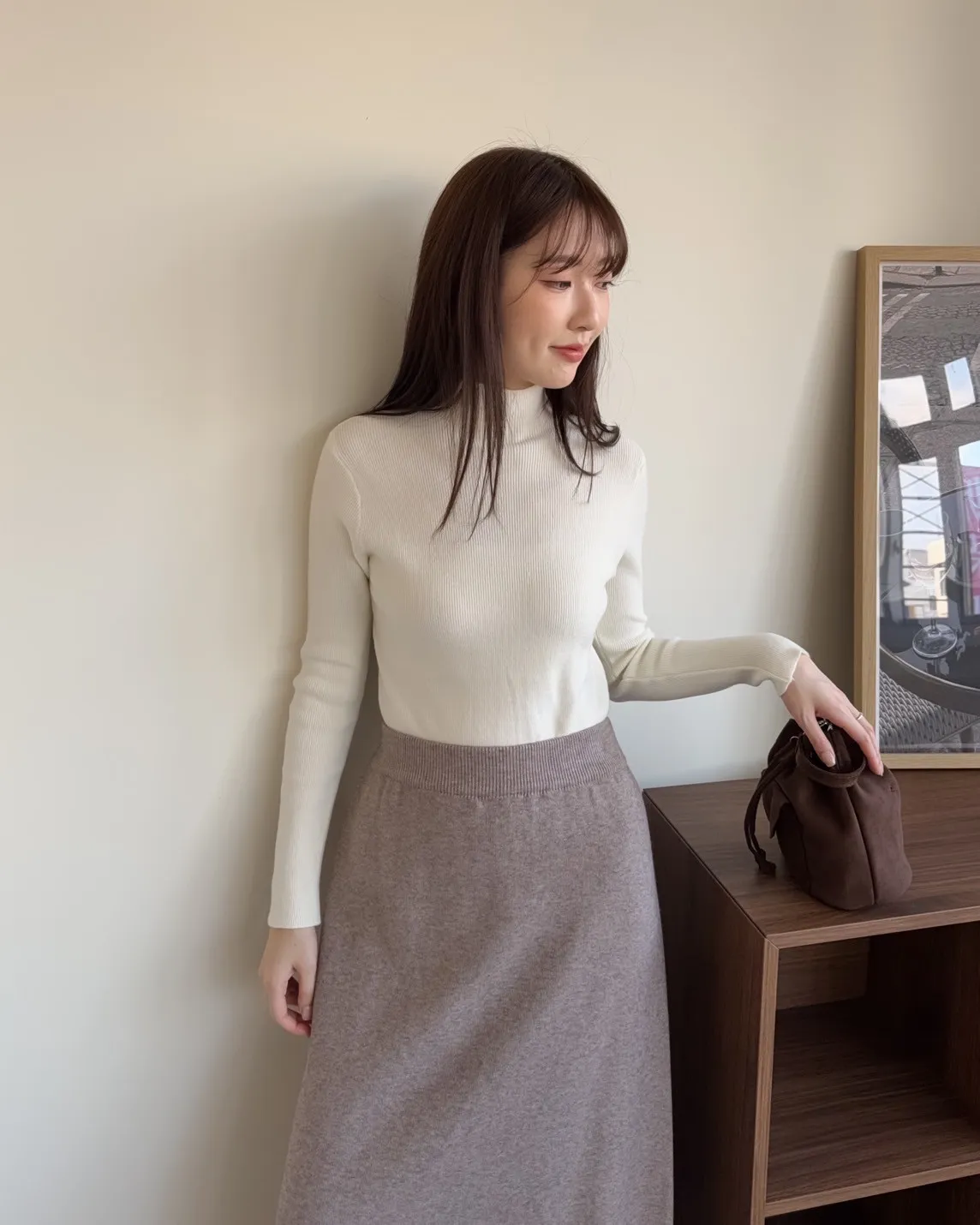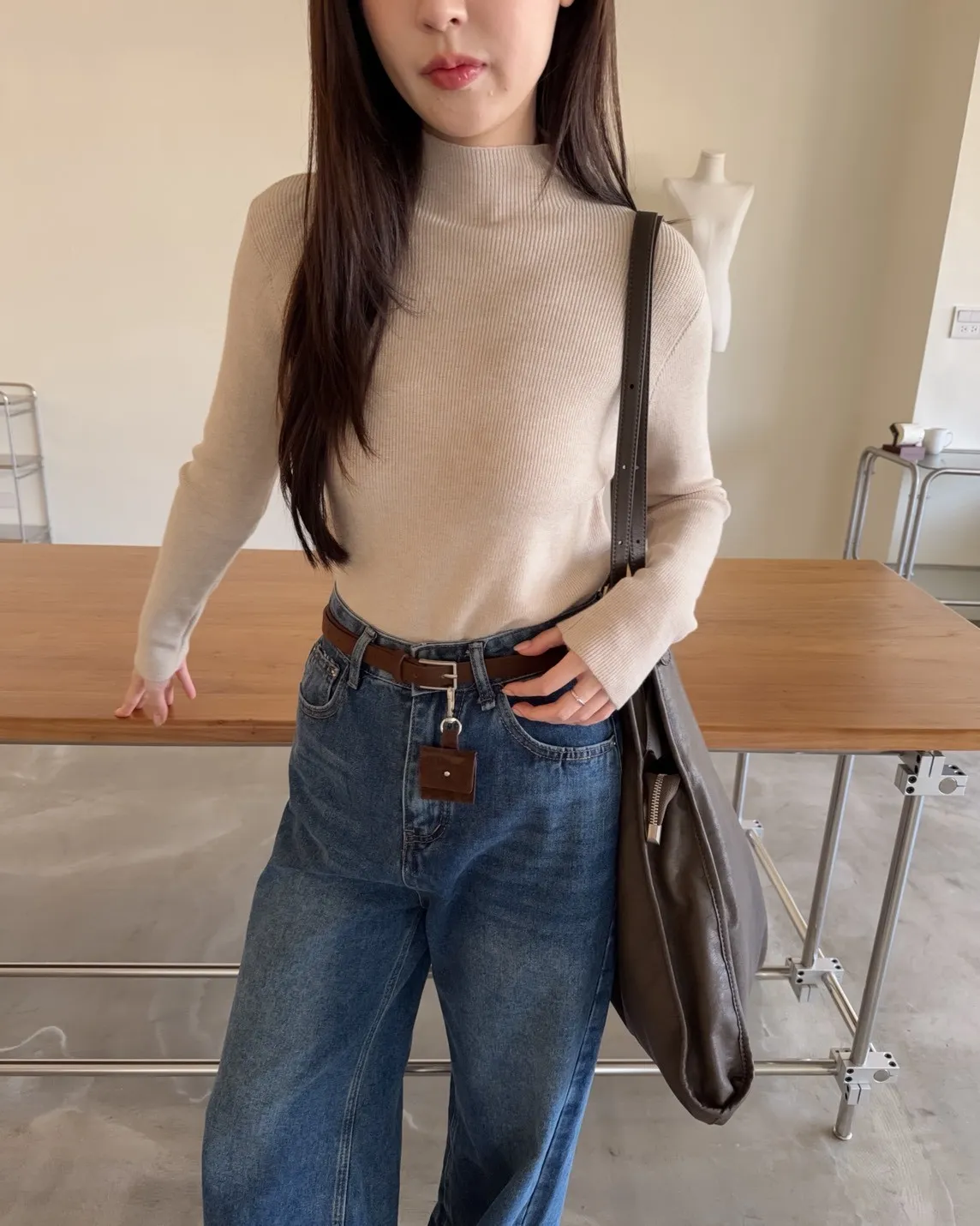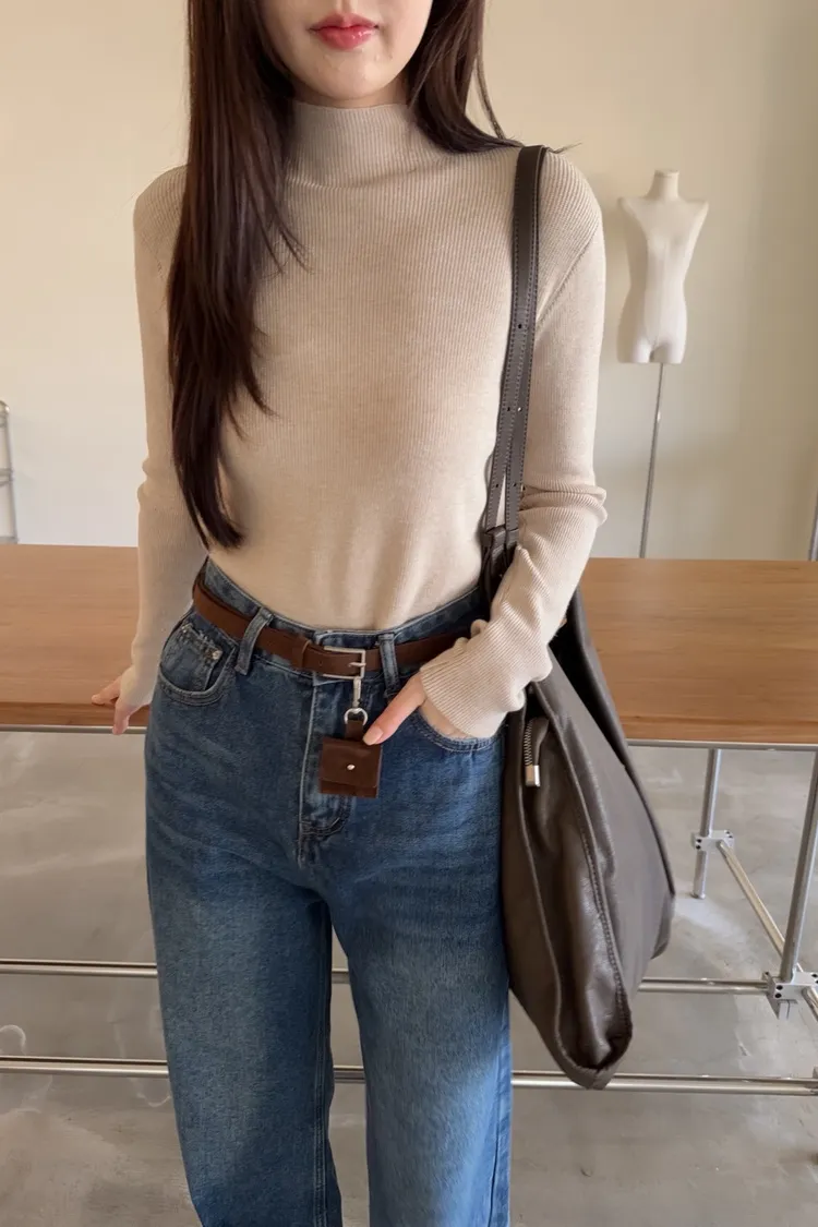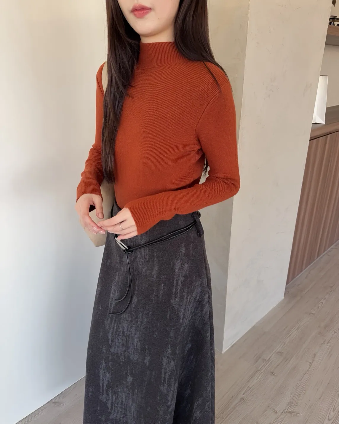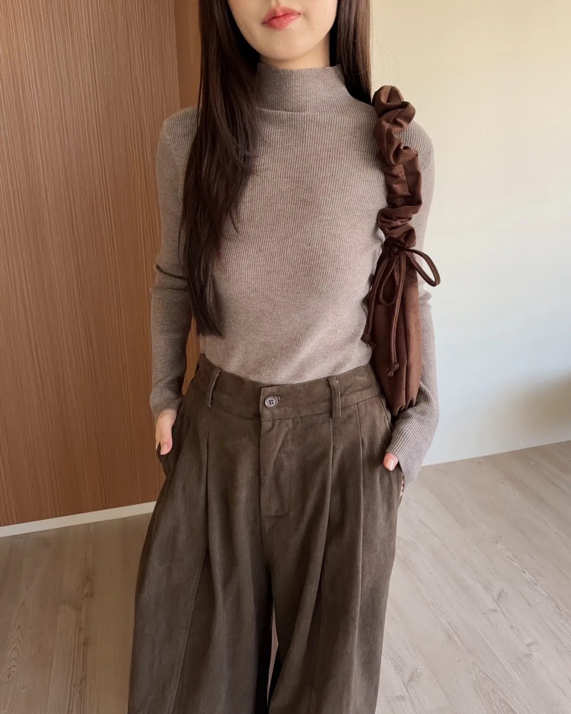 W0065(九色)彈!!!高領螺紋針織打底衣(米白/燕麥/咖啡/可可/芥黃/橘/深藍/灰/