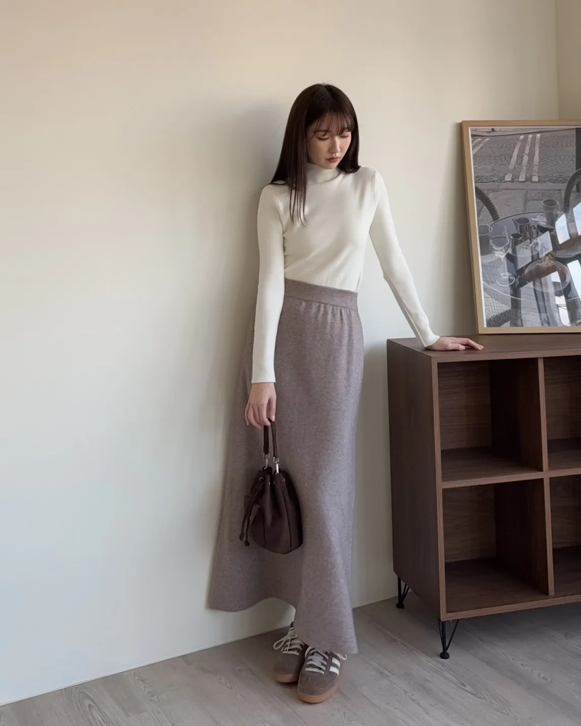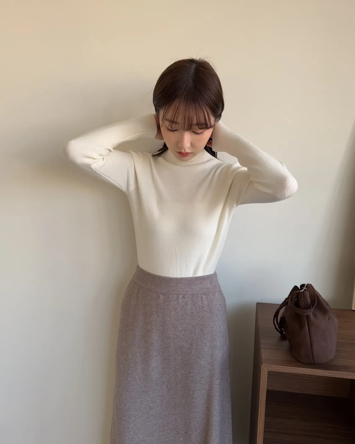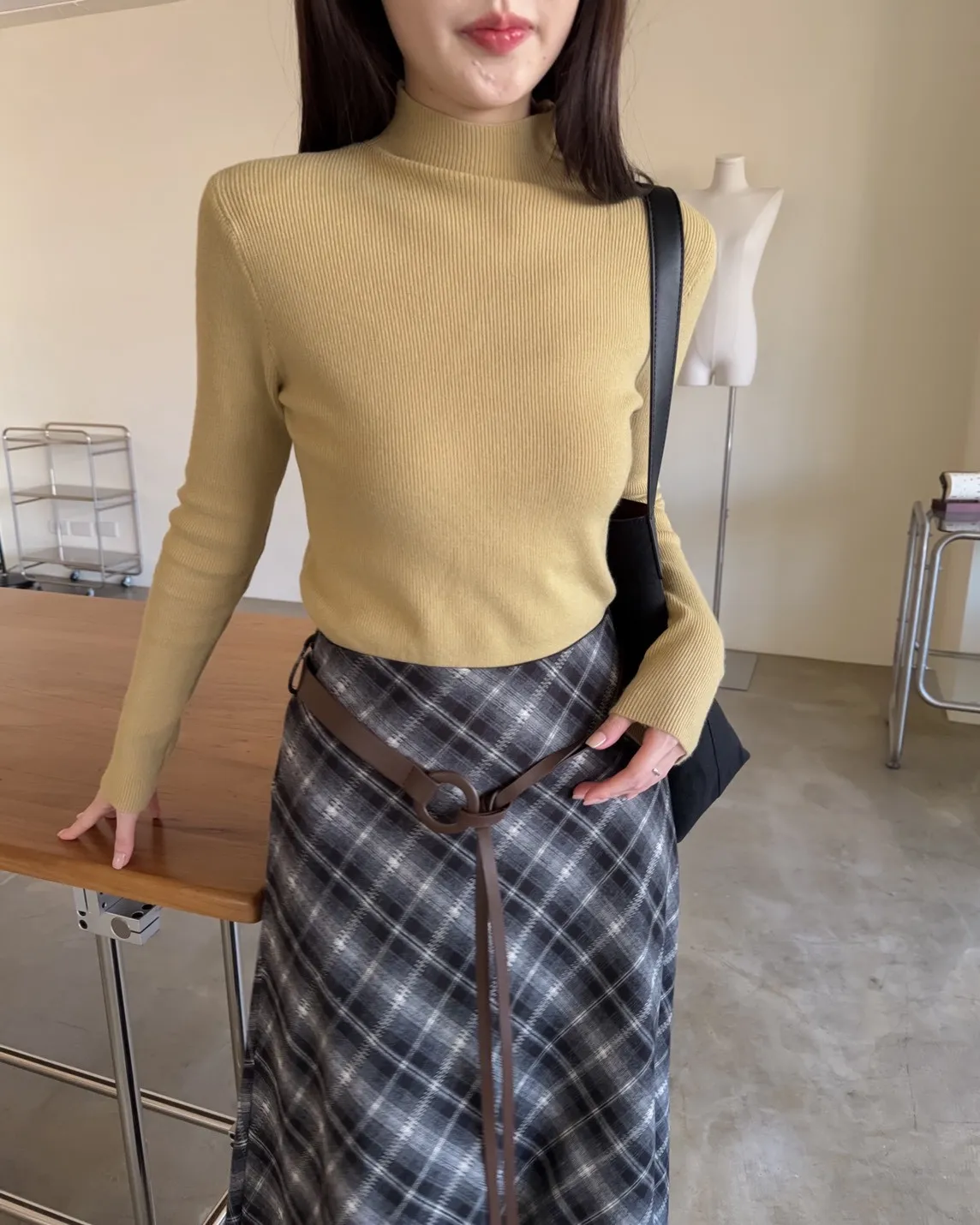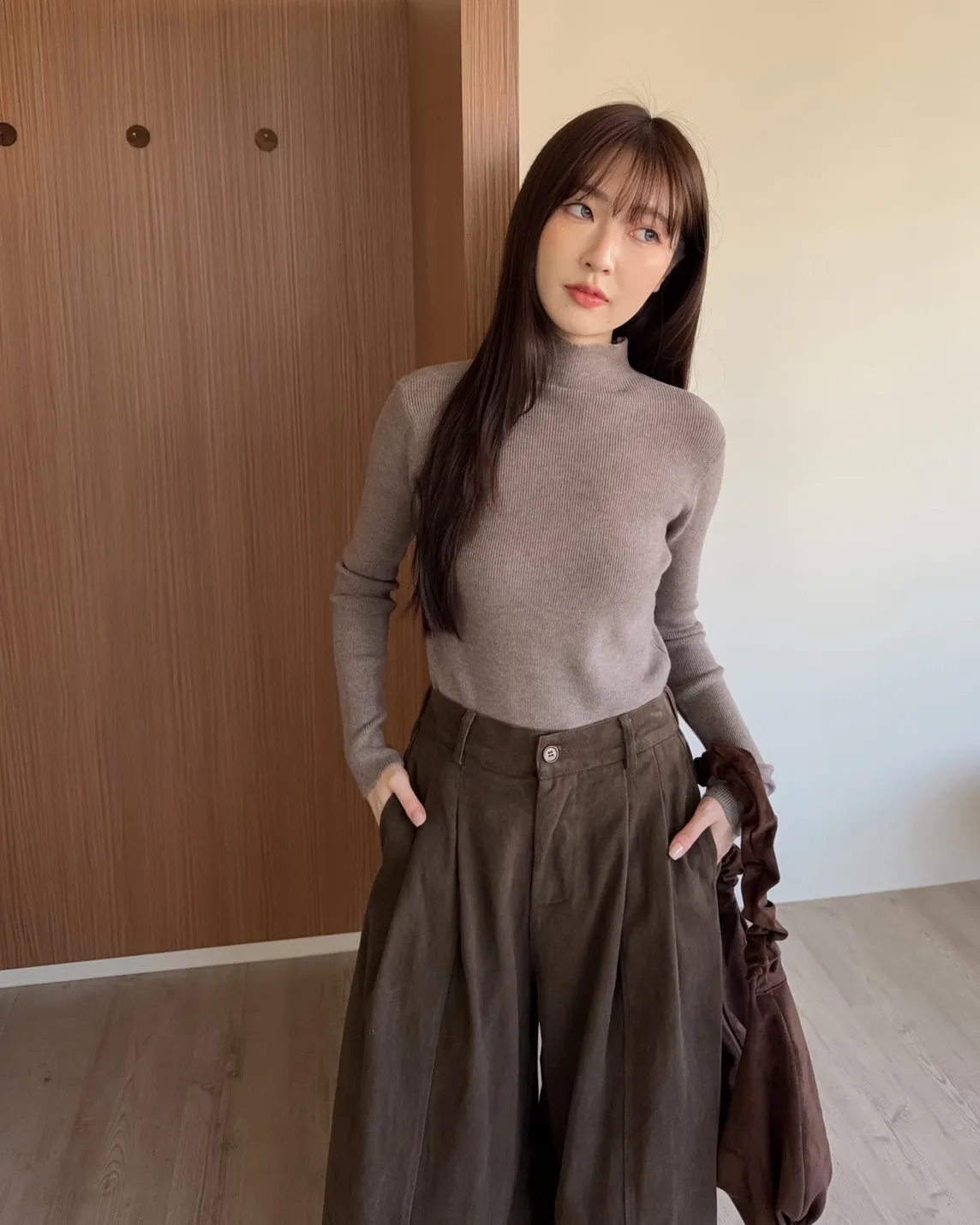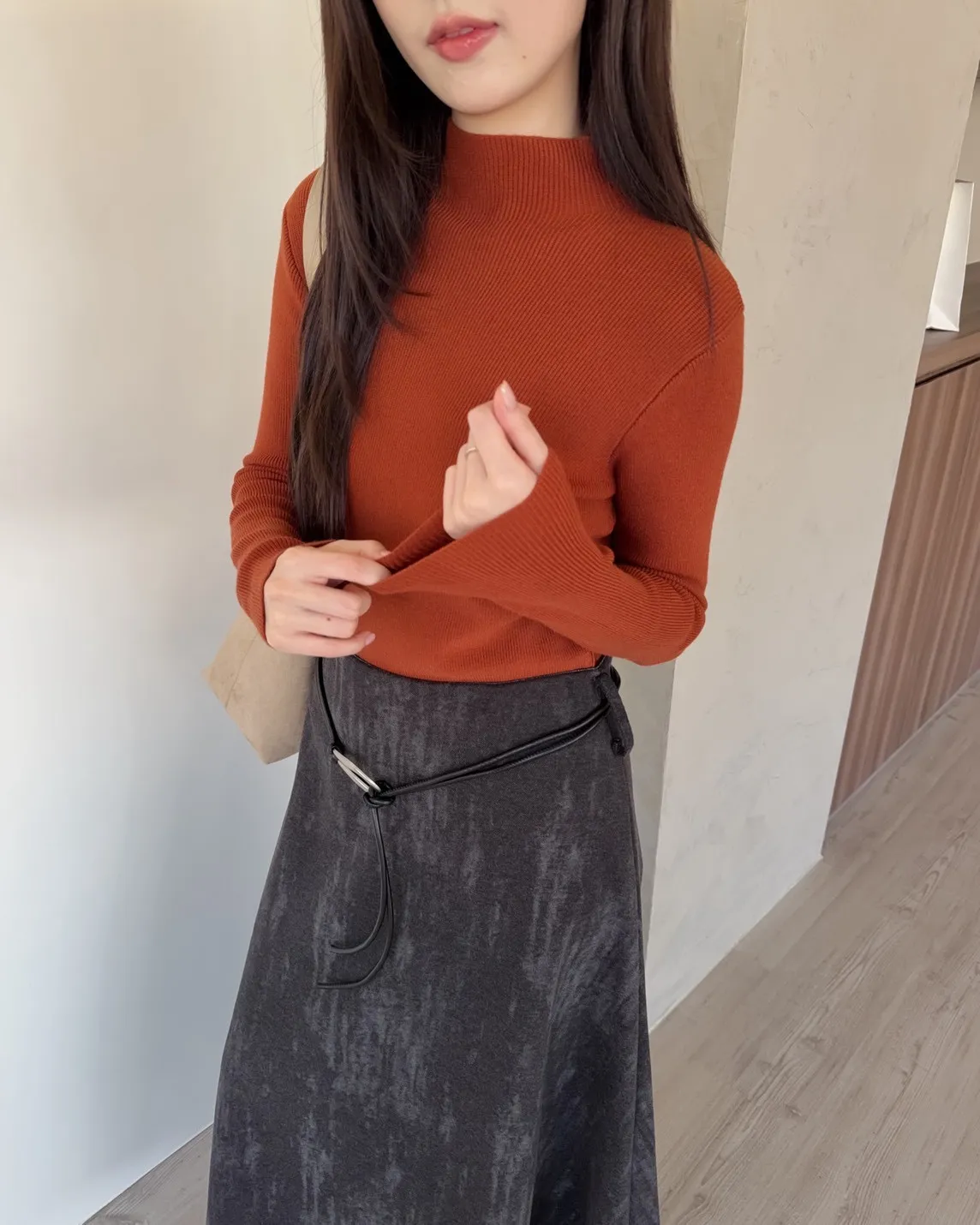 W0065(九色)彈!!!高領螺紋針織打底衣(米白/燕麥/咖啡/可可/芥黃/橘/深藍/灰/