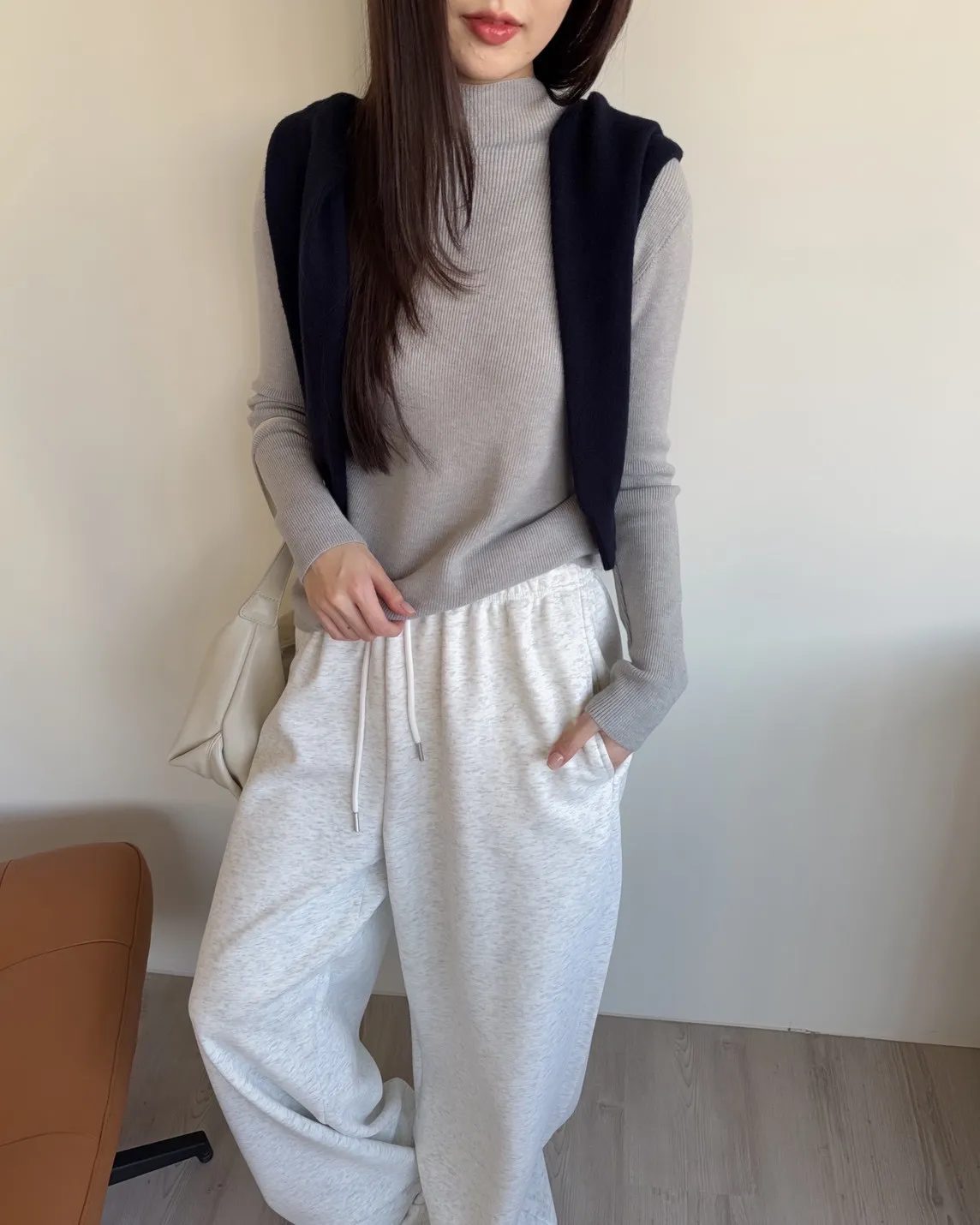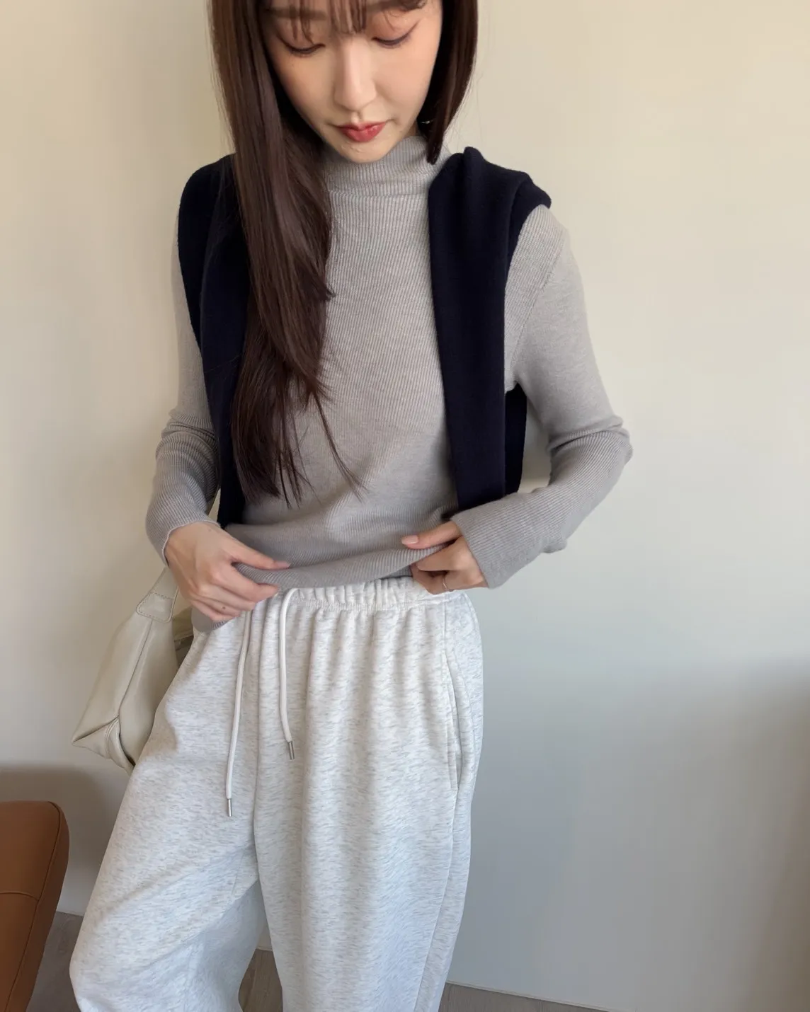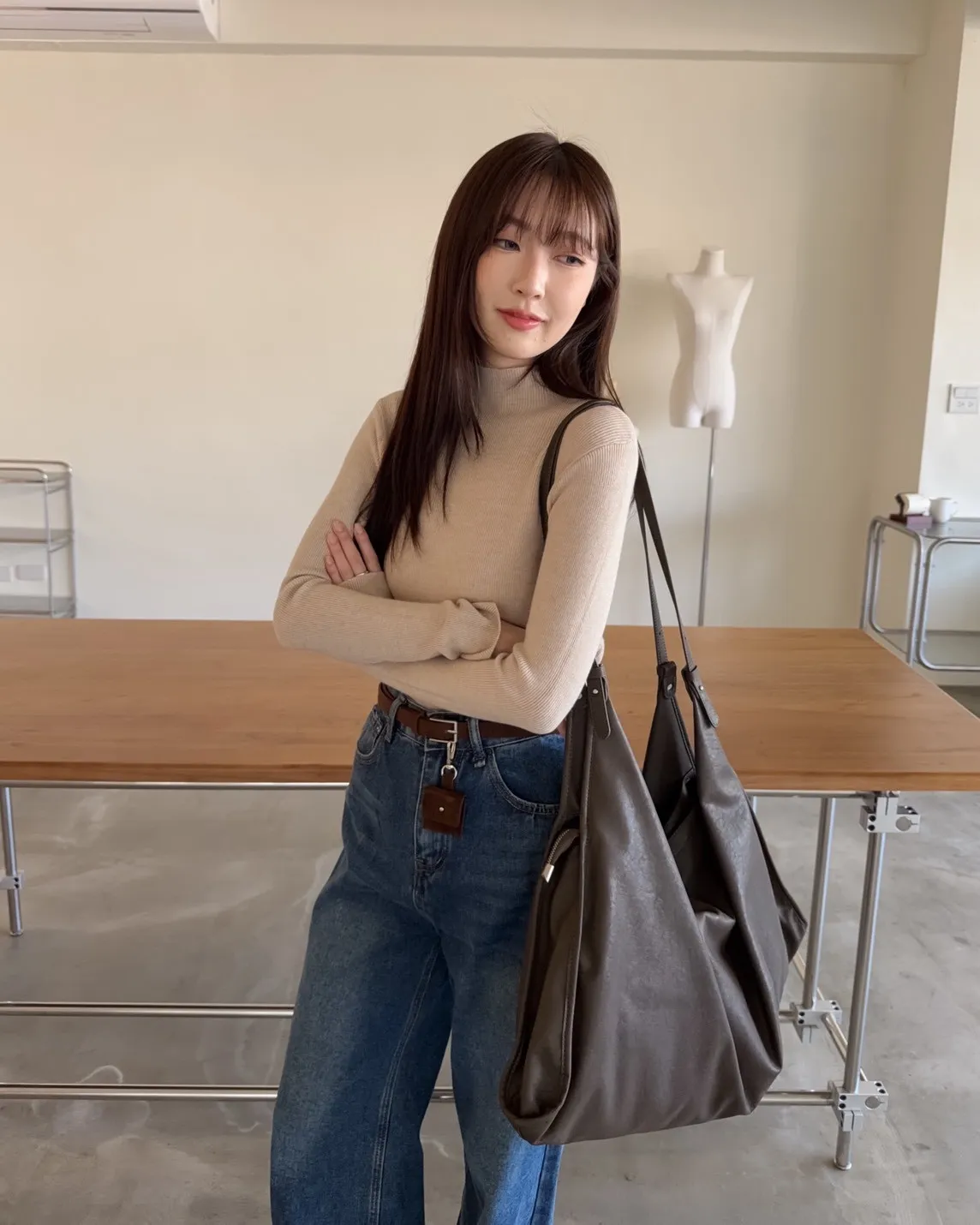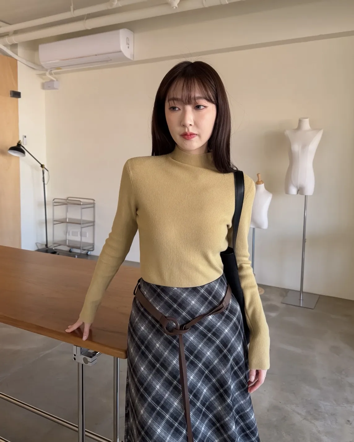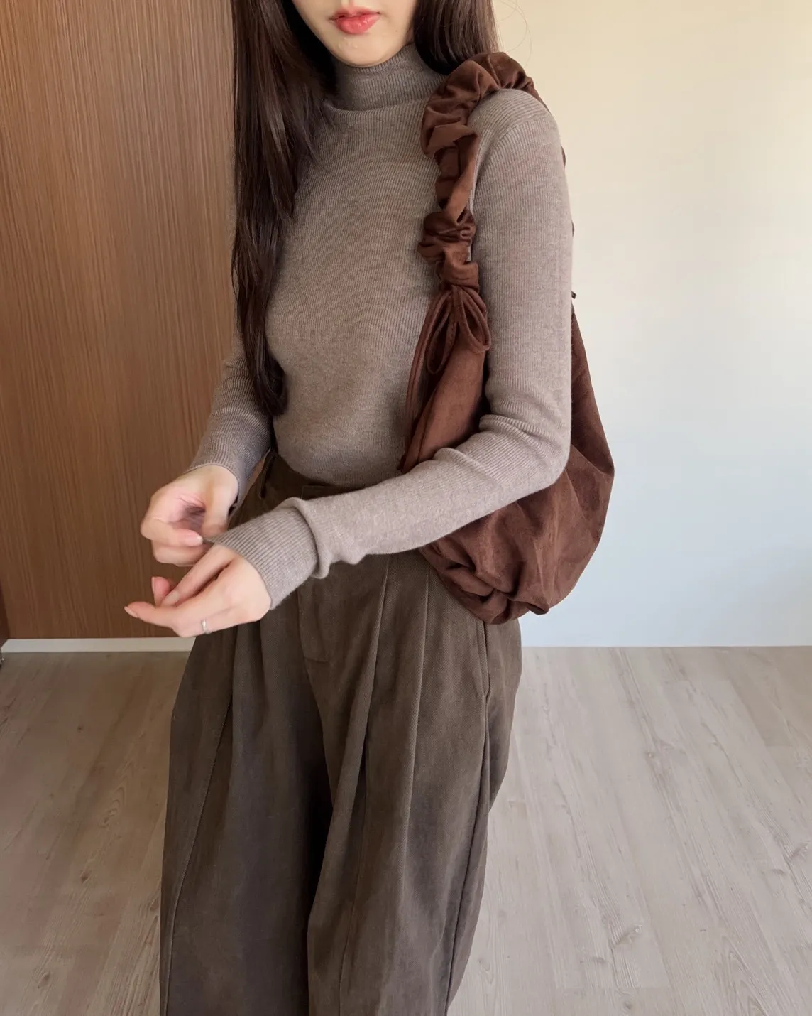 W0065(九色)彈!!!高領螺紋針織打底衣(米白/燕麥/咖啡/可可/芥黃/橘/深藍/灰/