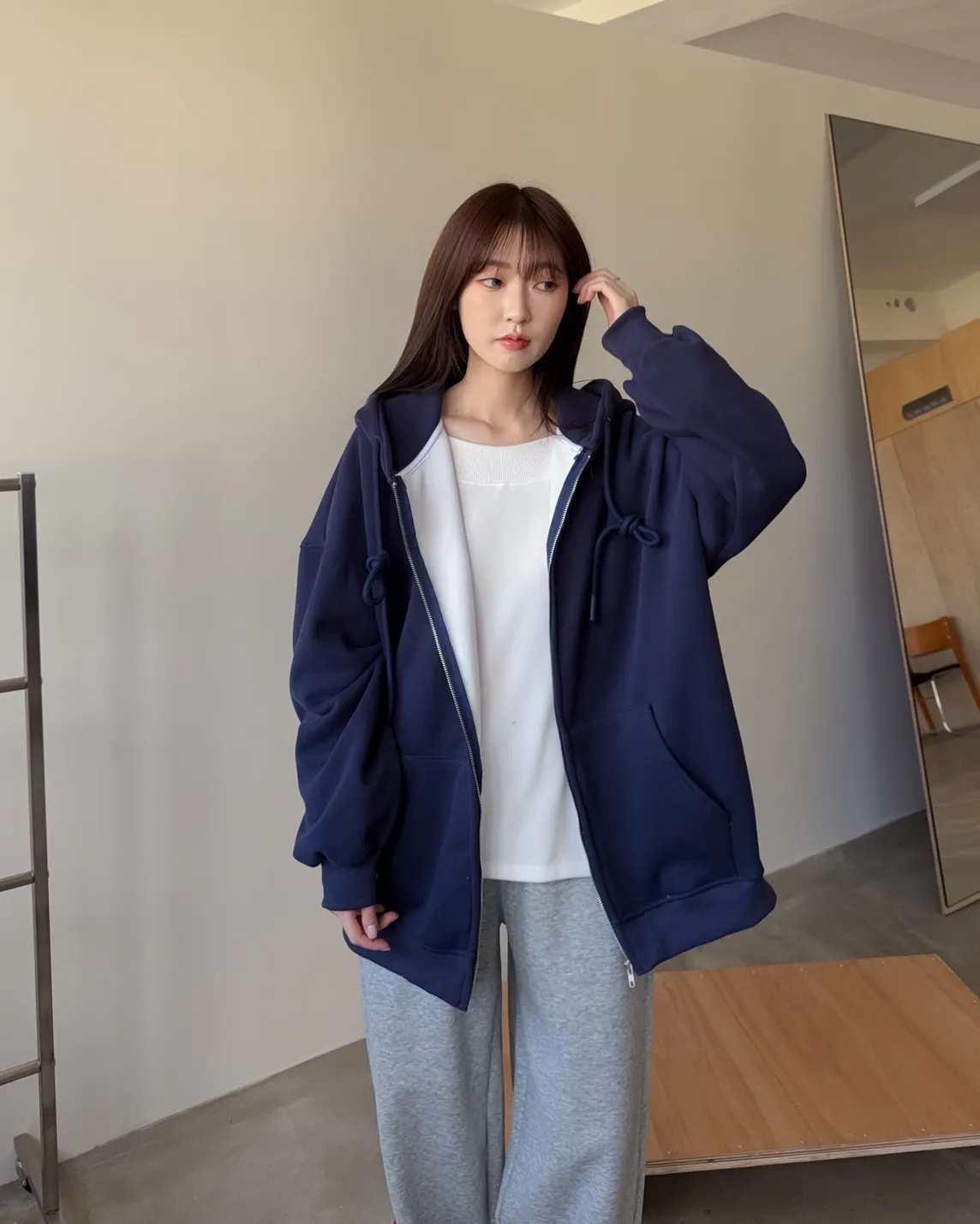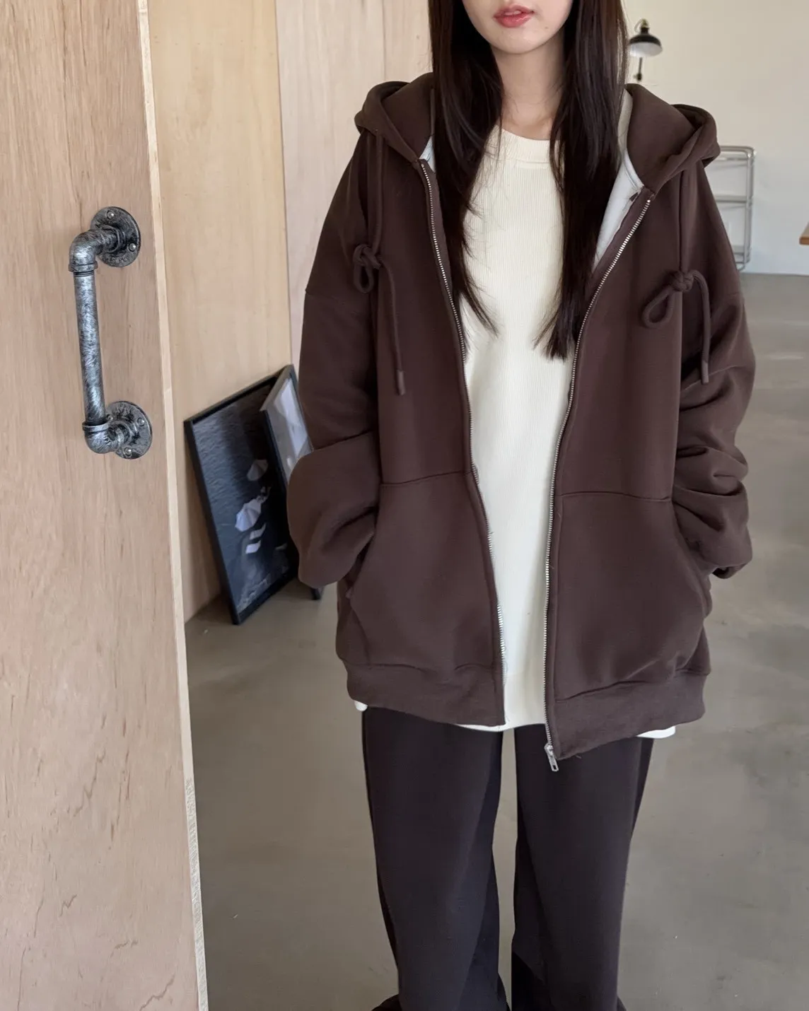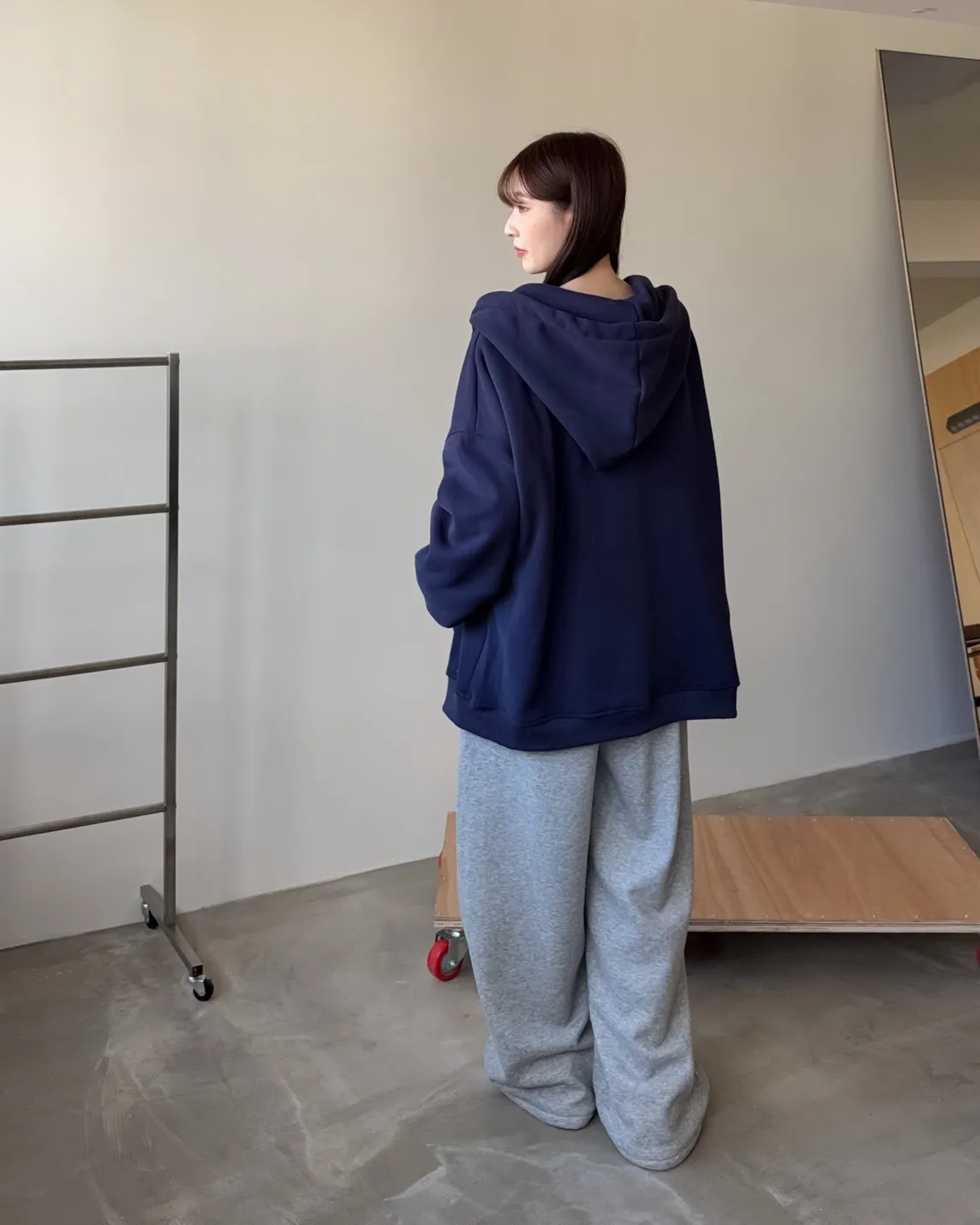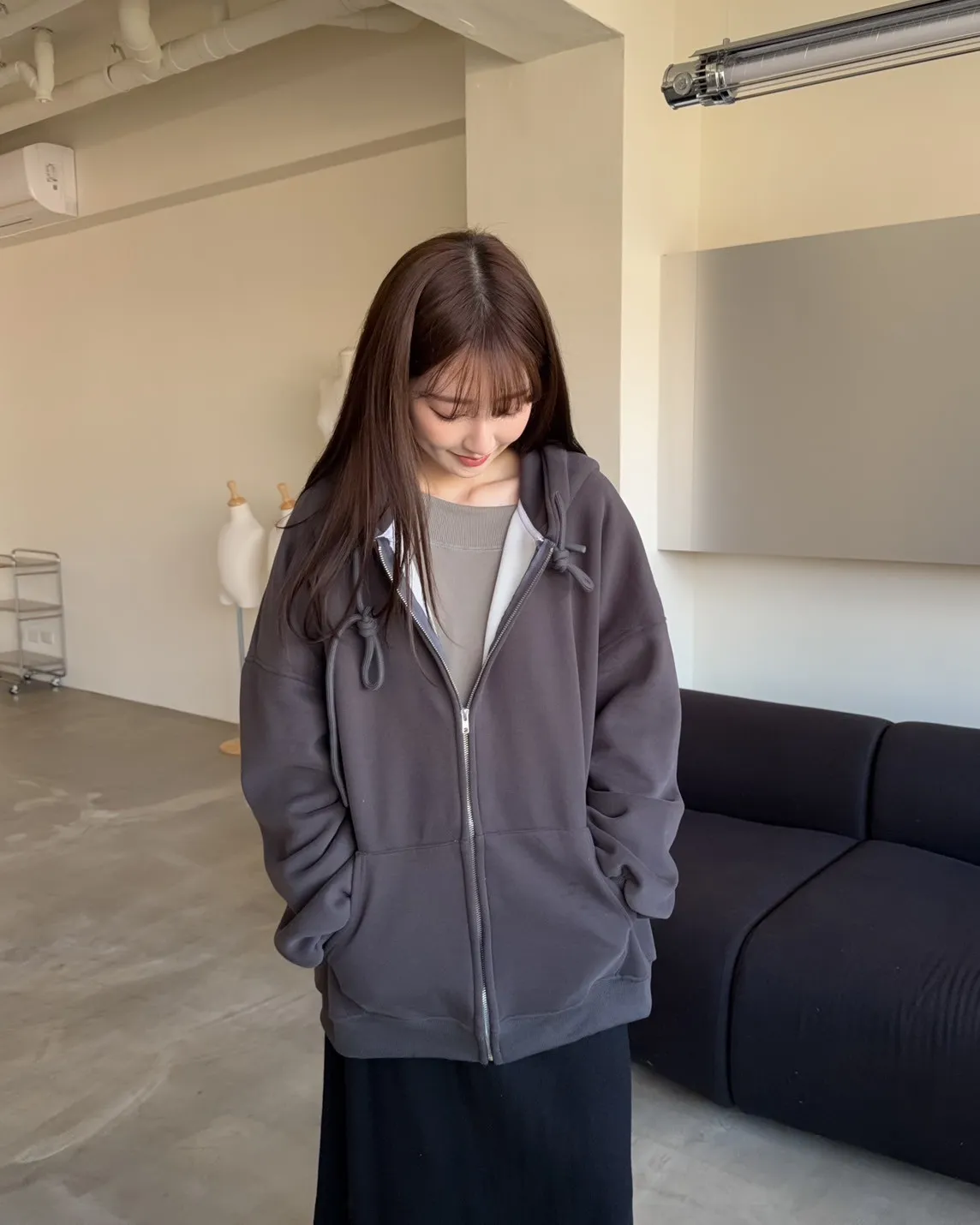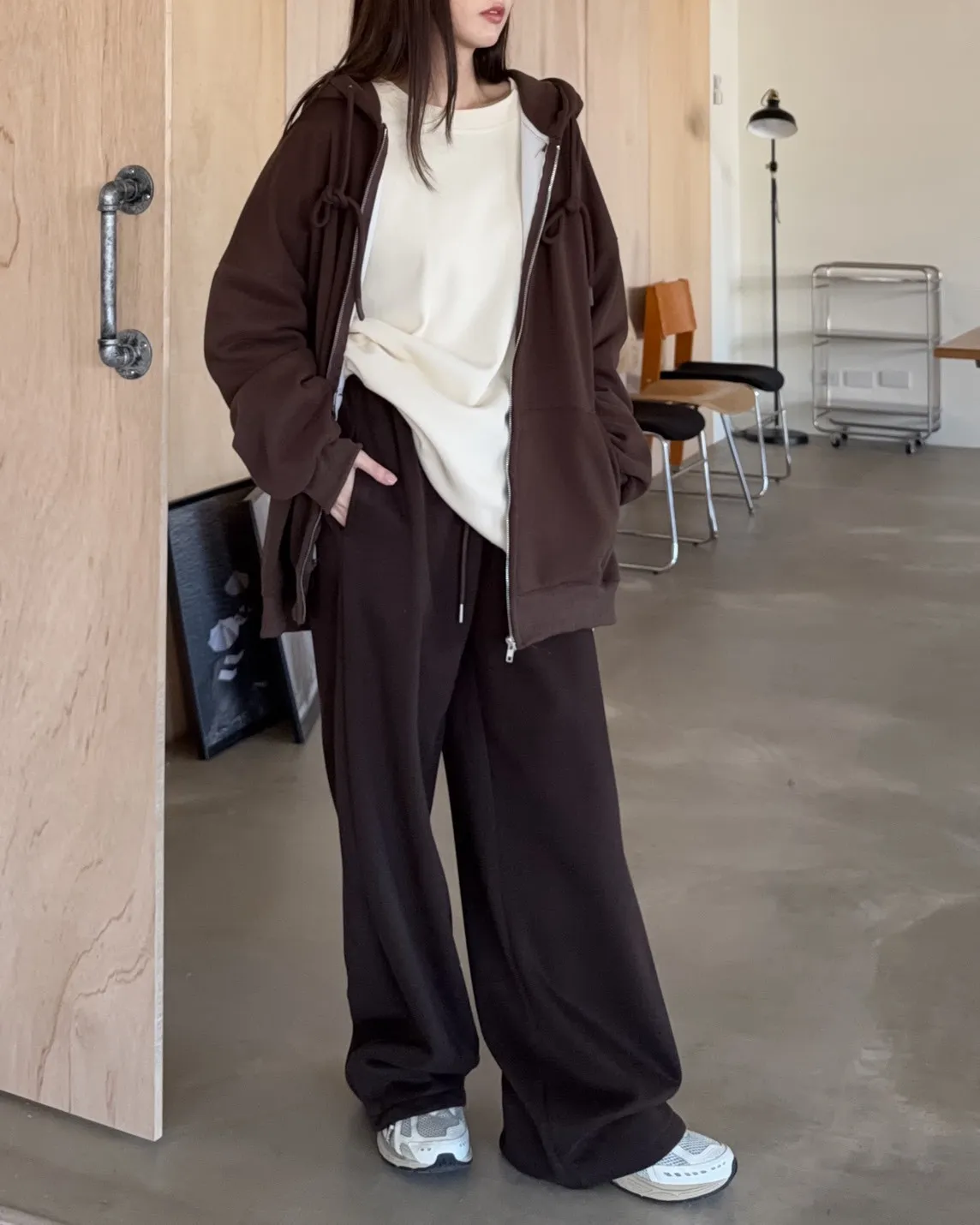 抽繩連帽 內刷絨毛 兩側口袋 寬鬆落肩