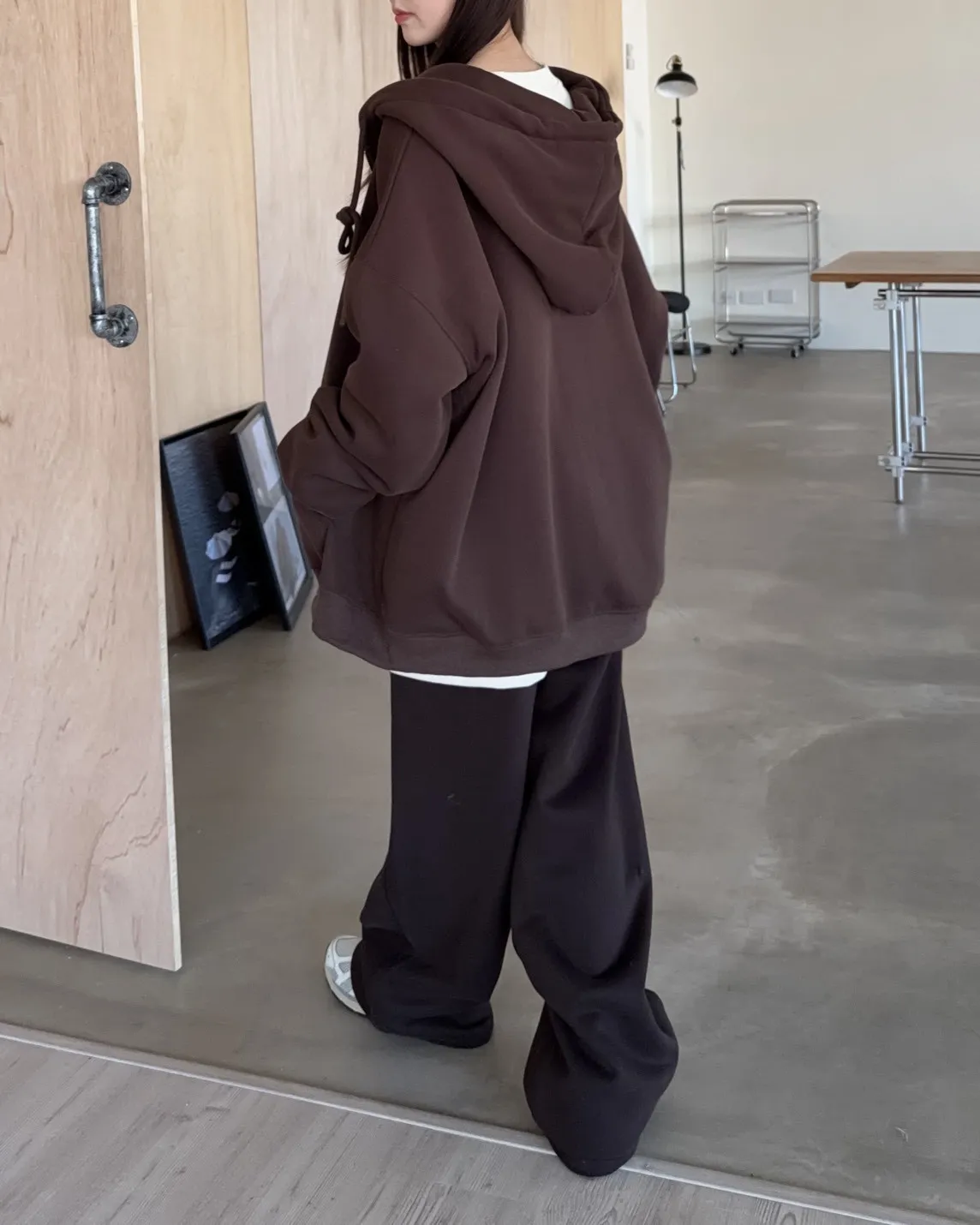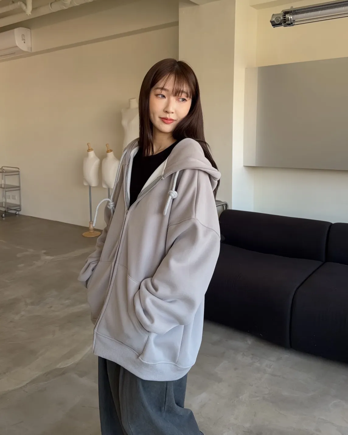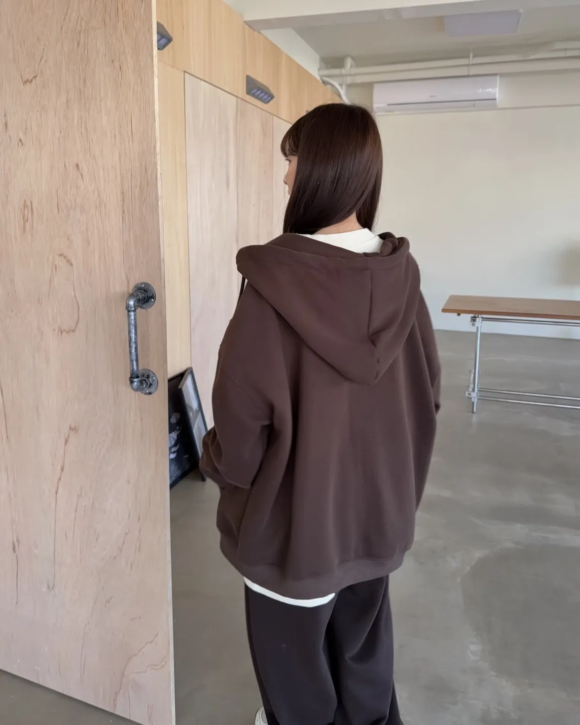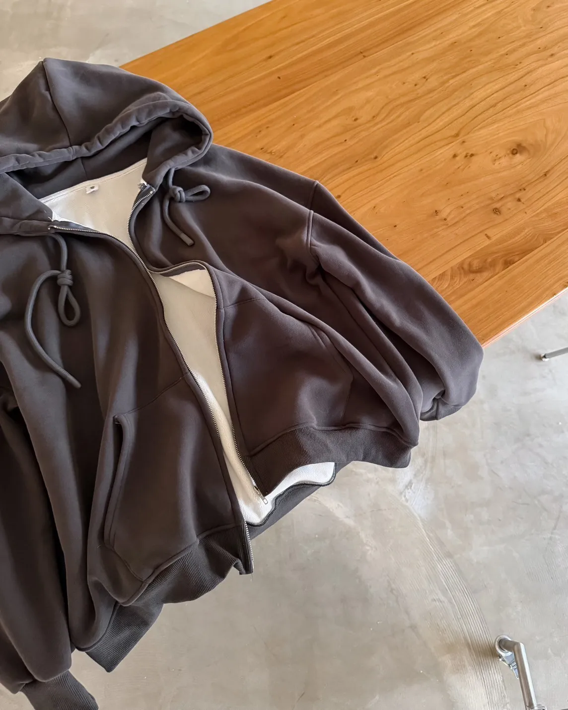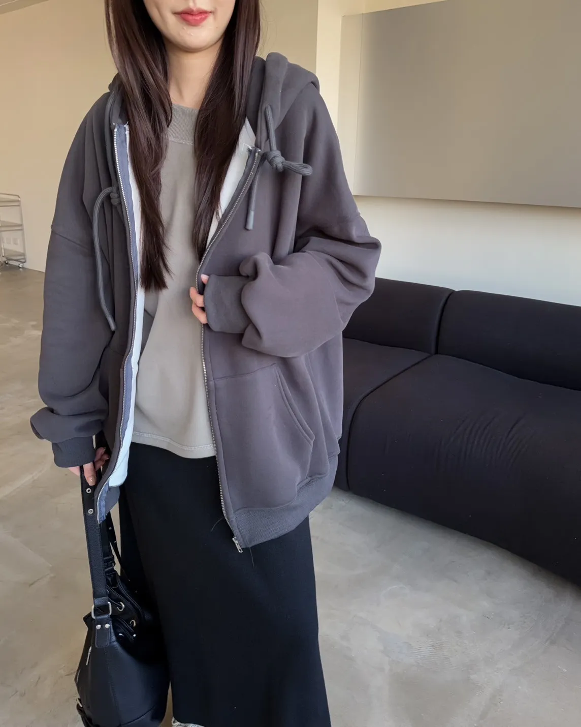 抽繩連帽 內刷絨毛 兩側口袋 寬鬆落肩
