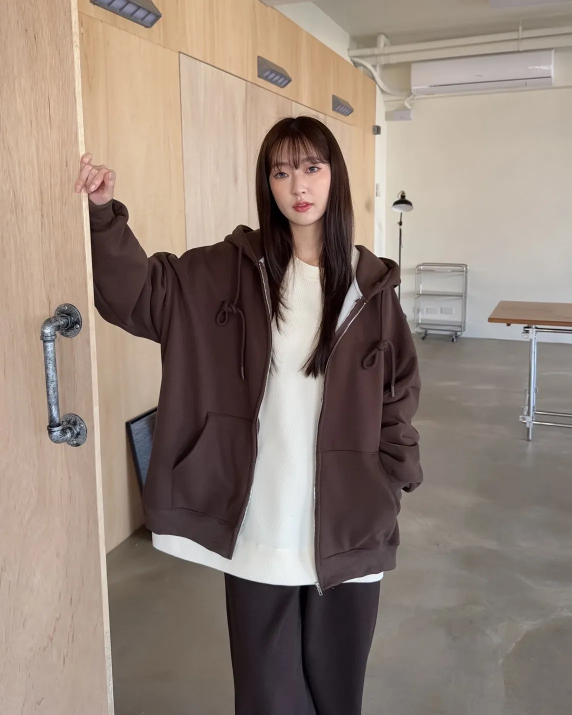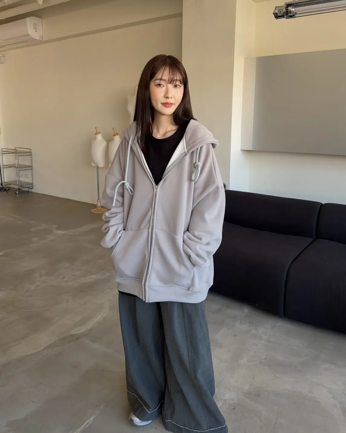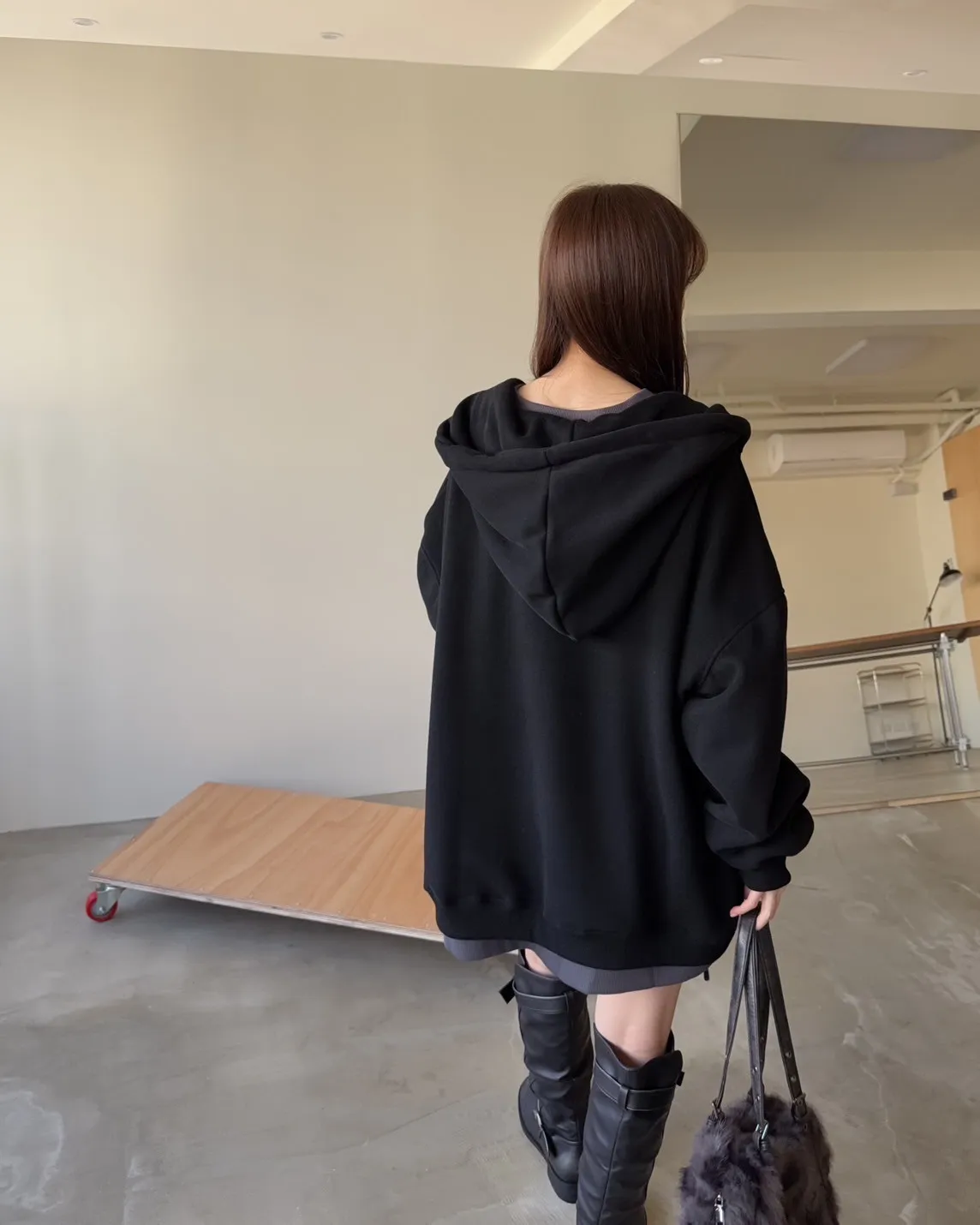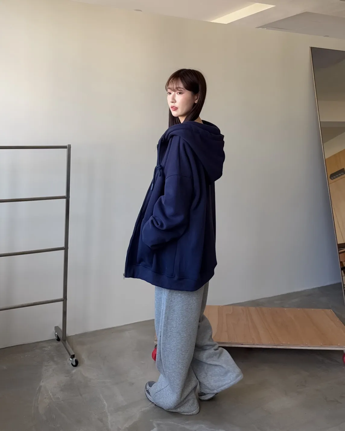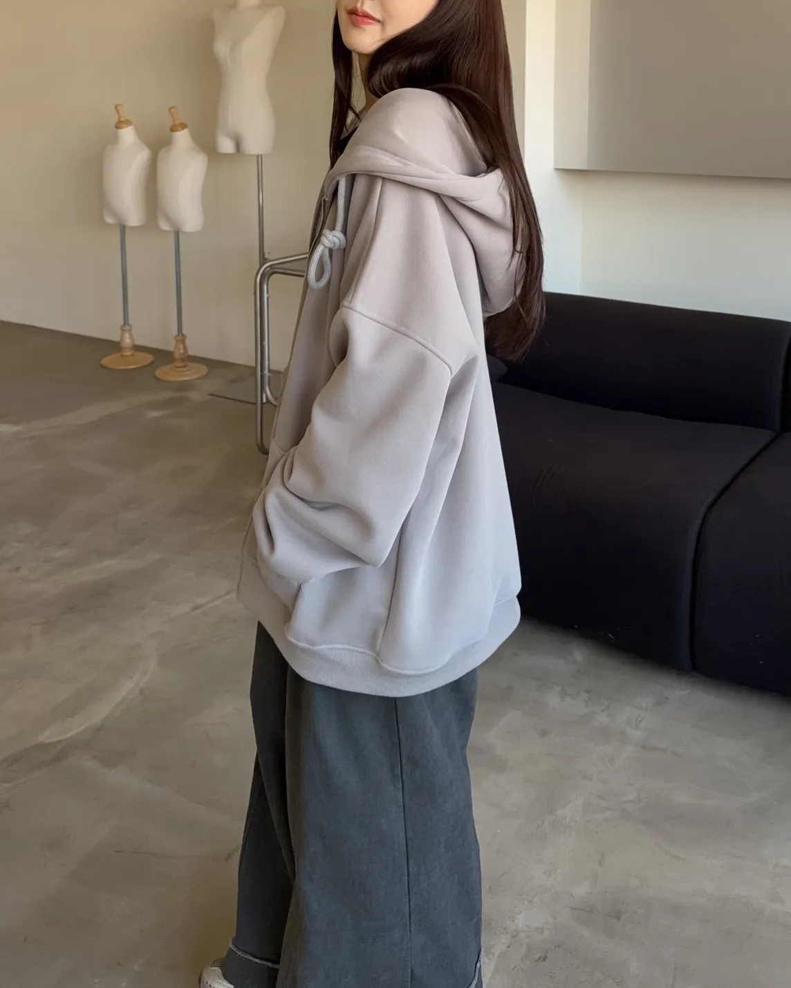 抽繩連帽 內刷絨毛 兩側口袋 寬鬆落肩