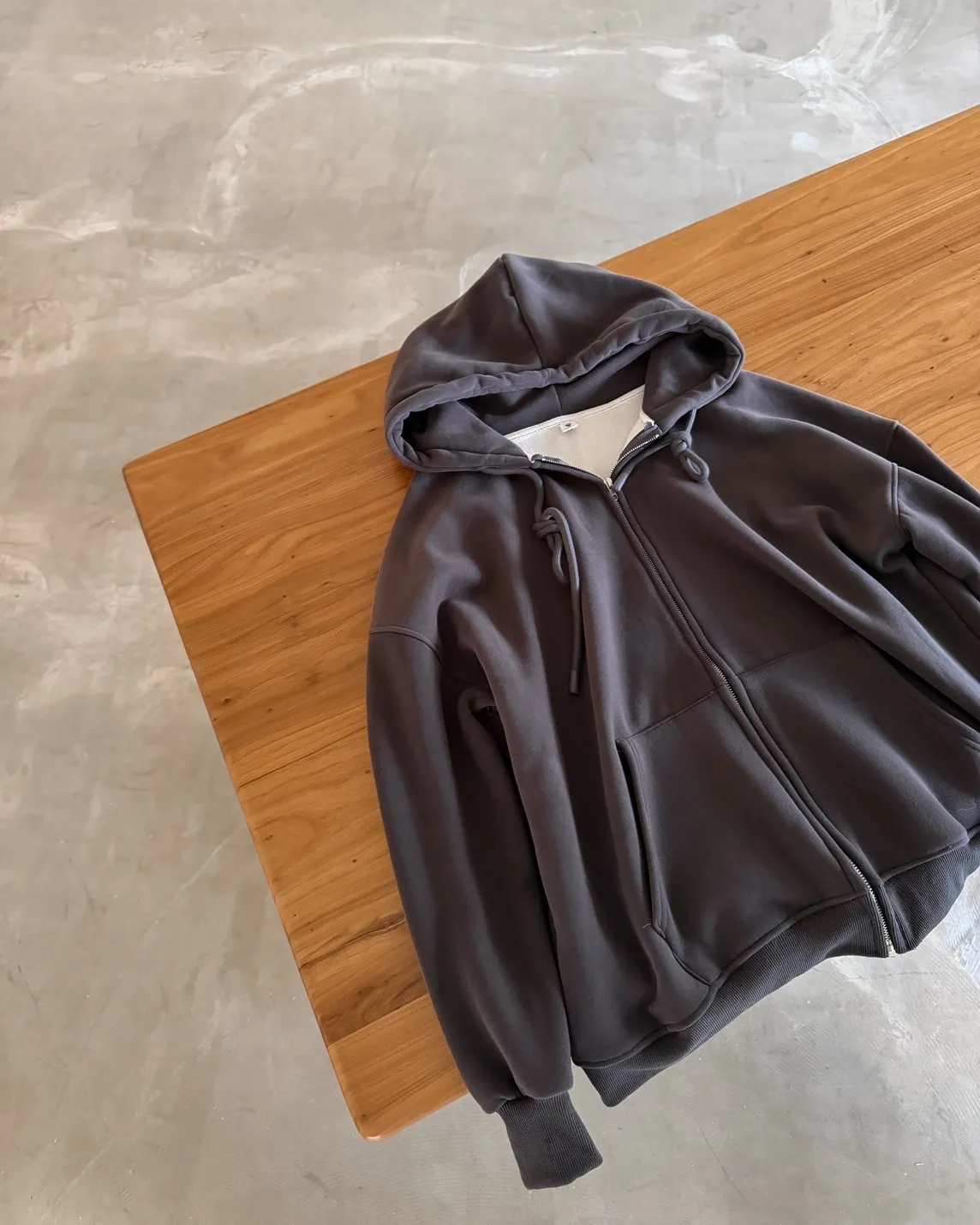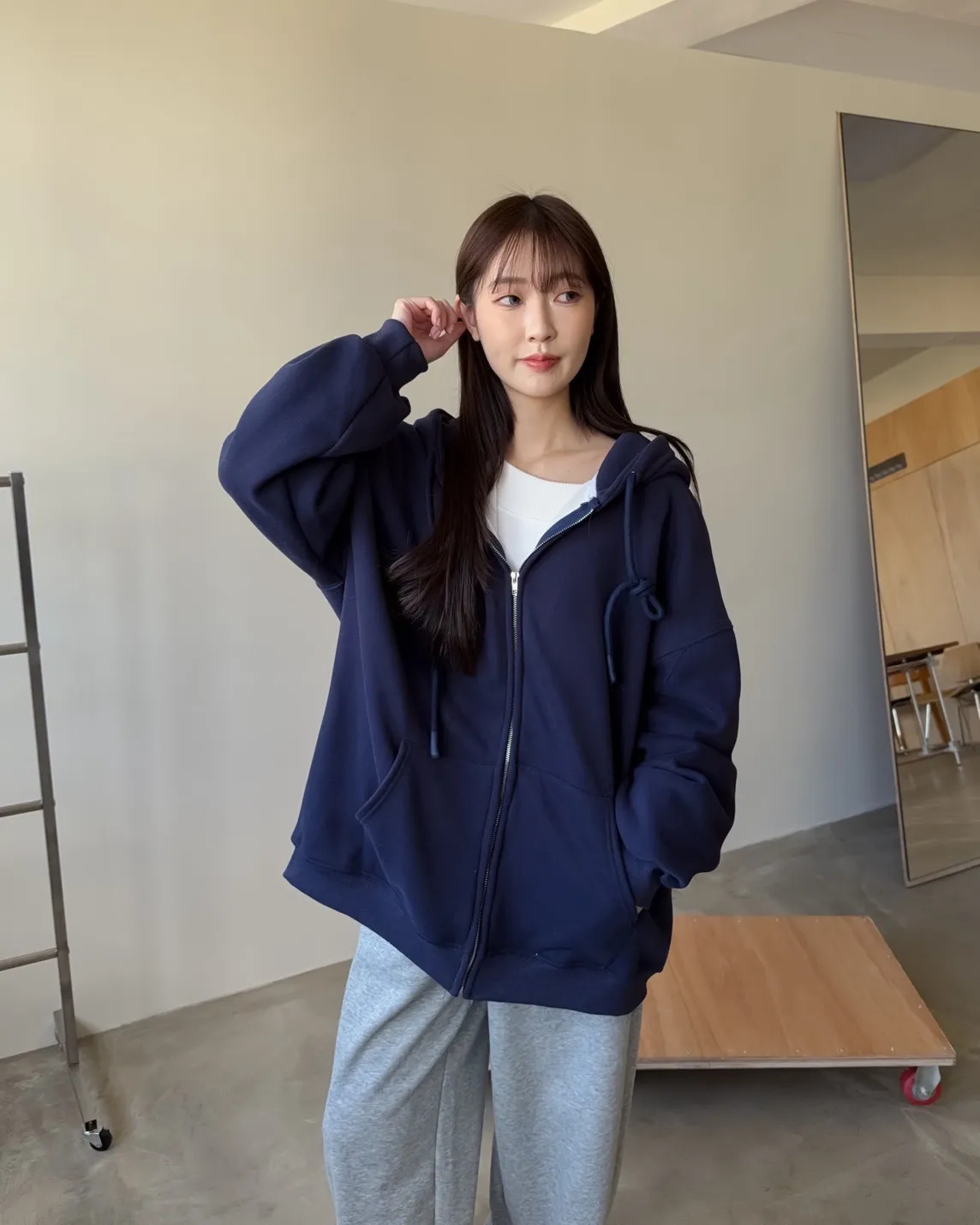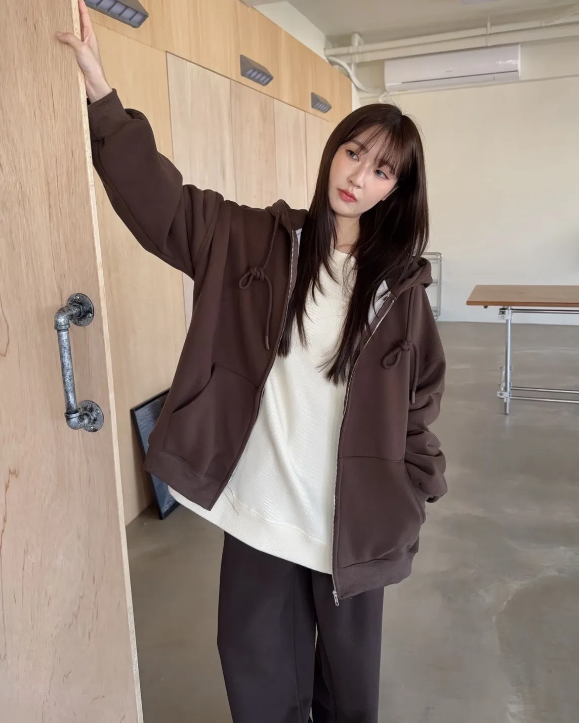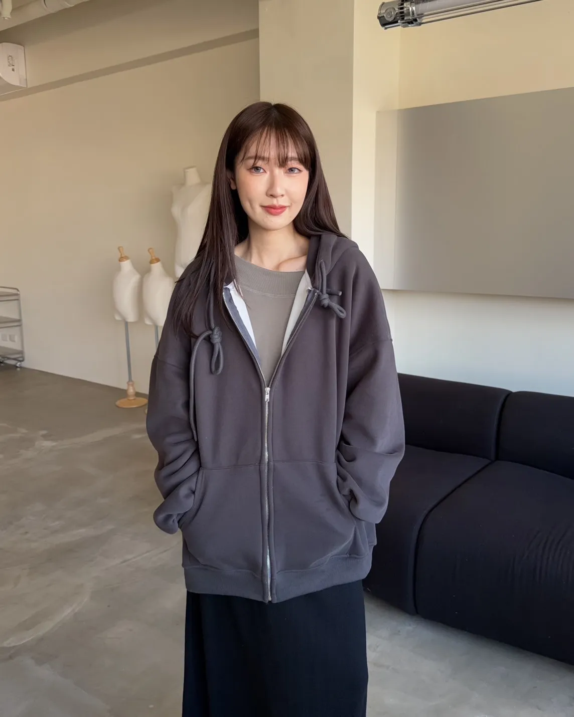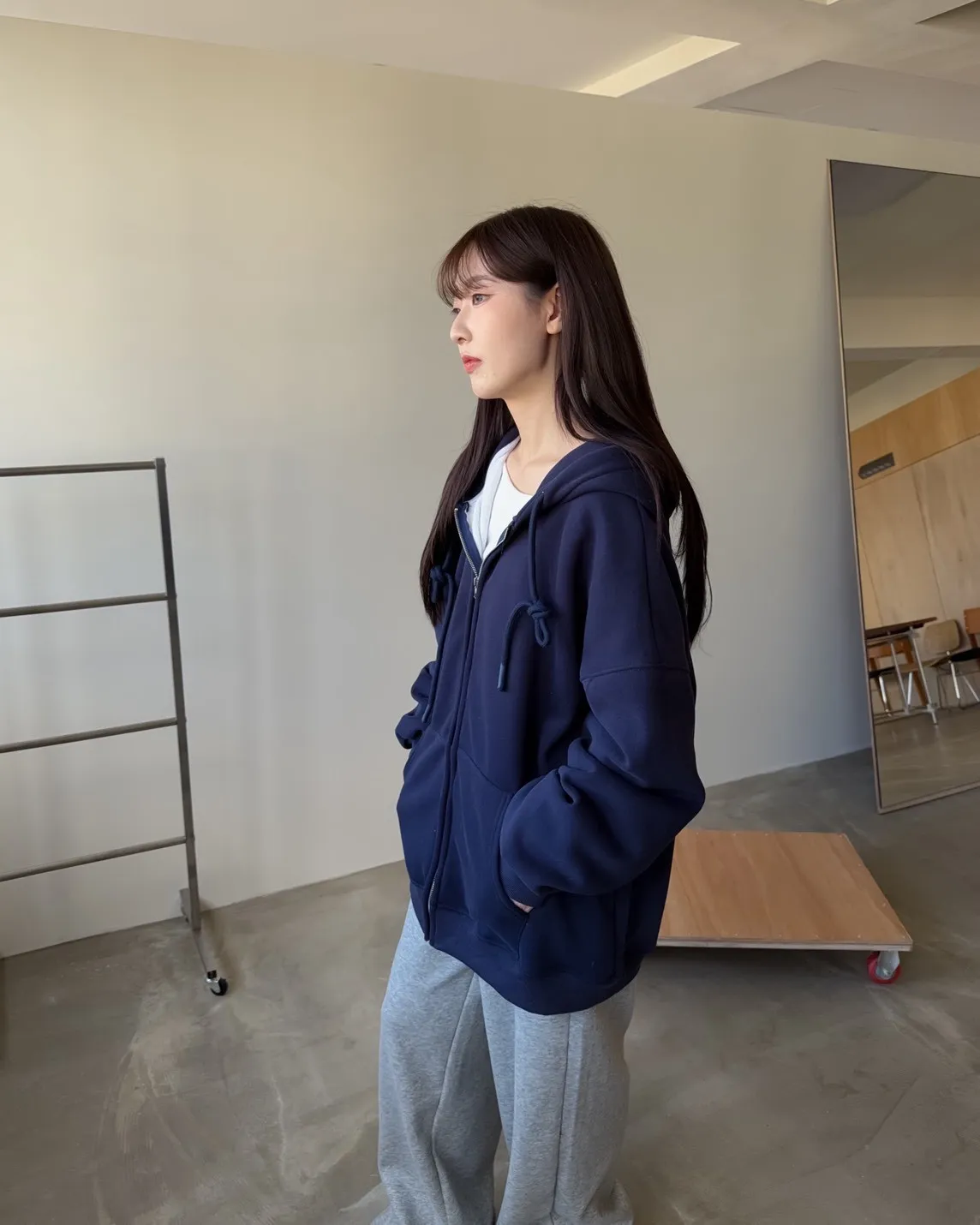 抽繩連帽 內刷絨毛 兩側口袋 寬鬆落肩