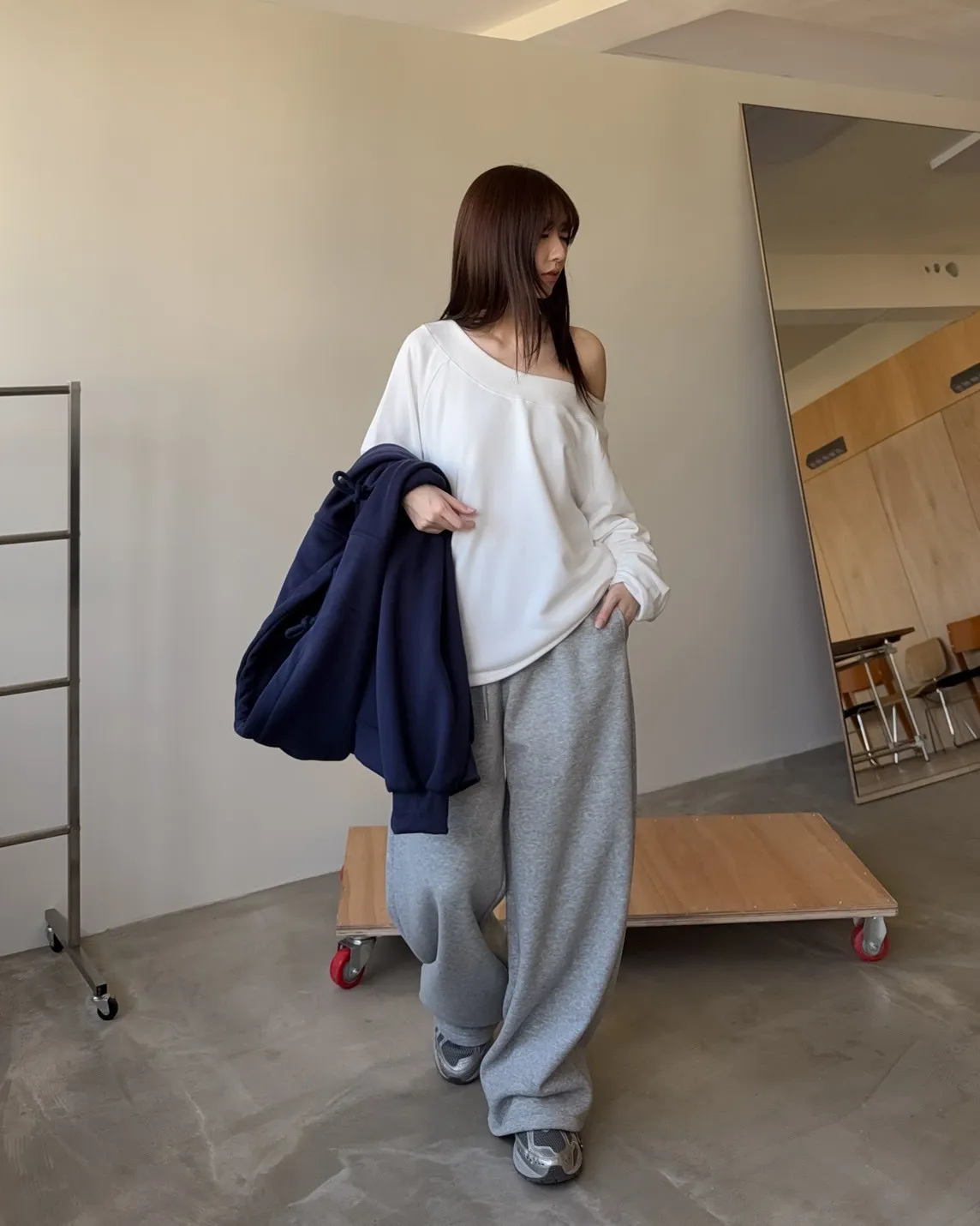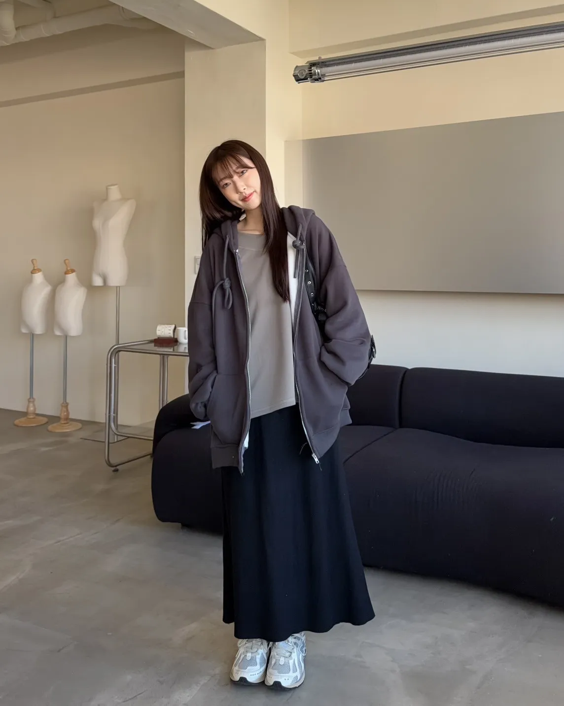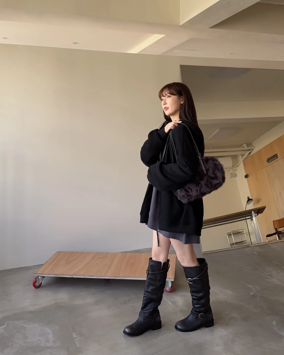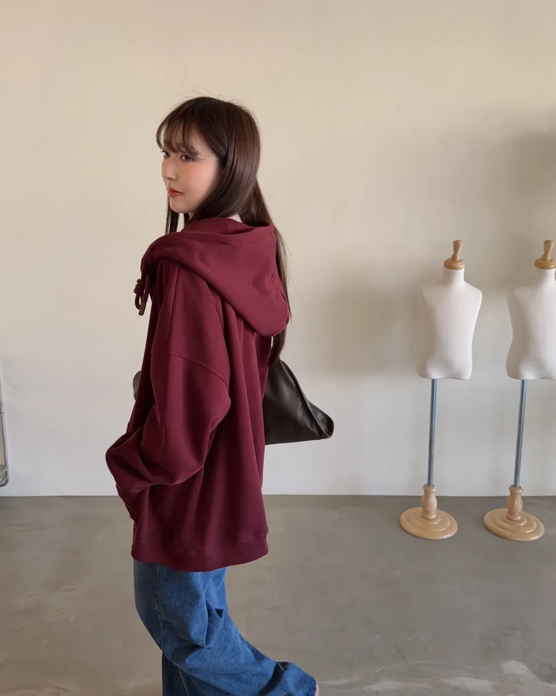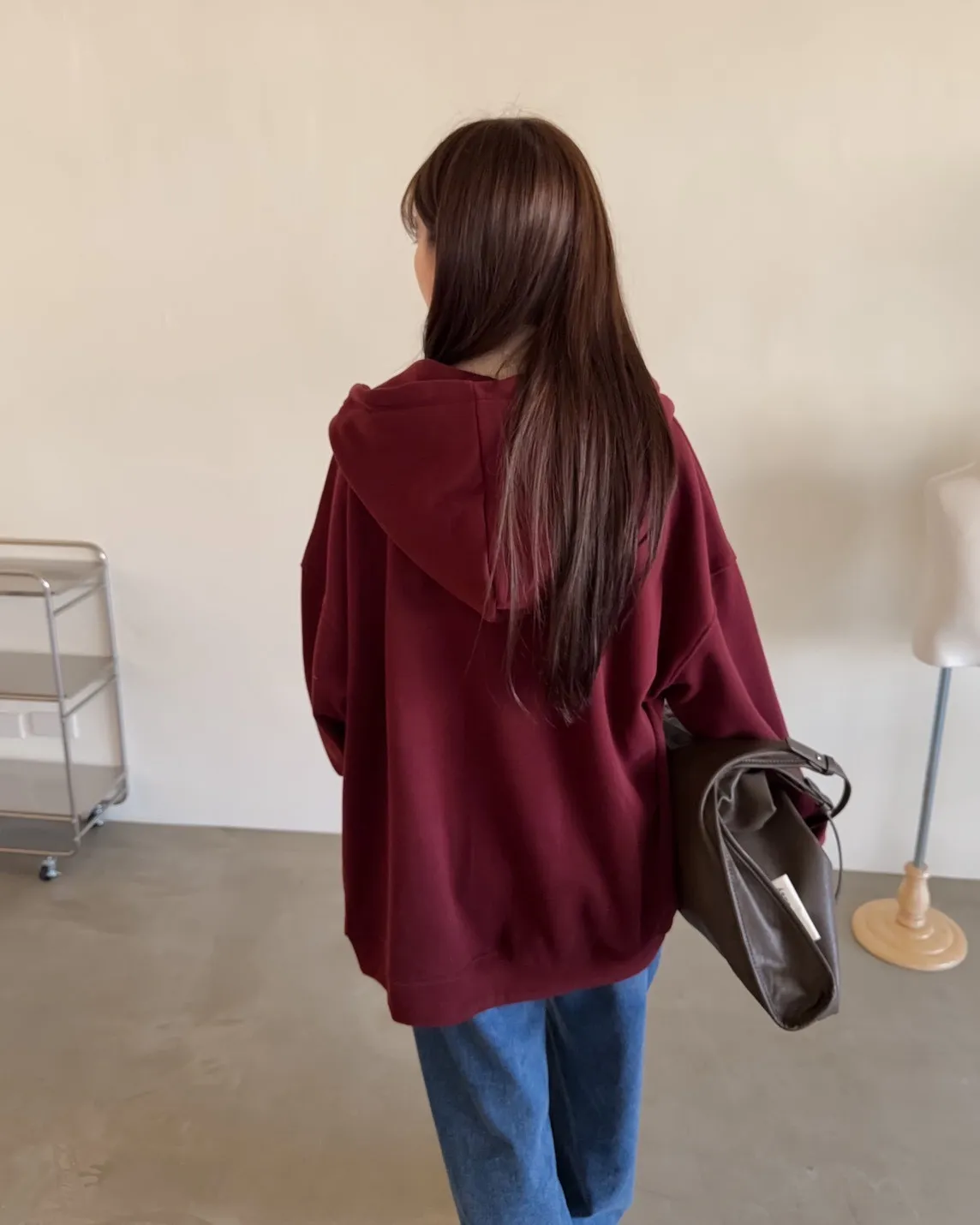 抽繩連帽 內刷絨毛 兩側口袋 寬鬆落肩