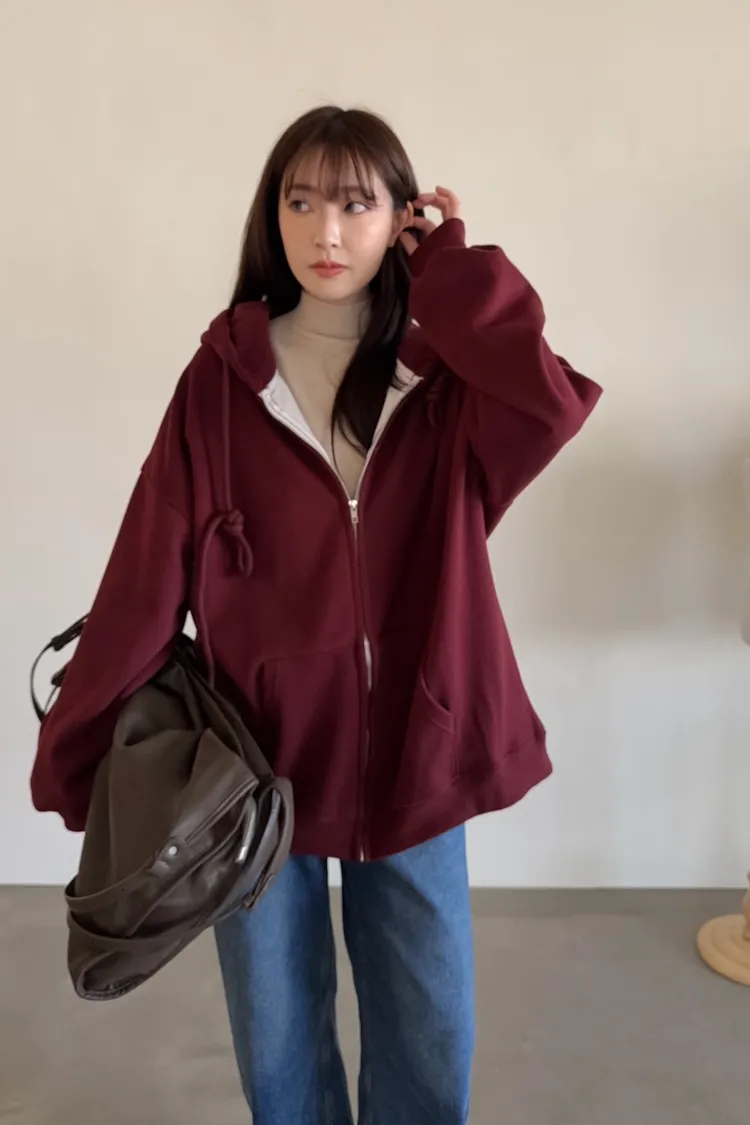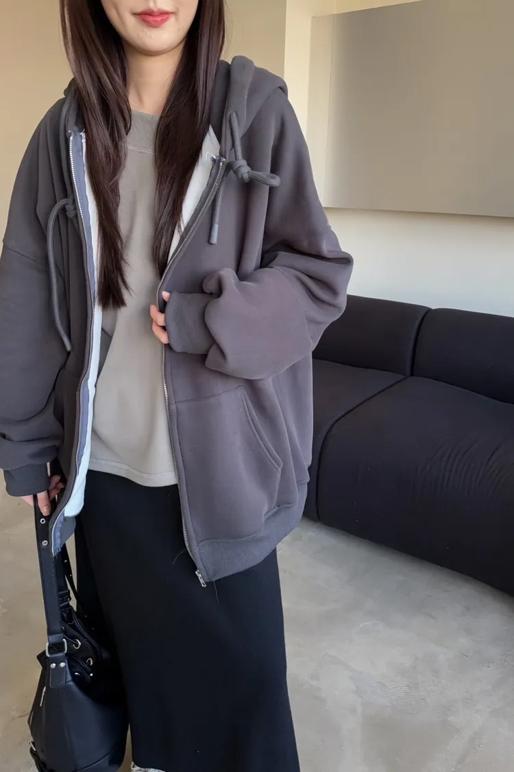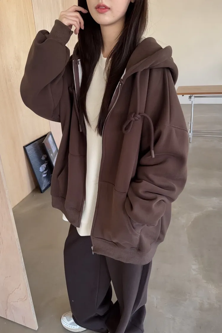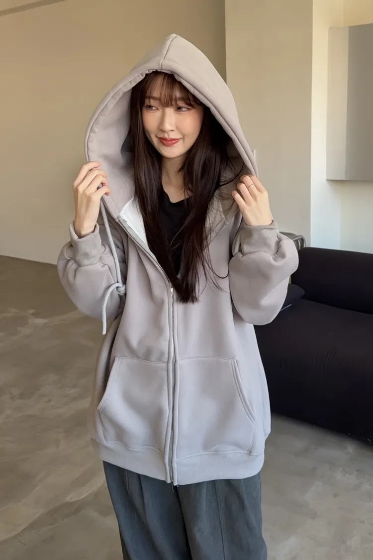 W0071(六色)內刷毛暖暖的連帽拉鏈外套(咖啡/紅/深藍/淺灰/深灰/黑)