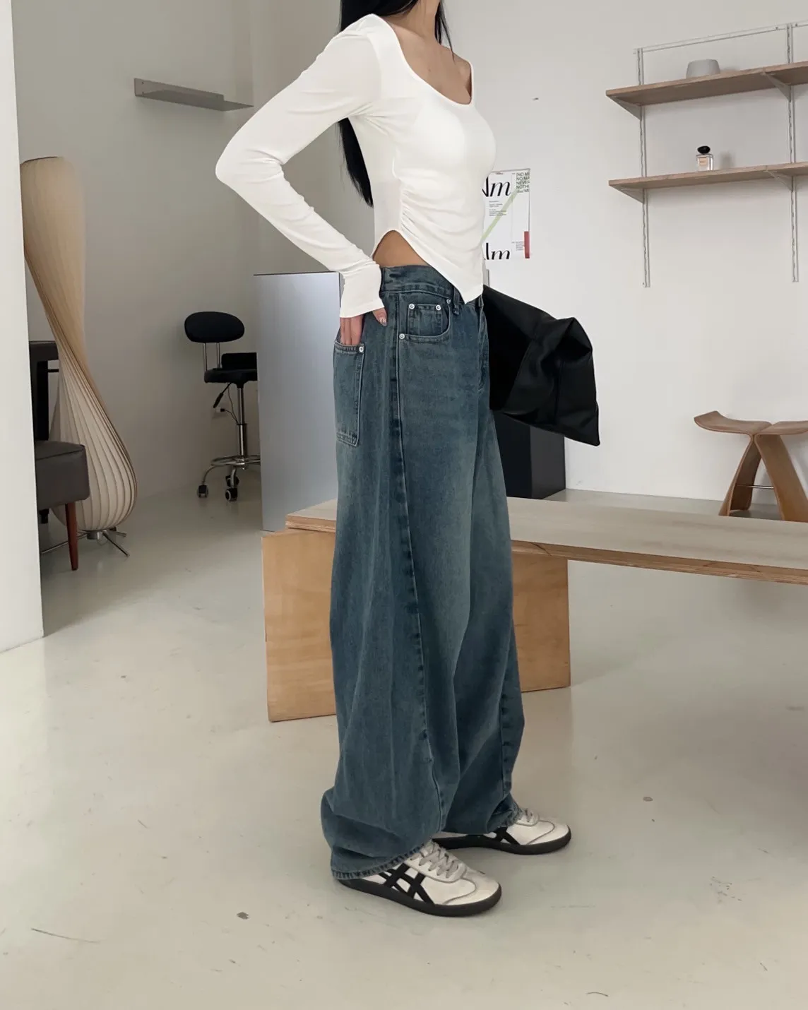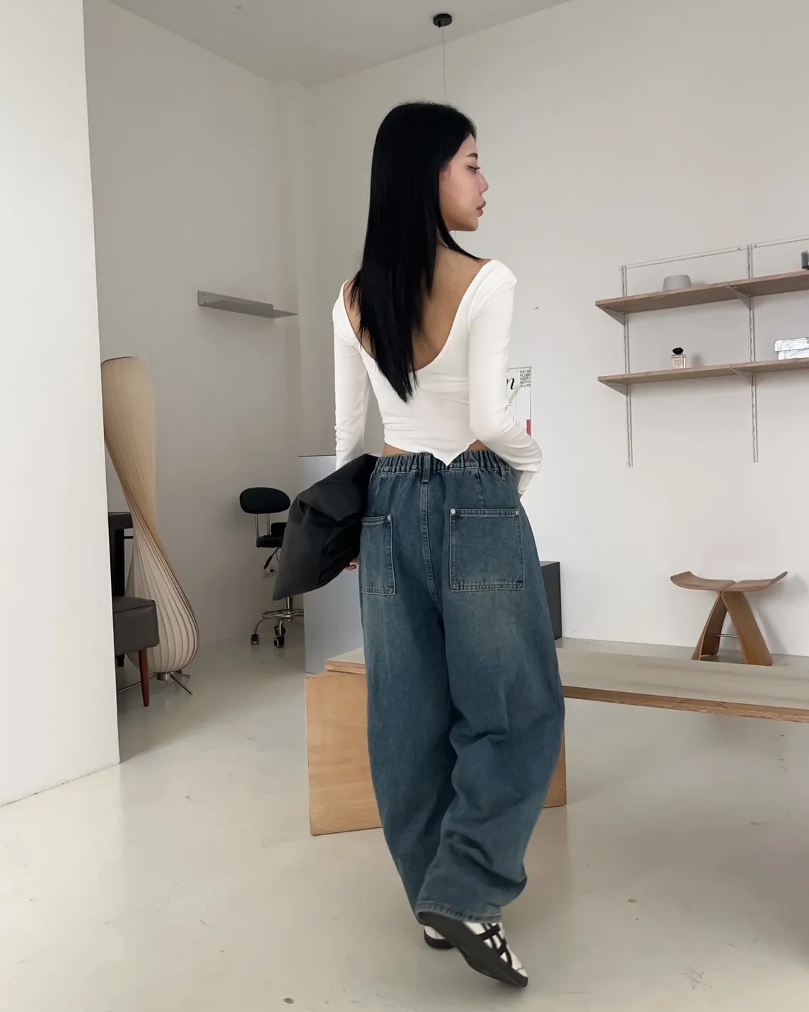 後鬆緊 建議尺寸S-大M小L 兩側口袋 褲腳內縮繭型 車線造型 布料本身無彈性