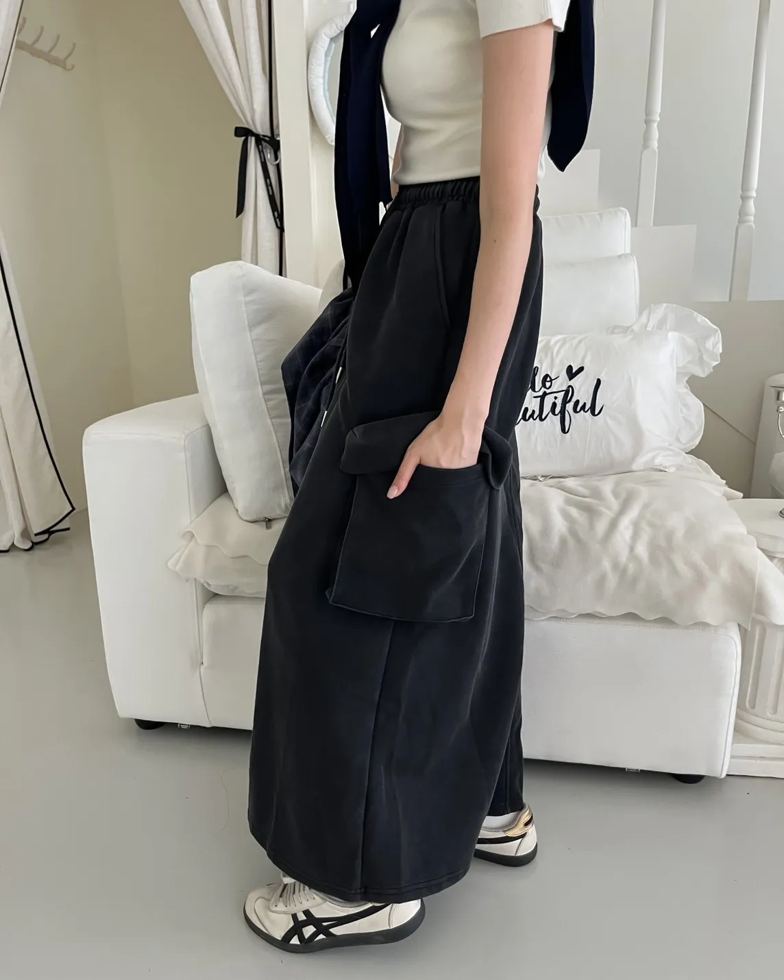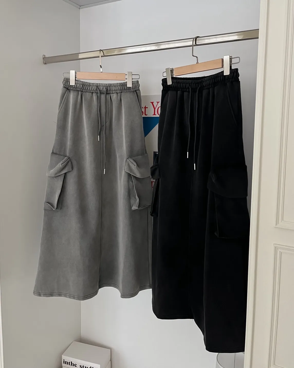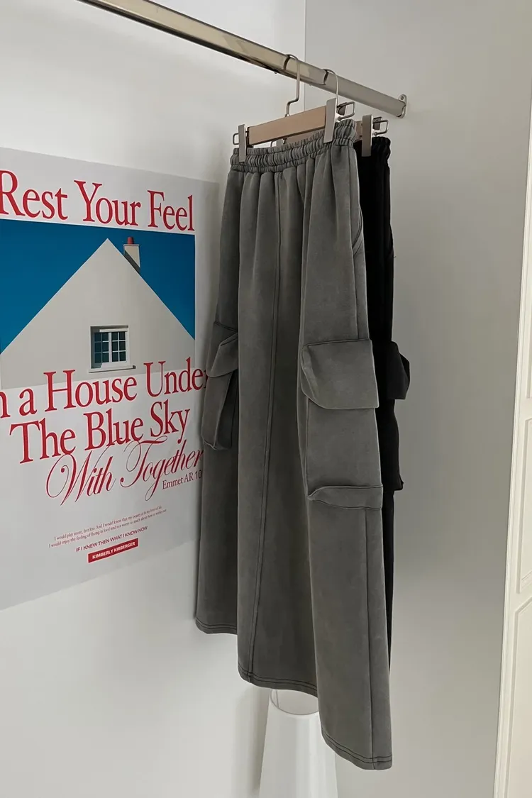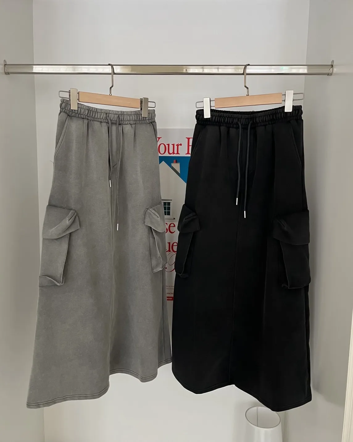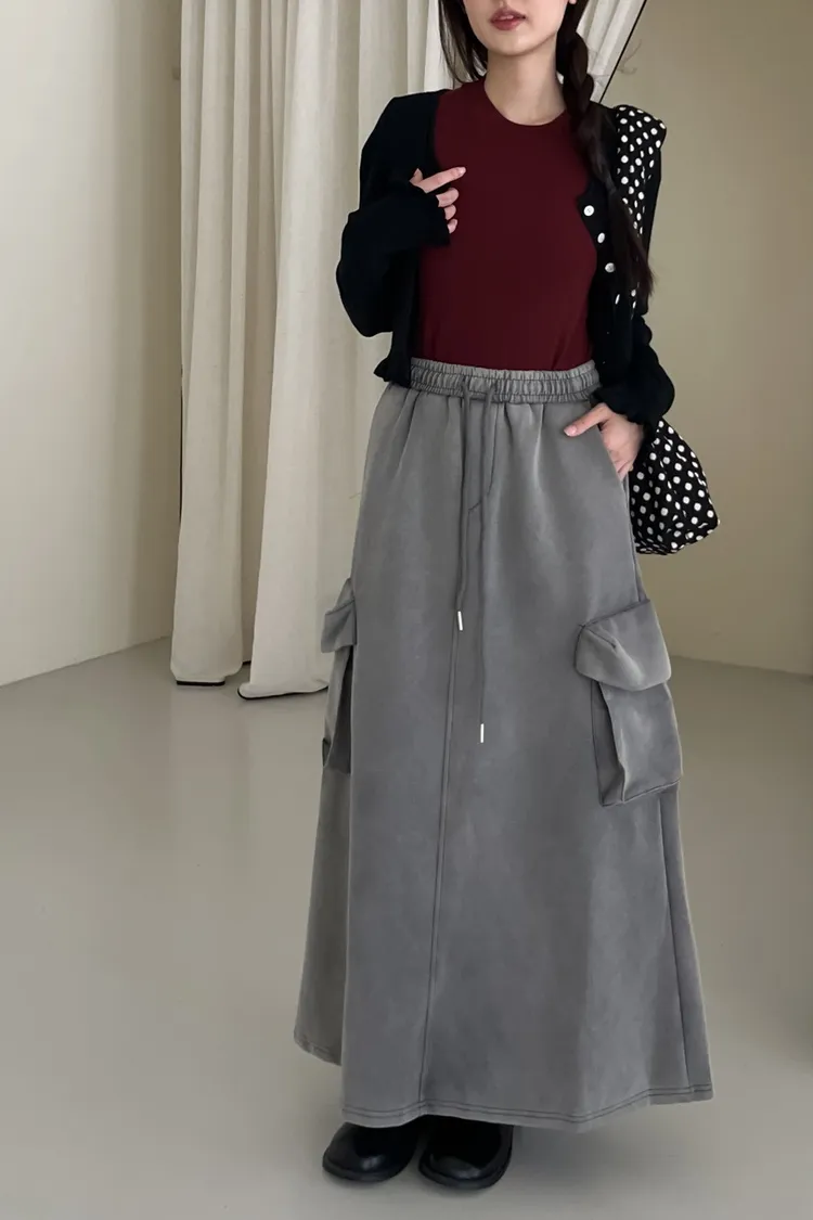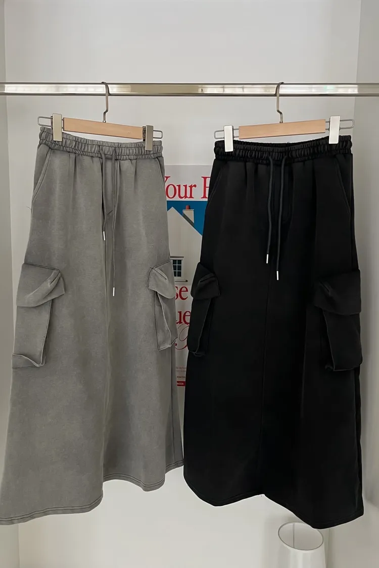 V0012又酷又Q澎澎口袋水洗棉裙(淺灰/深灰)
