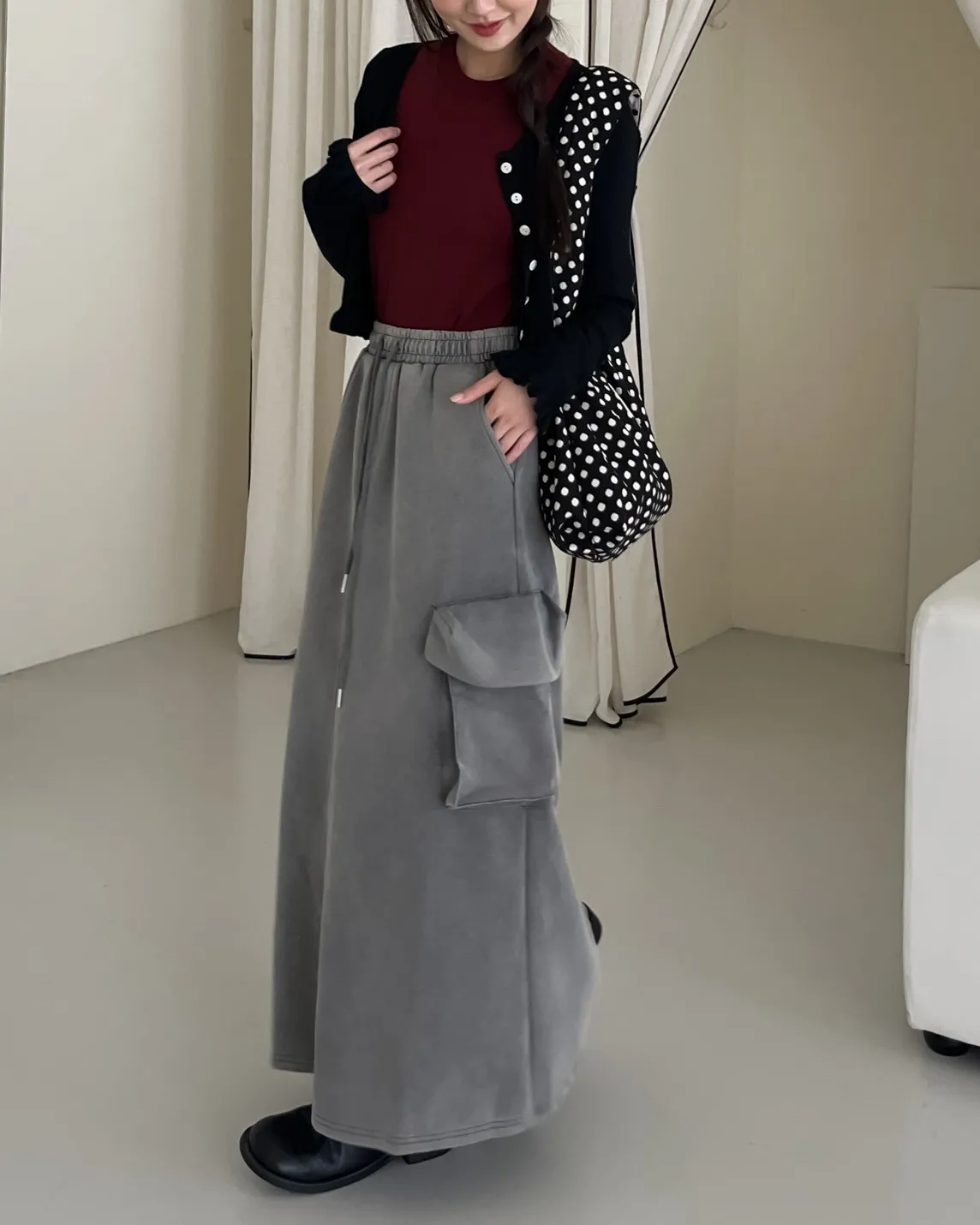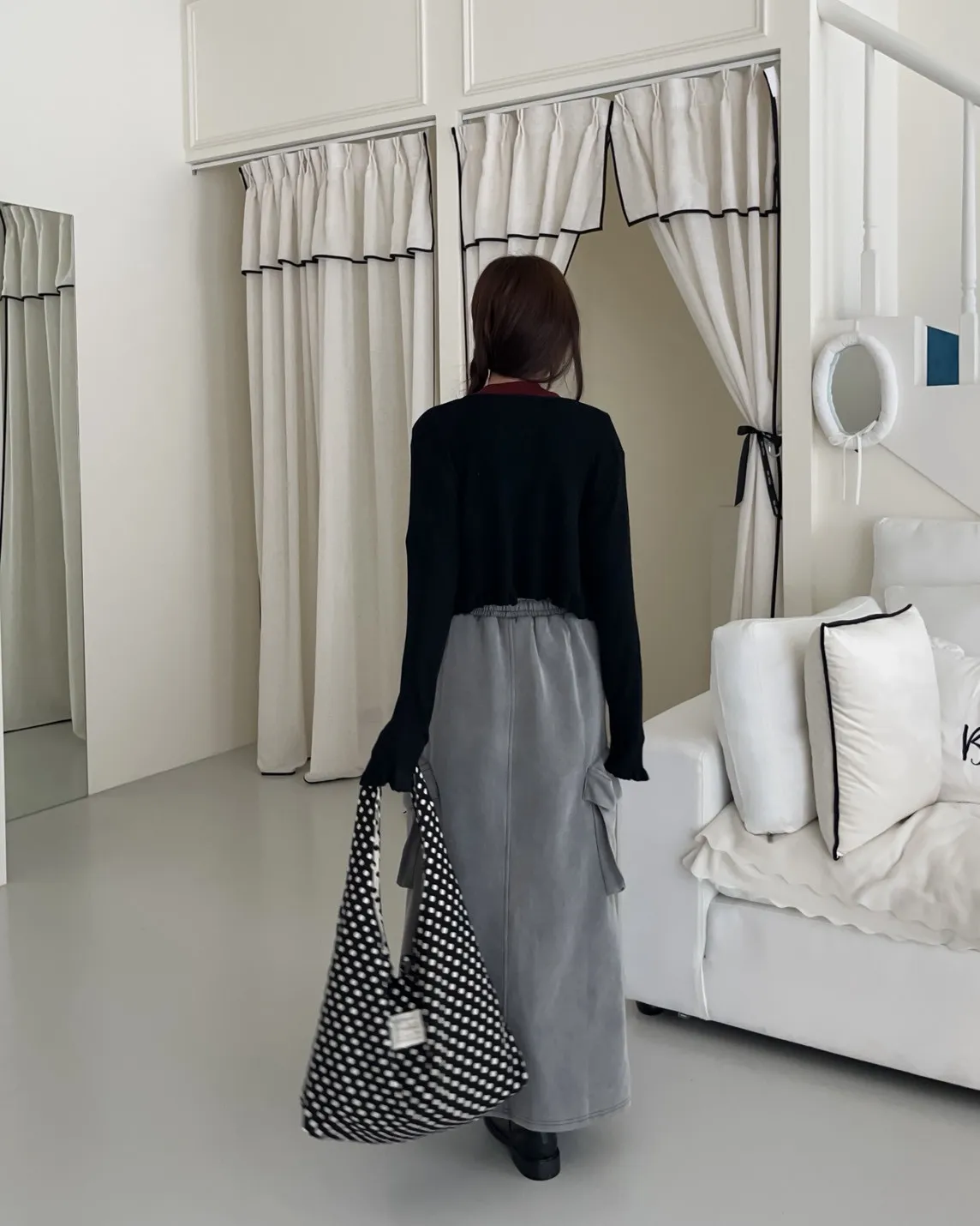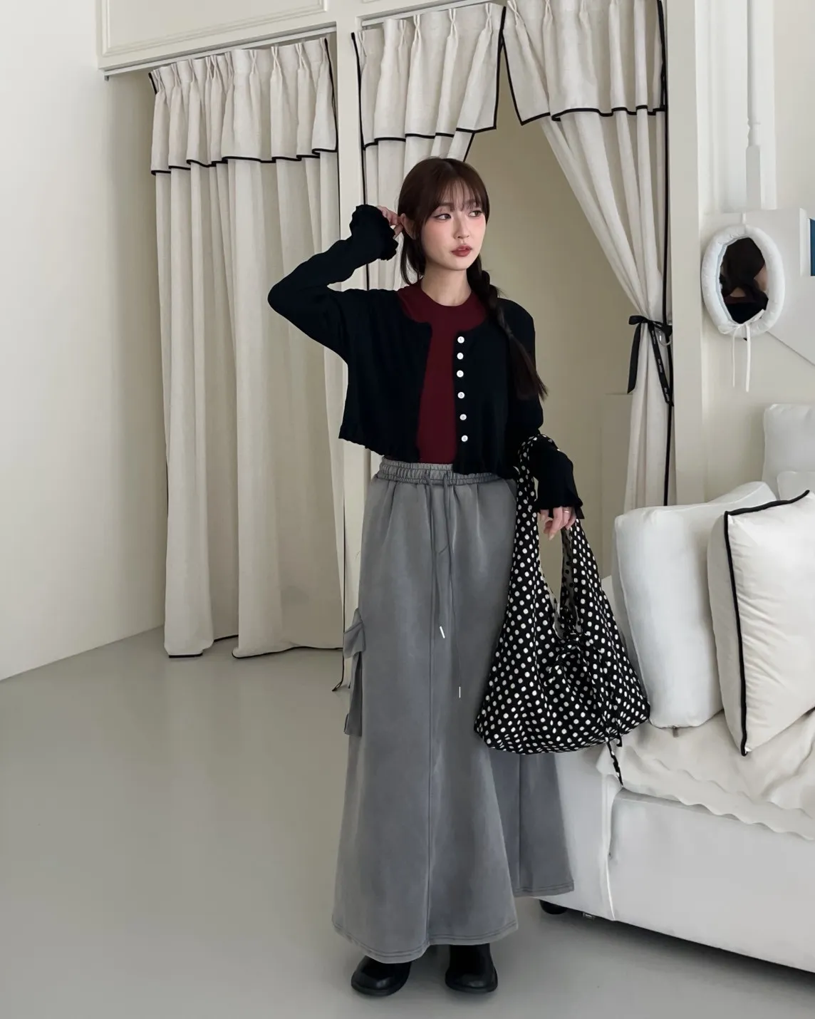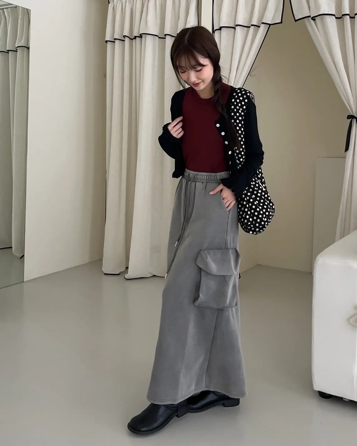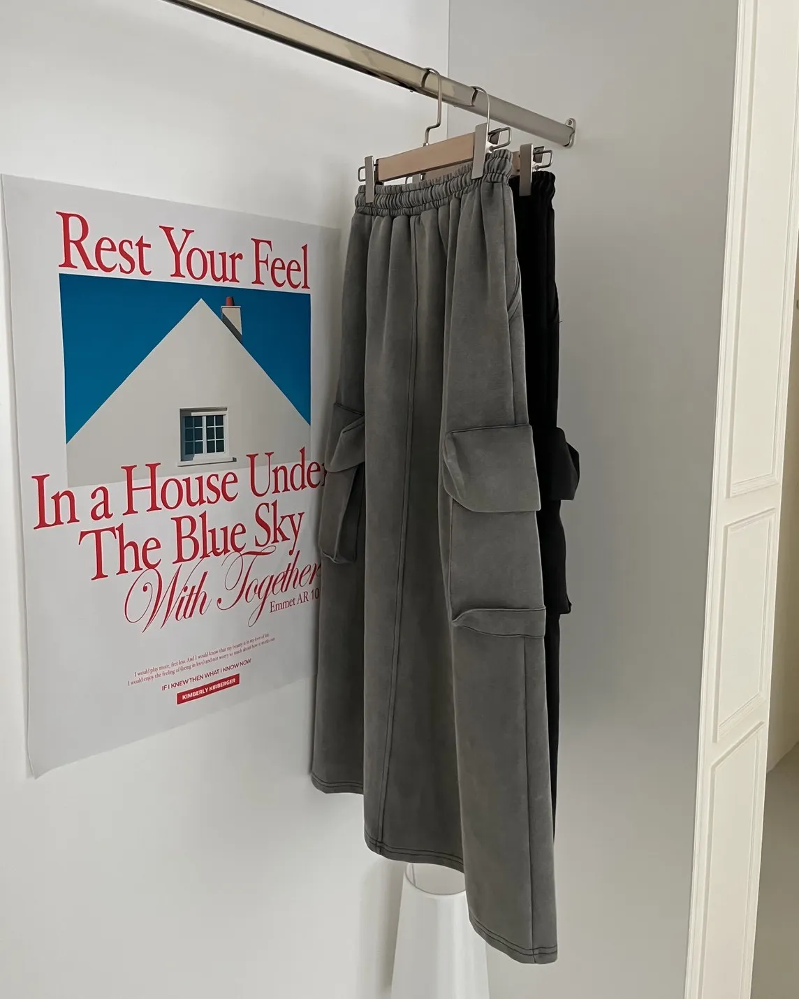 V0012又酷又Q澎澎口袋水洗棉裙(淺灰/深灰)