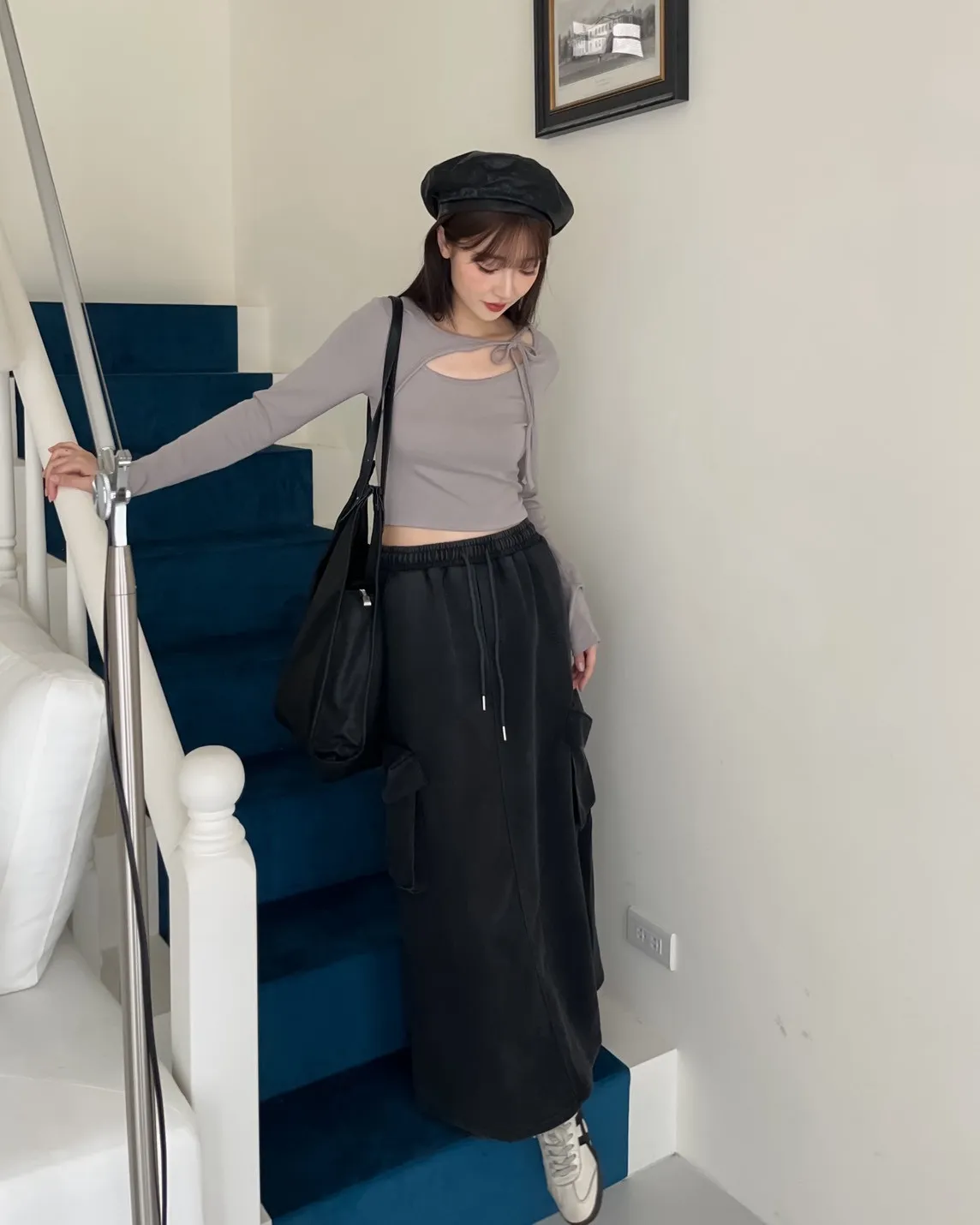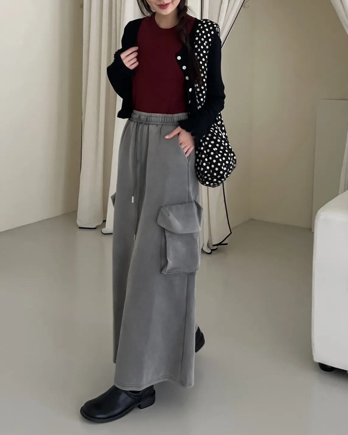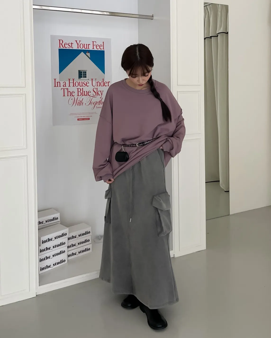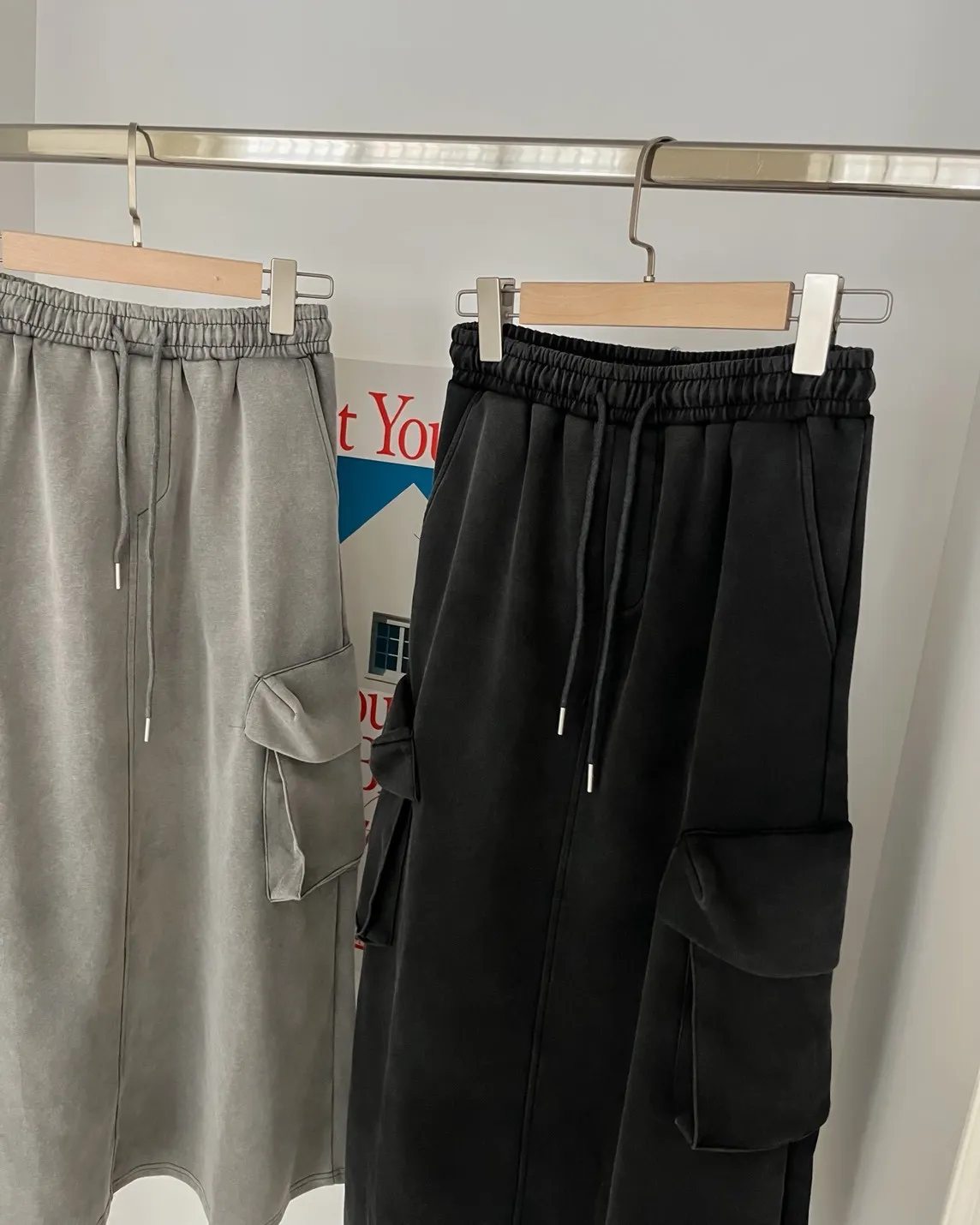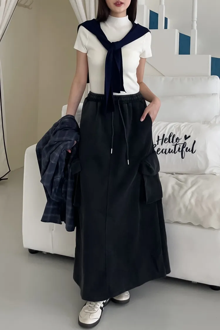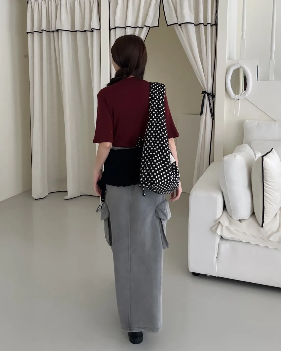 V0012又酷又Q澎澎口袋水洗棉裙(淺灰/深灰)