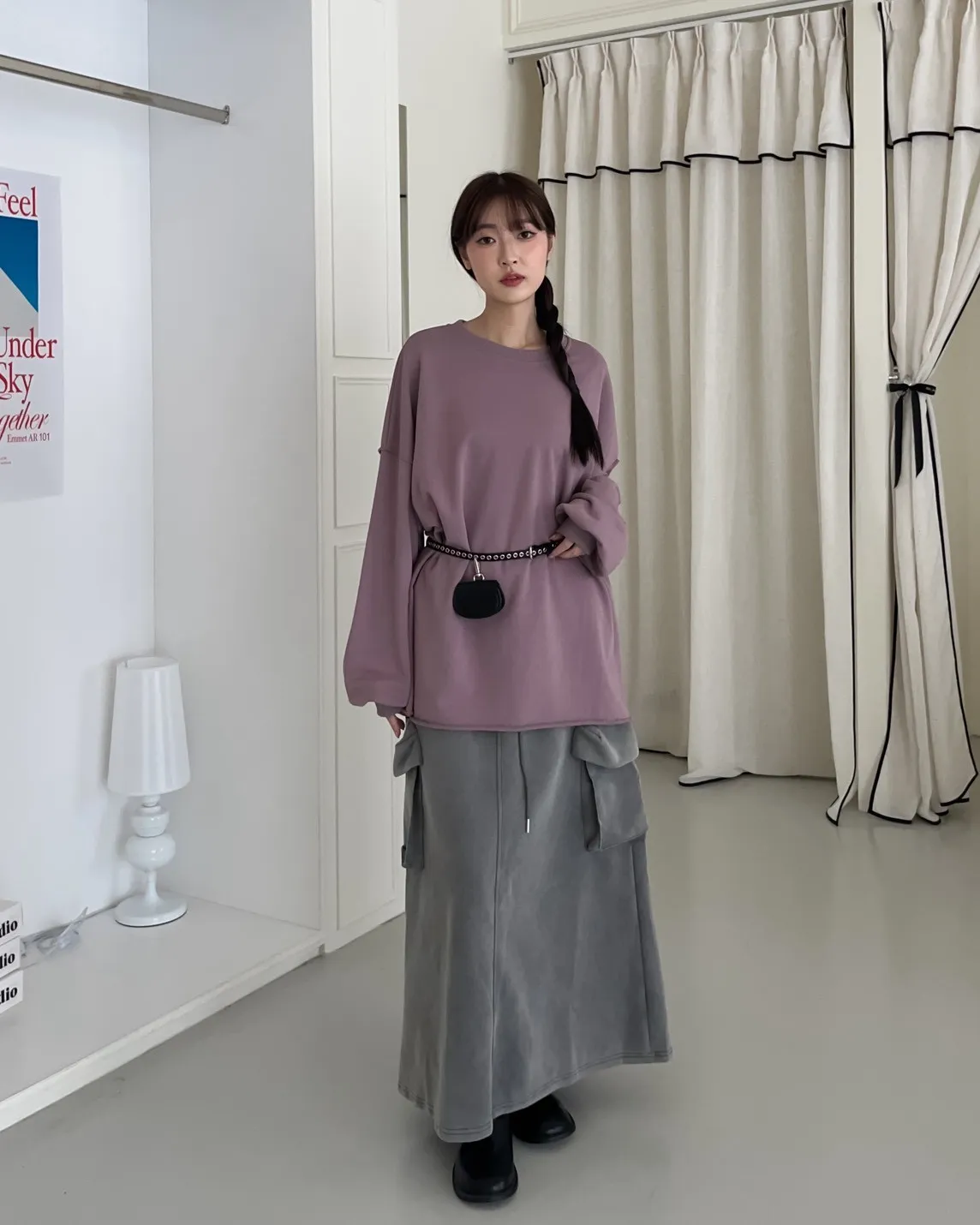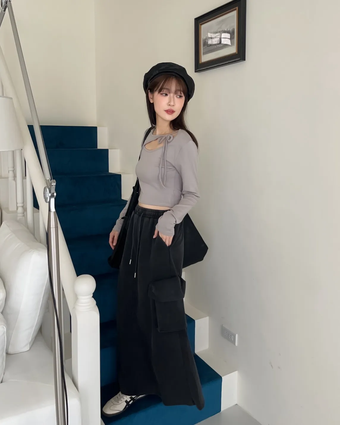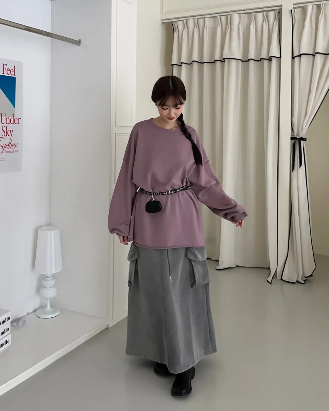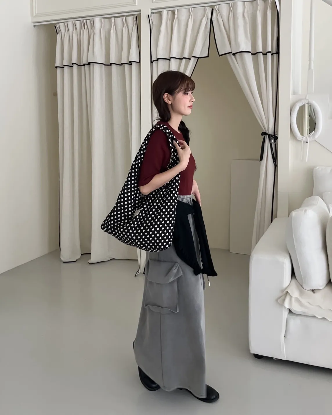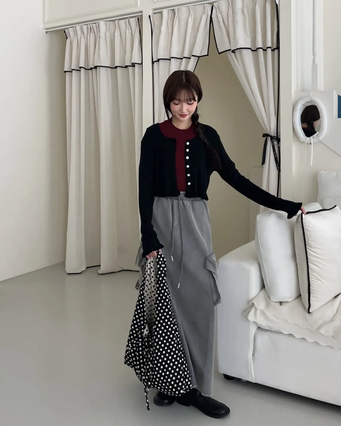 V0012又酷又Q澎澎口袋水洗棉裙(淺灰/深灰)