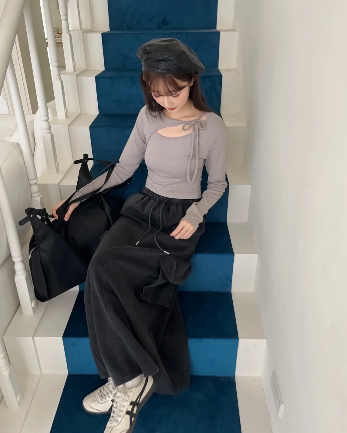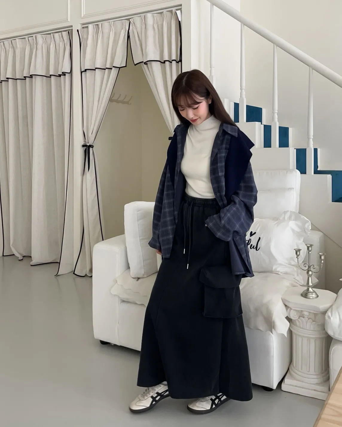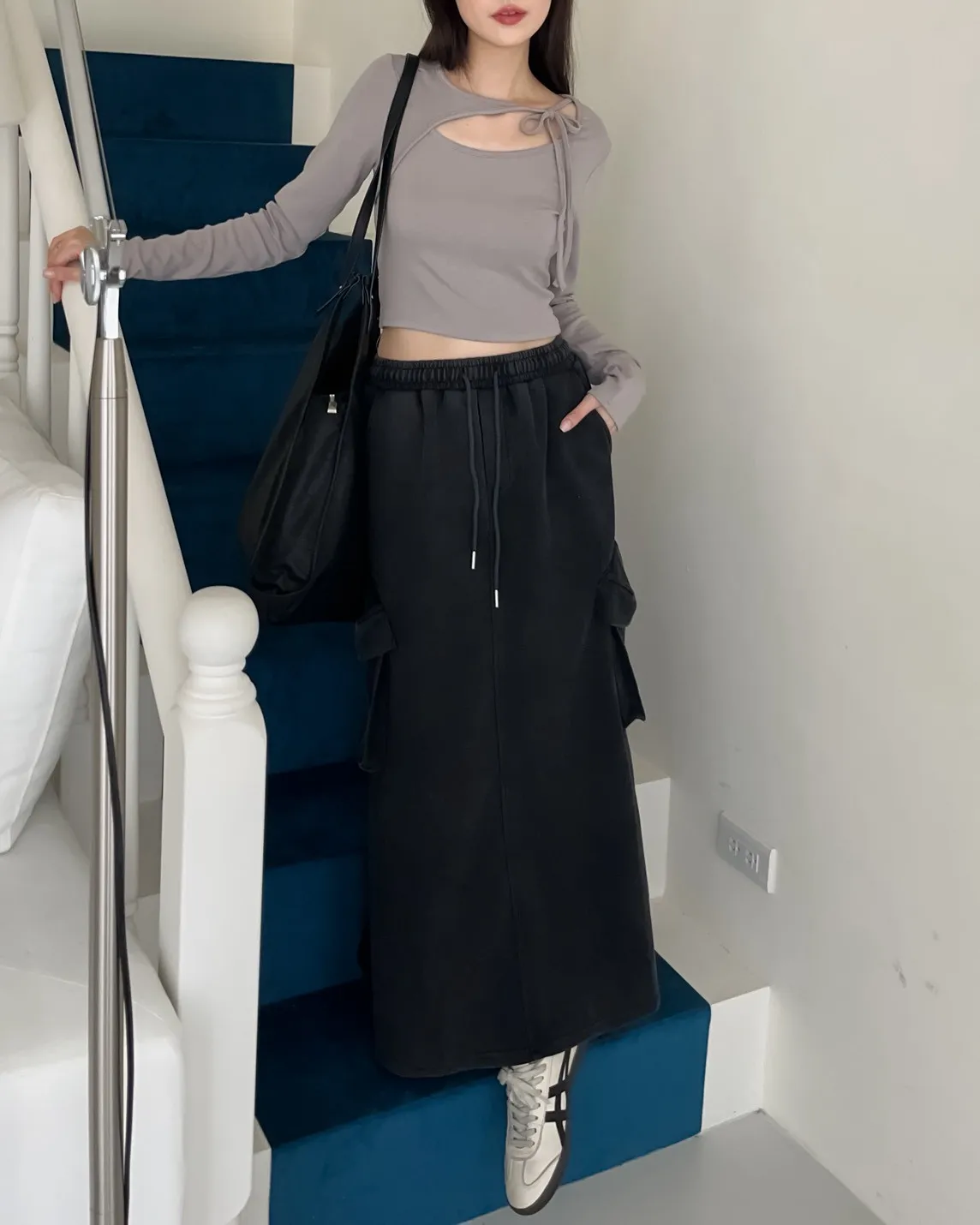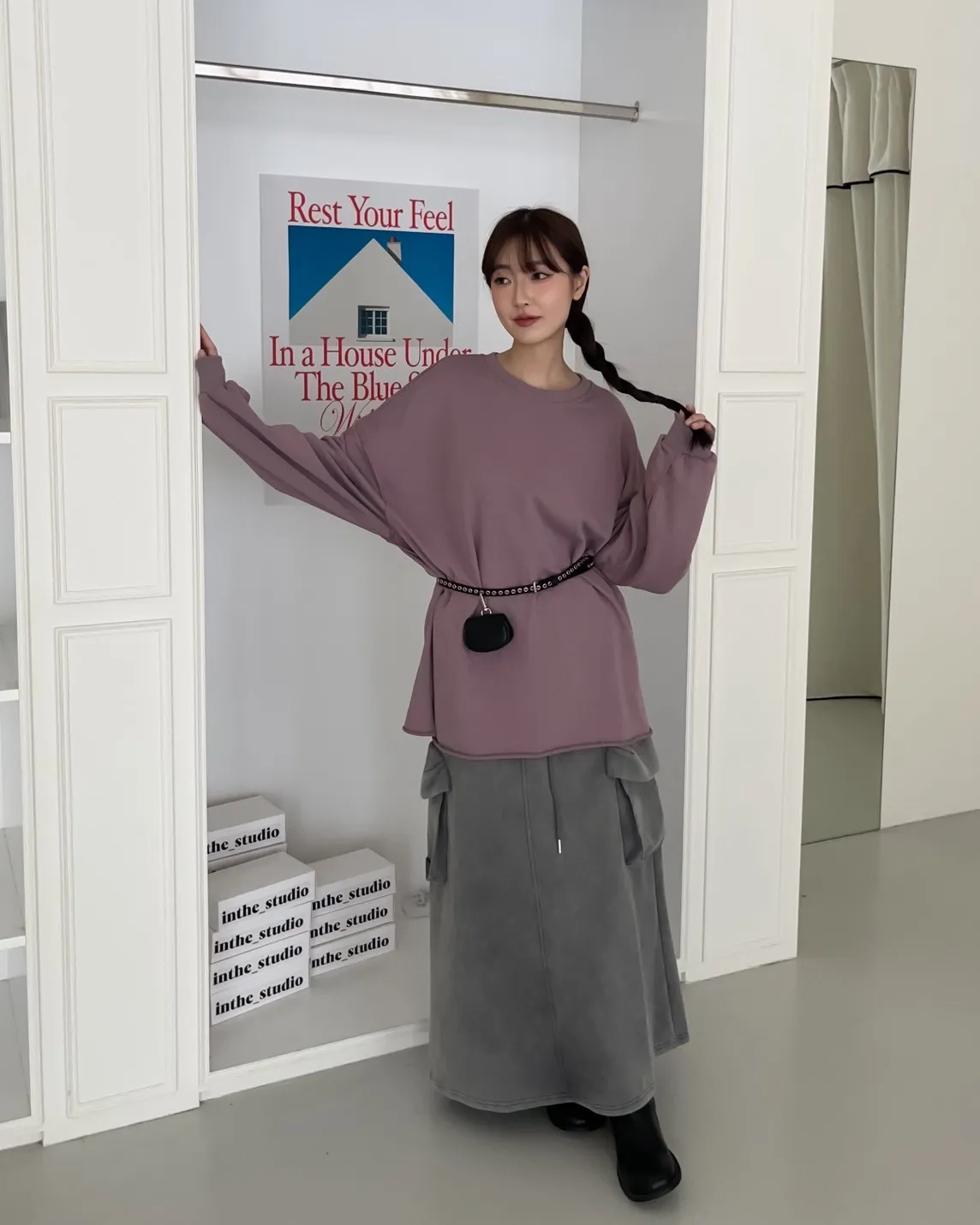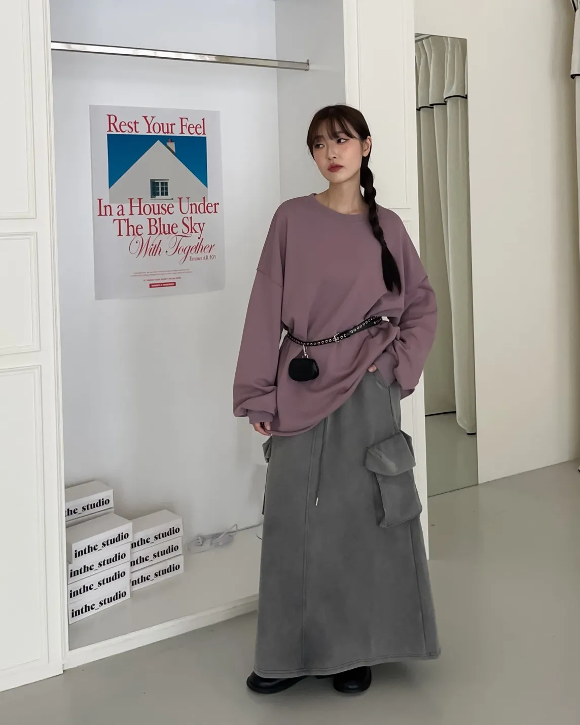 V0012又酷又Q澎澎口袋水洗棉裙(淺灰/深灰)