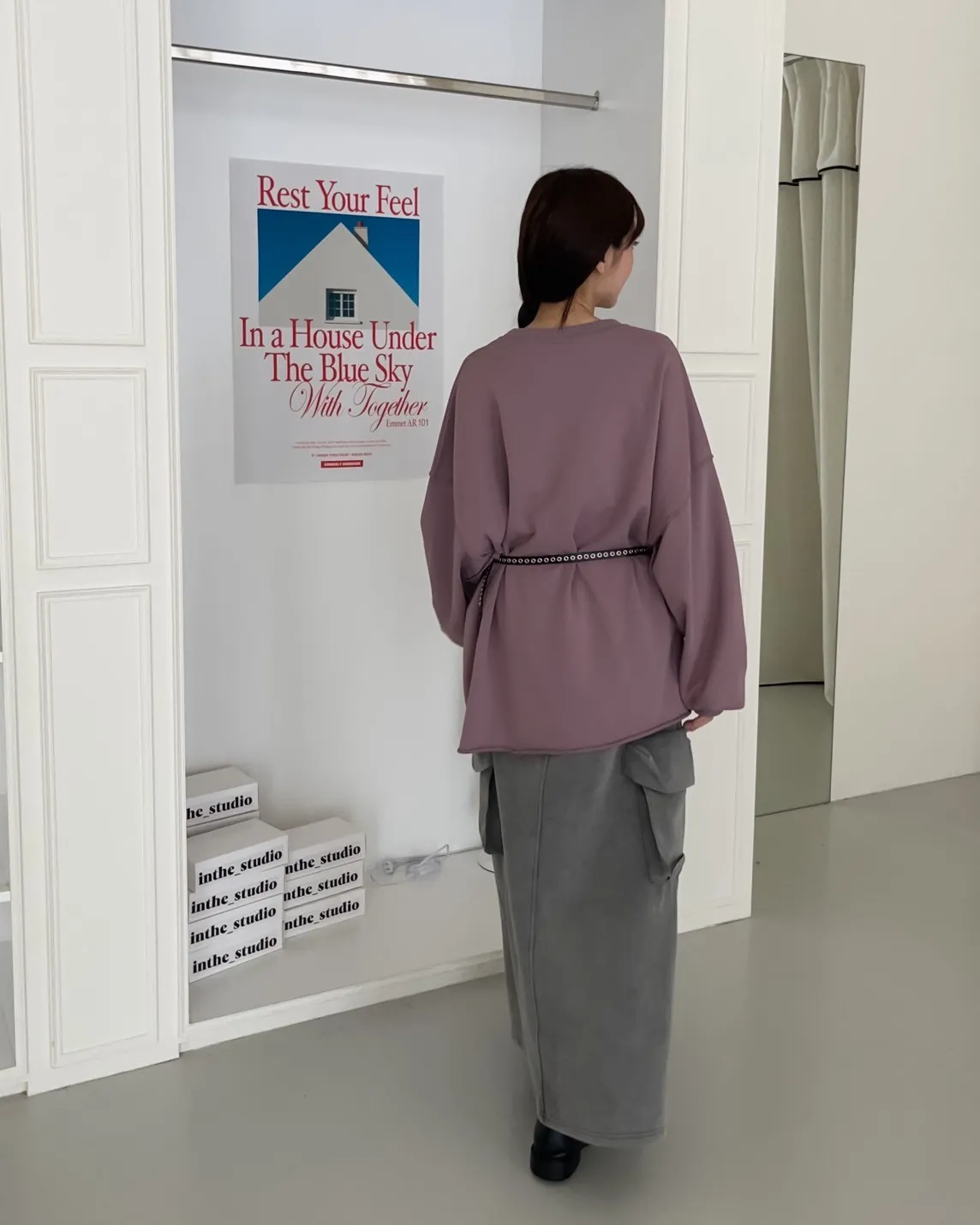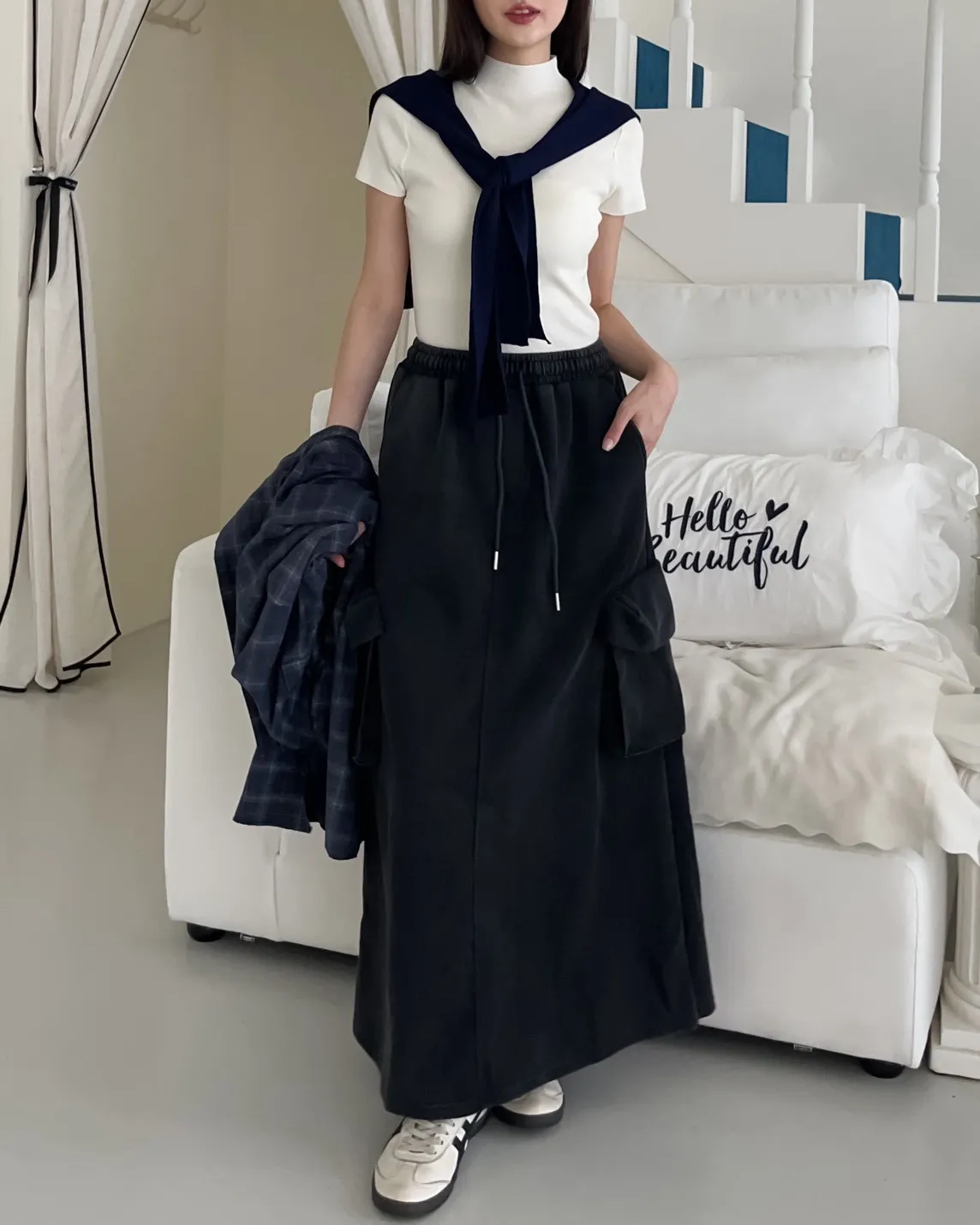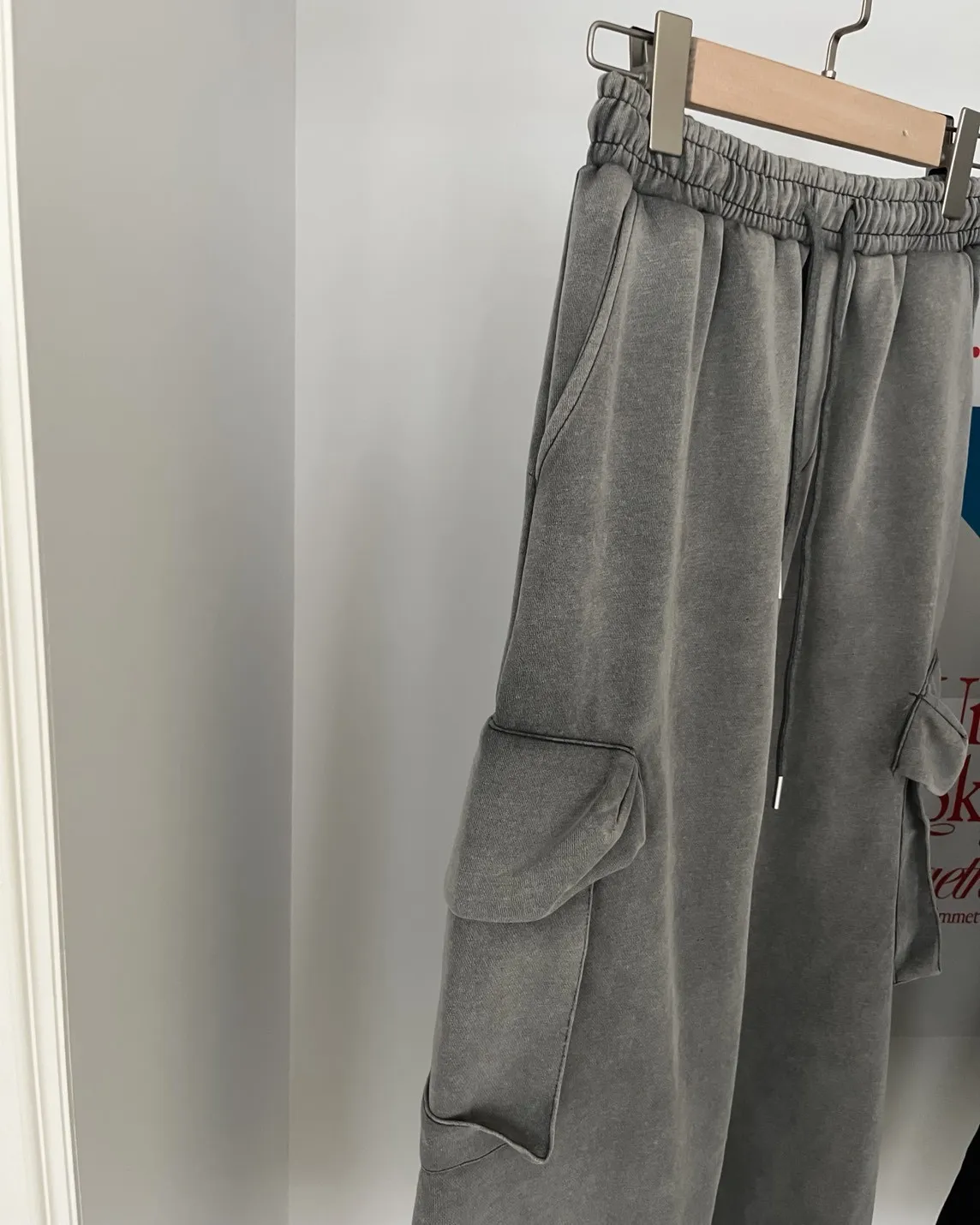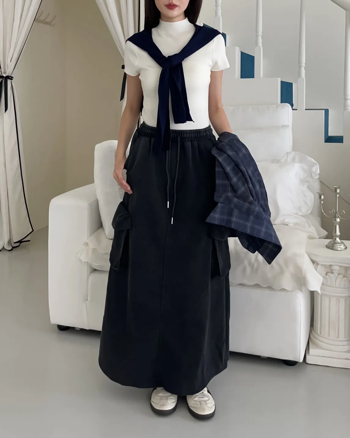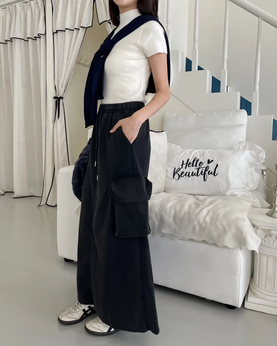 抽繩全鬆緊 建議尺寸S-L 兩側口袋 兩邊翻蓋口袋(澎澎立體很可愛~) 水洗刷色