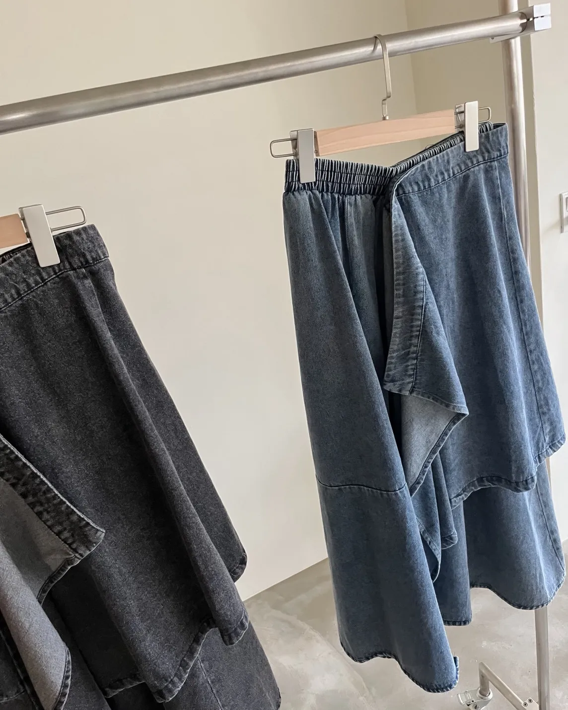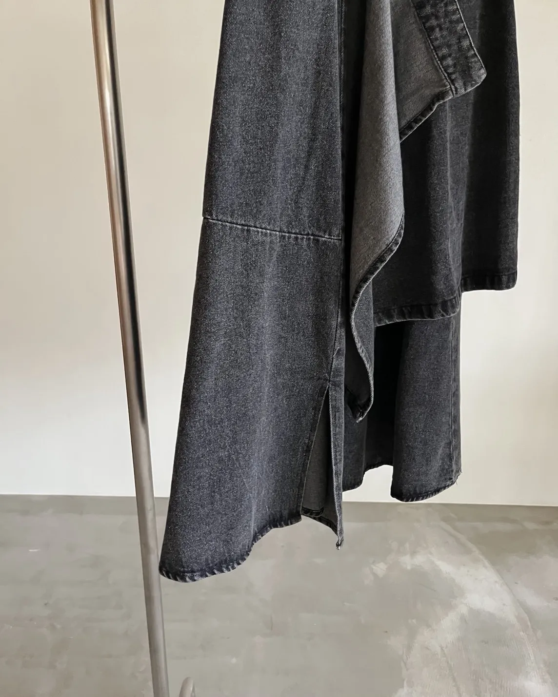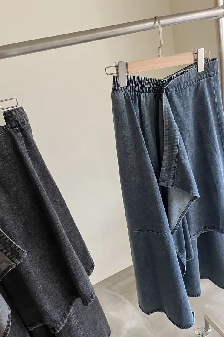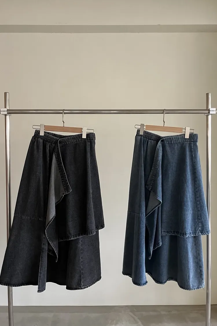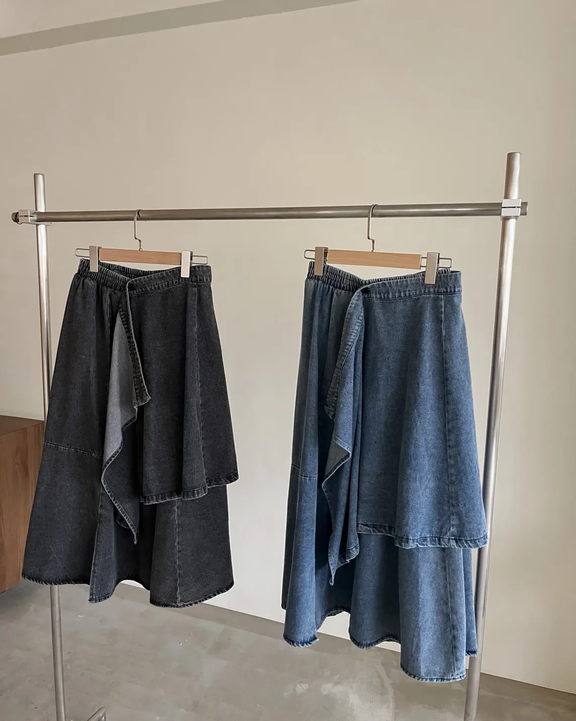 V0075設計感可拆片裙+寬牛仔半裙(藍/黑灰)