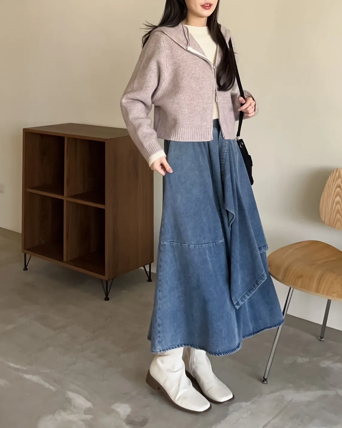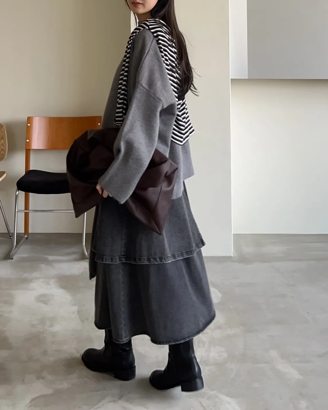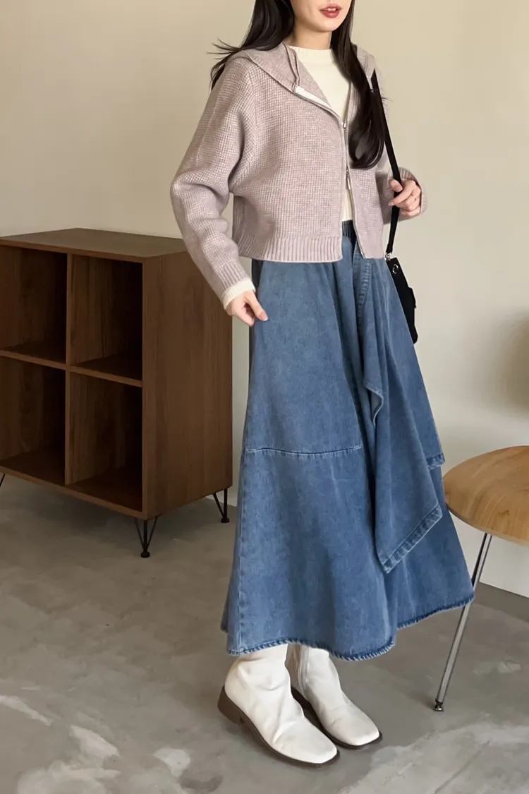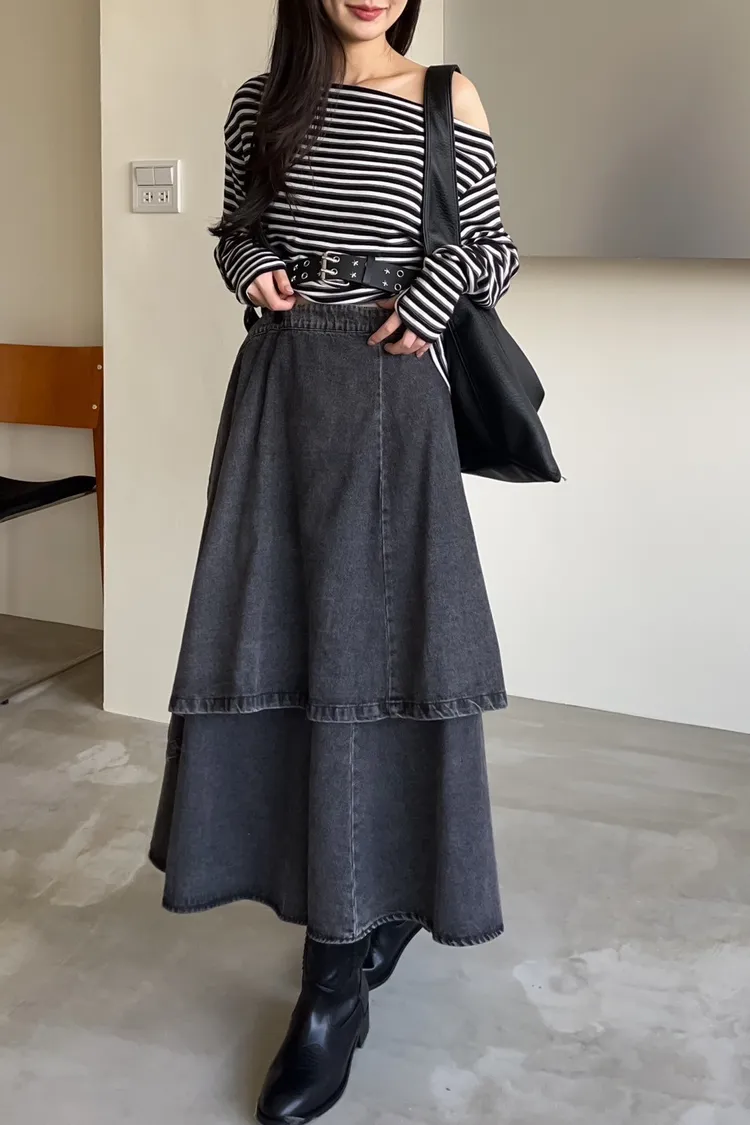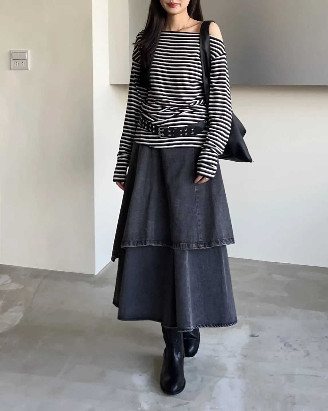 V0075設計感可拆片裙+寬牛仔半裙(藍/黑灰)