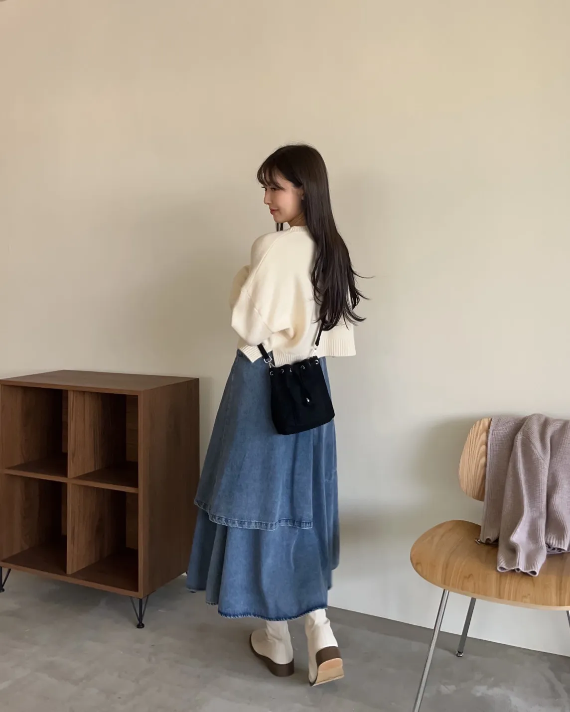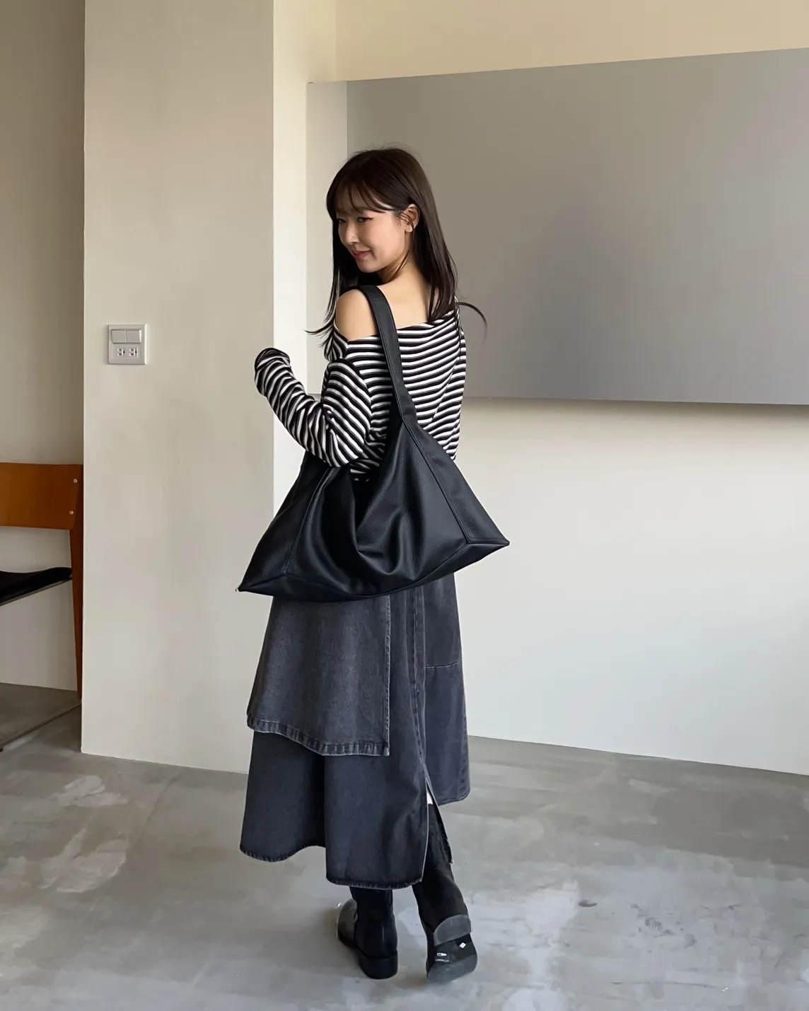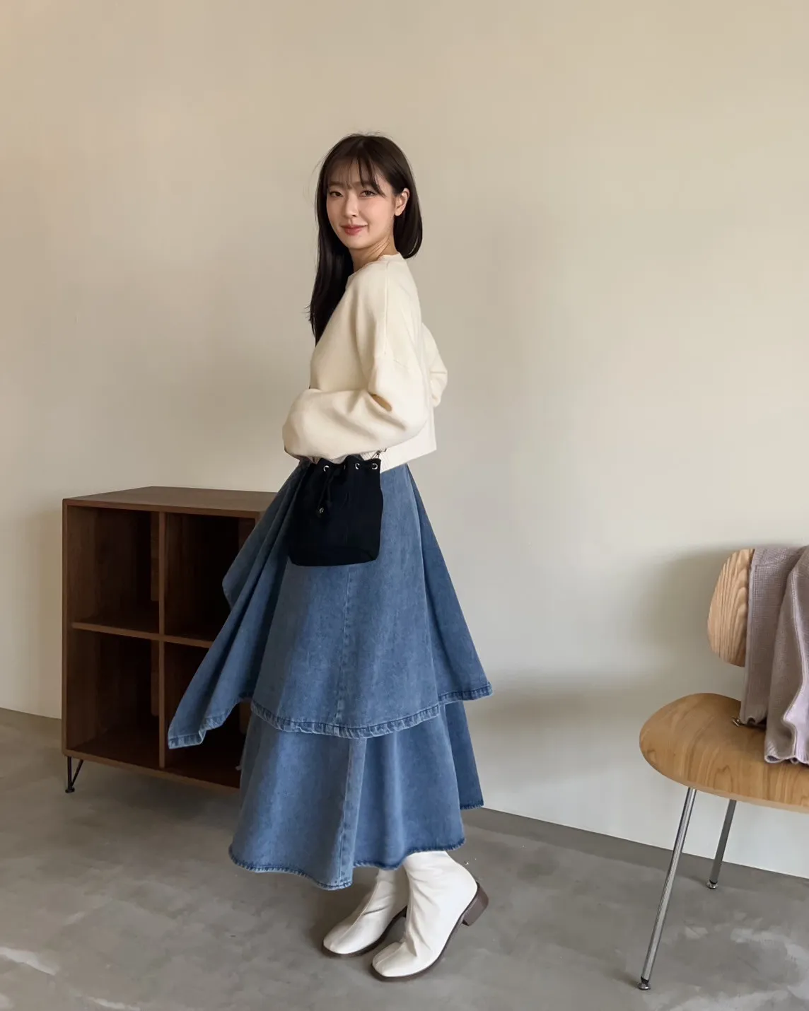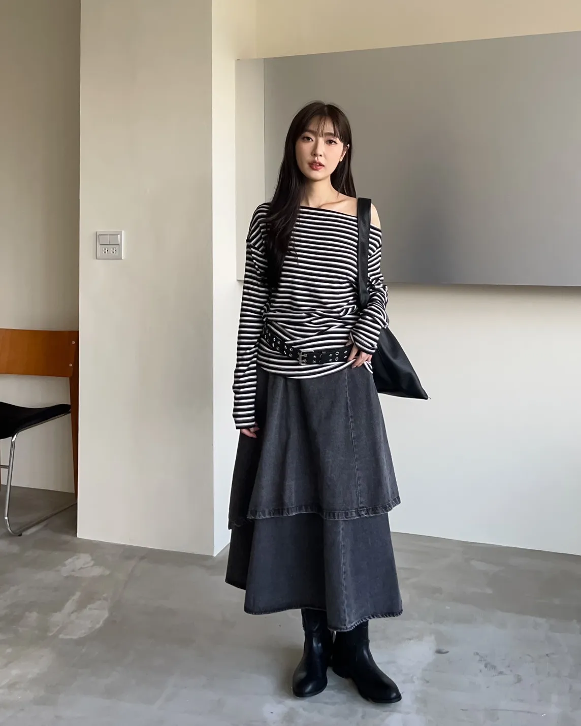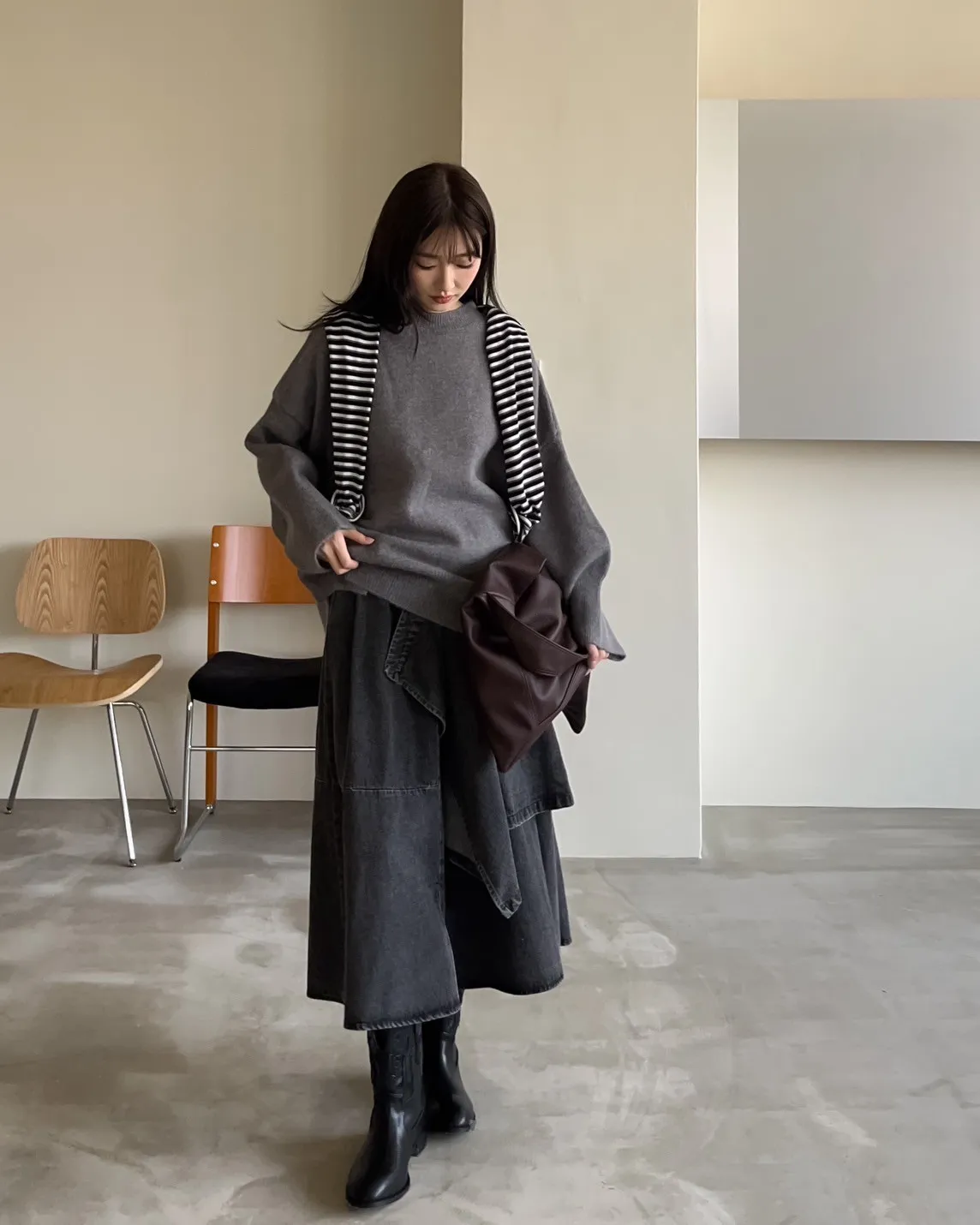 V0075設計感可拆片裙+寬牛仔半裙(藍/黑灰)