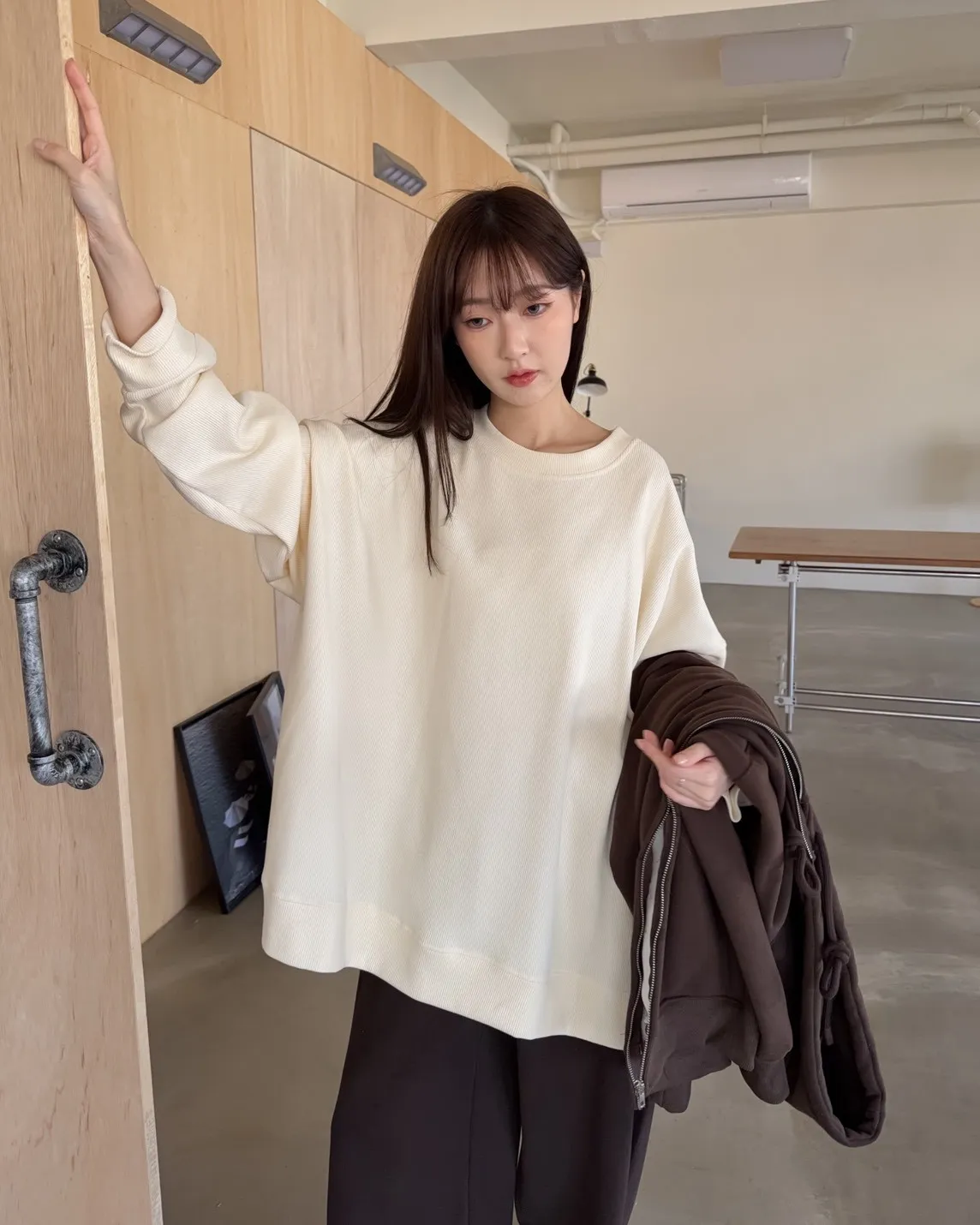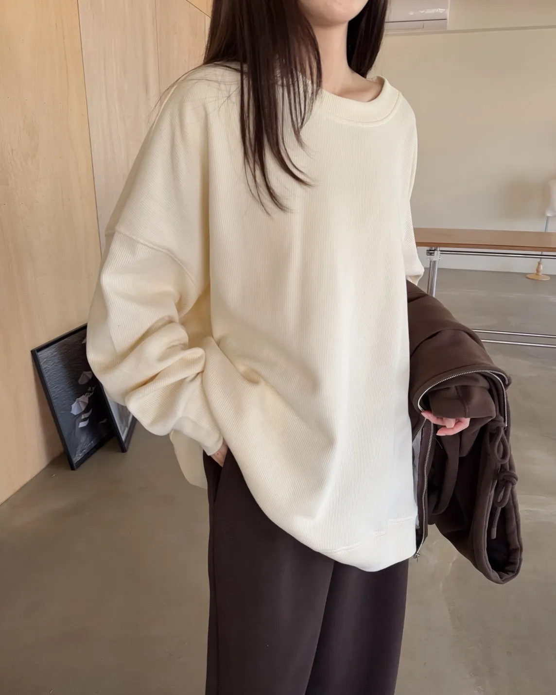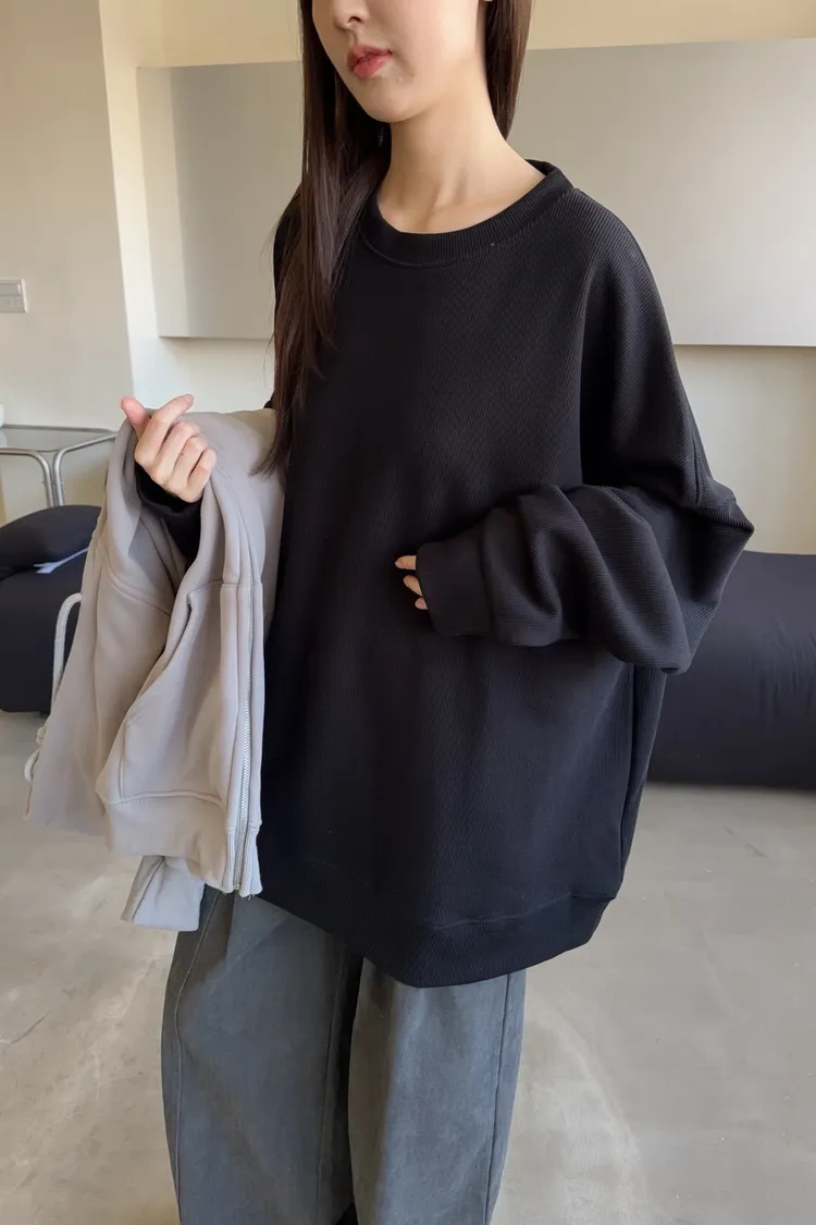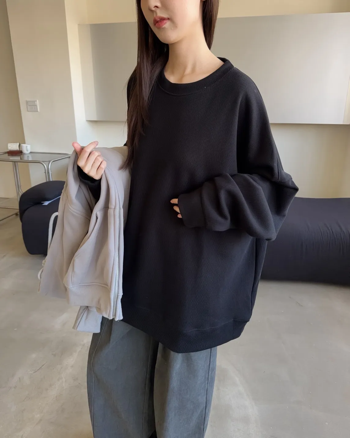 寬鬆落肩 細細坑紋 微厚 袖縮口