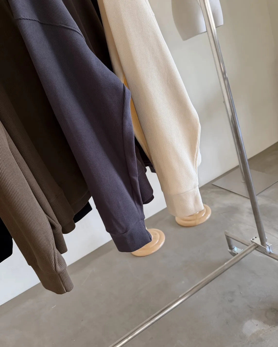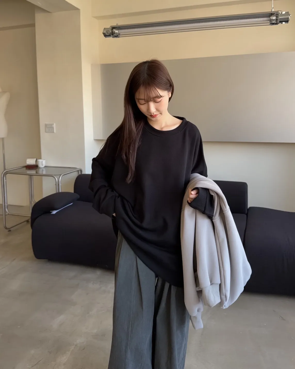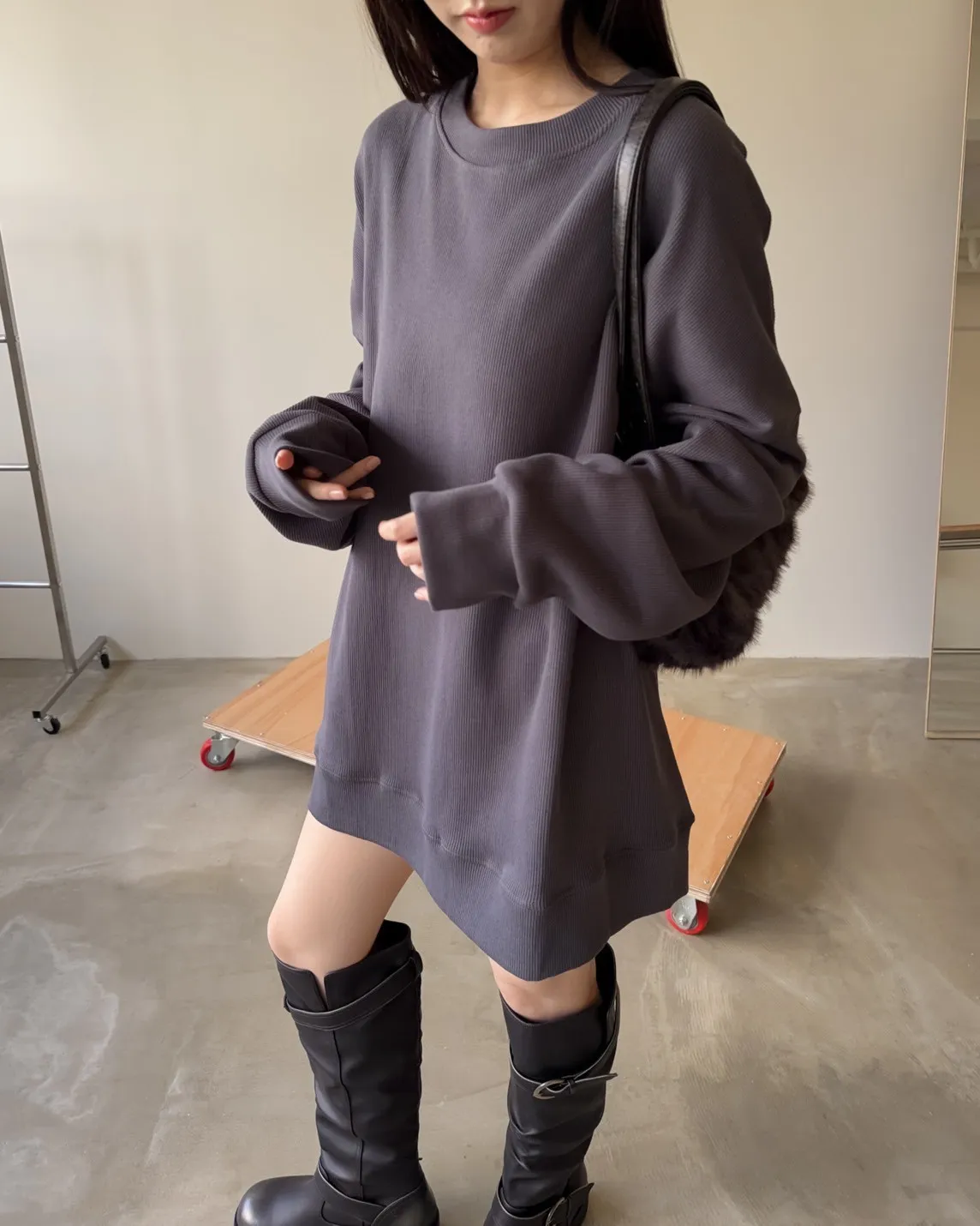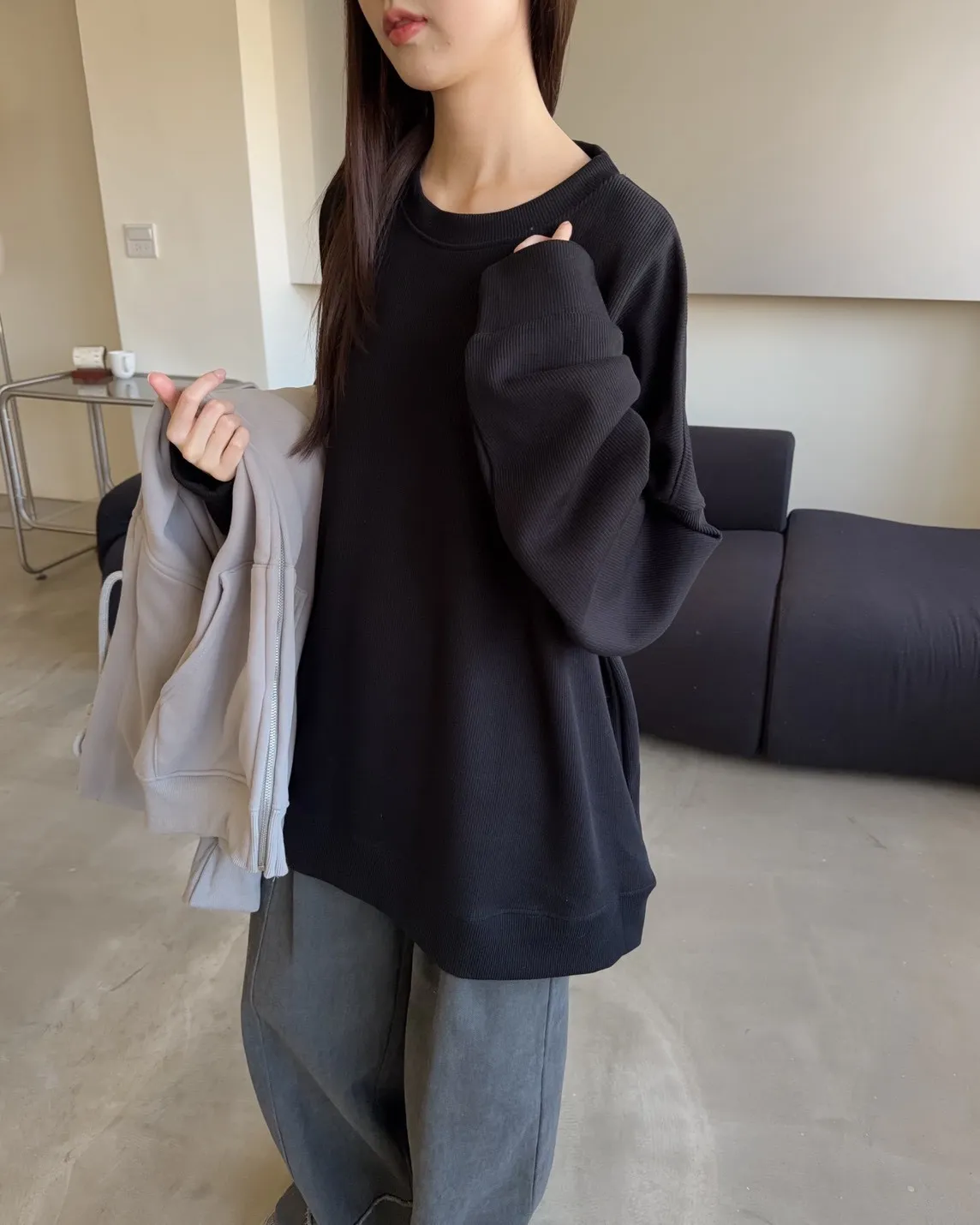寬鬆落肩 細細坑紋 微厚 袖縮口